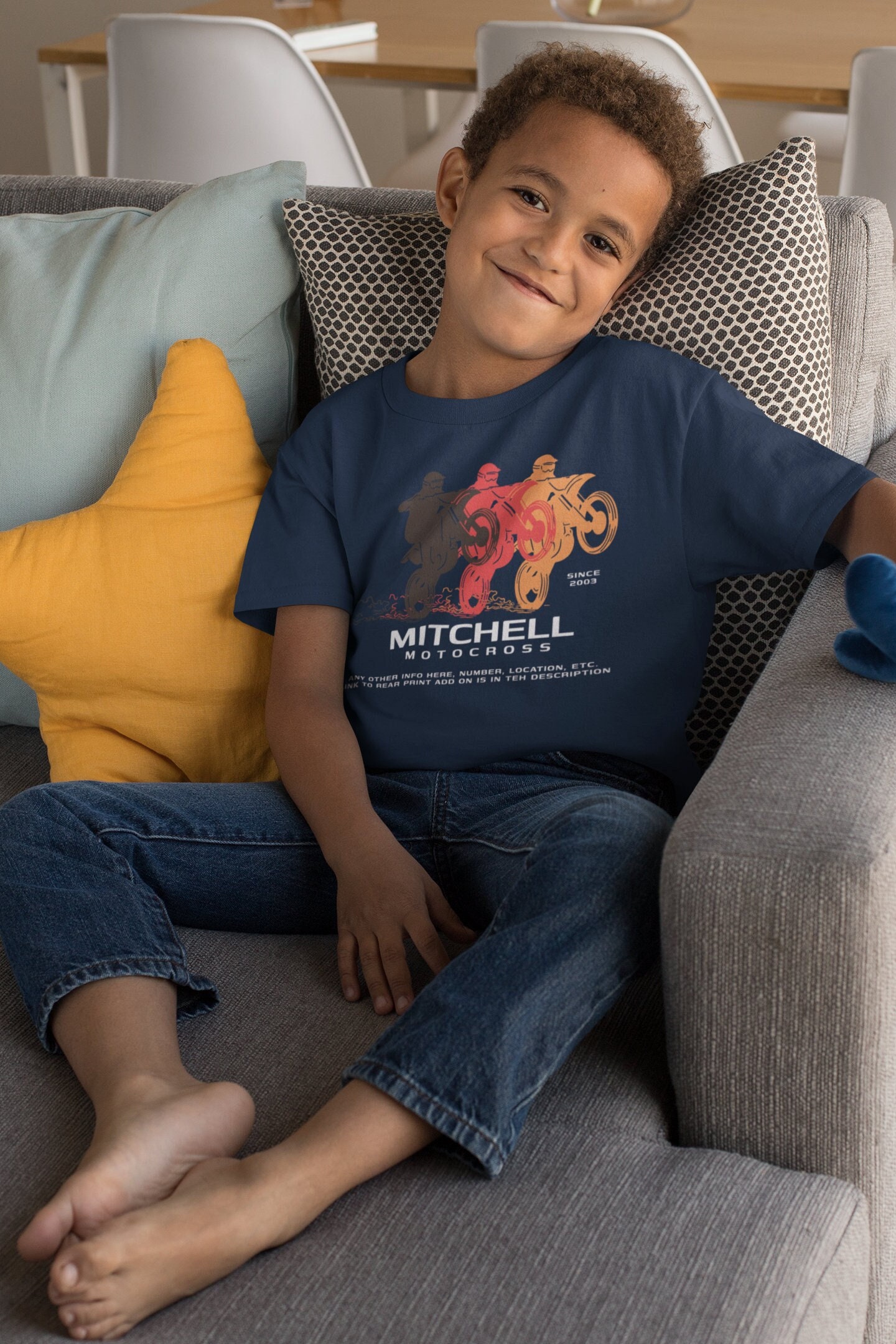 Kids Personalized Motocross Shirt Dirt Bike T Shirt Custom Racing Wheelie Tee Track Mud Dirty Grip Trick Riding Motor Unisex Youth
