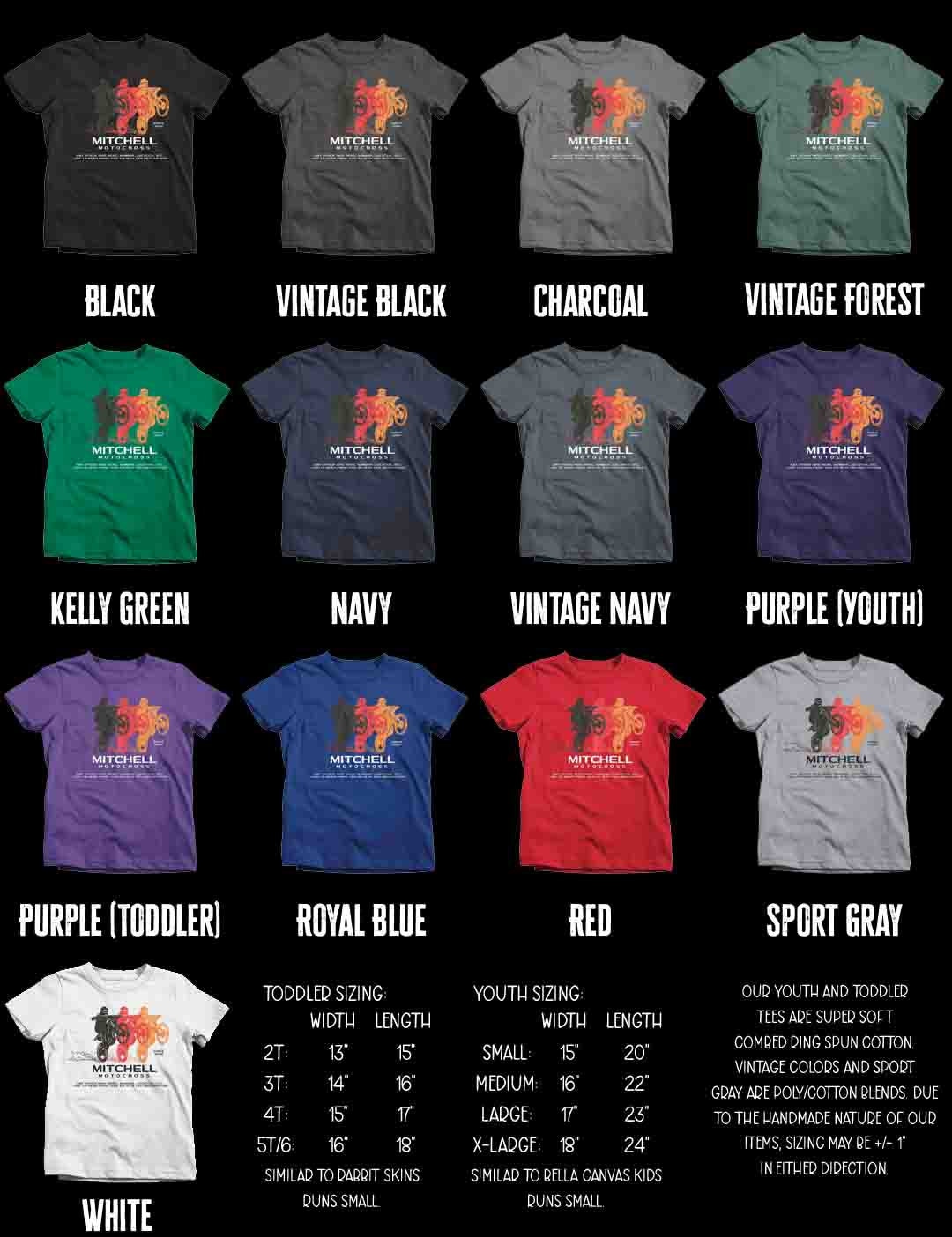 This is a great personalized shirt for anyone riding motocross or racing on the dirt track. Brand your name in this modern vintage custom t shirt. It features a vintage inspired graphic of a dirt bike doing a wheelie. It will be personalized with colors and text of your choice. You can purchase the rear print add-on (link below) to add additional text or image on the back. We print on super soft ring spun cotton. Includes cotton drawstring gift bag.