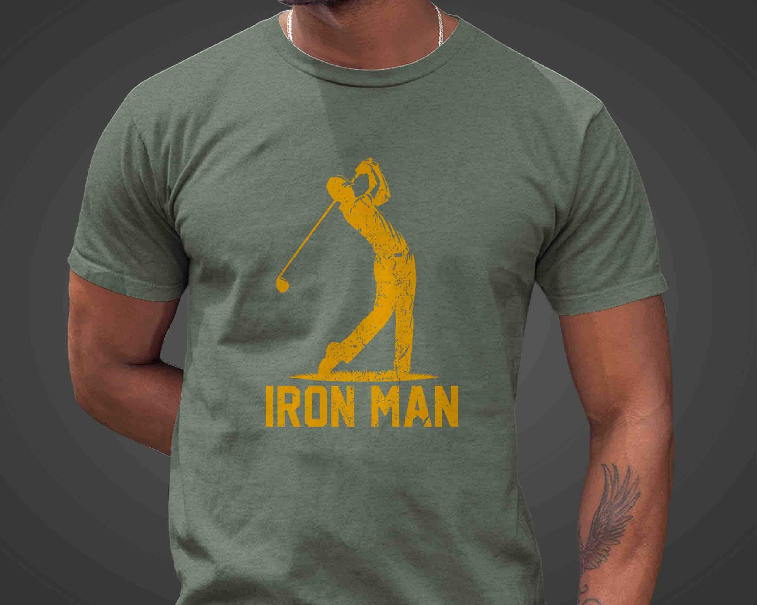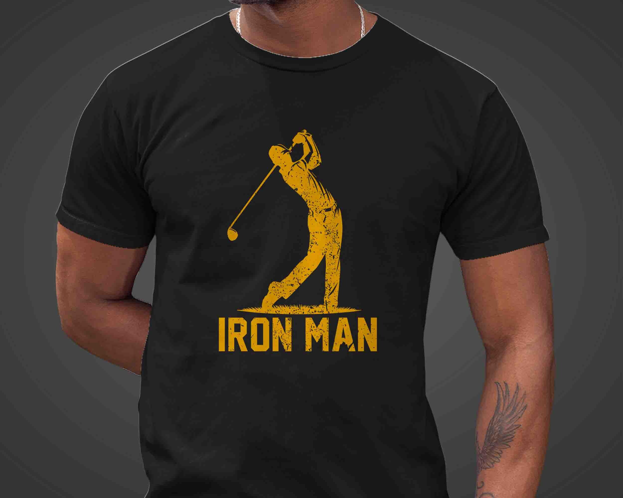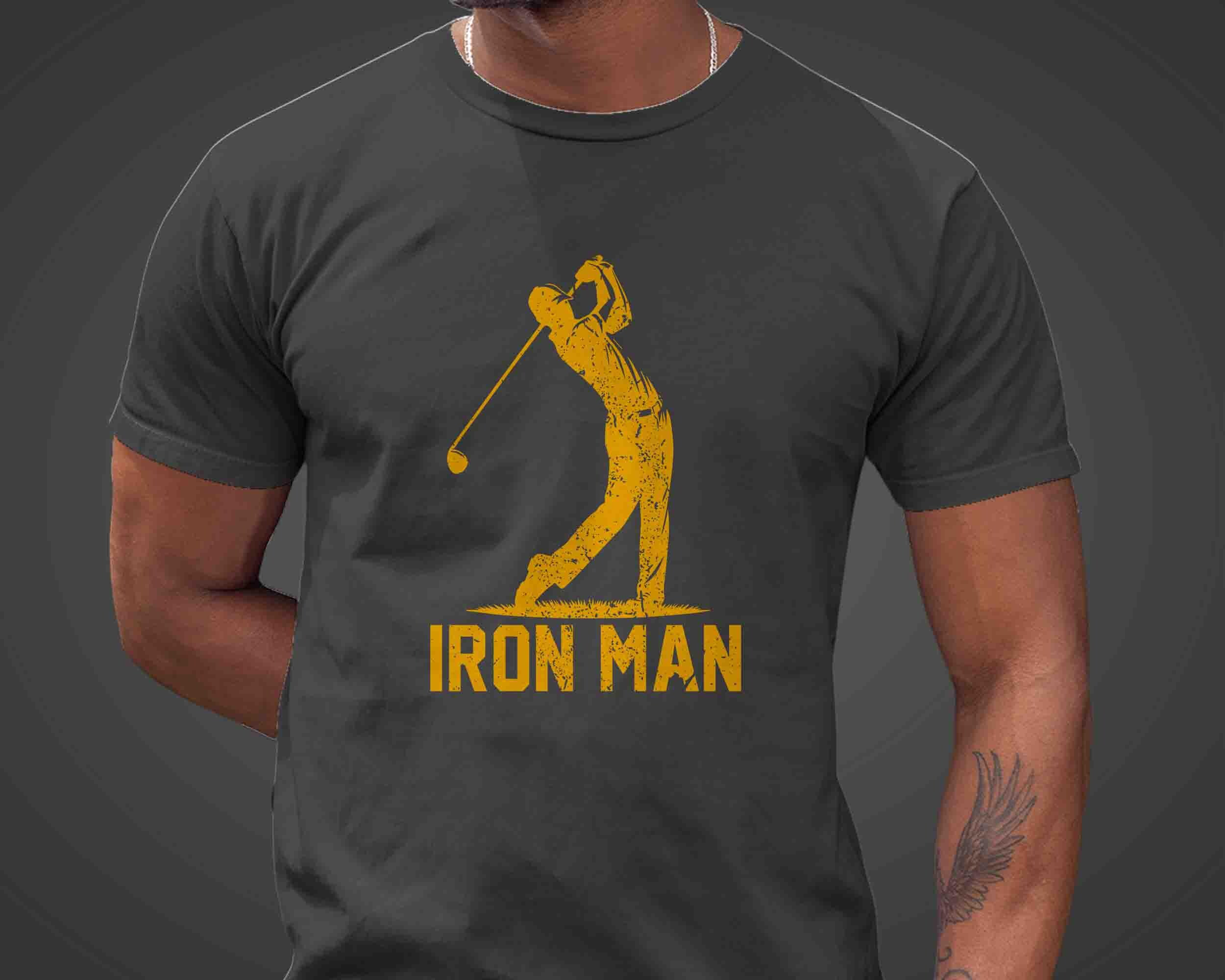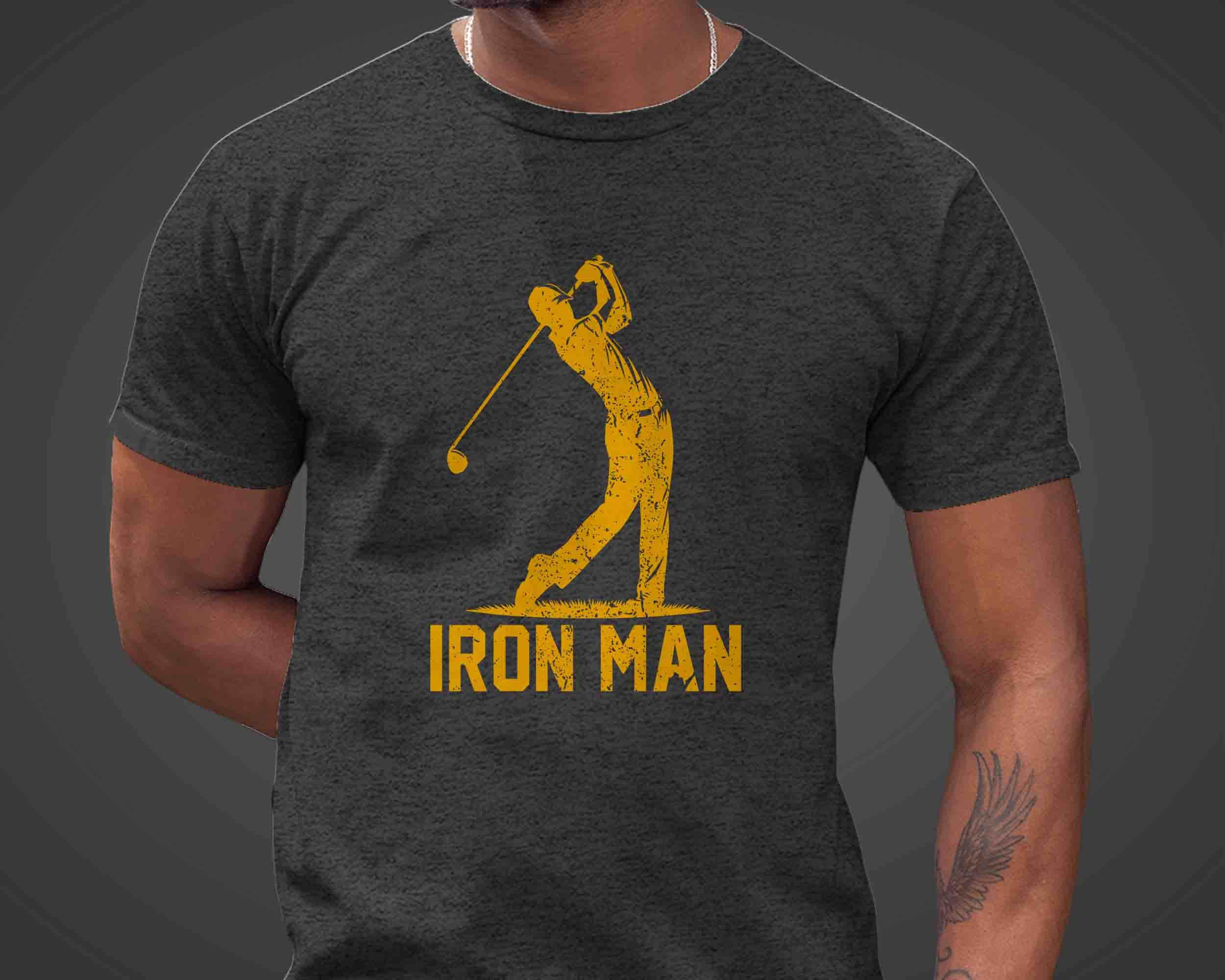 Men's Funny Golf TShirt Iron Man Shirt Tee Golfer Gift Idea Club Swing Golfing Hilarious Pun Word Play Unisex T Shirt For Men Man