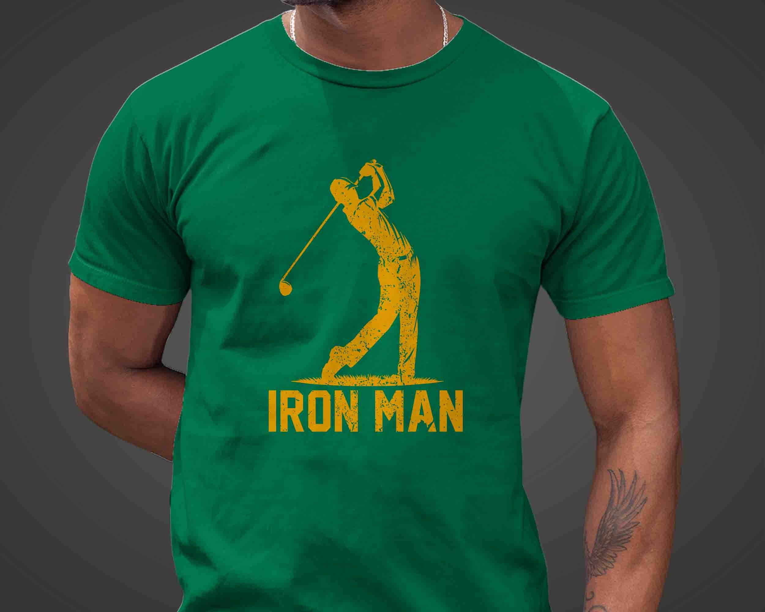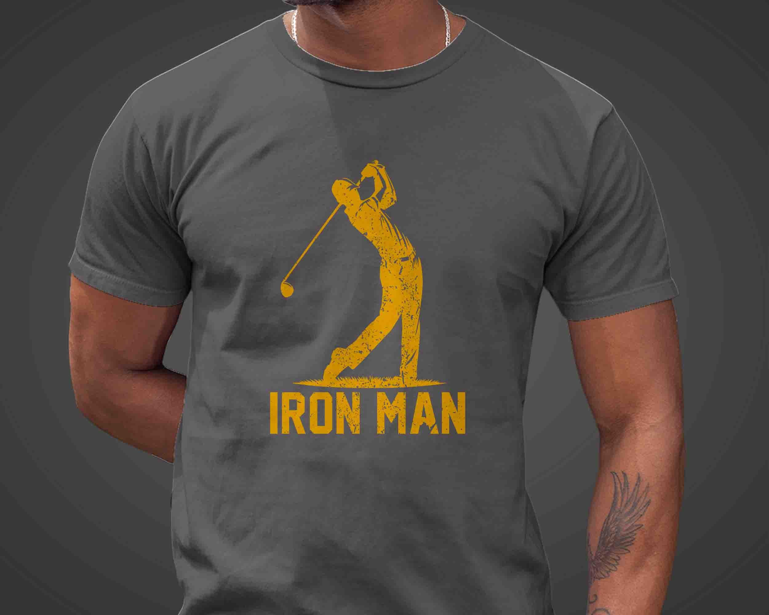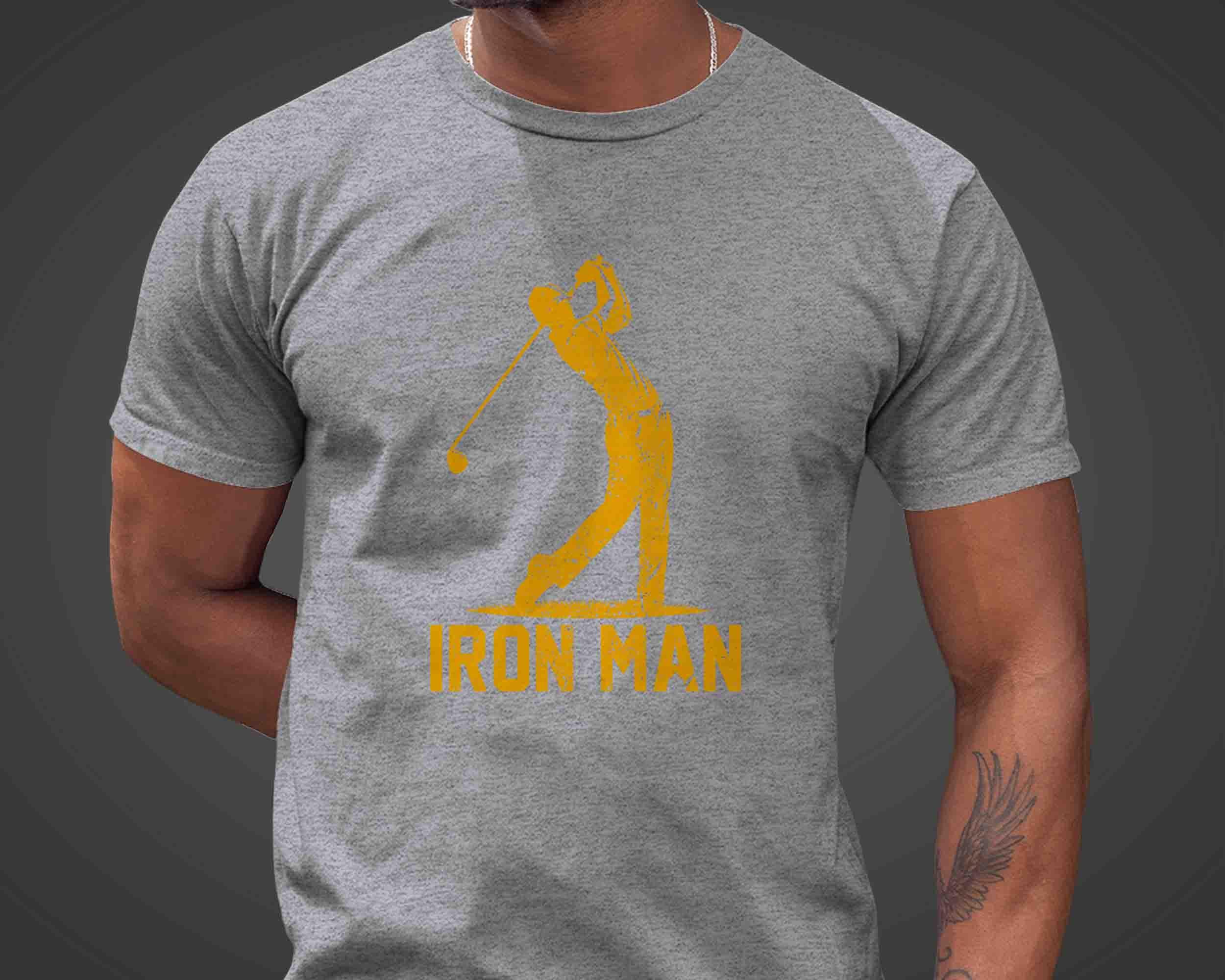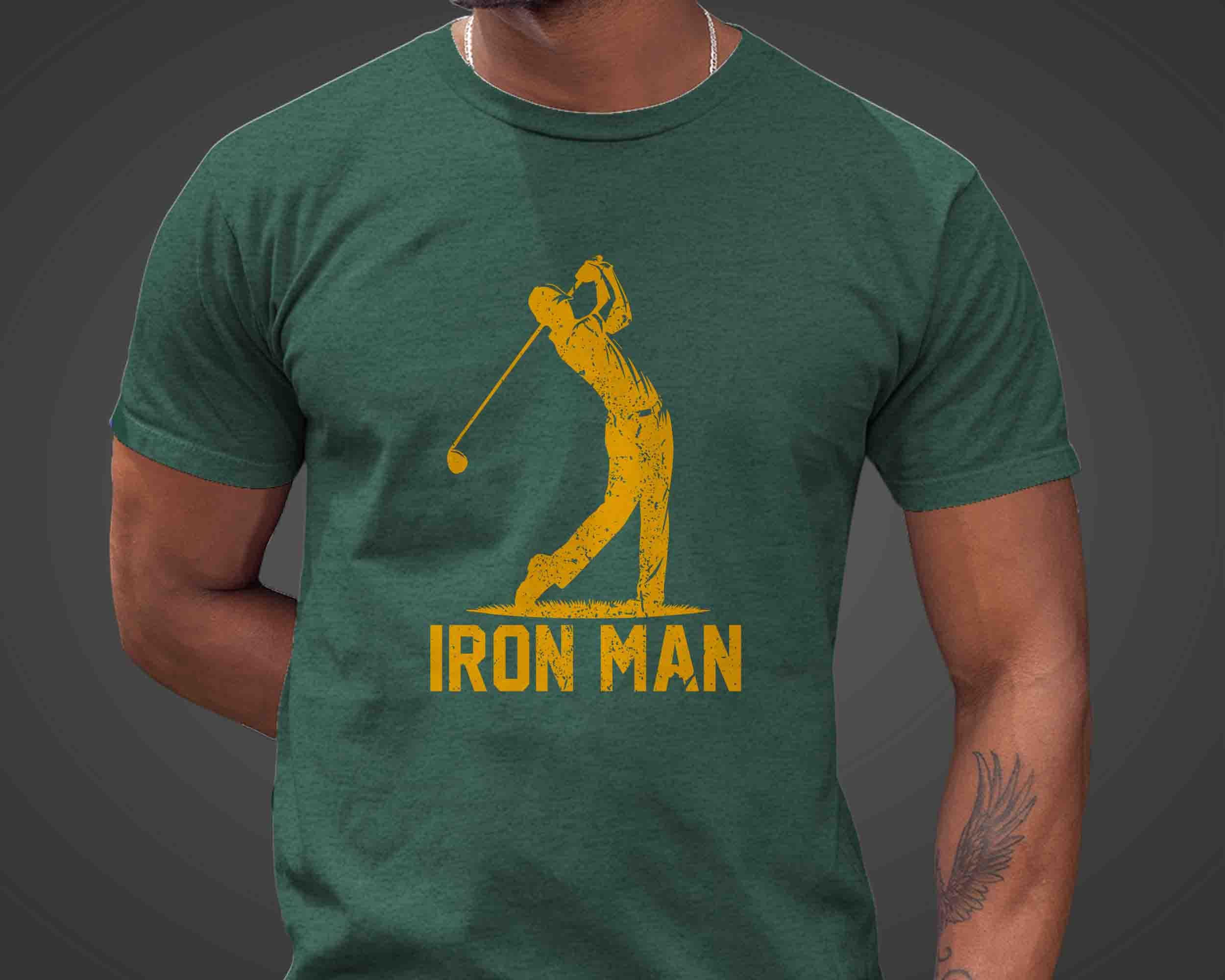 Men's Funny Golf TShirt Iron Man Shirt Tee Golfer Gift Idea Club Swing Golfing Hilarious Pun Word Play Unisex T Shirt For Men Man
