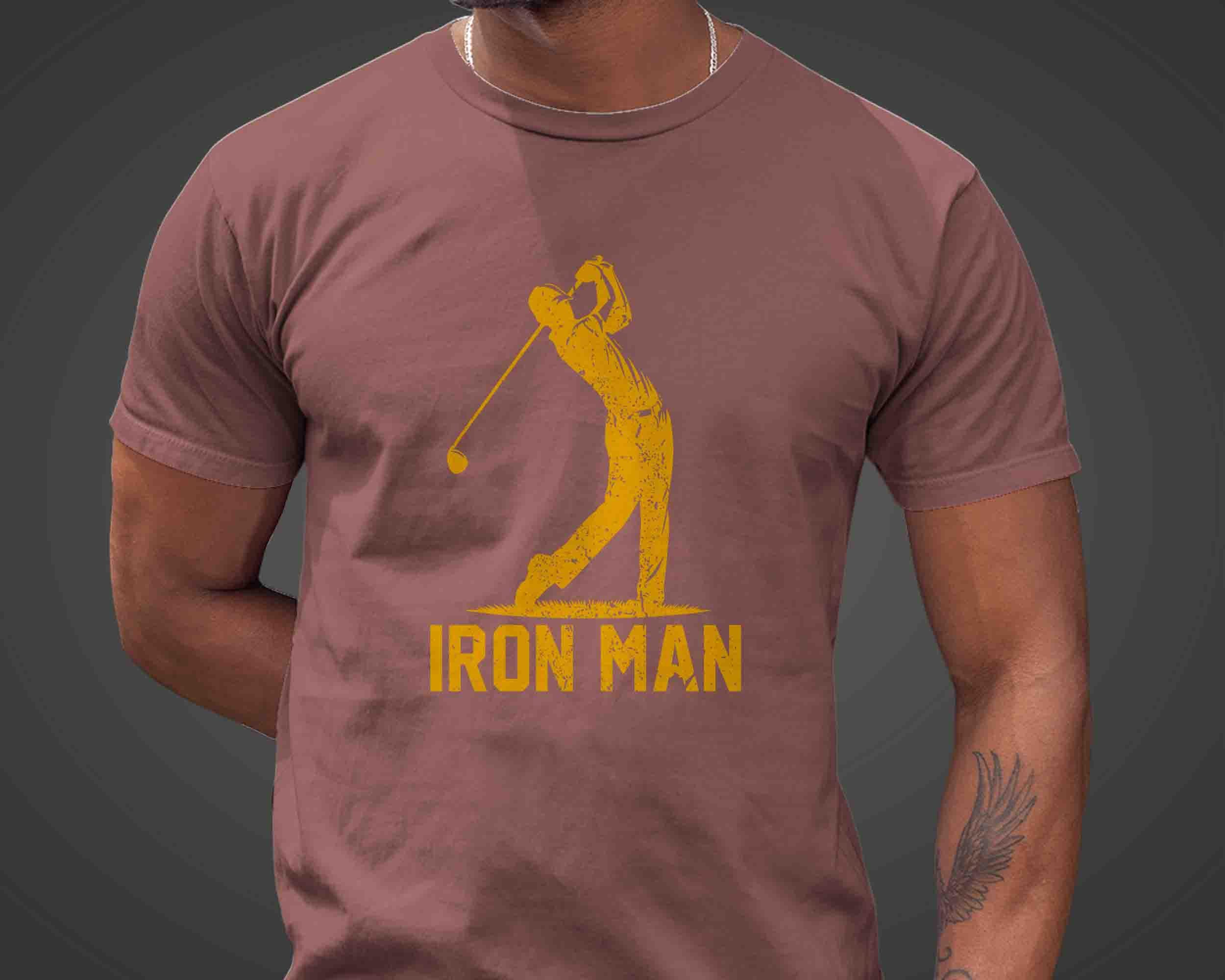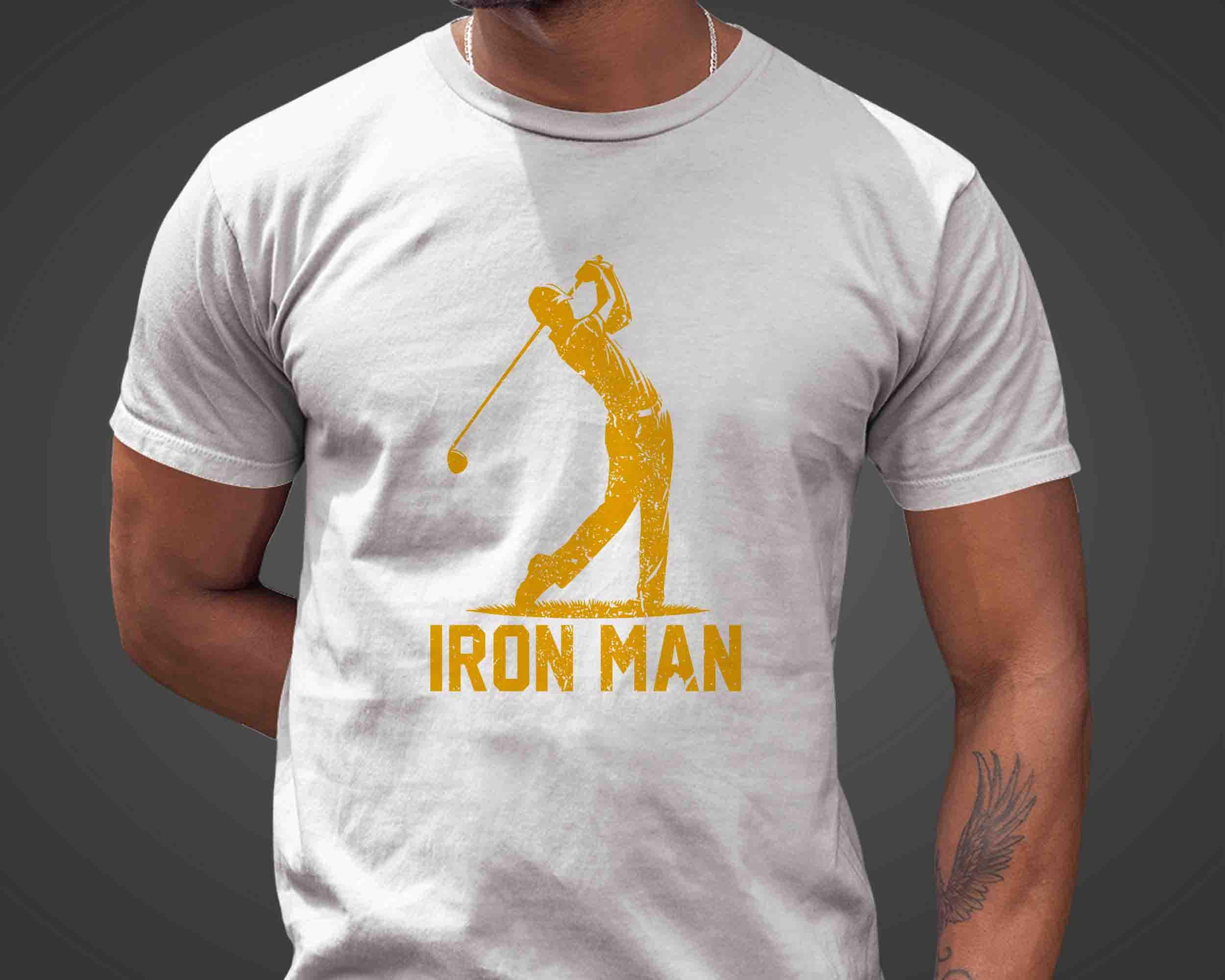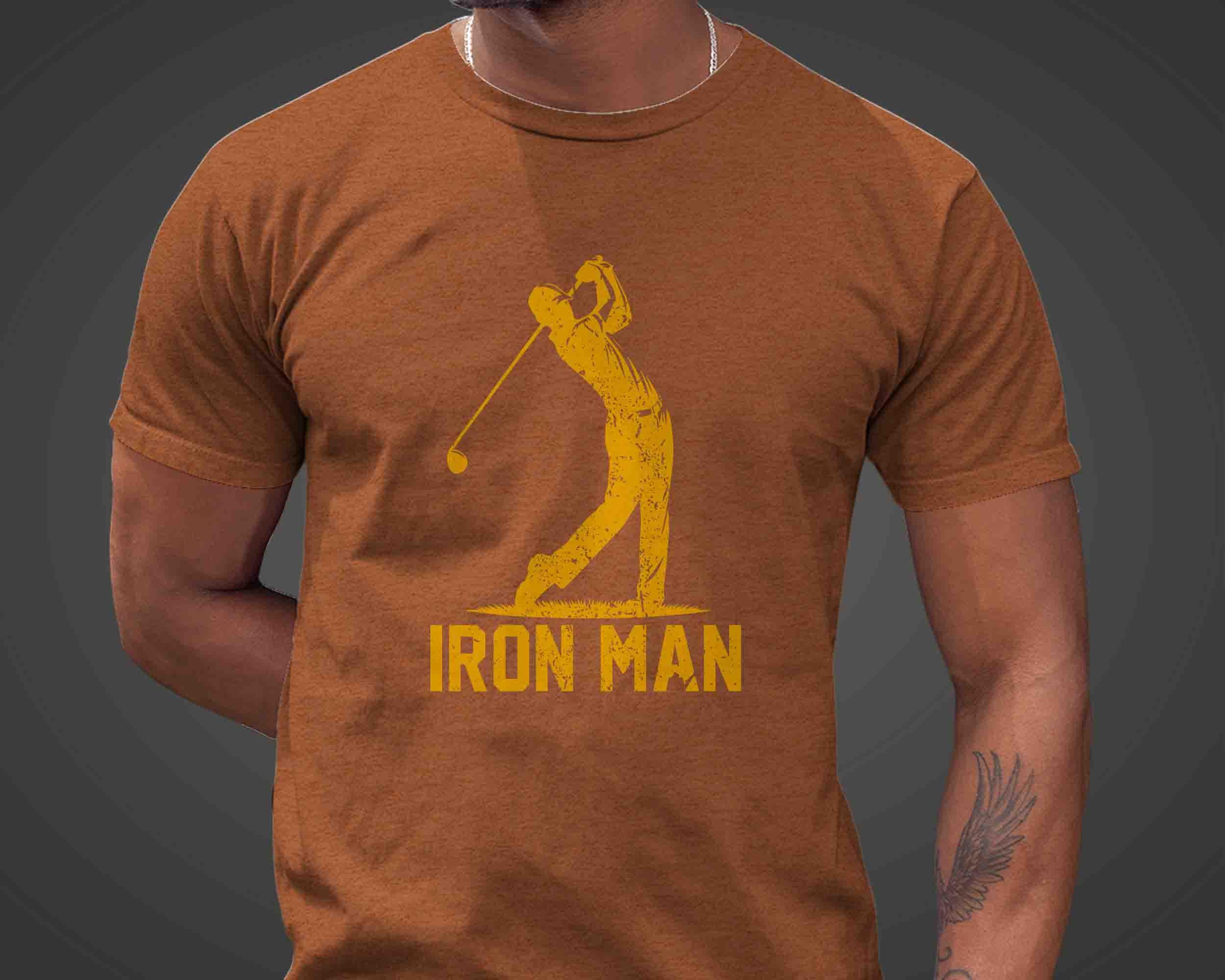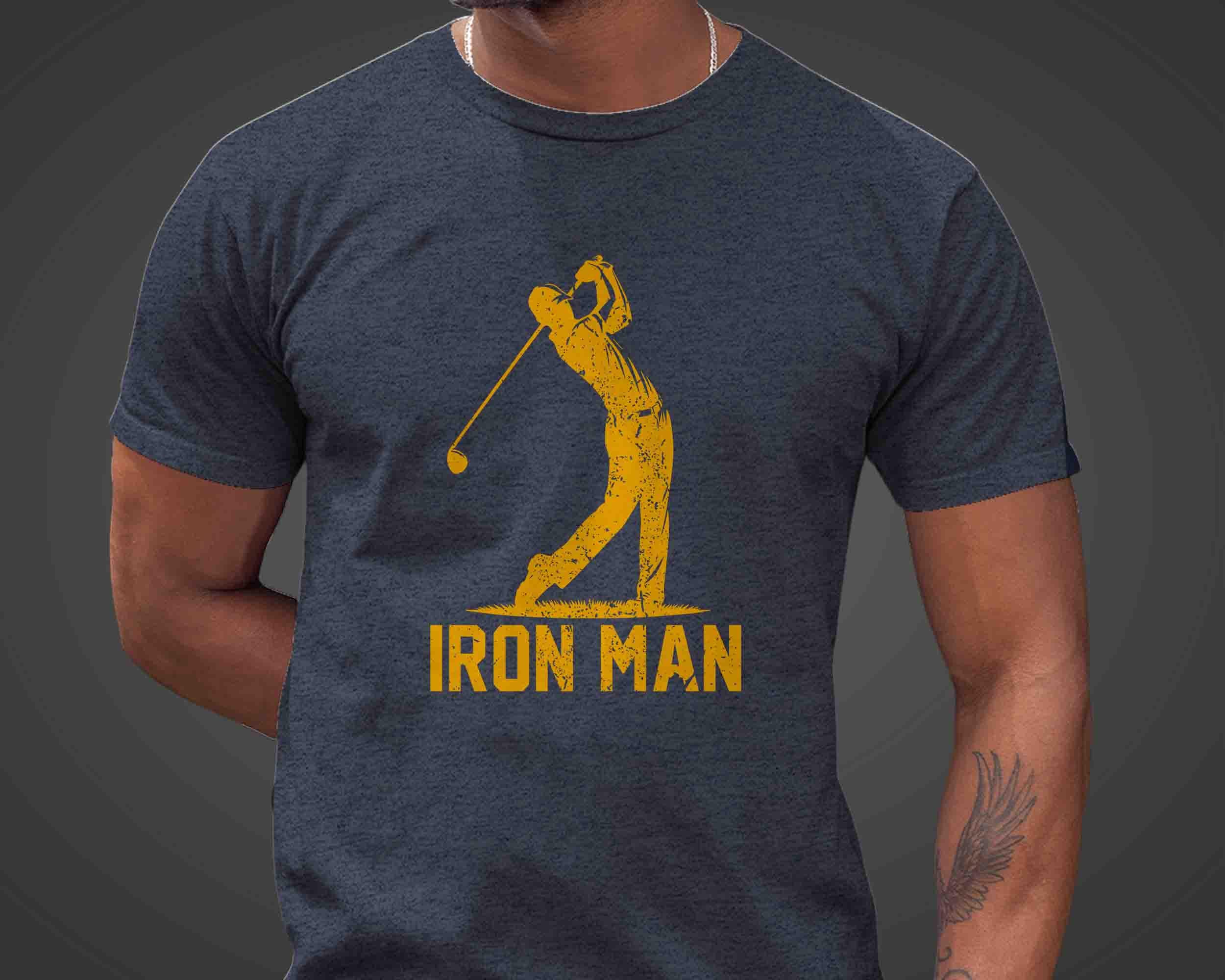 Men's Funny Golf TShirt Iron Man Shirt Tee Golfer Gift Idea Club Swing Golfing Hilarious Pun Word Play Unisex T Shirt For Men Man