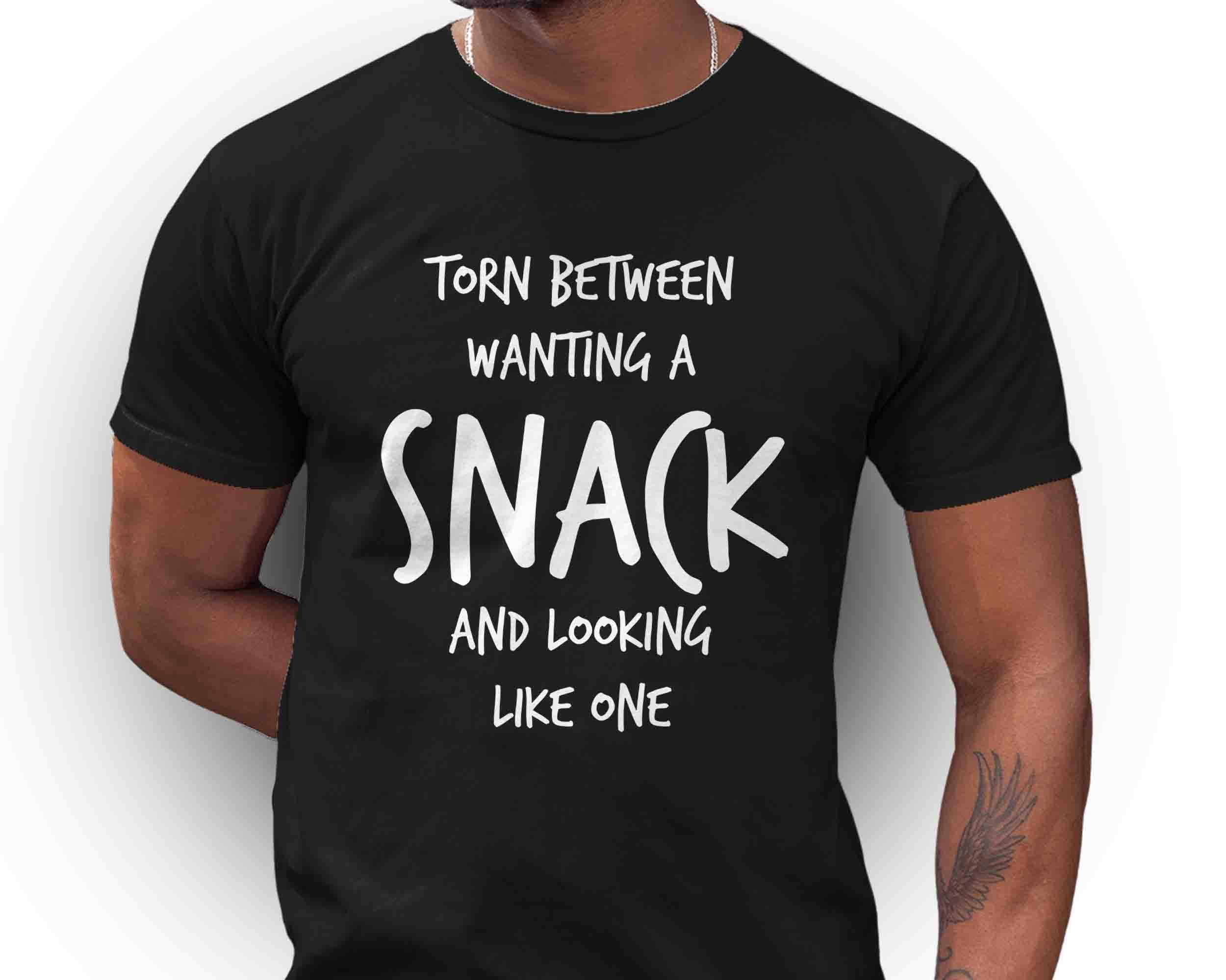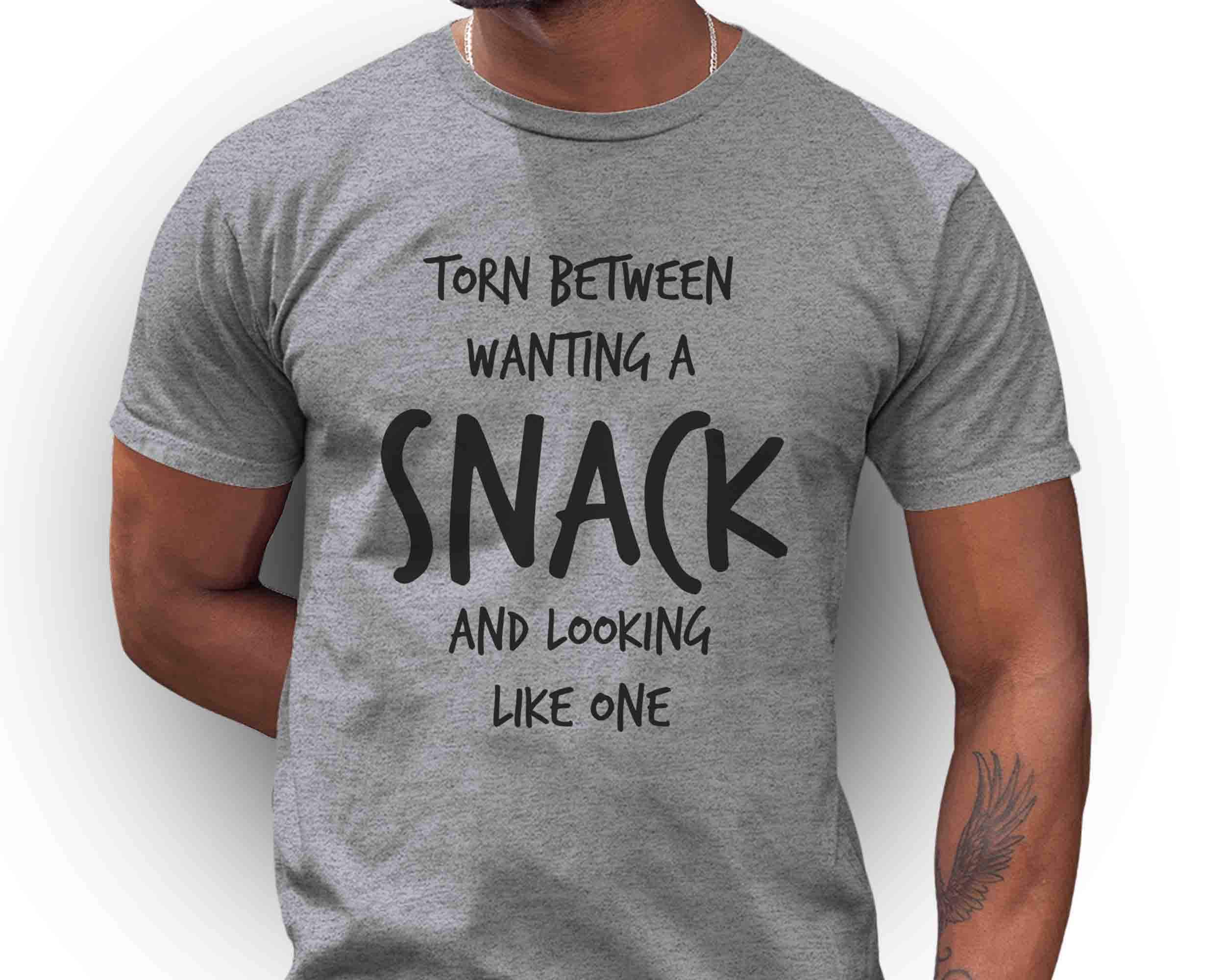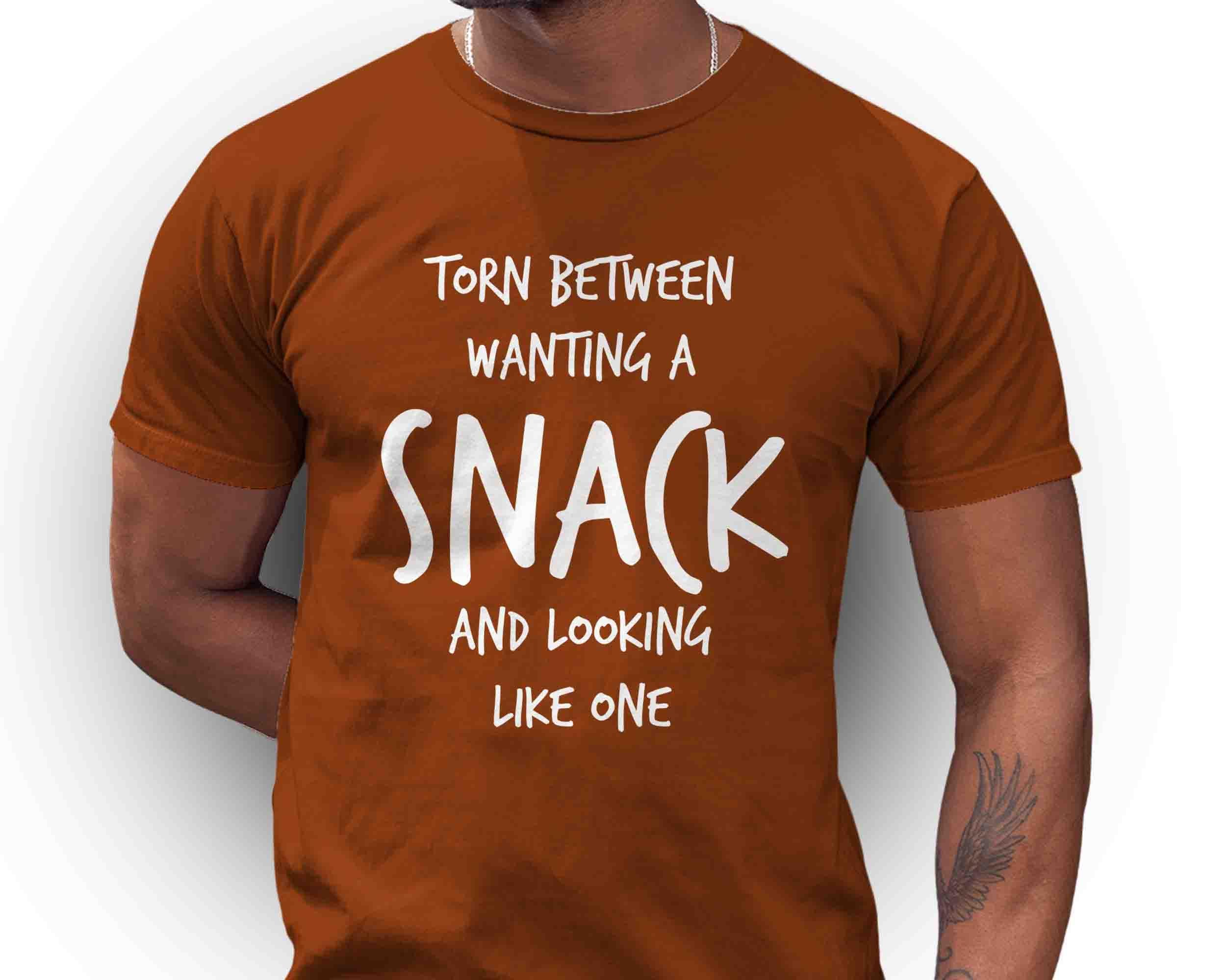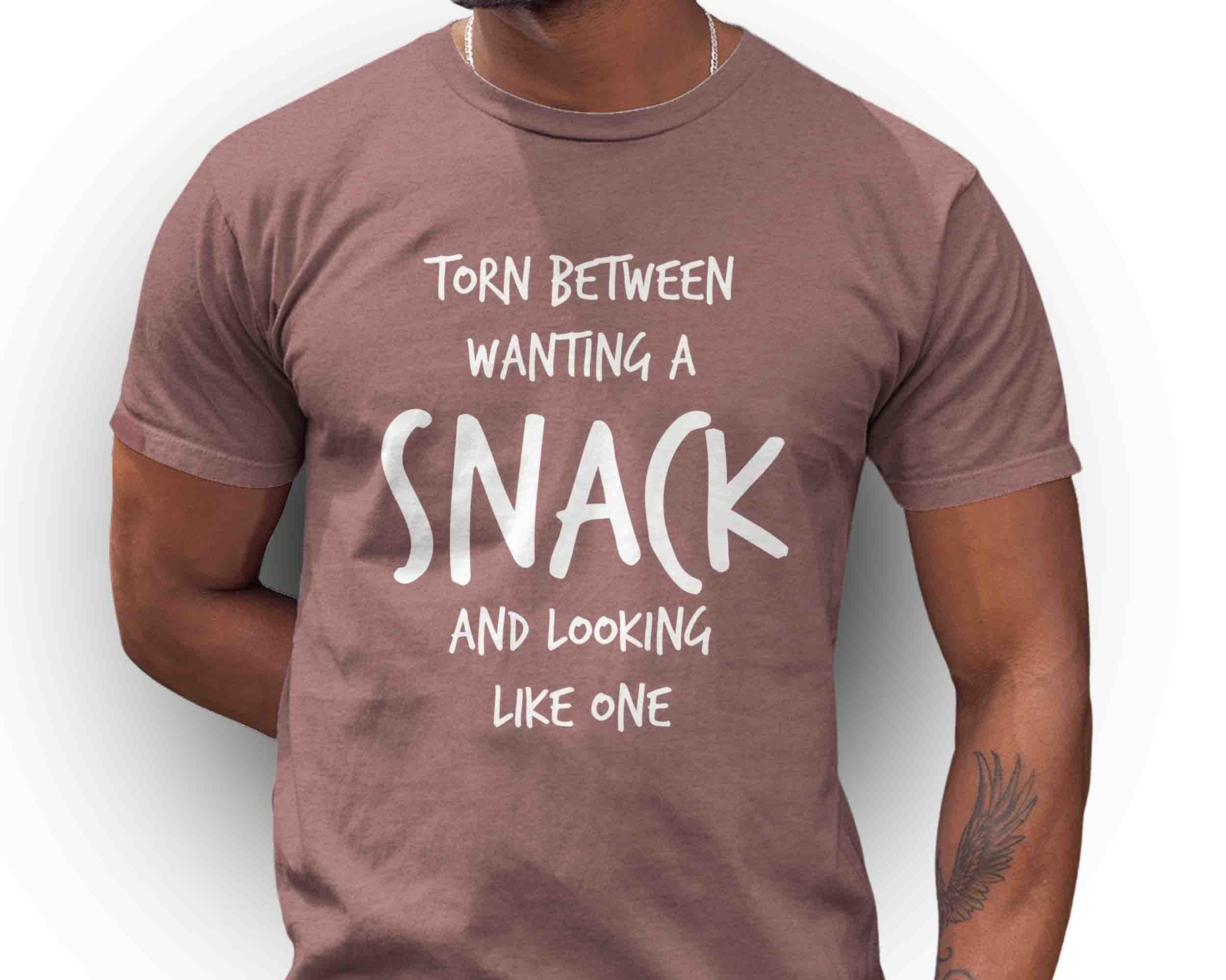 This funny tee is perfect for your next vacation or foodie event. Let everyone know you're torn between wanting a snack and looking like one.