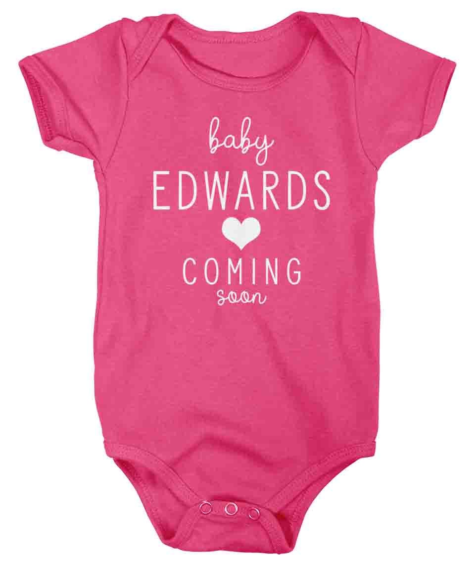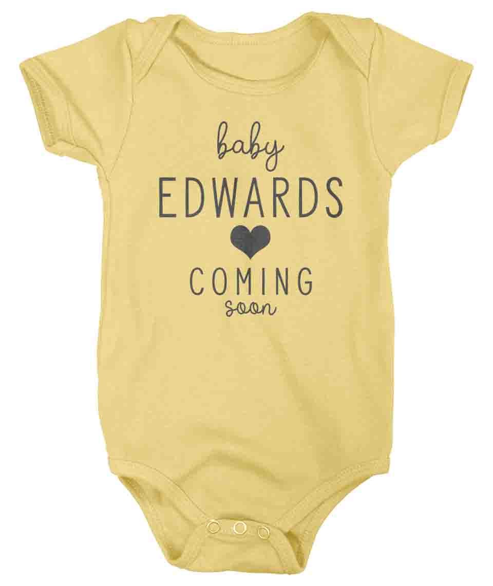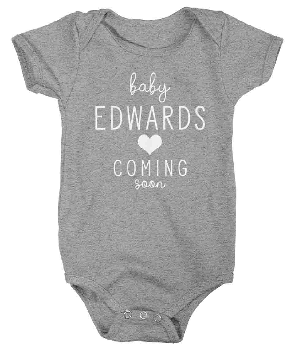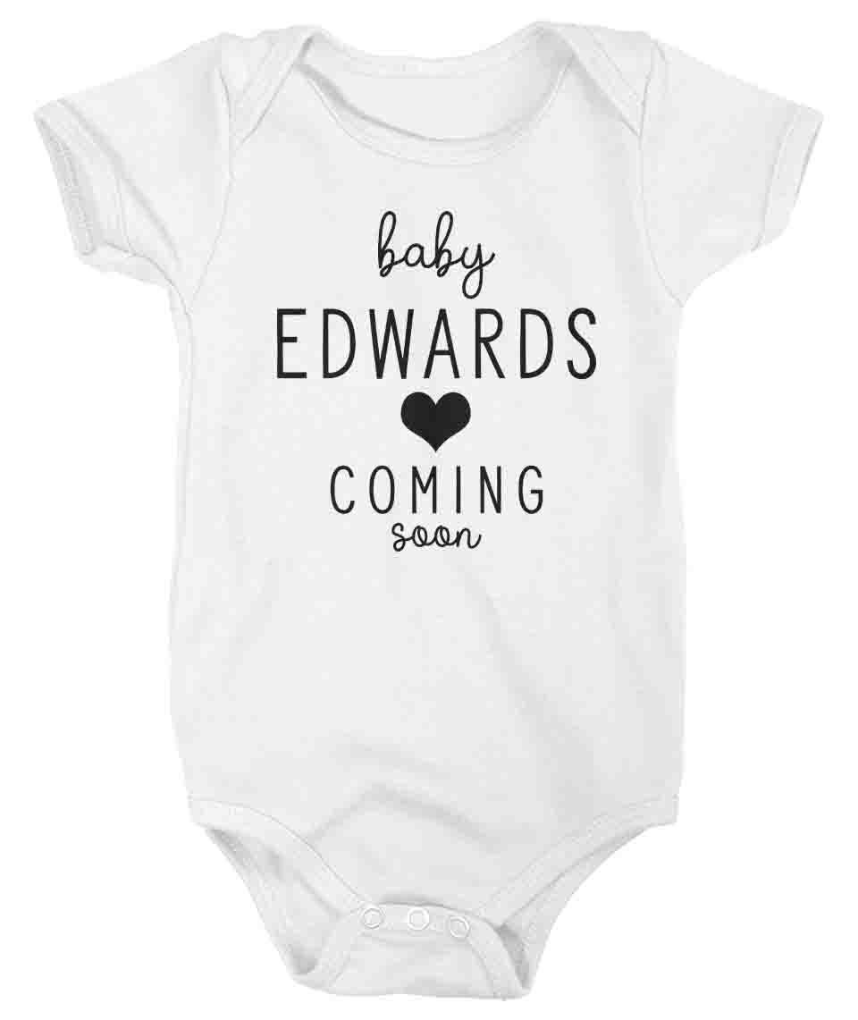 What a cute way to let friends and family know you're expecting! This cute baby snap suit is a great way to make your baby announcement or gender reveal.