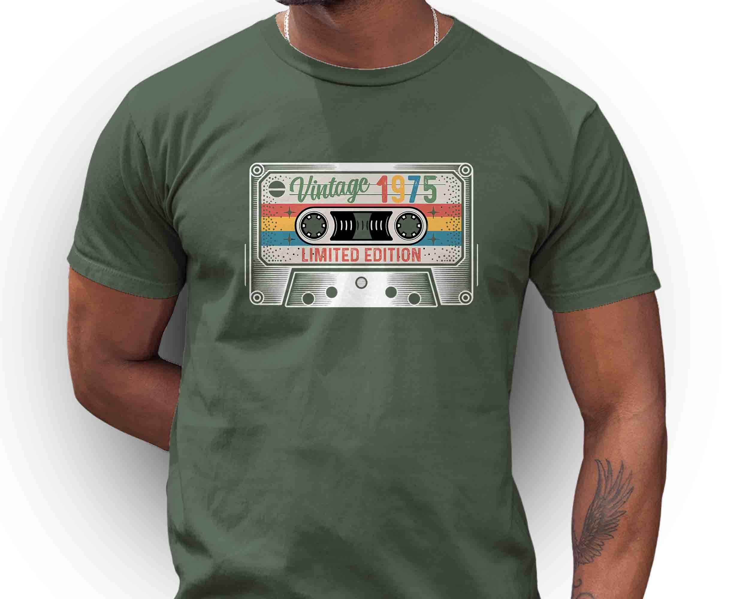 A great retro tee to let everyone know you're limited edition. This reads 'Vintage 1975'. A great birthday shirt for anyone turning 50 in 2025.