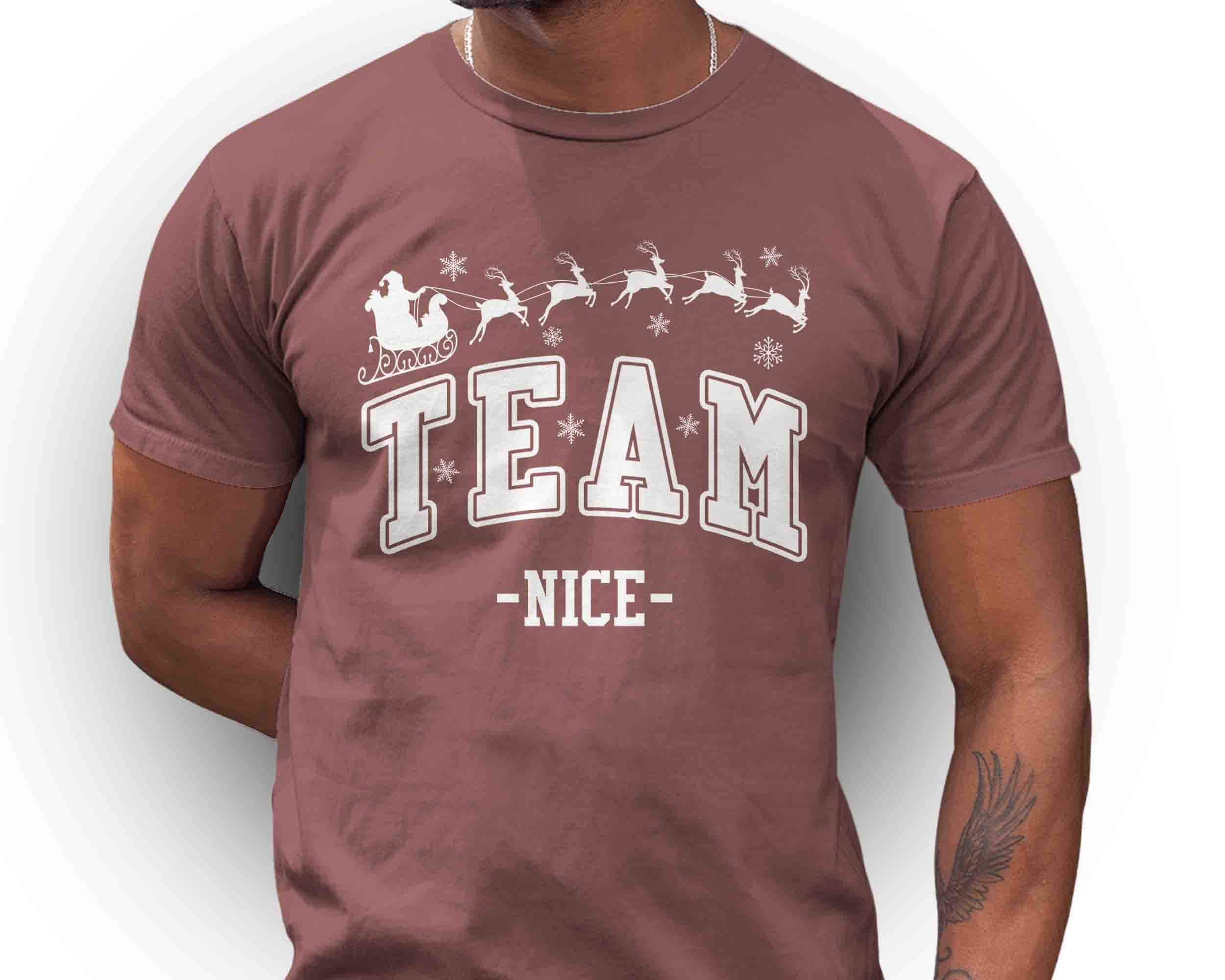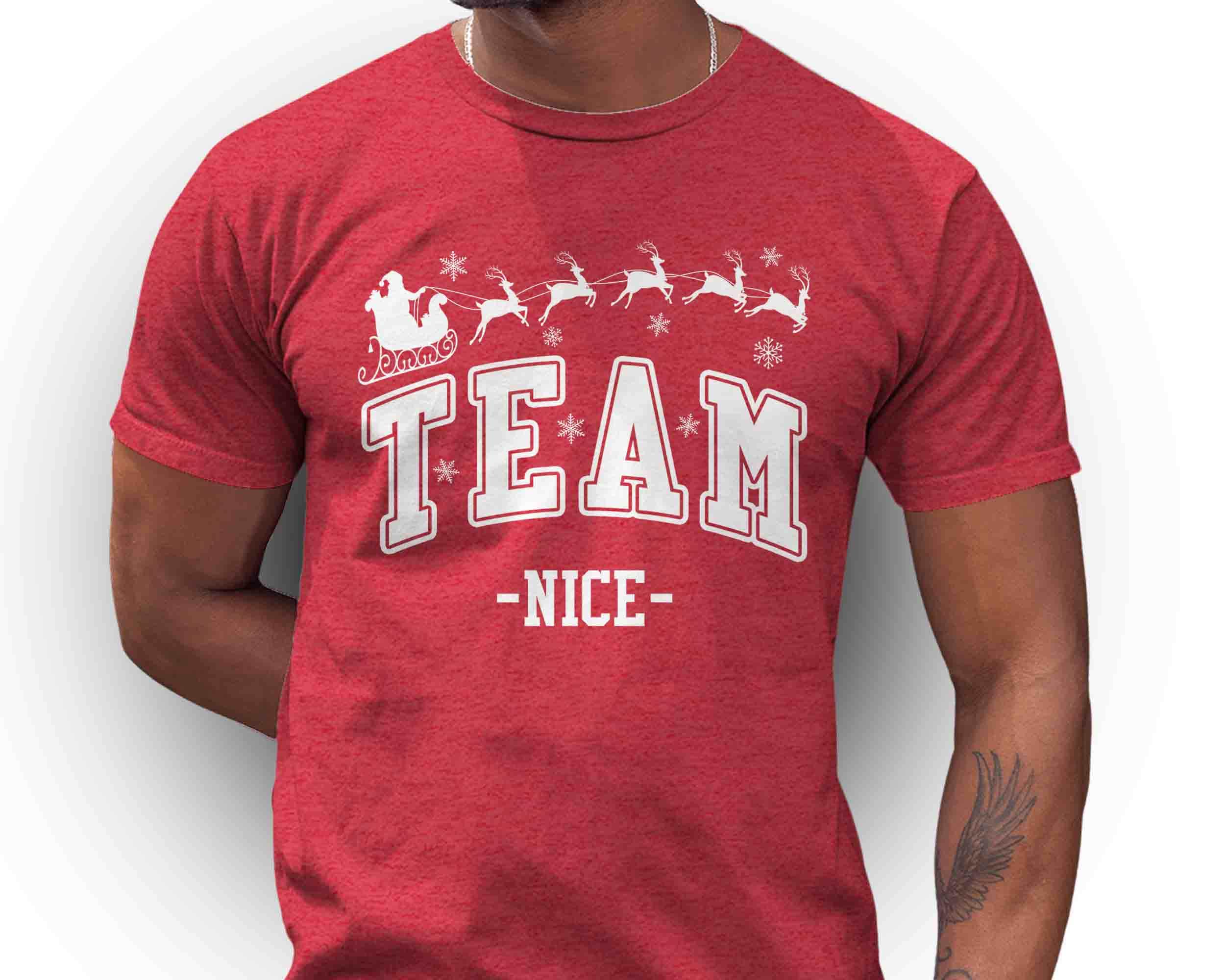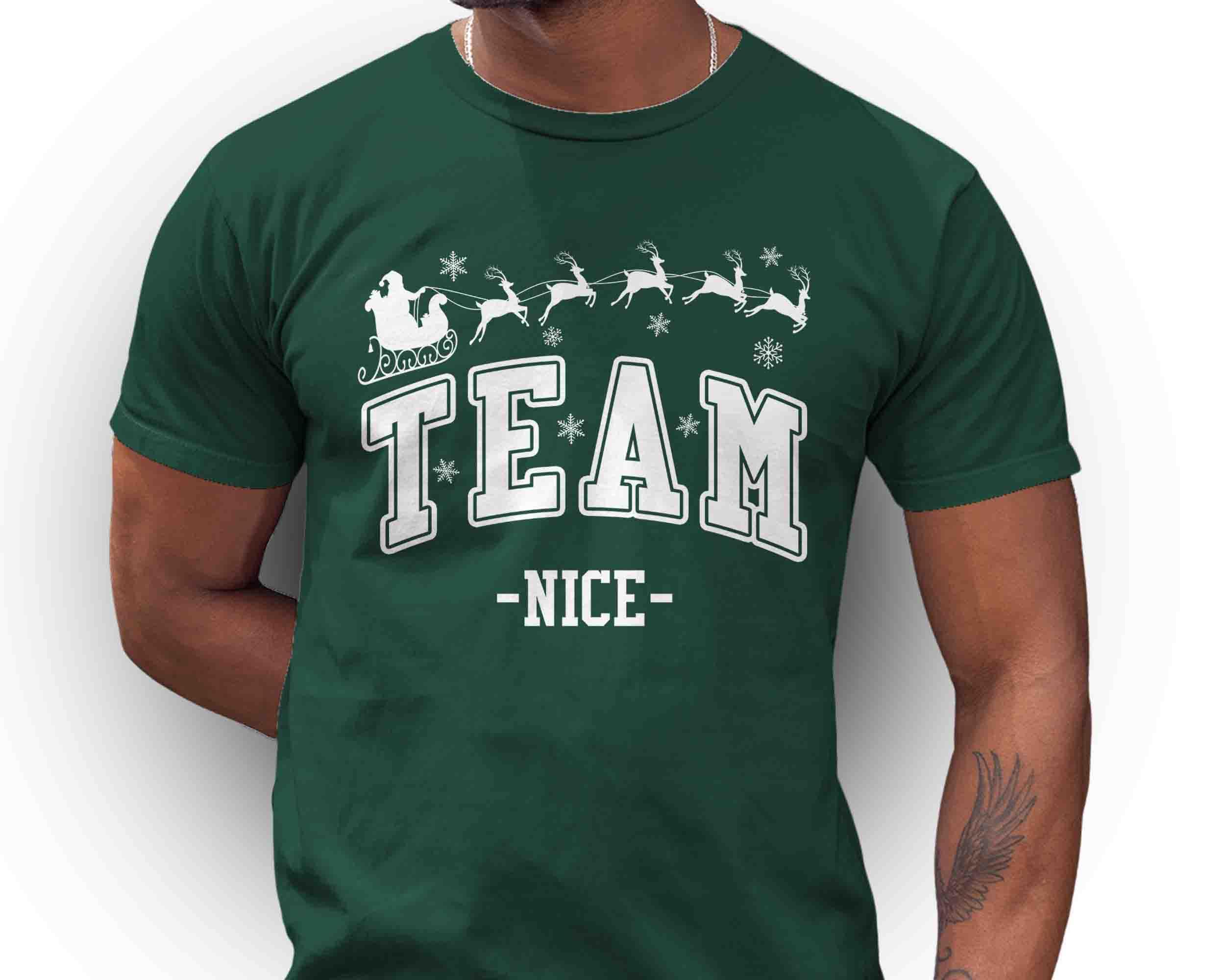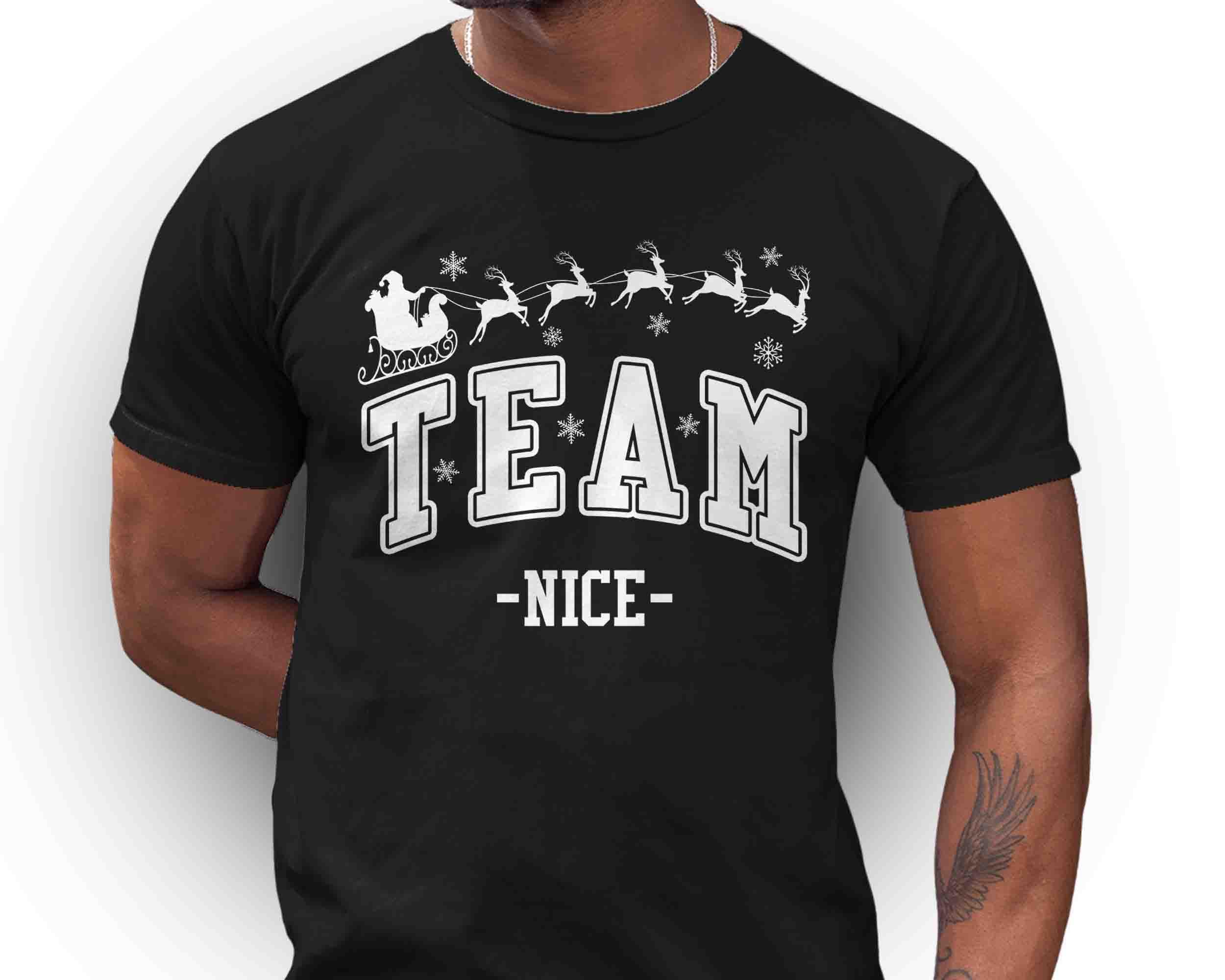 Team Nice Christmas Shirt | Funny Holiday T-Shirt | Santa Sleigh Reindeer Tee | Family Christmas Party Shirt | Matching Holiday Outfit