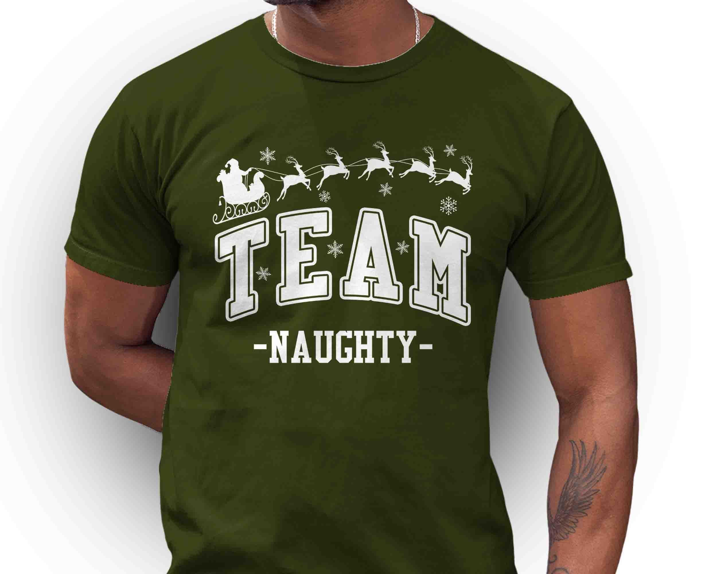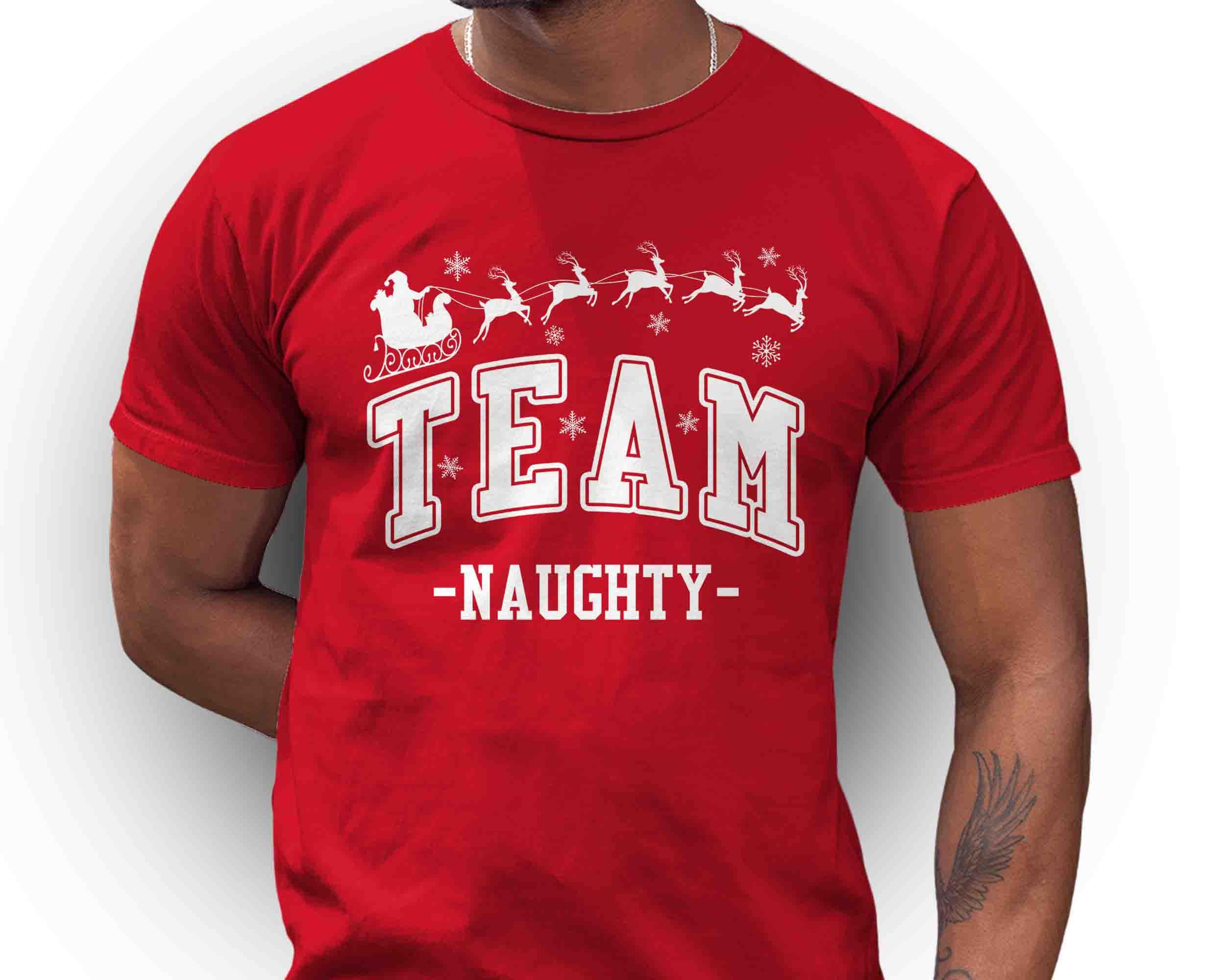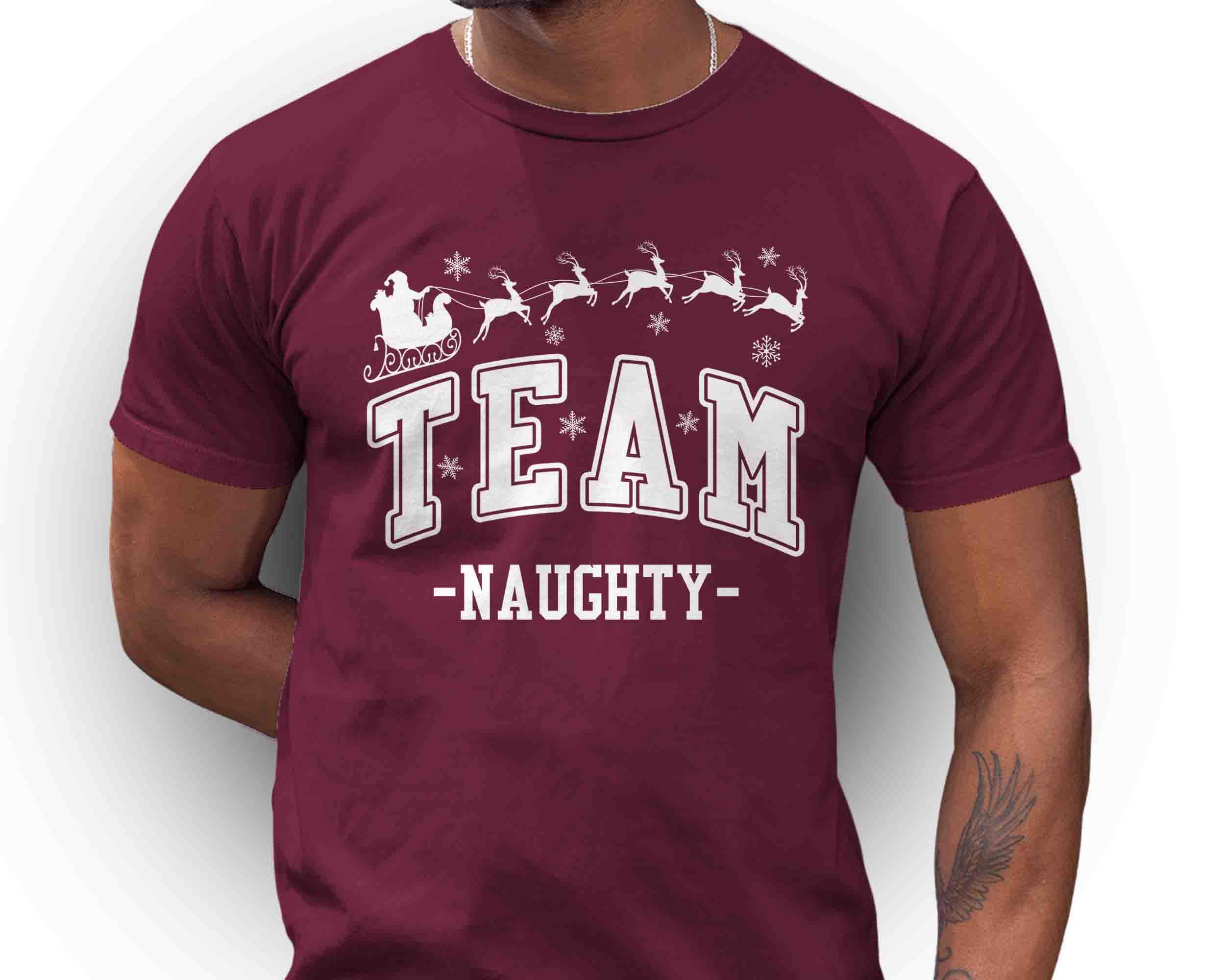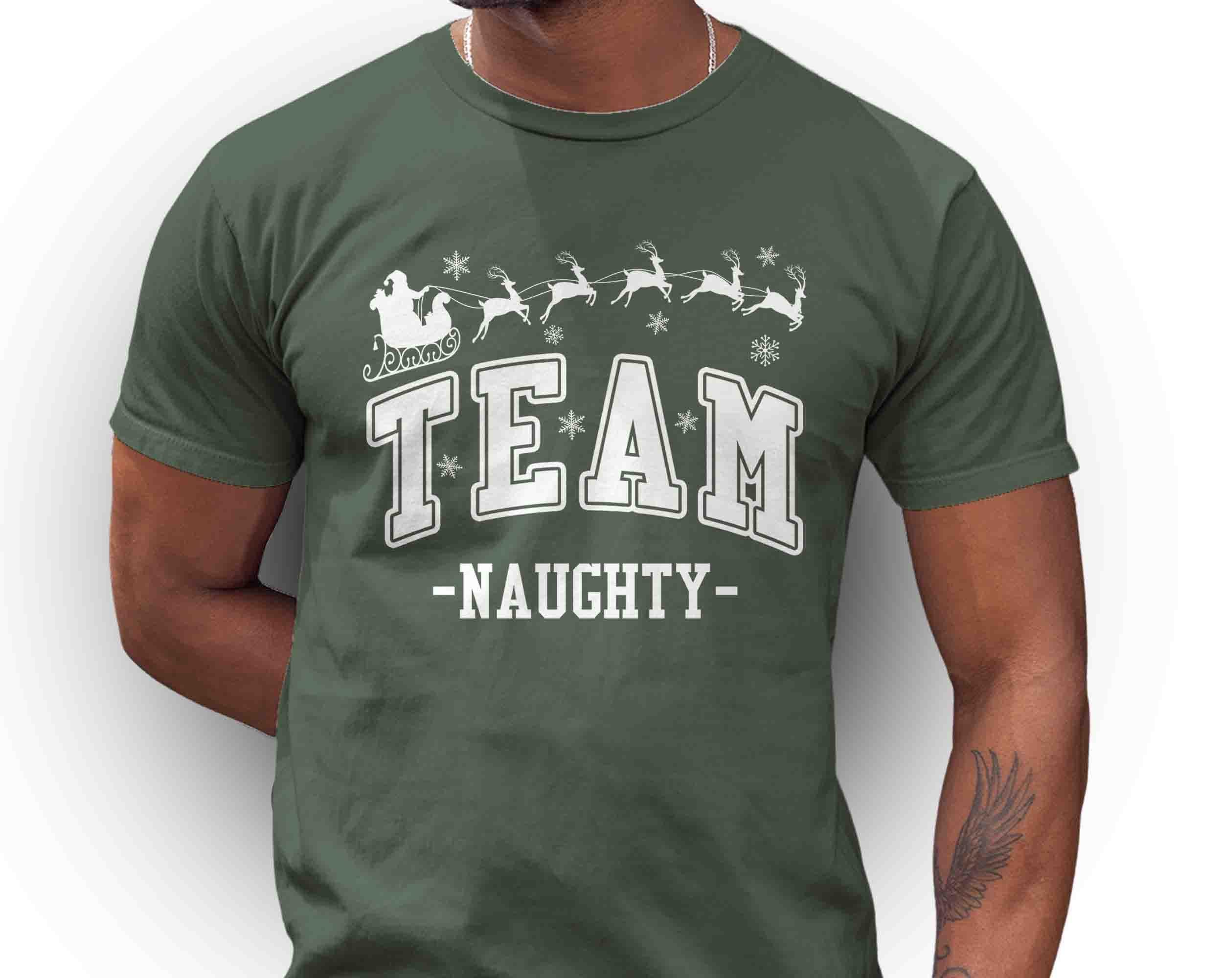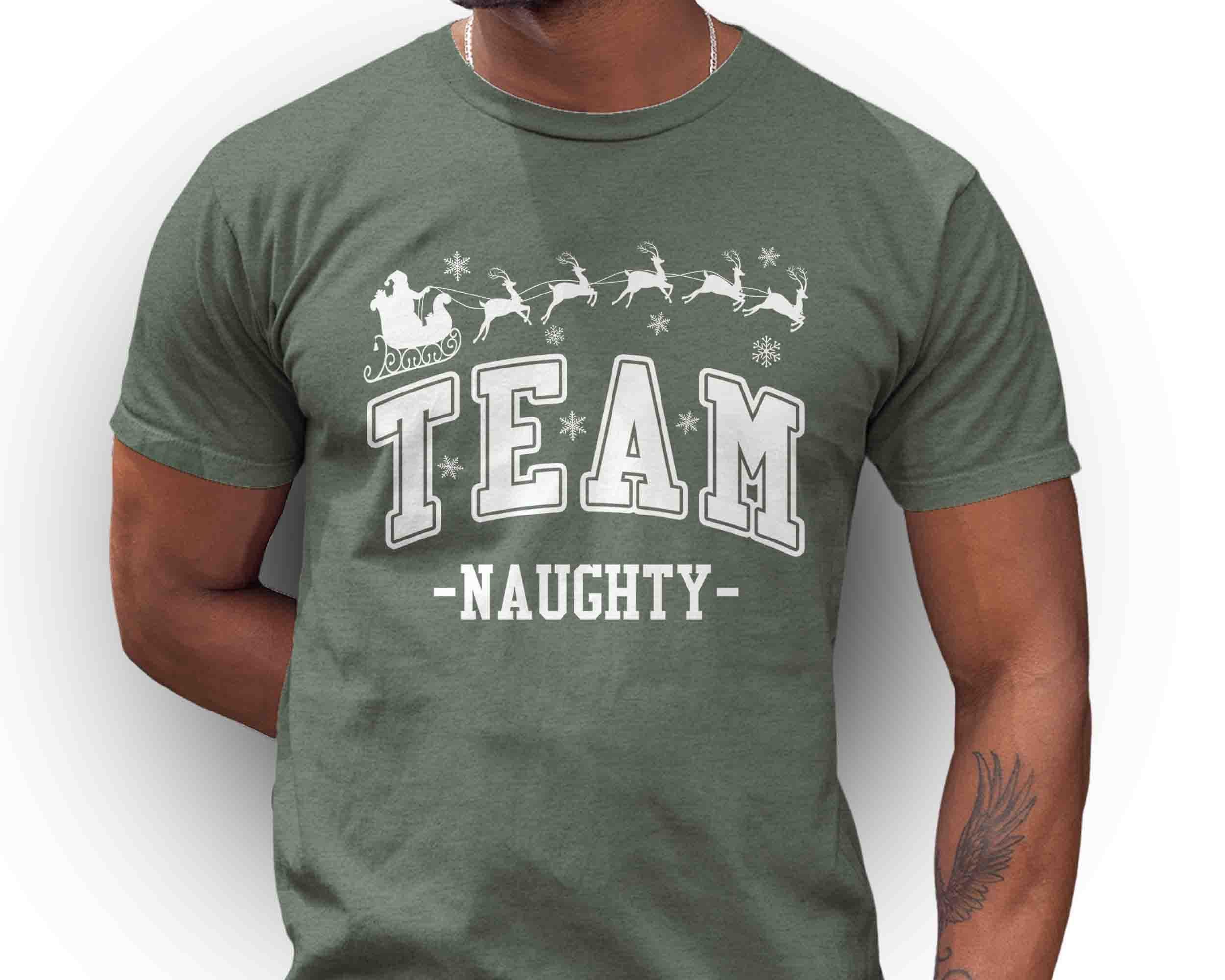 Team Naughty Christmas Shirt | Funny Holiday T-Shirt | Santa Sleigh Reindeer Tee | Family Christmas Party Shirt | Matching Holiday Outfit