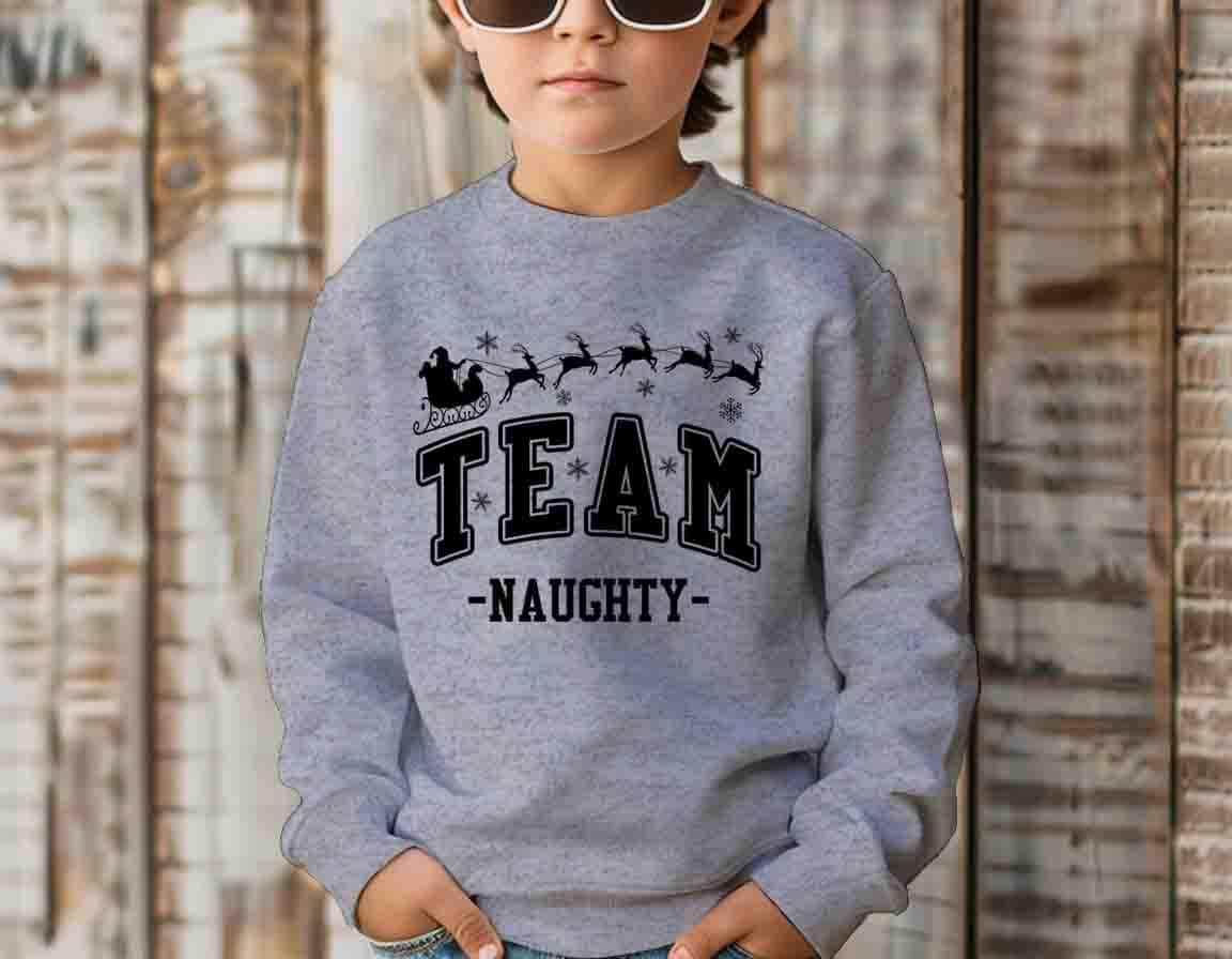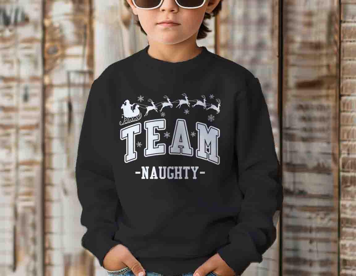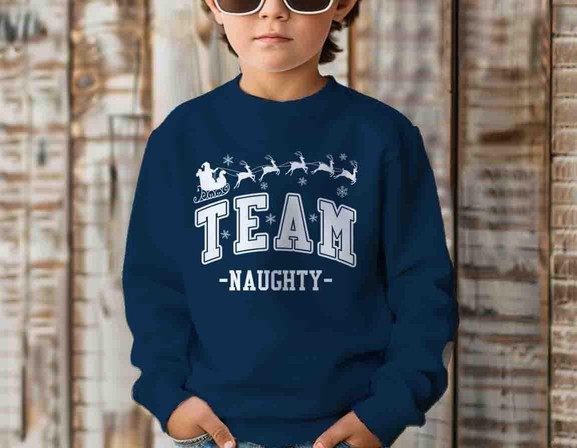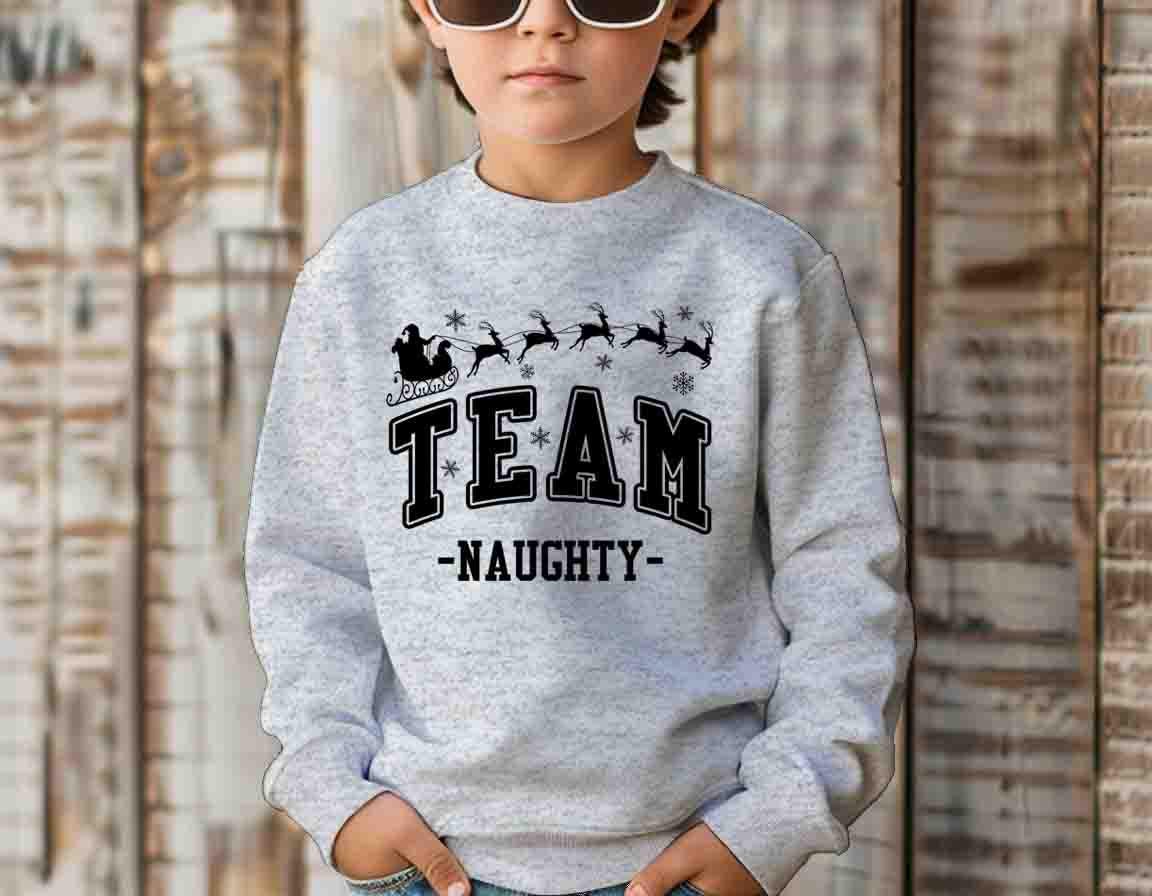 Kids Team Naughty Christmas Sweatshirt | Funny Holiday Crewneck | Group Matching Pajamas | Family Christmas Party | Matching Holiday Outfit