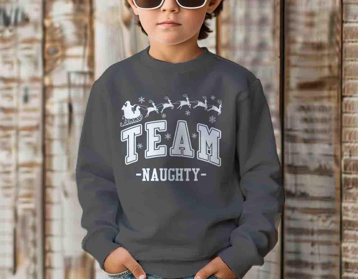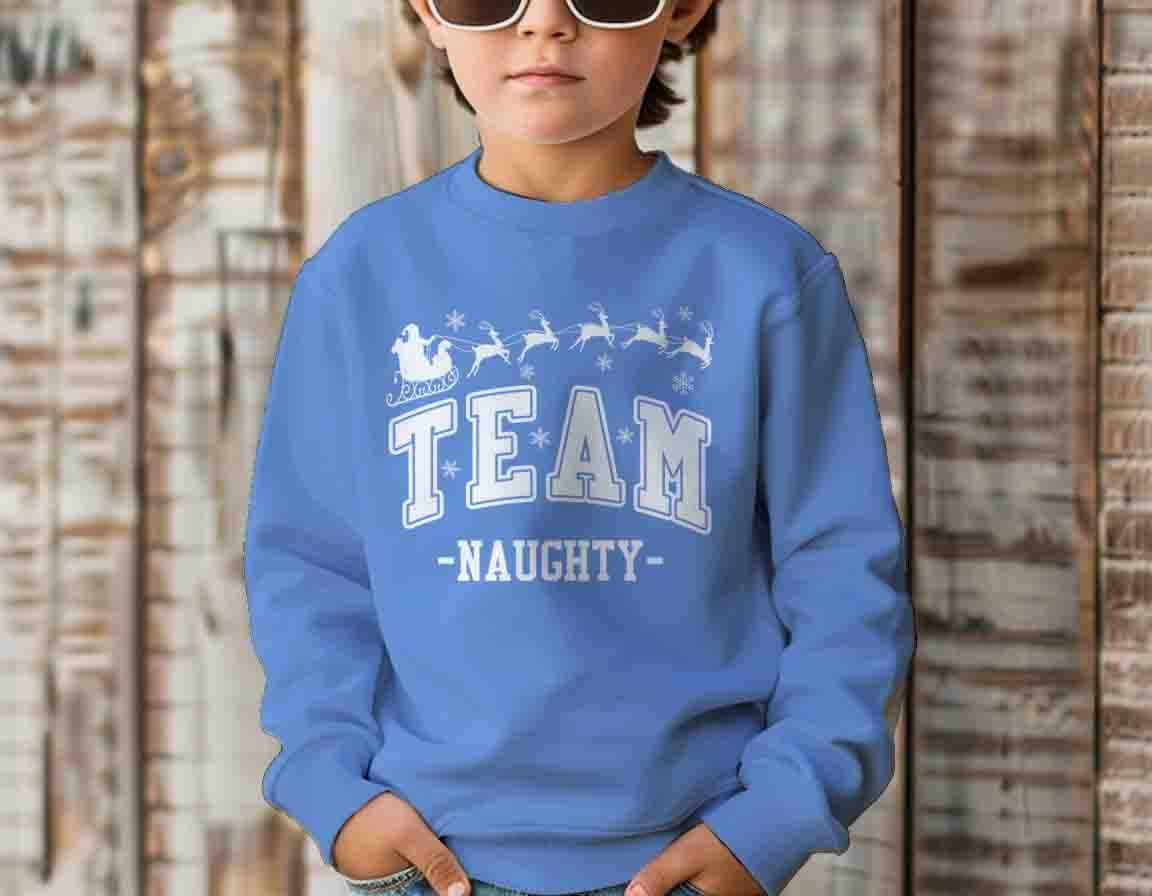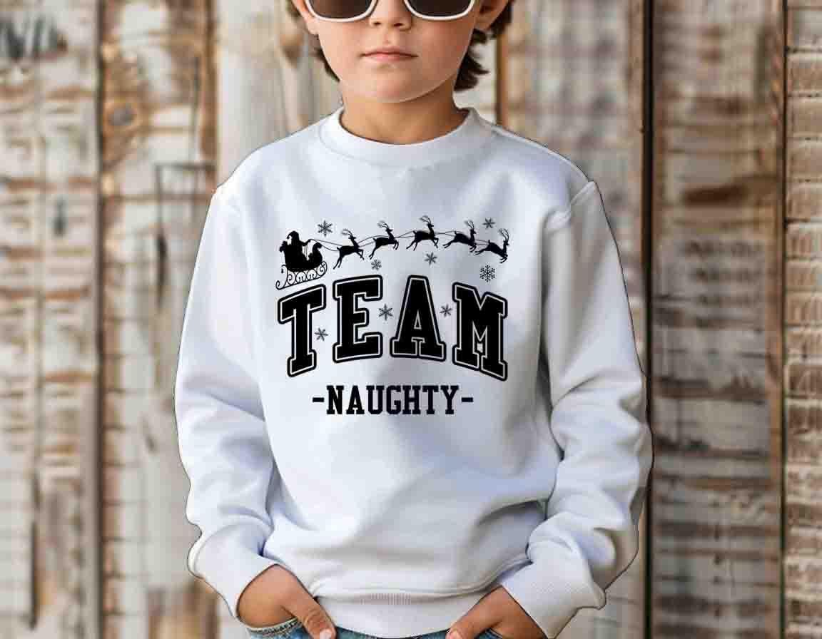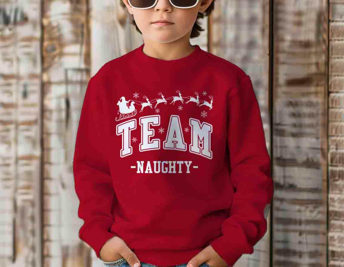 Kids Team Naughty Christmas Sweatshirt | Funny Holiday Crewneck | Group Matching Pajamas | Family Christmas Party | Matching Holiday Outfit