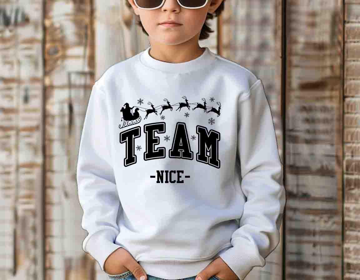 🎅 Design: “TEAM NICE” with Santa’s sleigh and reindeer