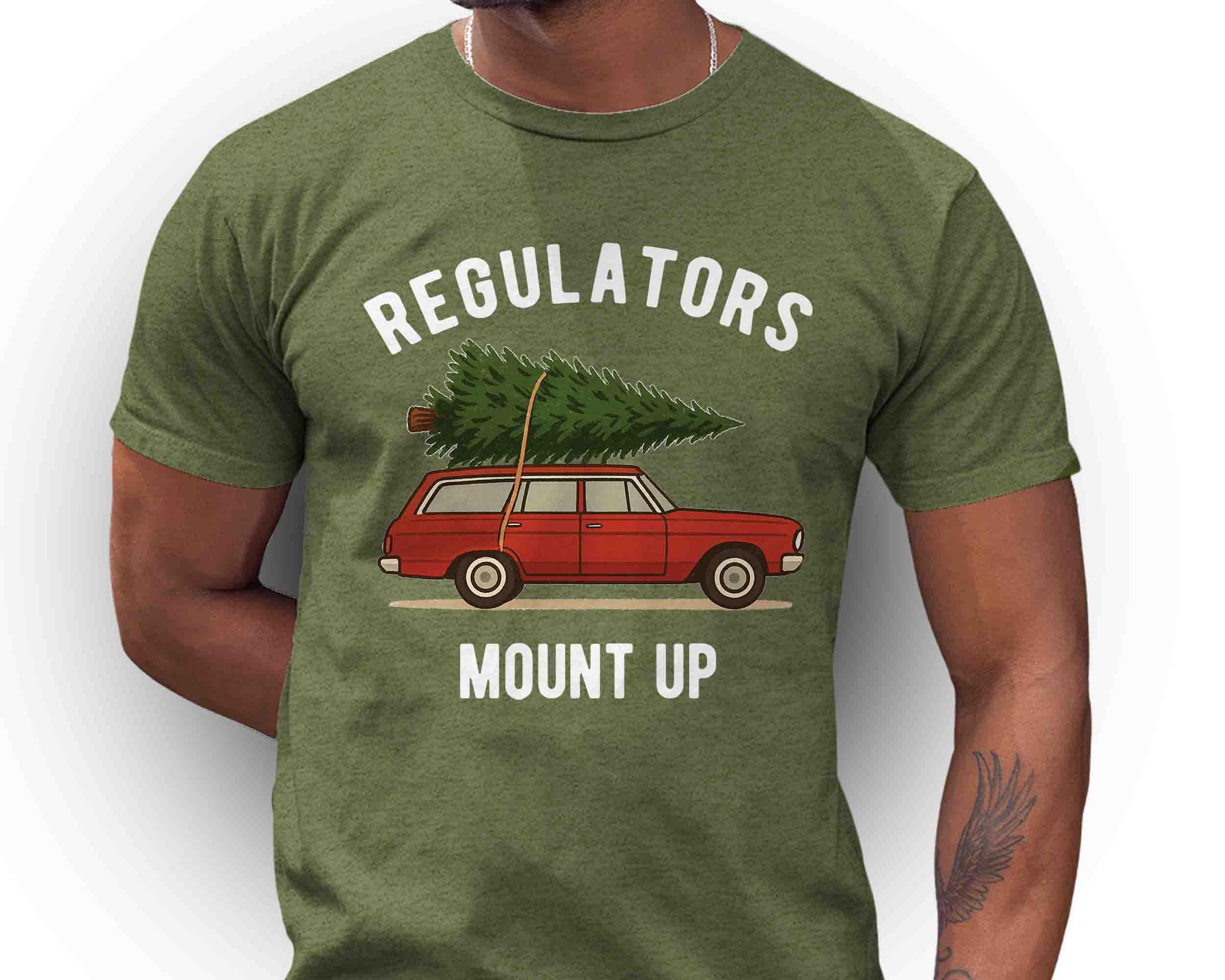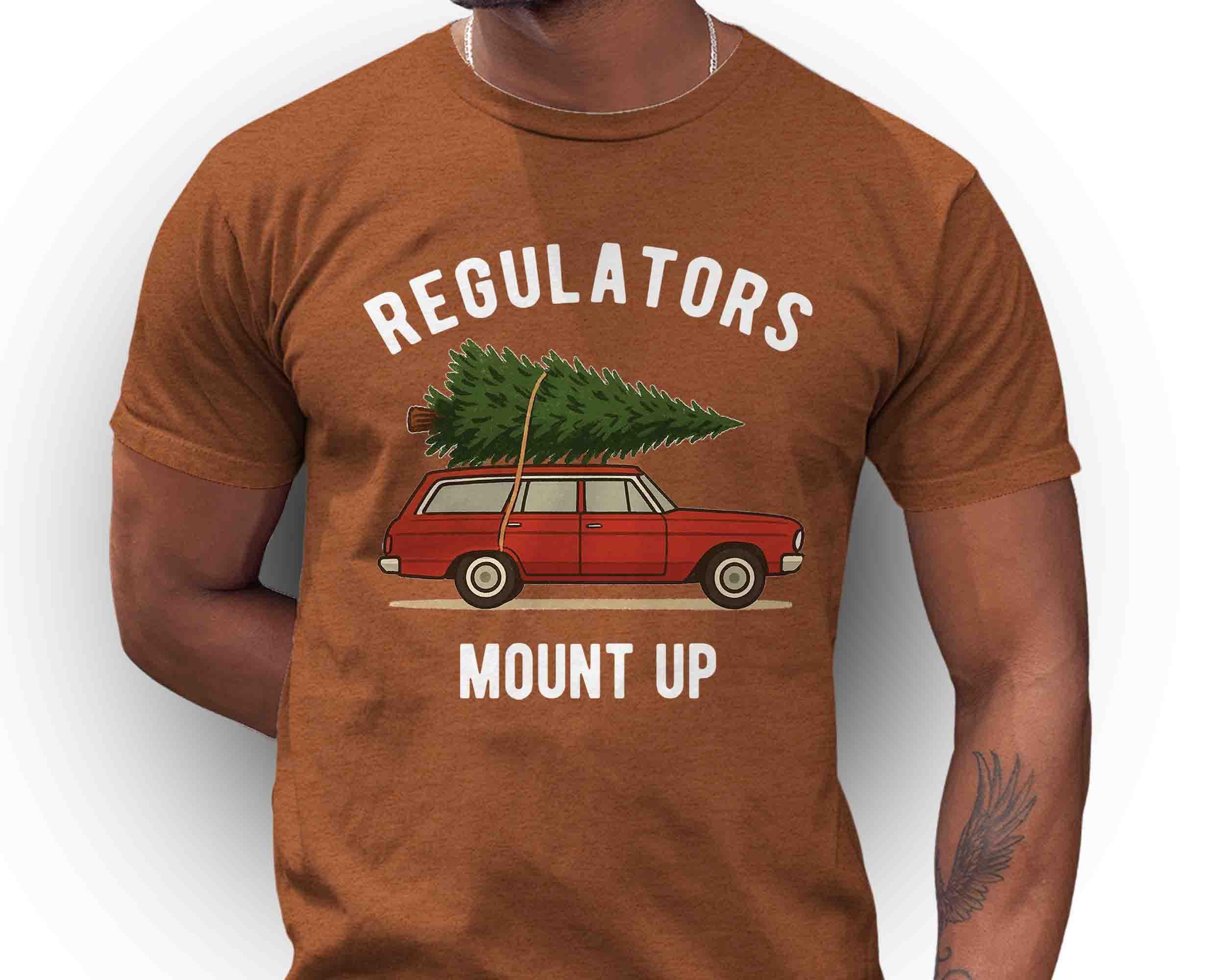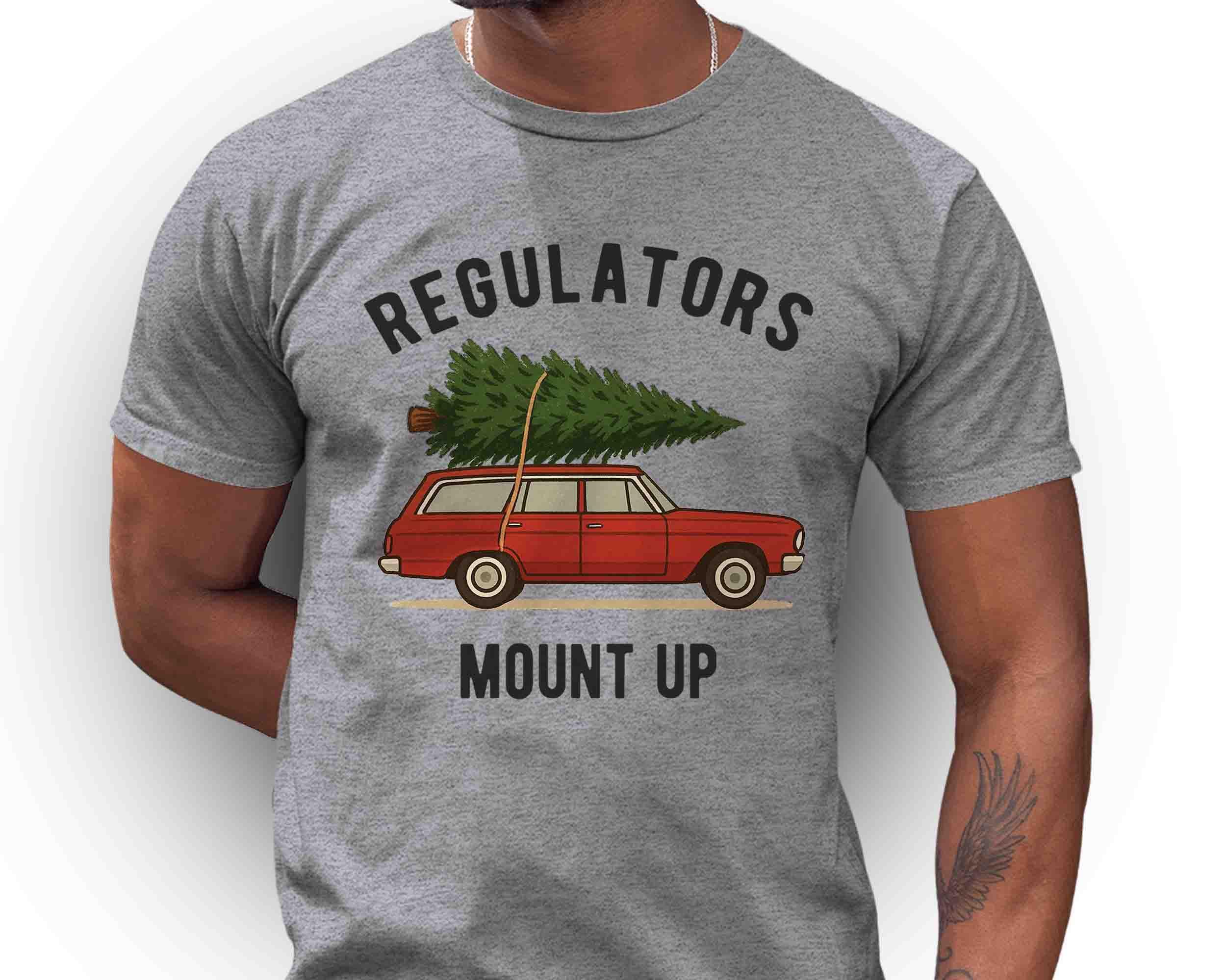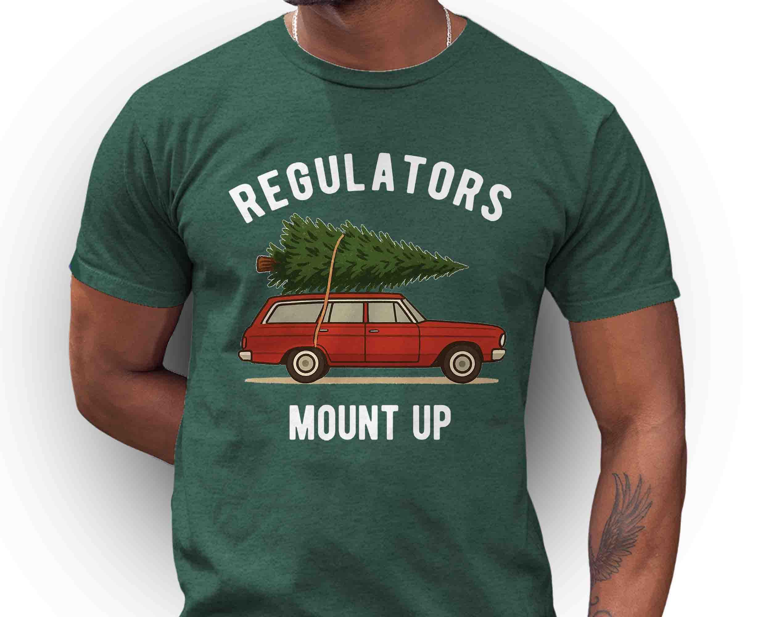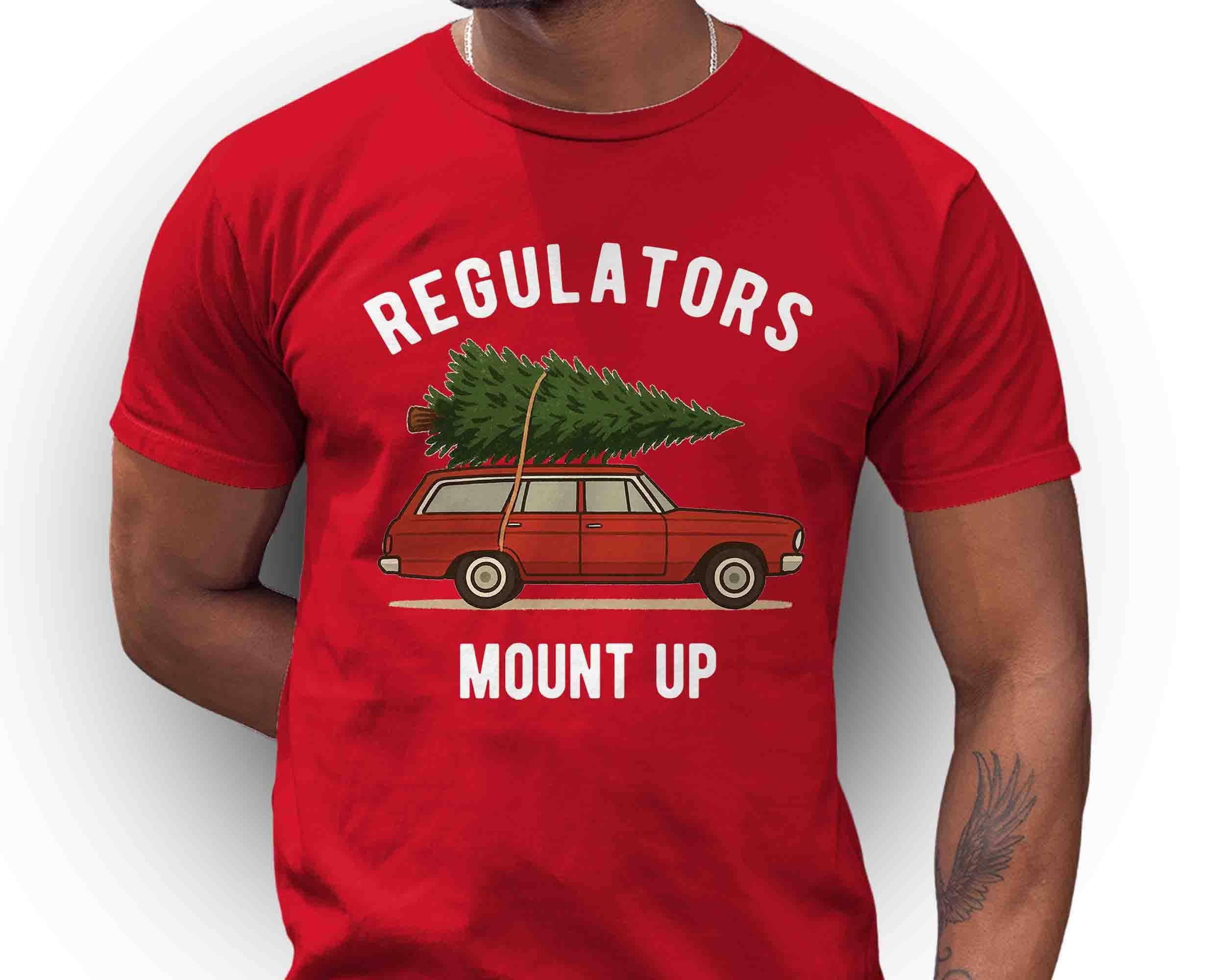 Round up the crew and hit the road with this hilarious “Regulators Mount Up” Christmas Shirt! Featuring a vintage red station wagon hauling a Christmas tree, this shirt is a perfect mix of holiday cheer and old-school cool. Whether you’re trimming the tree, watching classic Christmas movies, or just vibing to Warren G, this tee brings laughs and nostalgia in equal measure.