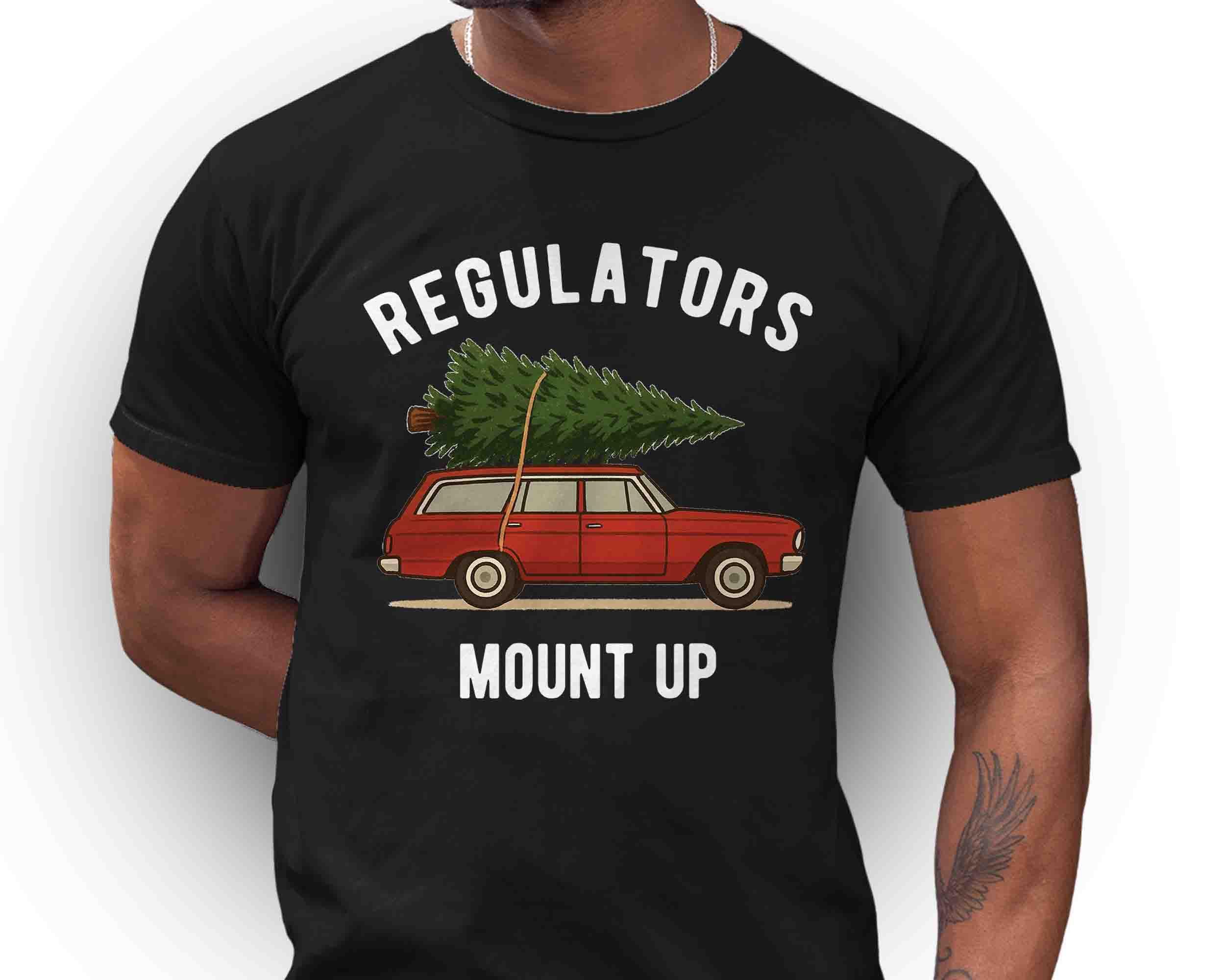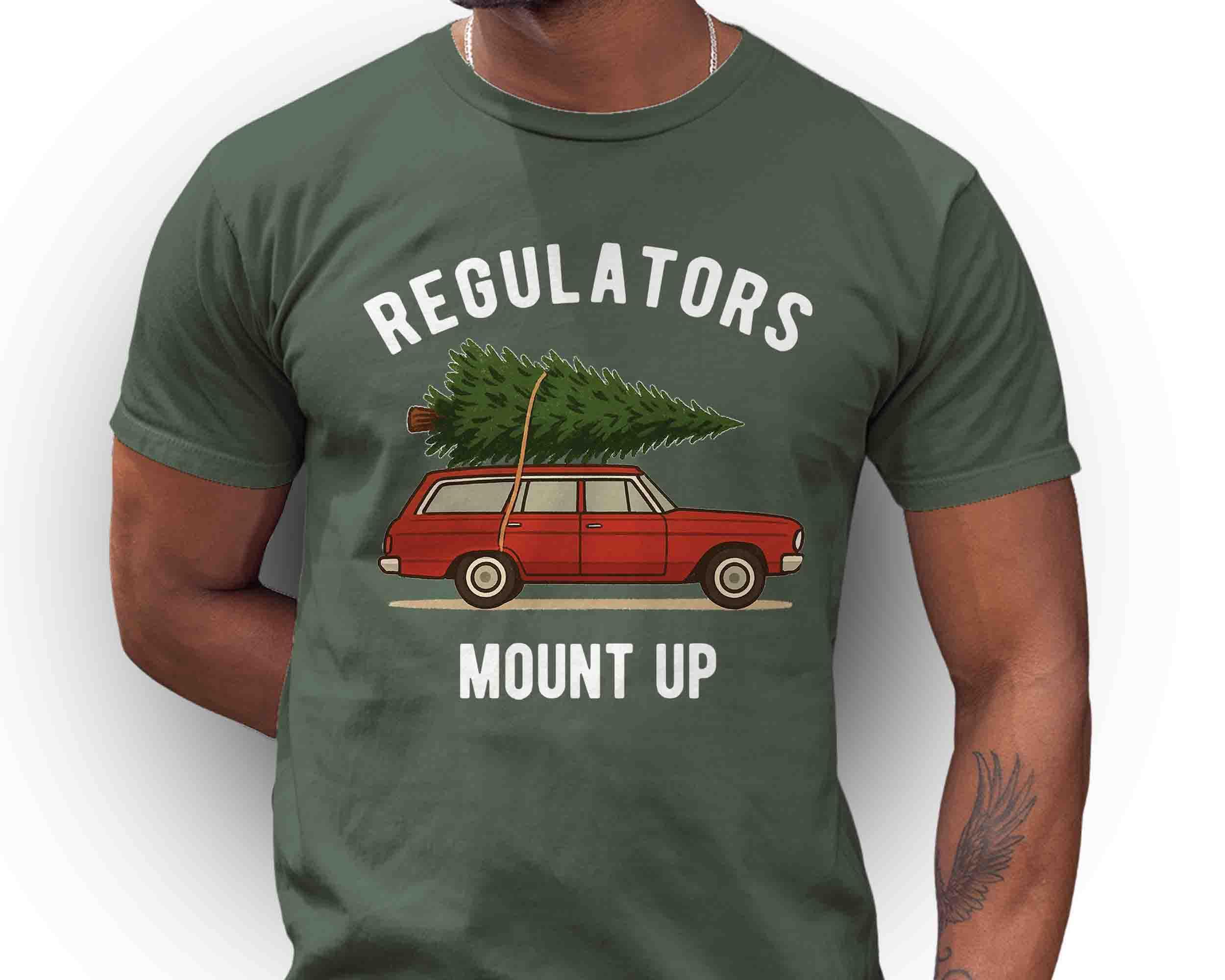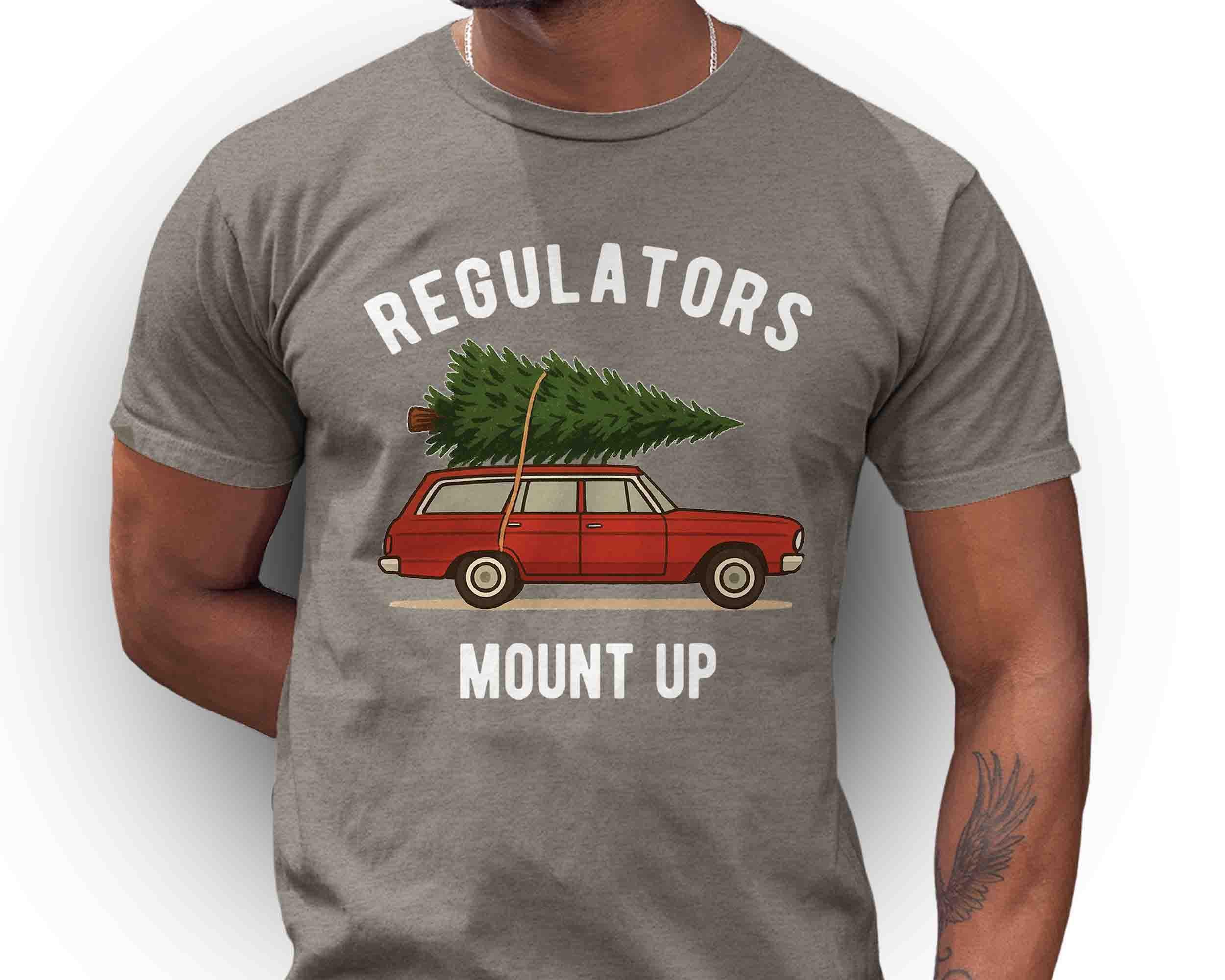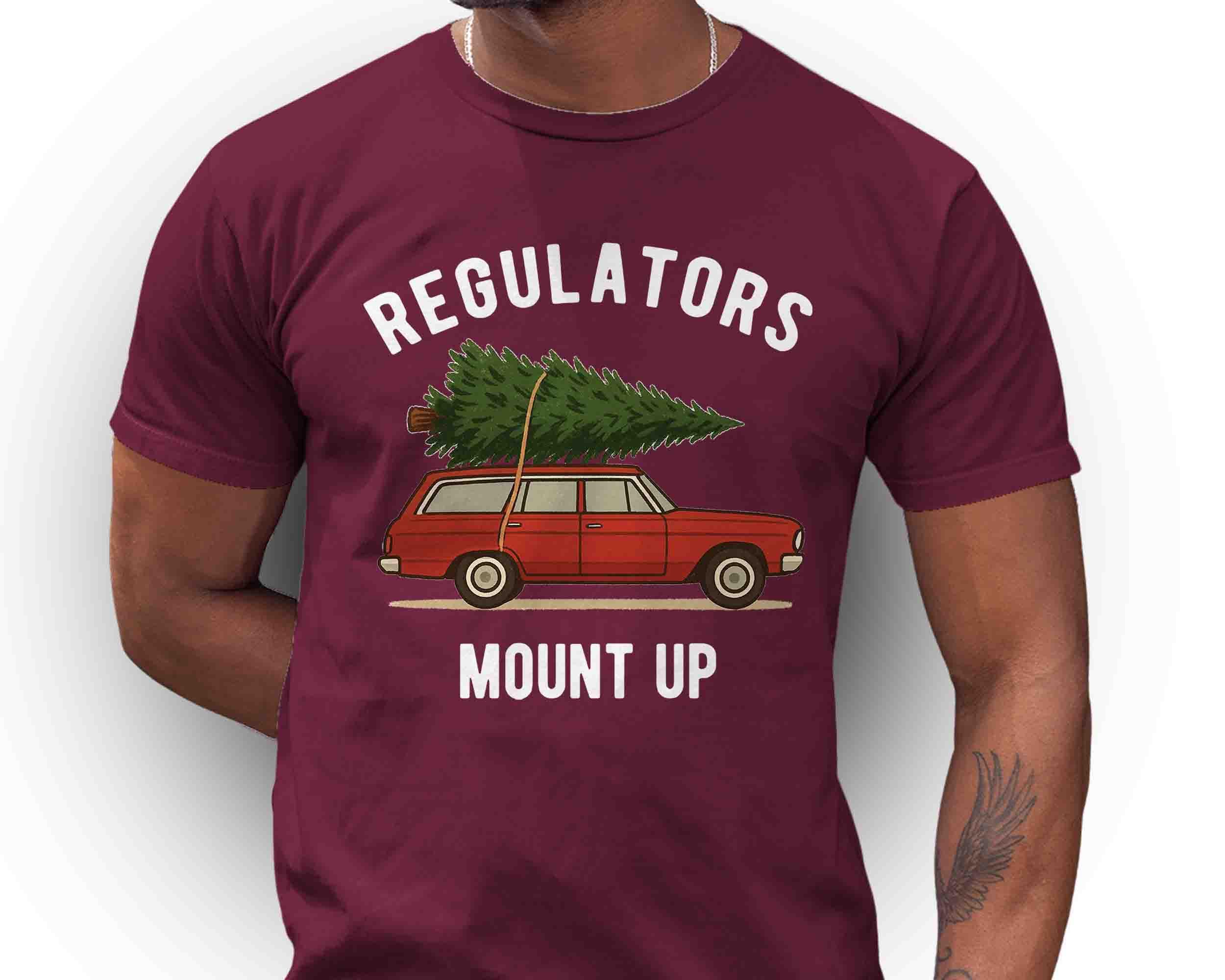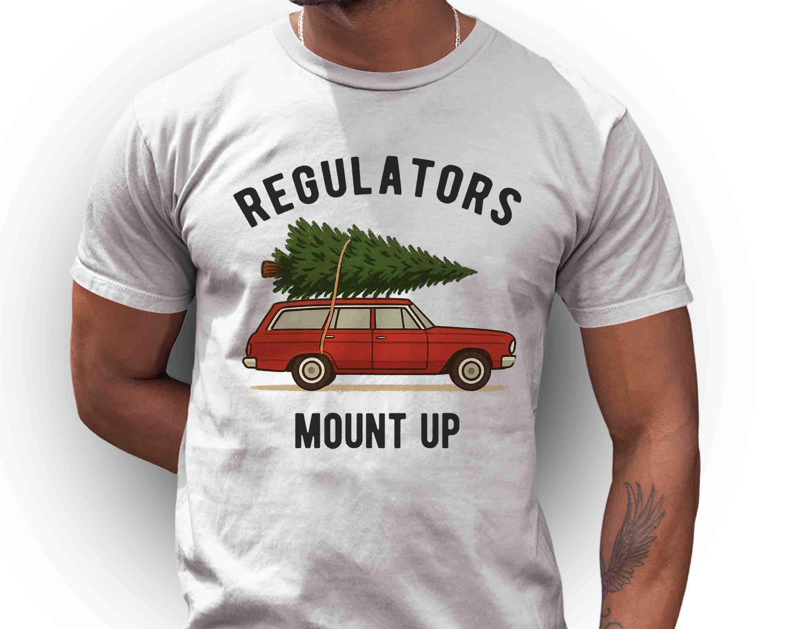 Round up the crew and hit the road with this hilarious “Regulators Mount Up” Christmas Shirt! Featuring a vintage red station wagon hauling a Christmas tree, this shirt is a perfect mix of holiday cheer and old-school cool. Whether you’re trimming the tree, watching classic Christmas movies, or just vibing to Warren G, this tee brings laughs and nostalgia in equal measure.