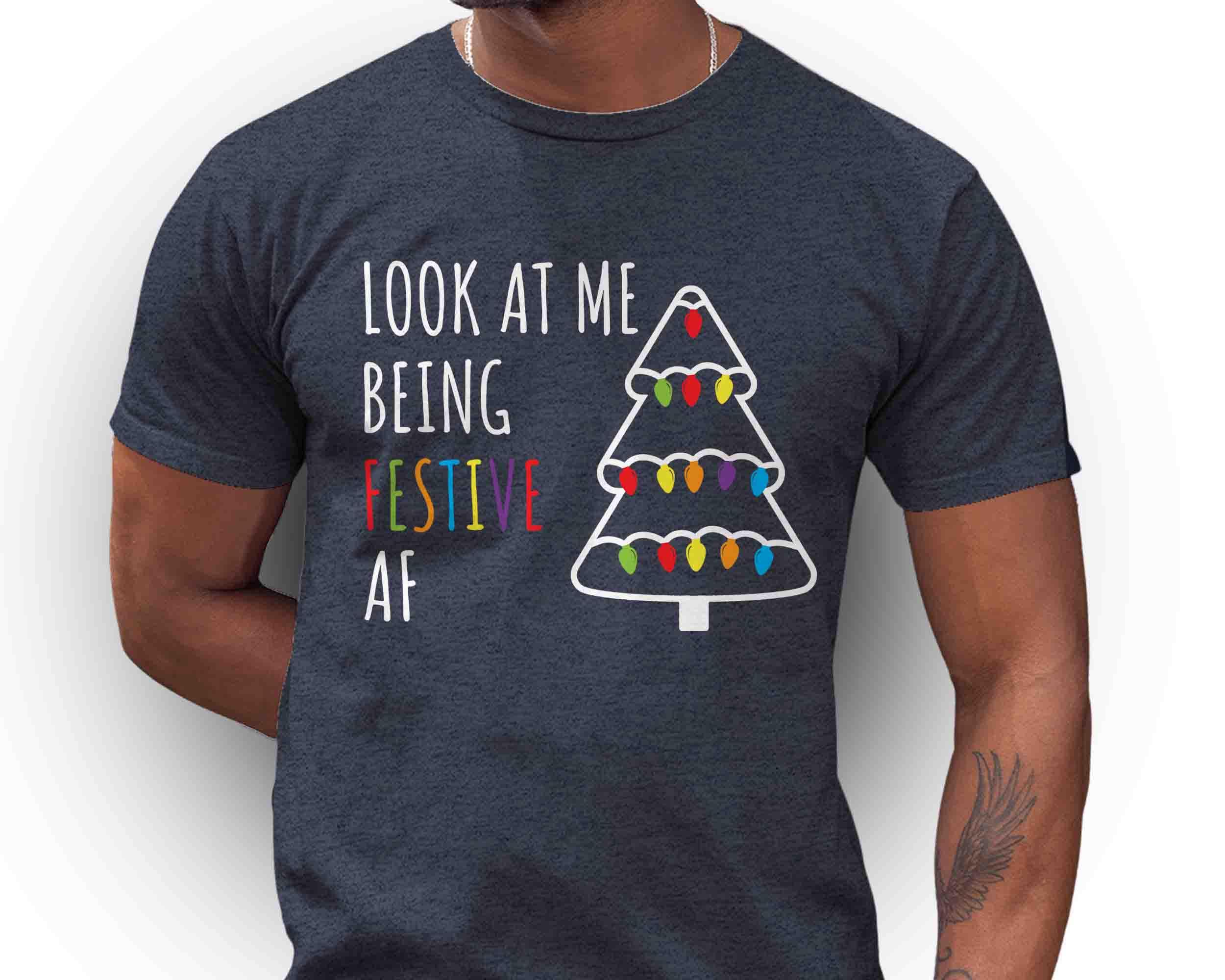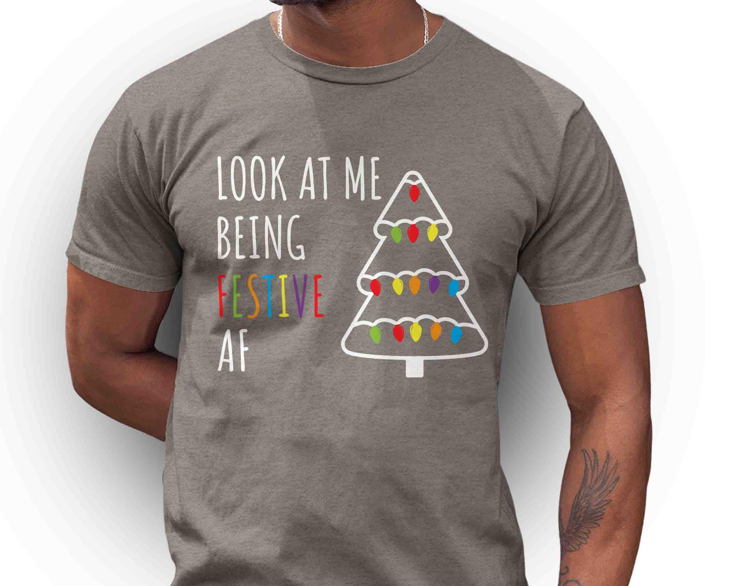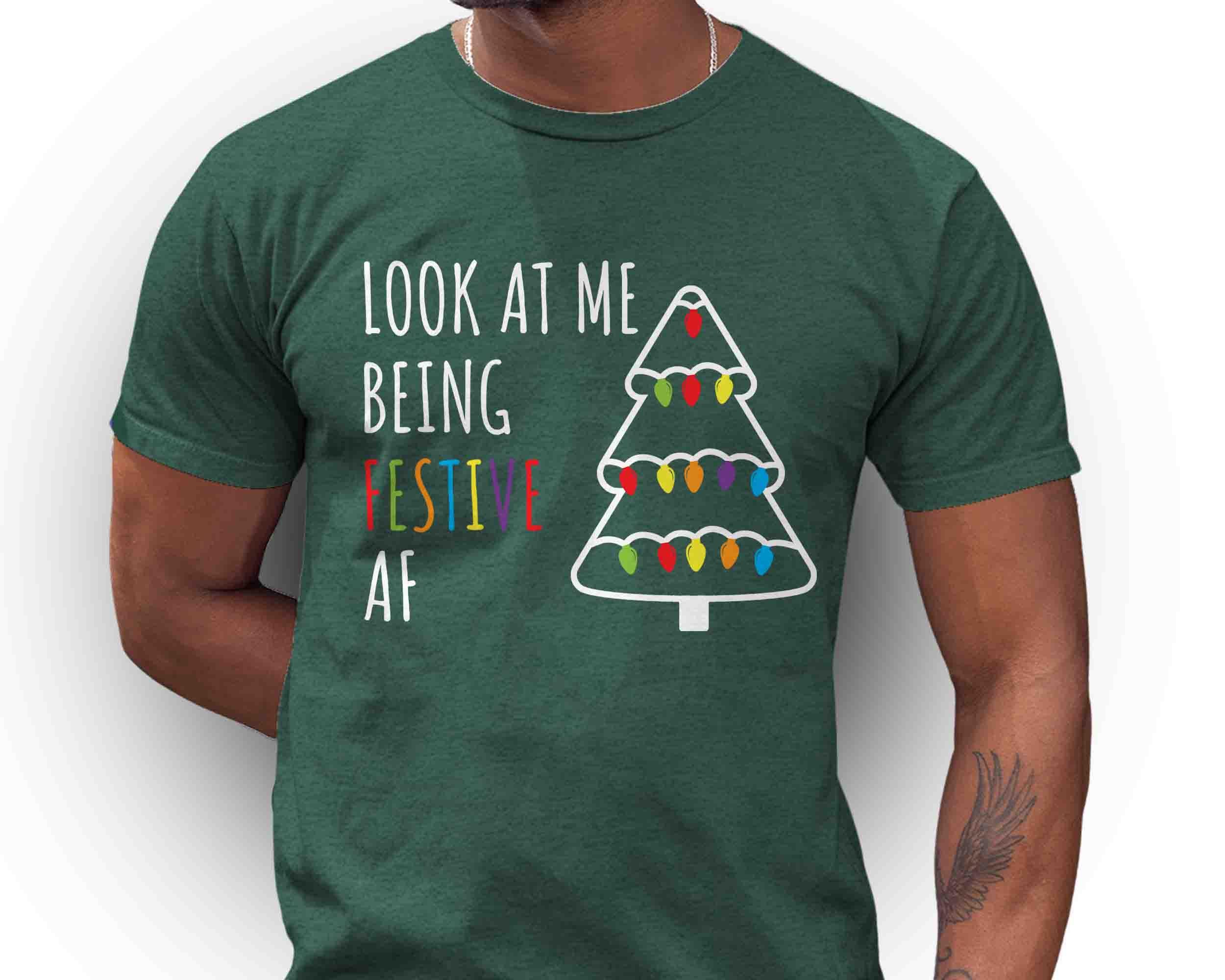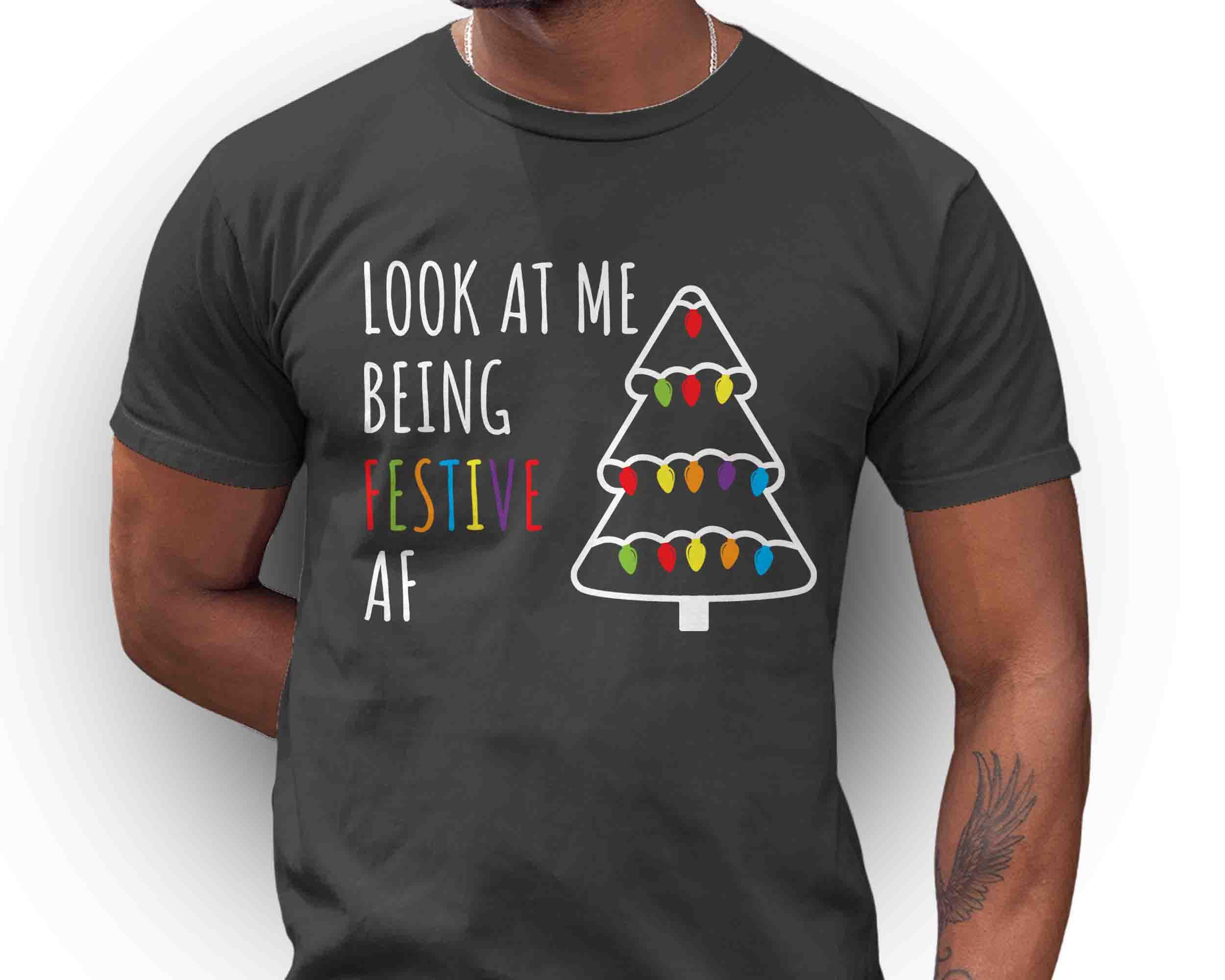 Men's Funny Christmas Shirt Festive AF TShirt Inappropriate Xmas Lights Tee Humor T shirt Gift Idea Unisex Tee