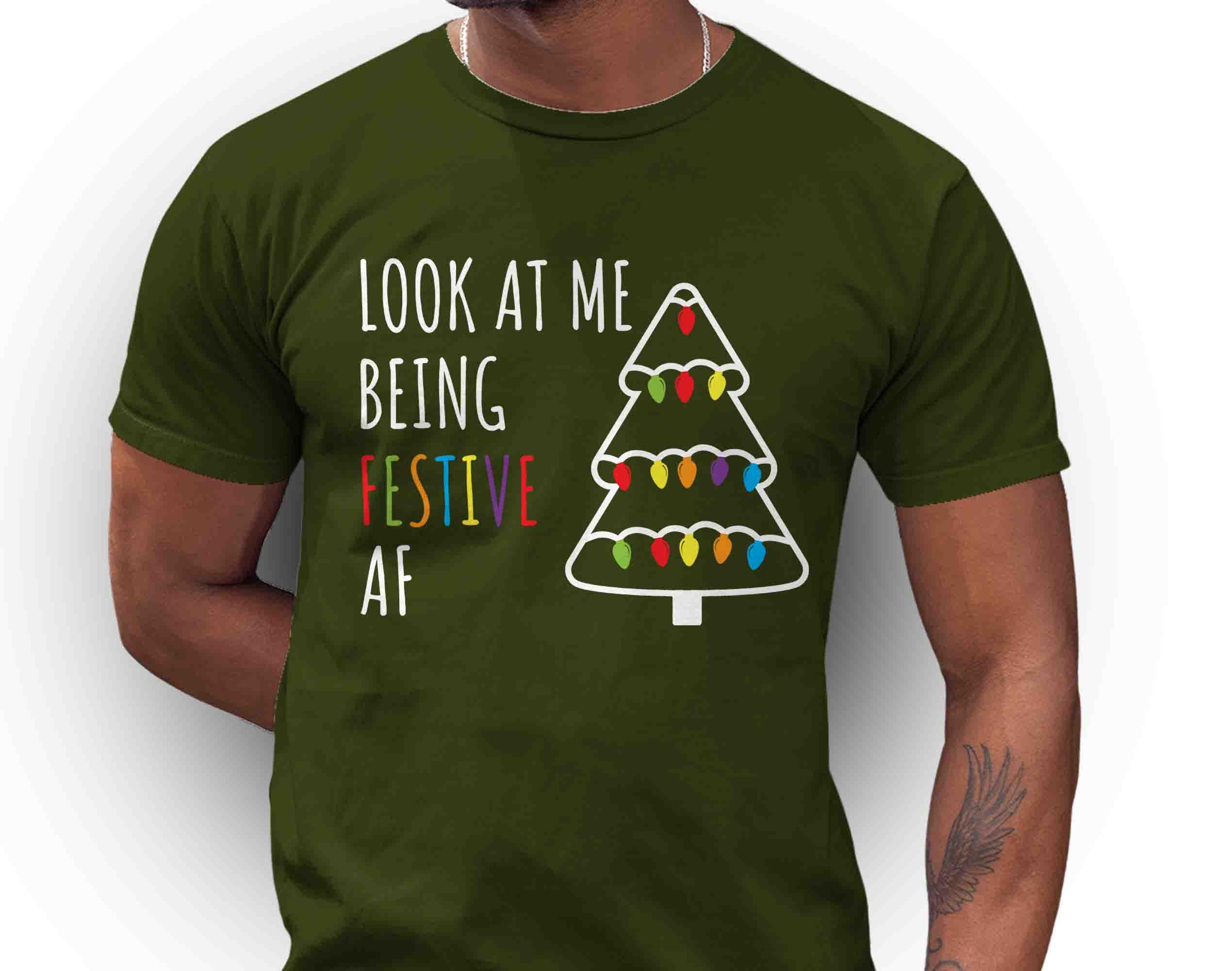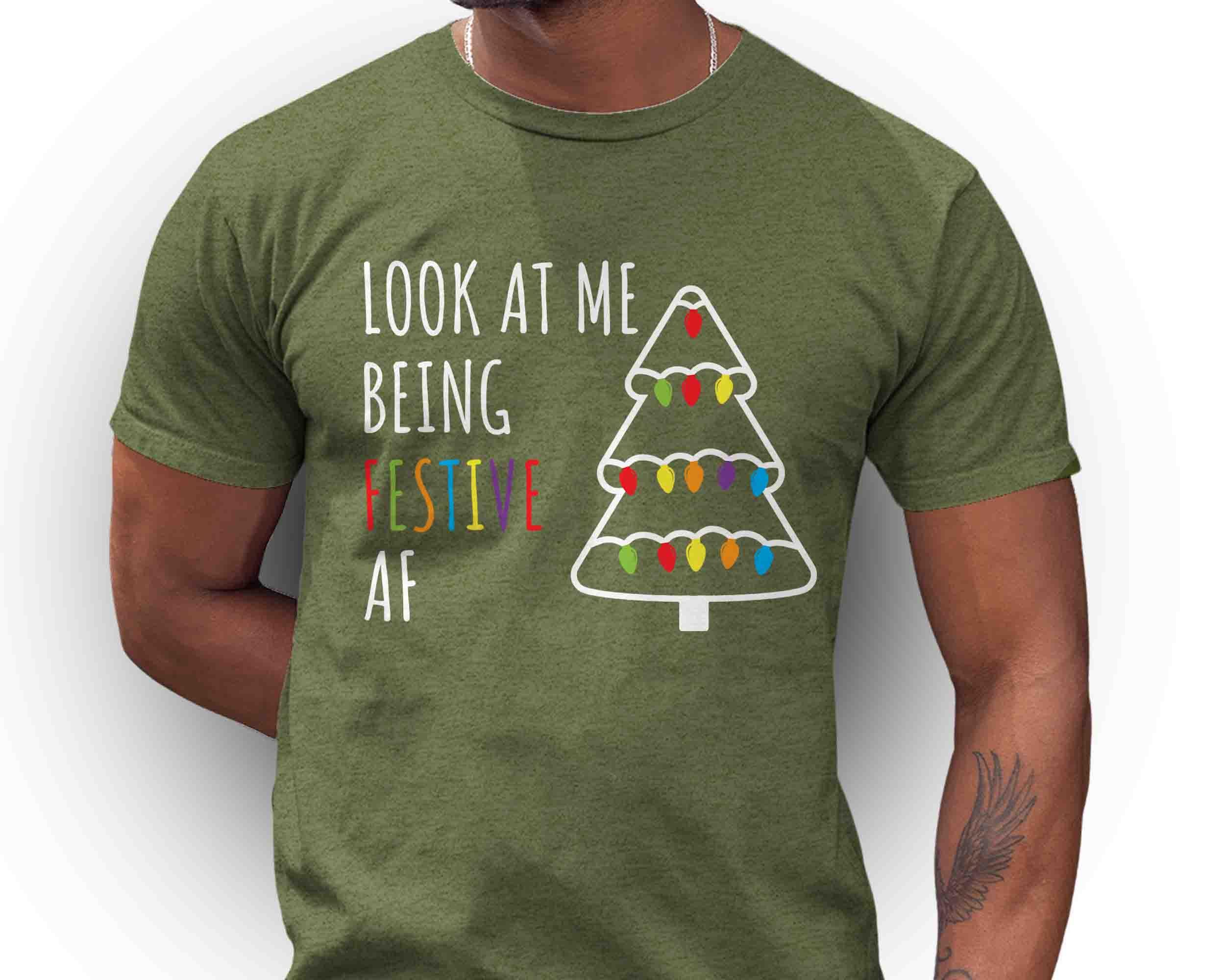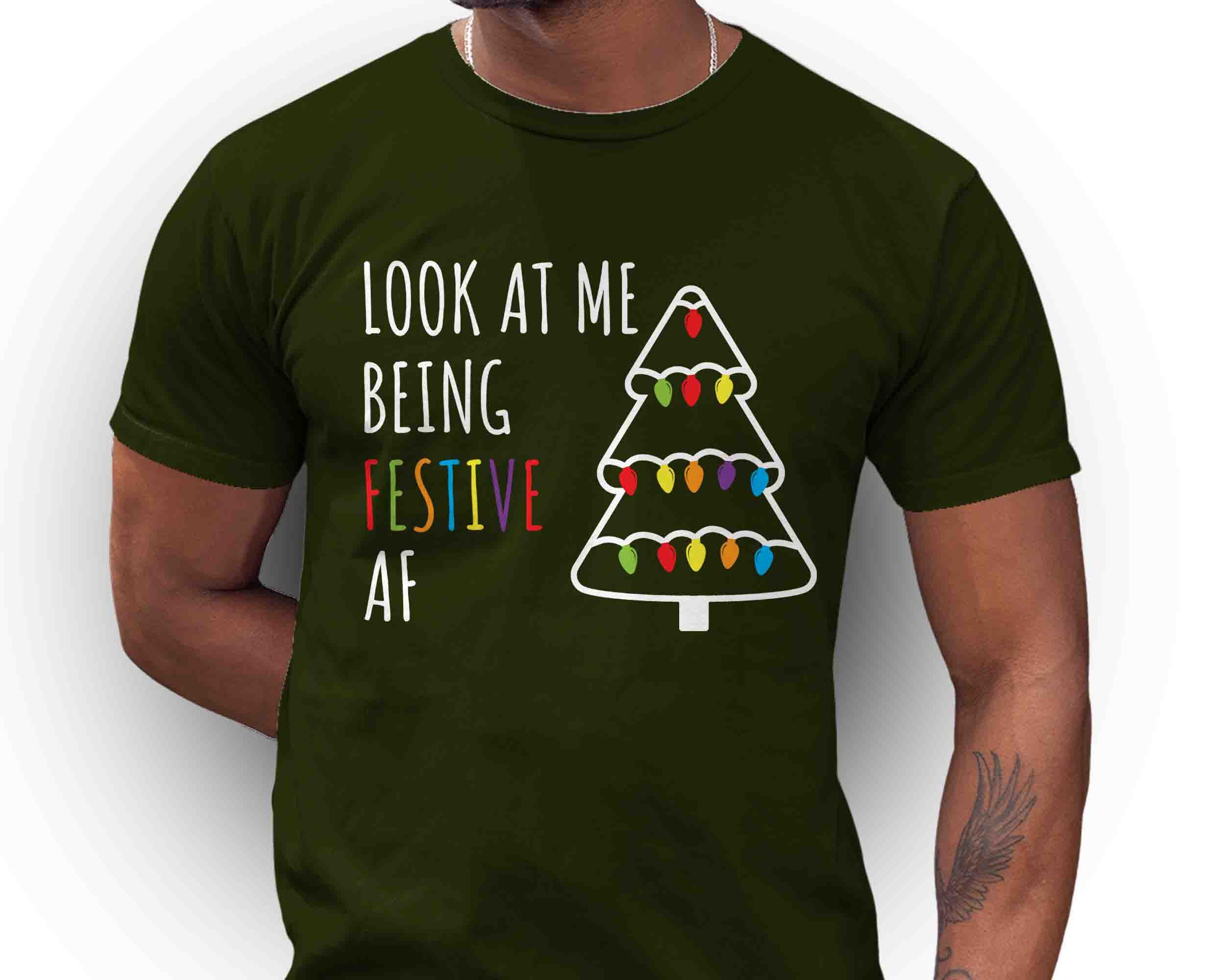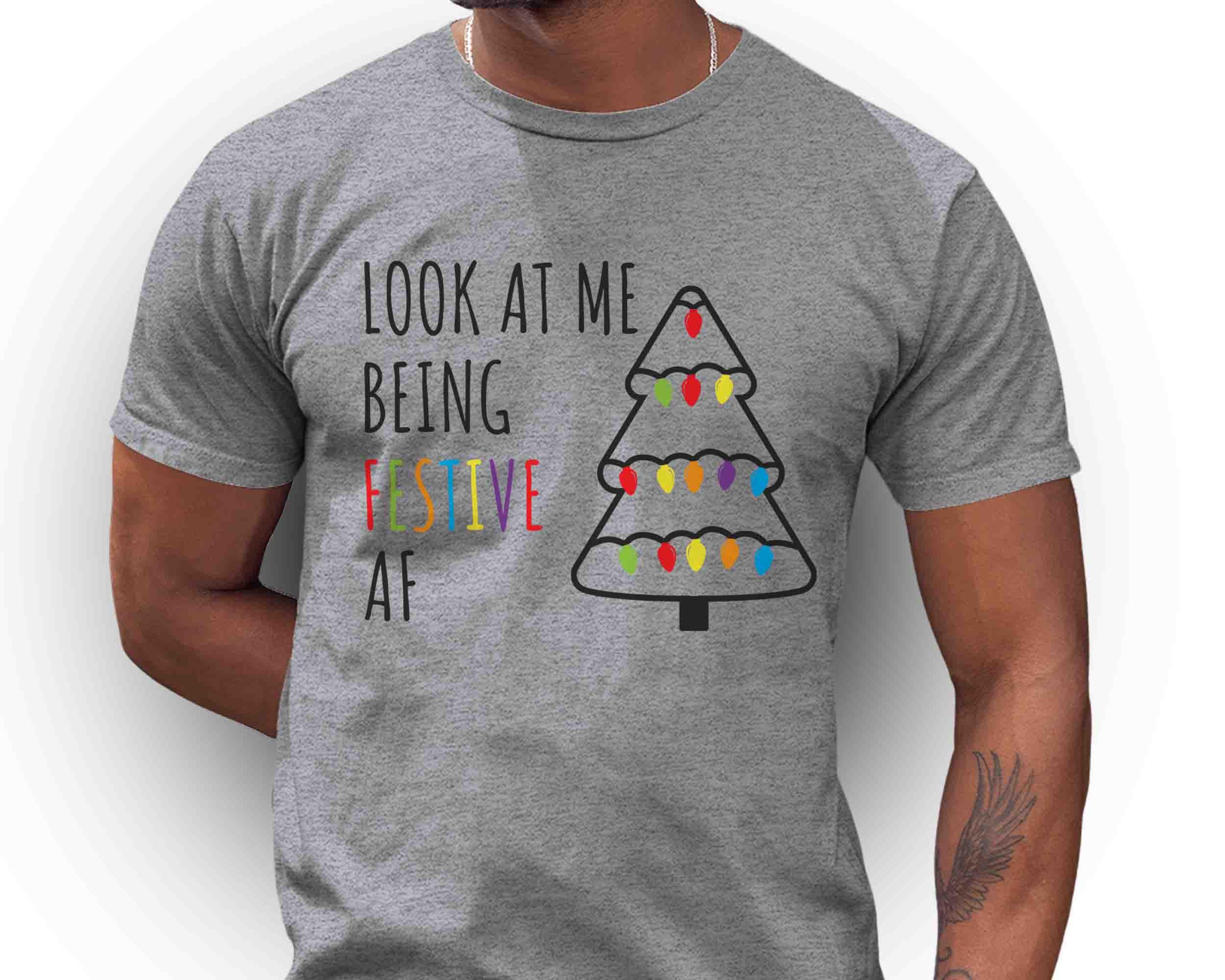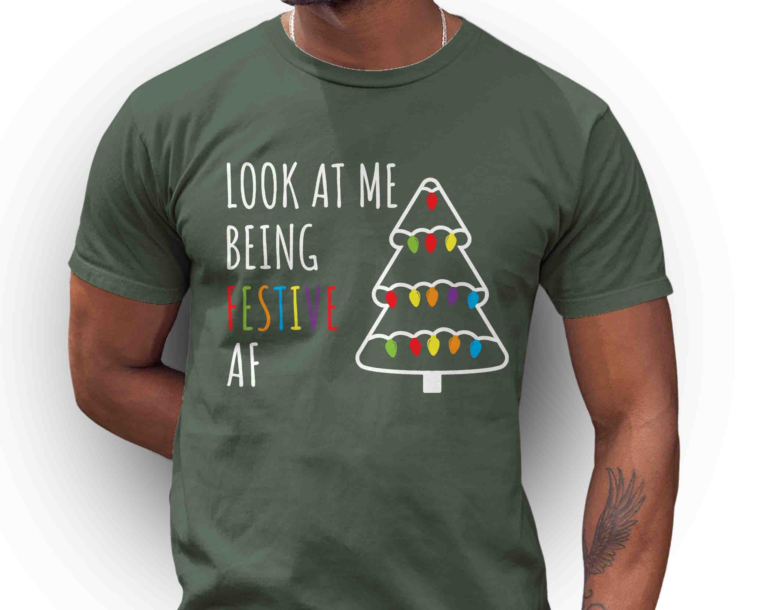 Men's Funny Christmas Shirt Festive AF TShirt Inappropriate Xmas Lights Tee Humor T shirt Gift Idea Unisex Tee