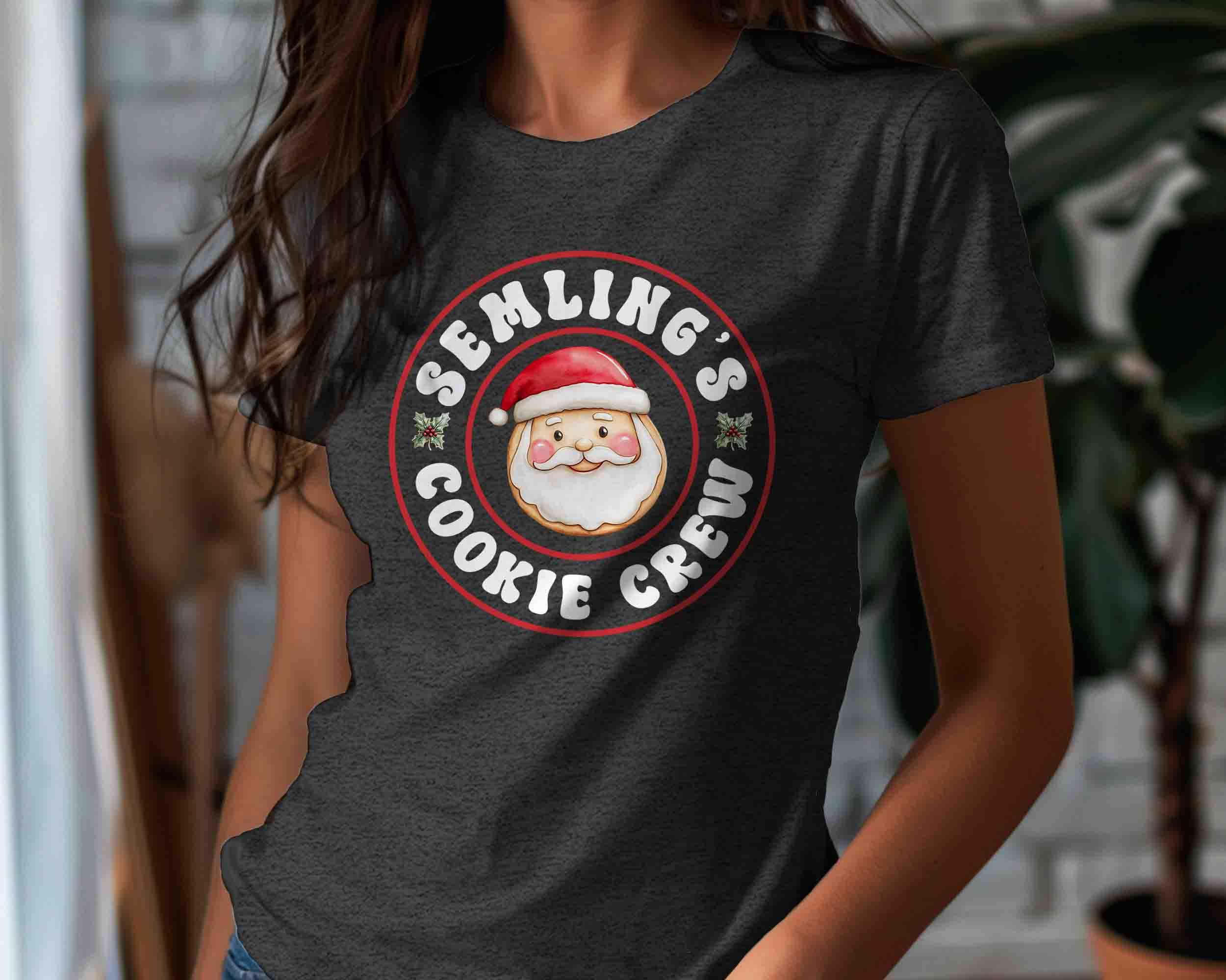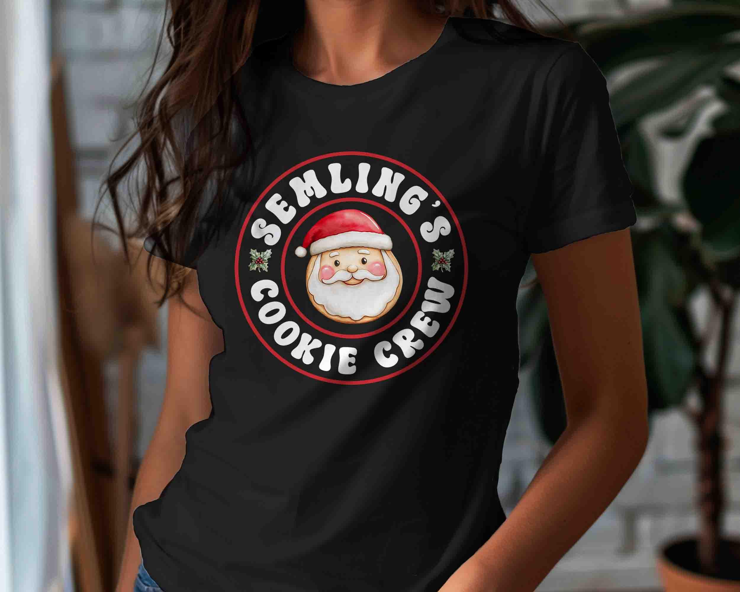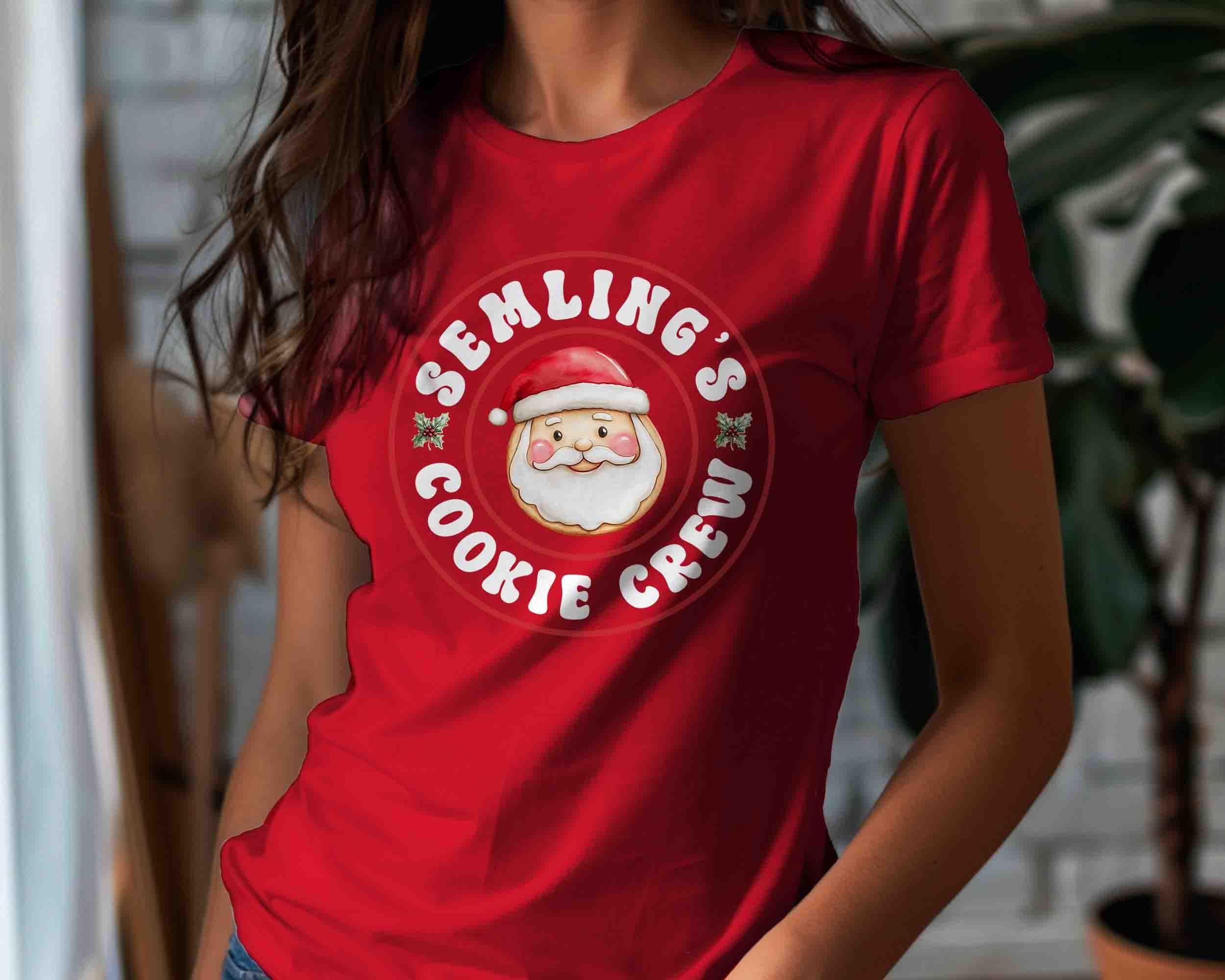Join Santa’s sweetest squad with this Cookie Crew Christmas Shirt! Featuring a cheerful Santa face and fun retro-style lettering, this tee is perfect for cookie exchanges, holiday baking days, and family Christmas gatherings. Personalize it with your family name or favorite group name (like “Semling’s”) to make it uniquely yours!