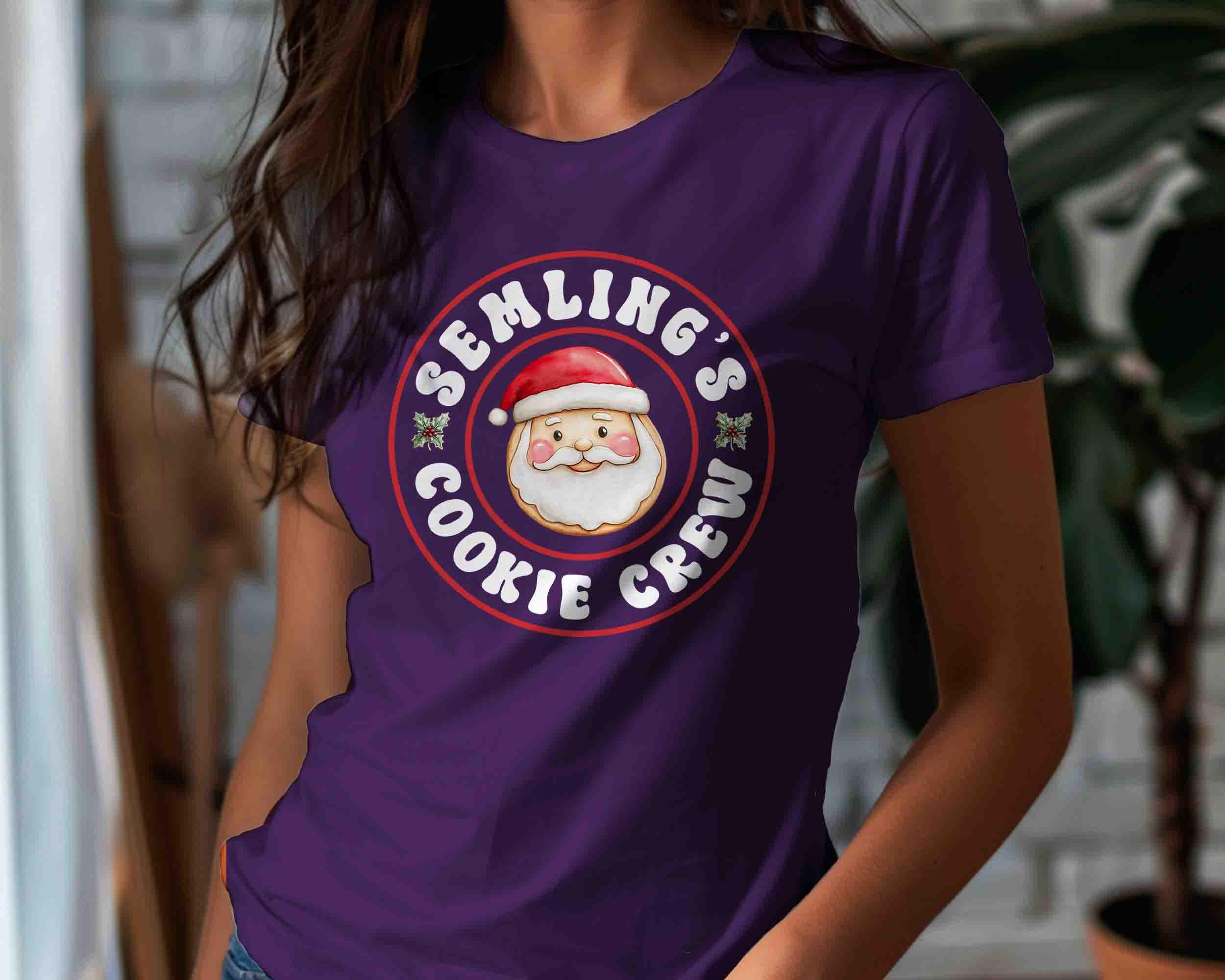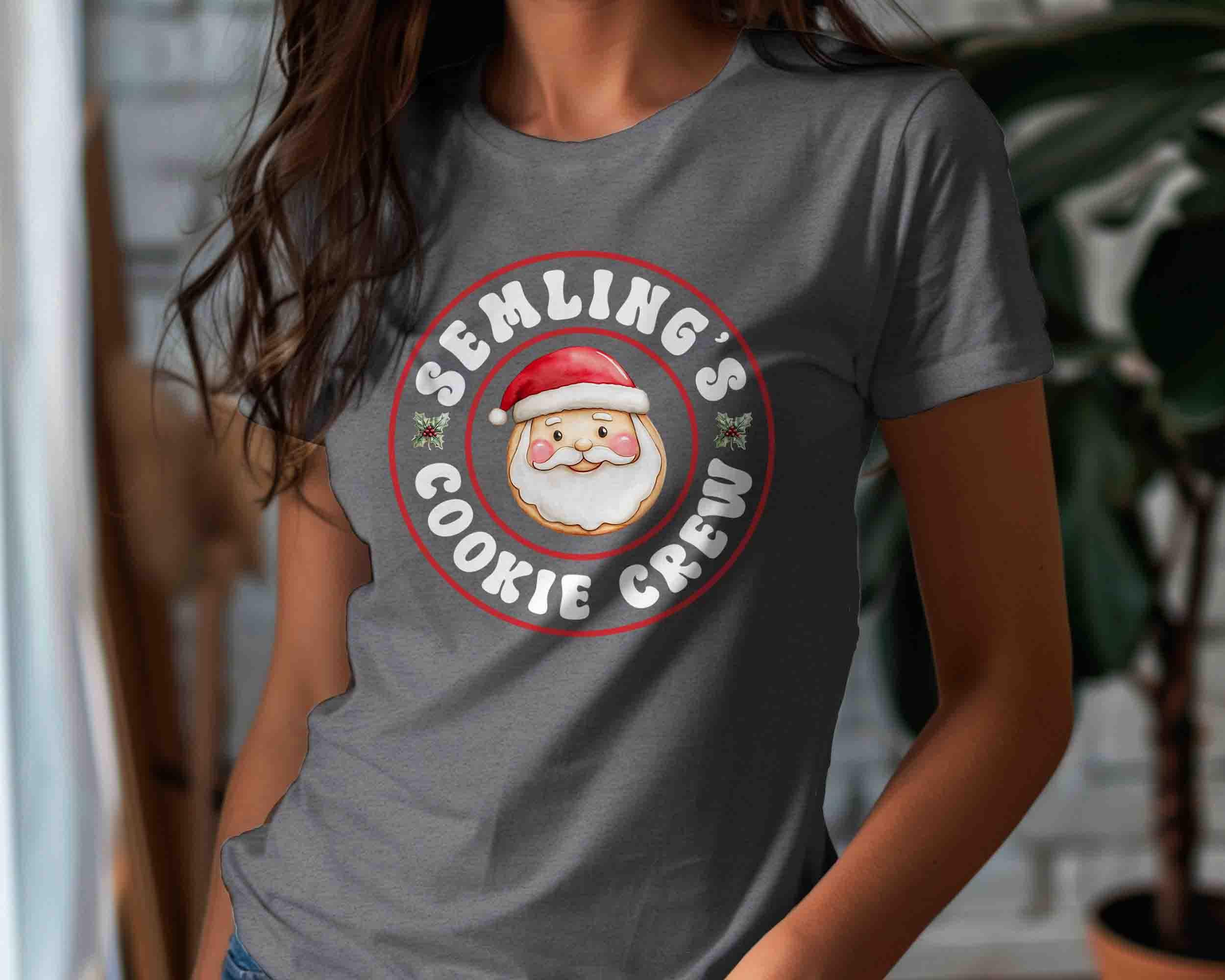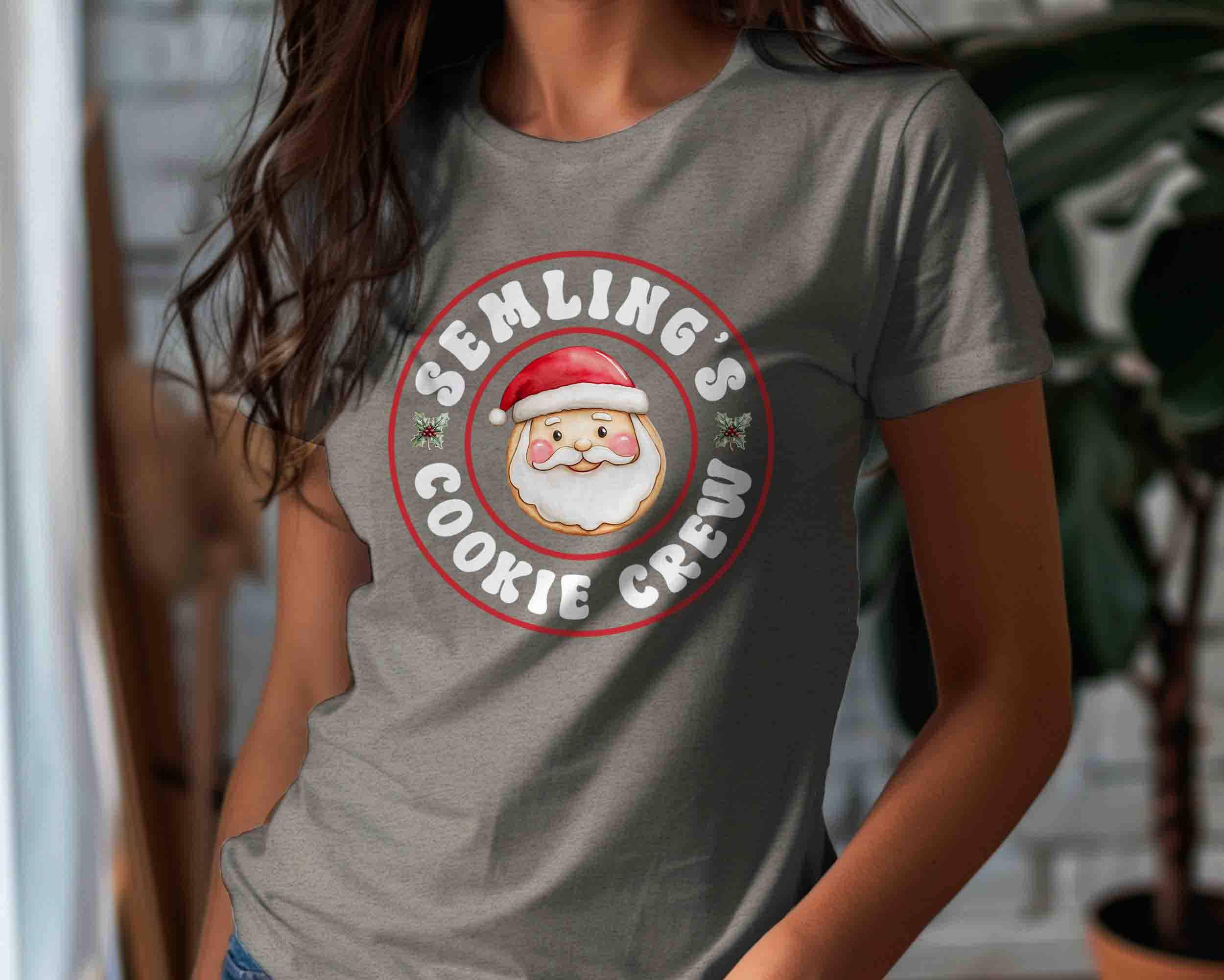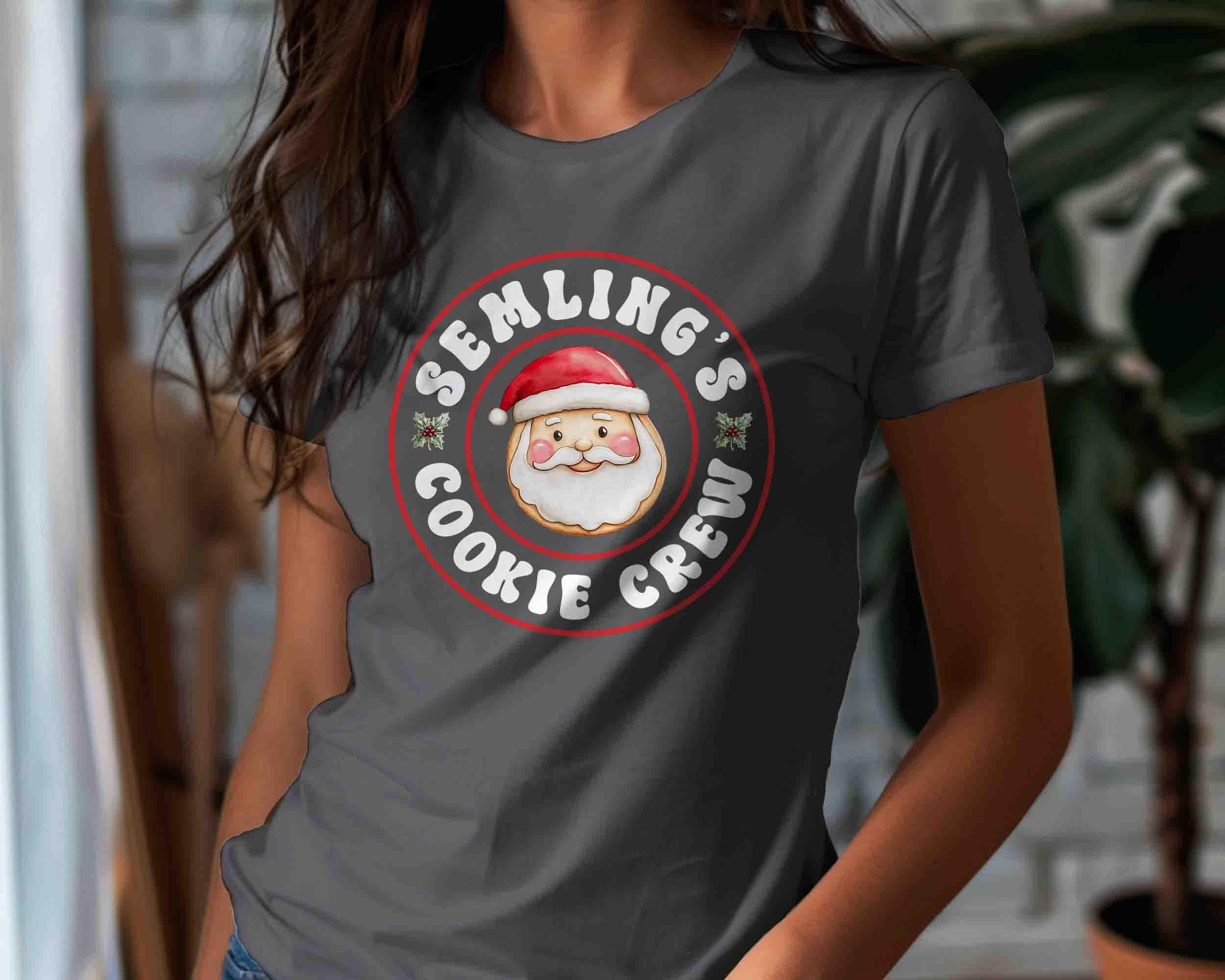 Join Santa’s sweetest squad with this Cookie Crew Christmas Shirt! Featuring a cheerful Santa face and fun retro-style lettering, this tee is perfect for cookie exchanges, holiday baking days, and family Christmas gatherings. Personalize it with your family name or favorite group name (like “Semling’s”) to make it uniquely yours!