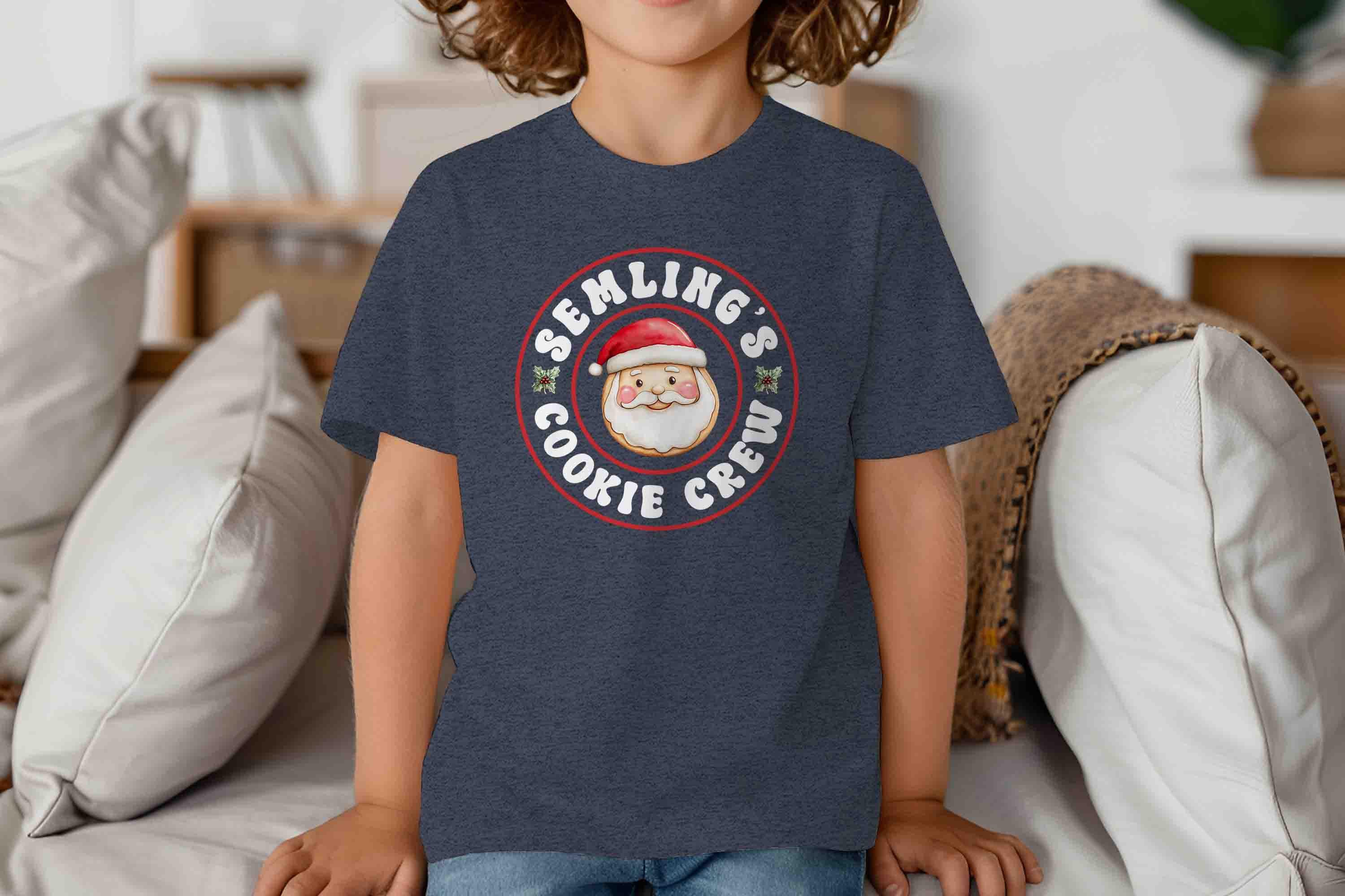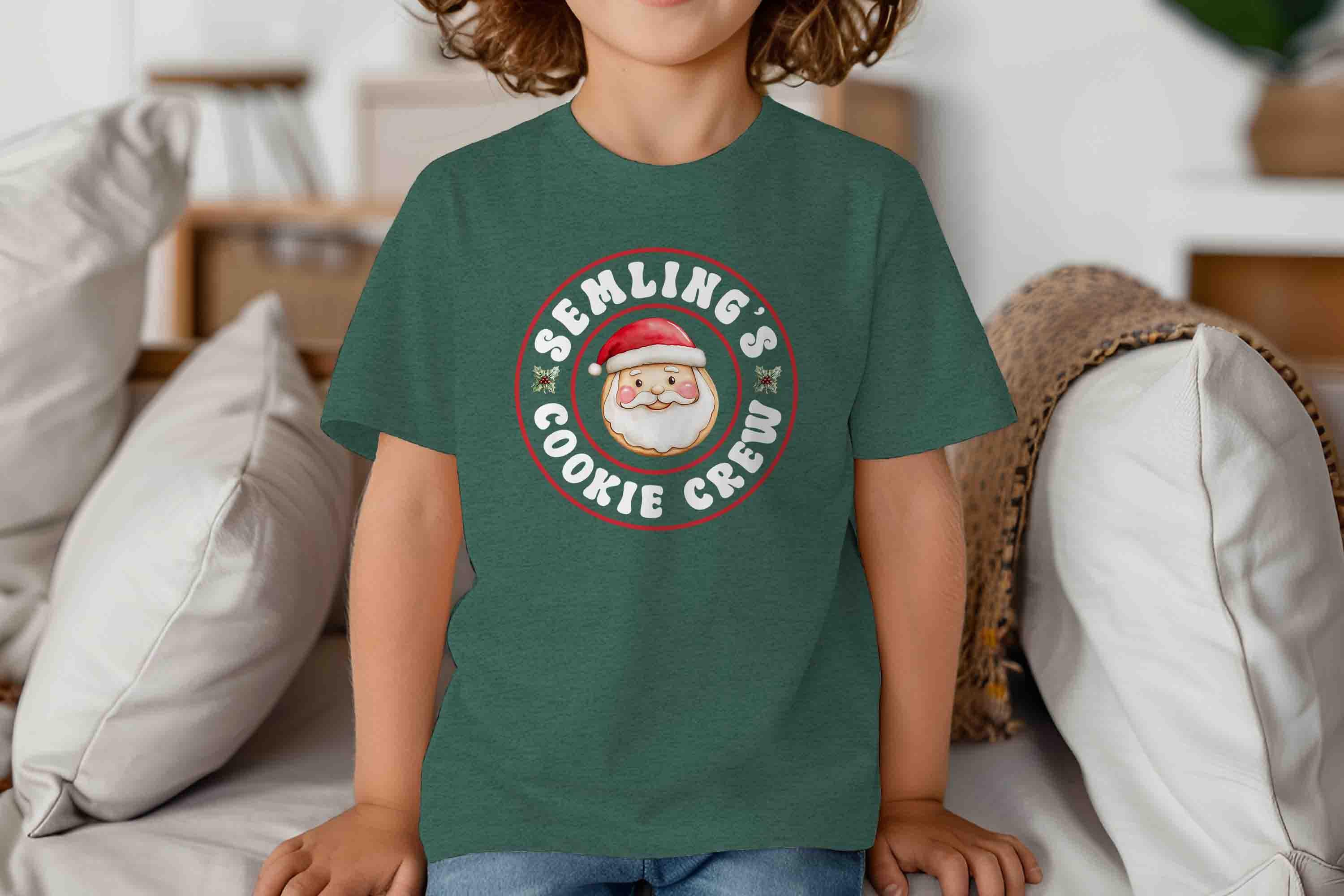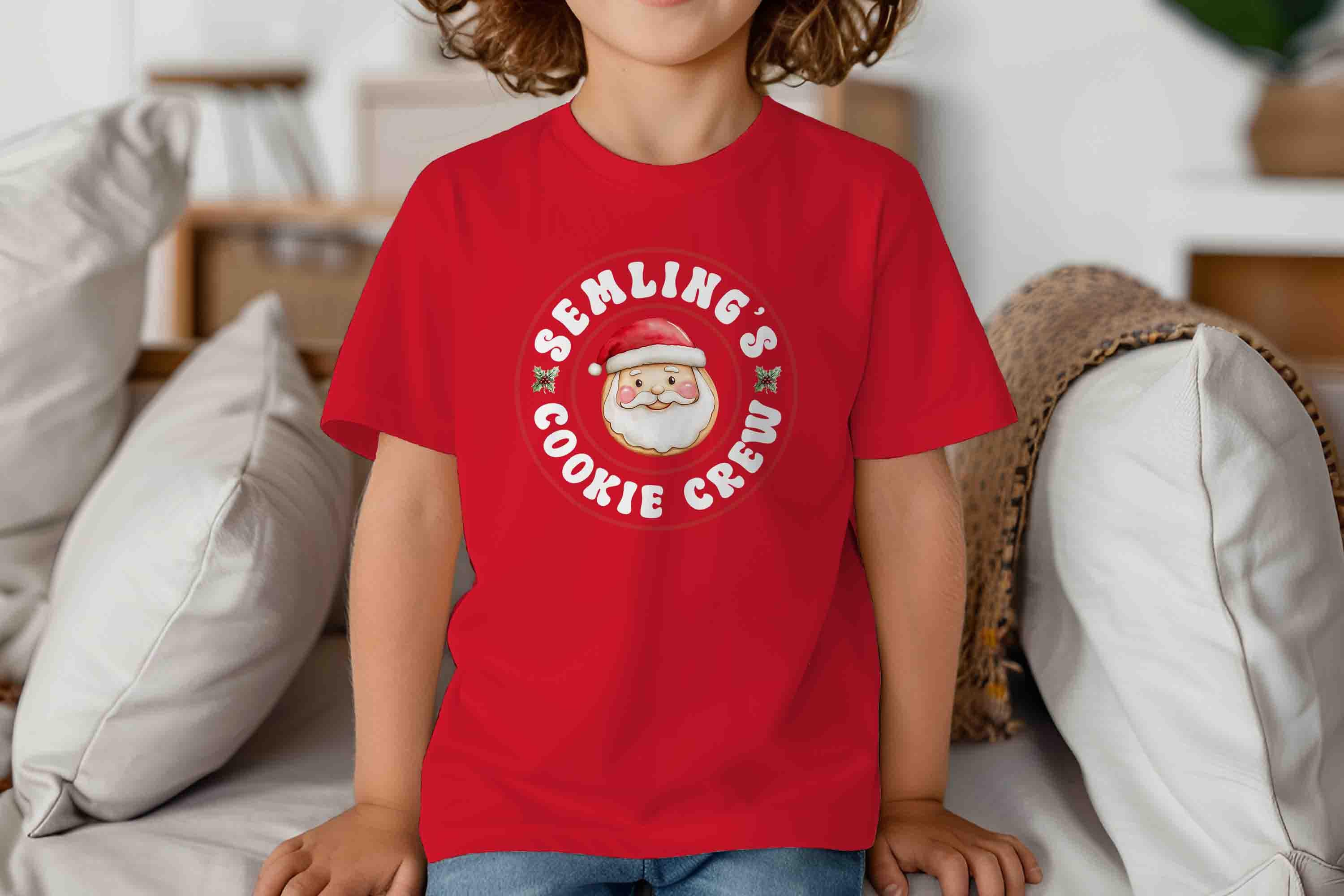 Join Santa’s sweetest squad with this Cookie Crew Christmas Shirt! Featuring a cheerful Santa face and fun retro-style lettering, this tee is perfect for cookie exchanges, holiday baking days, and family Christmas gatherings. Personalize it with your family name or favorite group name (like “Semling’s”) to make it uniquely yours!