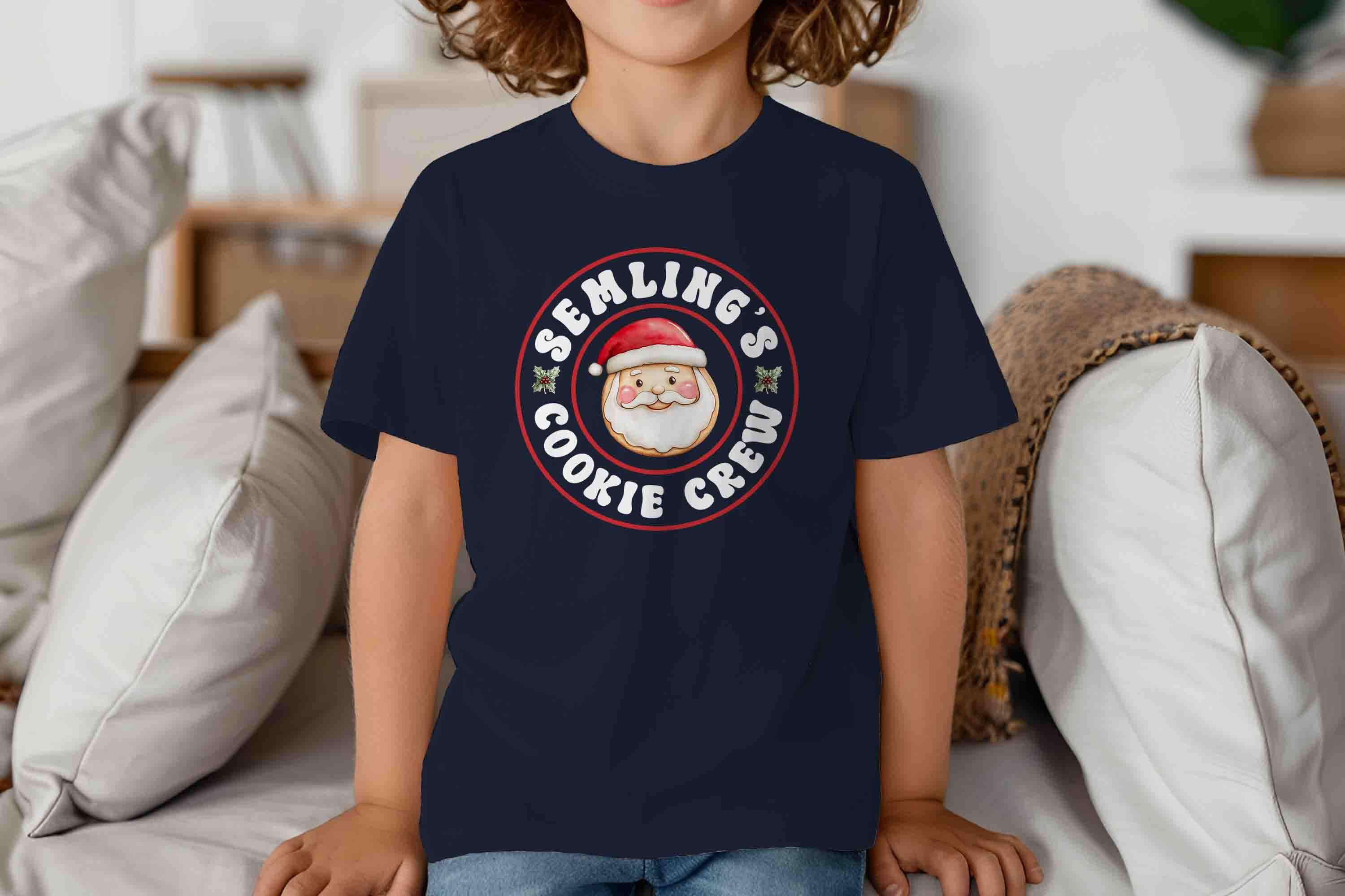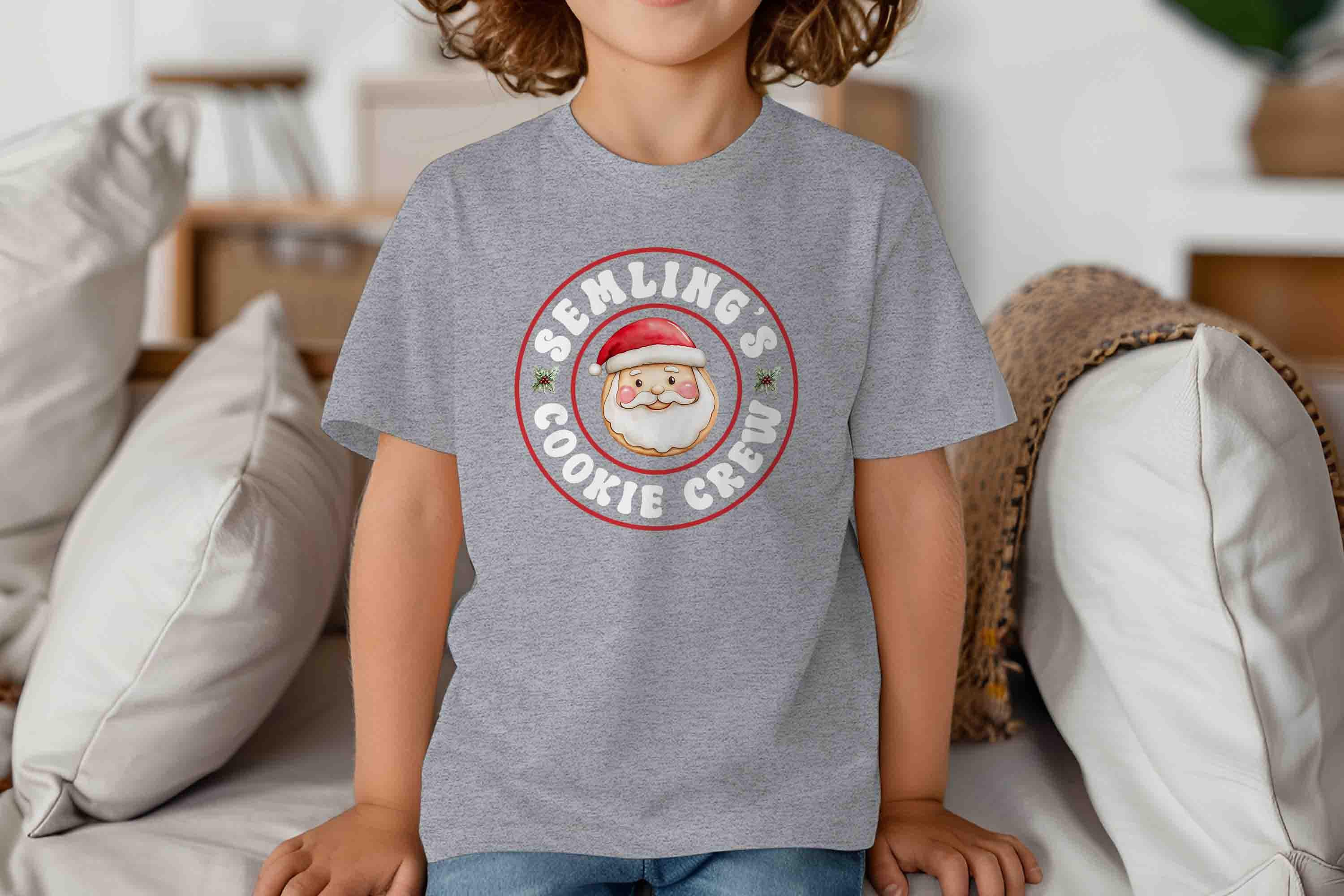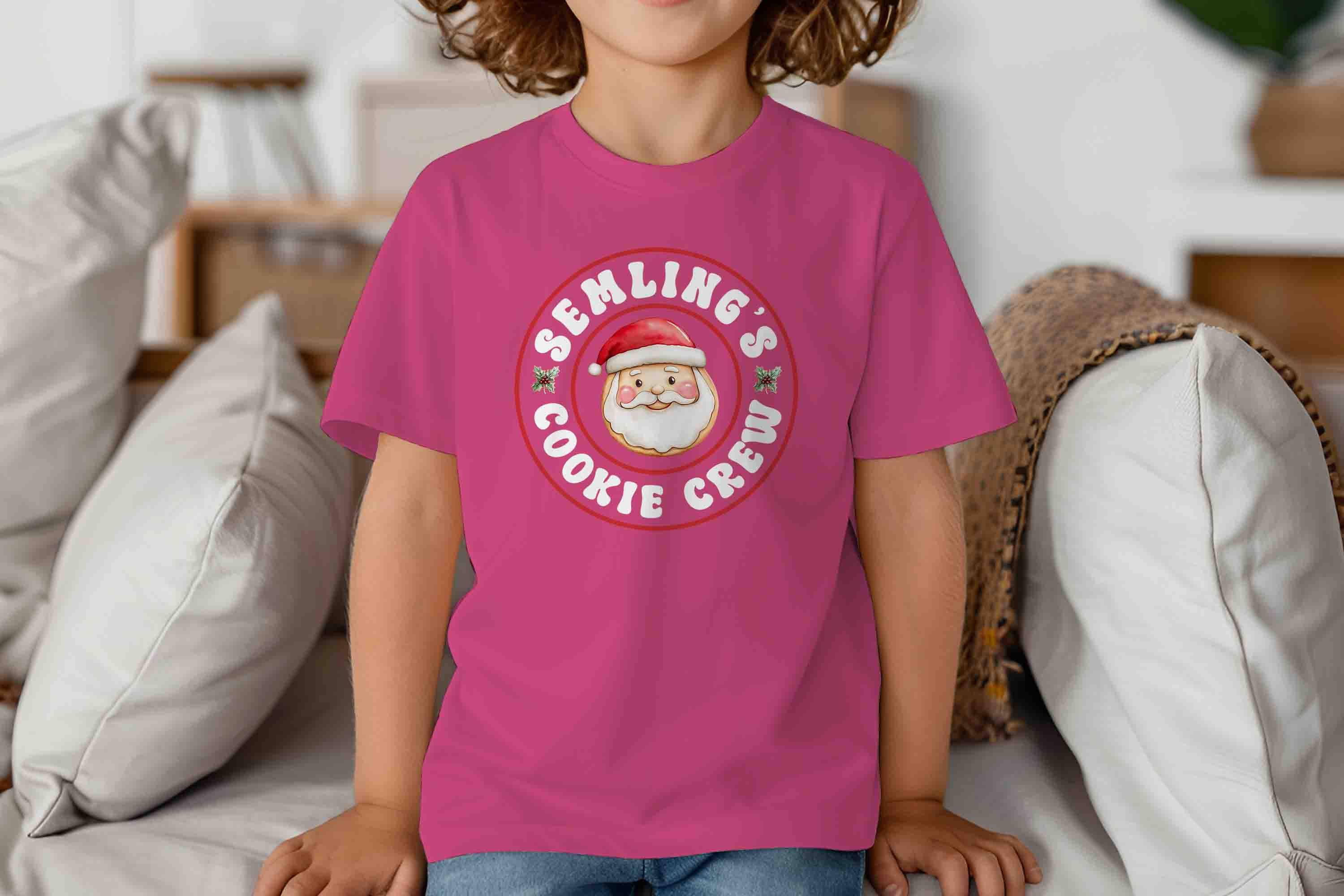 Join Santa’s sweetest squad with this Cookie Crew Christmas Shirt! Featuring a cheerful Santa face and fun retro-style lettering, this tee is perfect for cookie exchanges, holiday baking days, and family Christmas gatherings. Personalize it with your family name or favorite group name (like “Semling’s”) to make it uniquely yours!