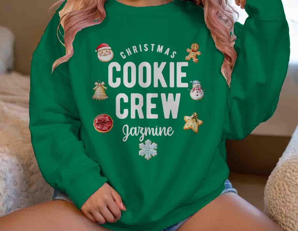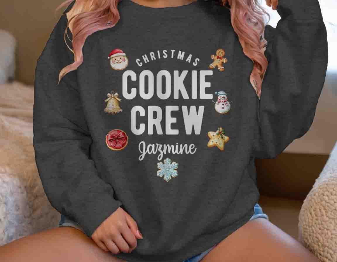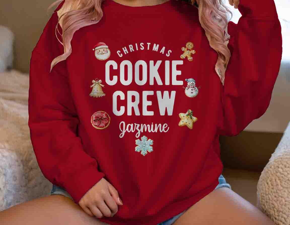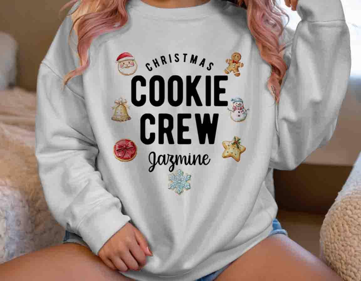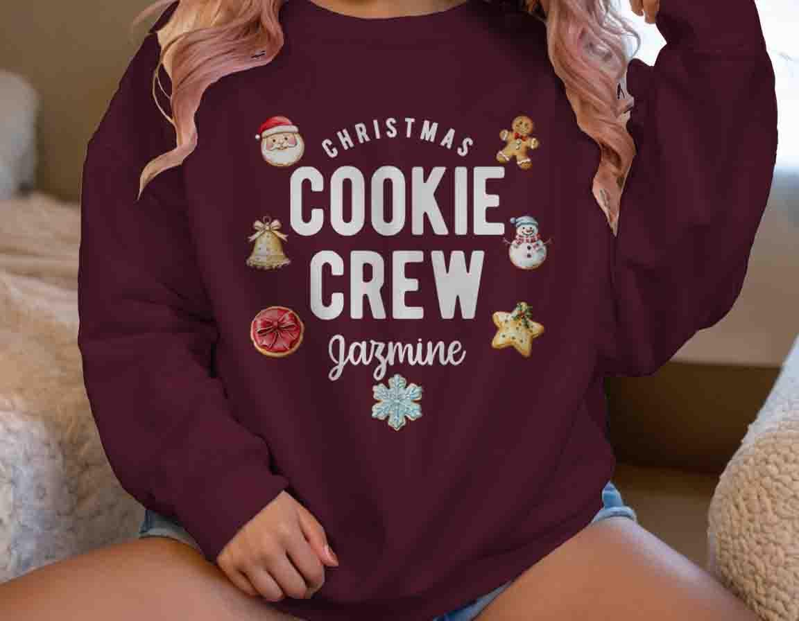 Personalized Christmas Cookie Crew Sweatshirt Custom Name Crewneck Baker Gift Idea Matching Holiday Shirts For Men Women Unisex
