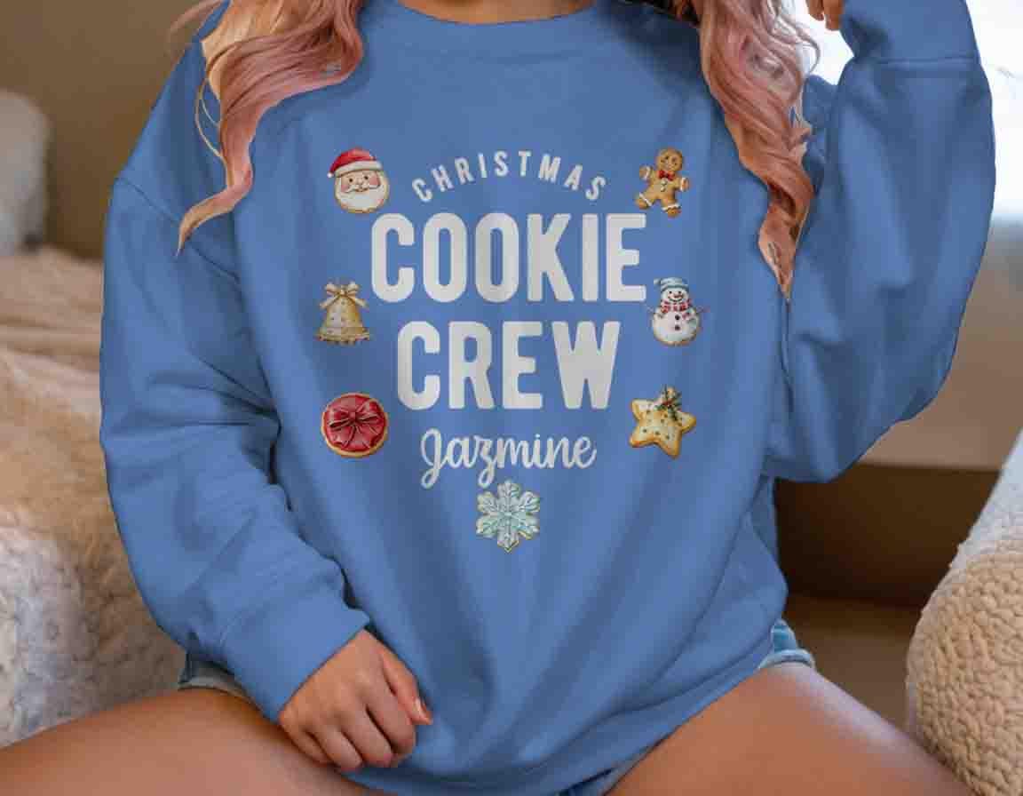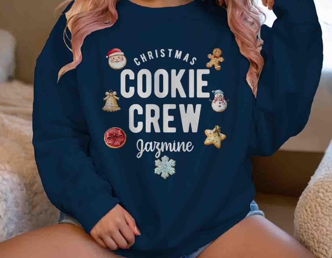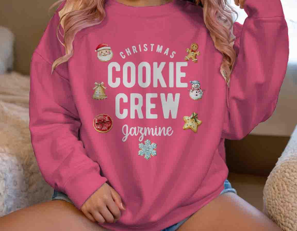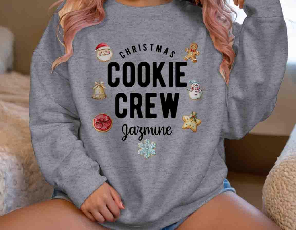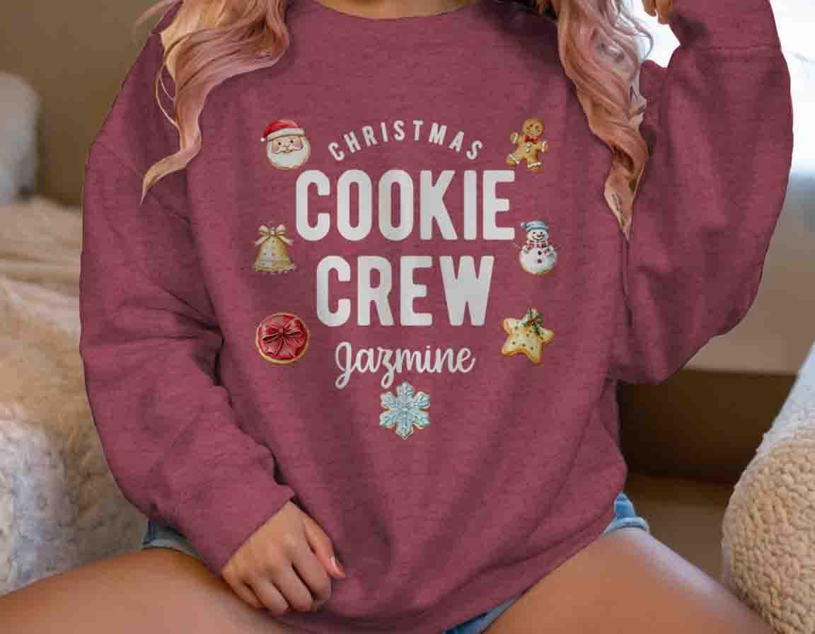 Personalized Christmas Cookie Crew Sweatshirt Custom Name Crewneck Baker Gift Idea Matching Holiday Shirts For Men Women Unisex