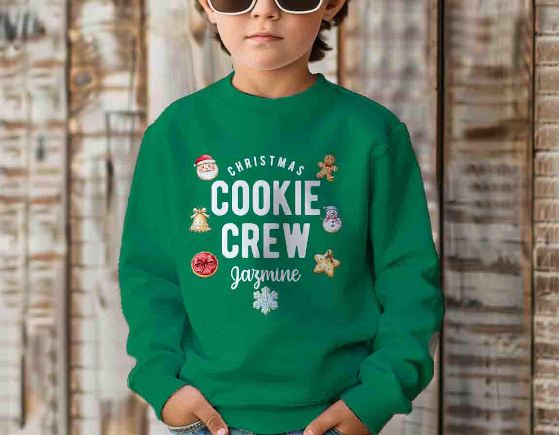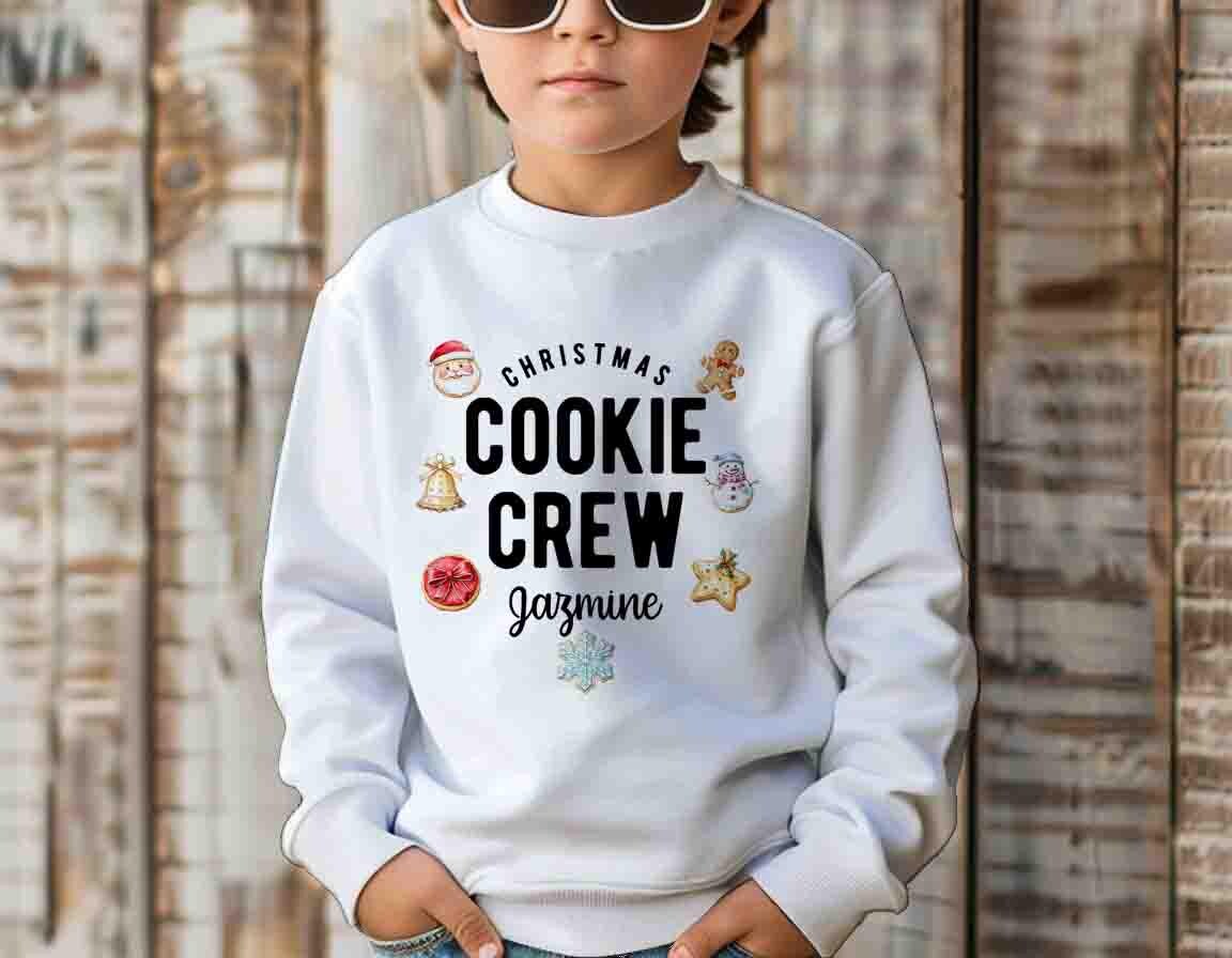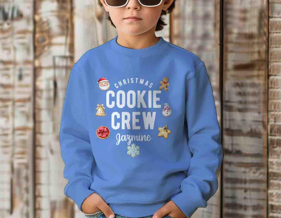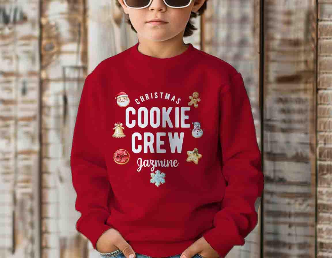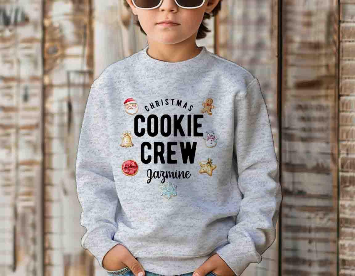 Personalized Christmas Cookie Crew Sweatshirt Custom Name Crewneck Baker Gift Idea Matching Holiday Shirts For Kids Youth