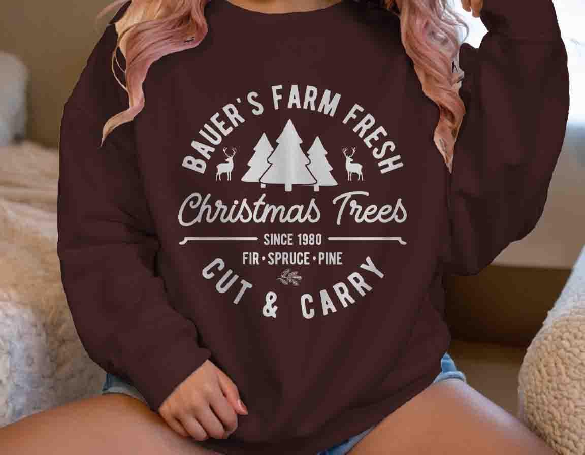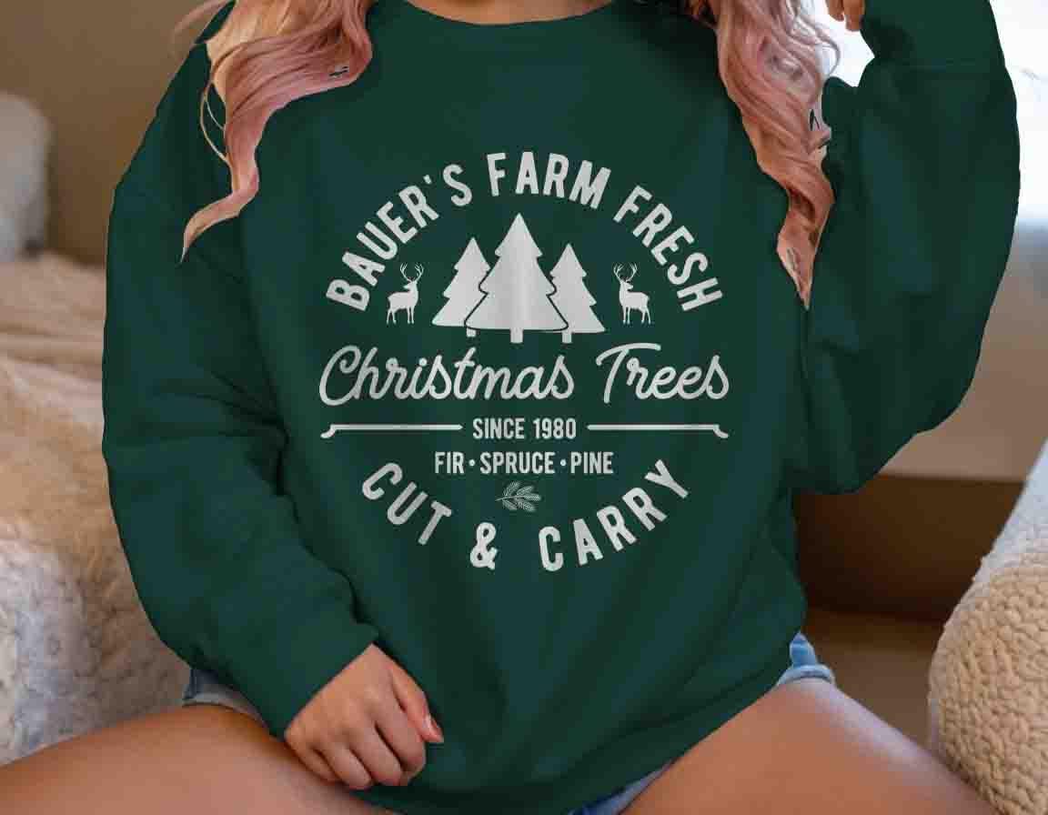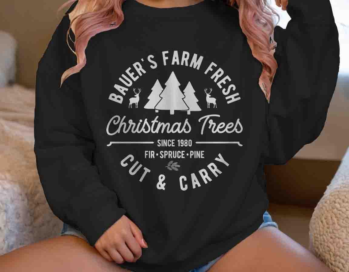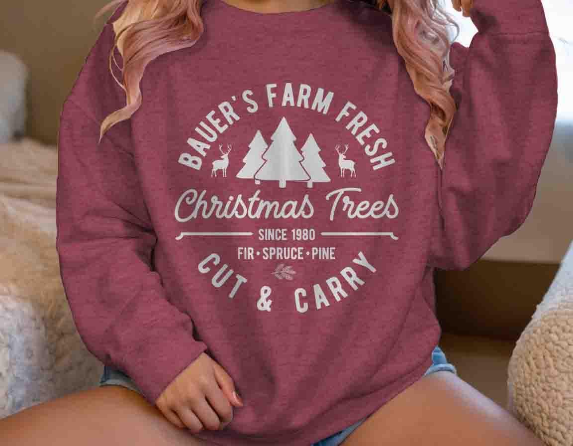 Bring rustic holiday charm wherever you go with this Bauerβs Farm Fresh Christmas Trees t-shirt! Perfect for tree farm visits, holiday decorating, or cozy cabin days. Vintage-inspired design printed on soft, comfy fabric β ideal for anyone who loves the magic of Christmas and the scent of fresh pine. πππ This personalized tee will feature all of your farm's details.