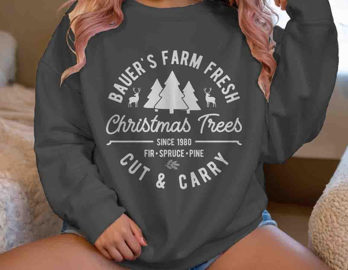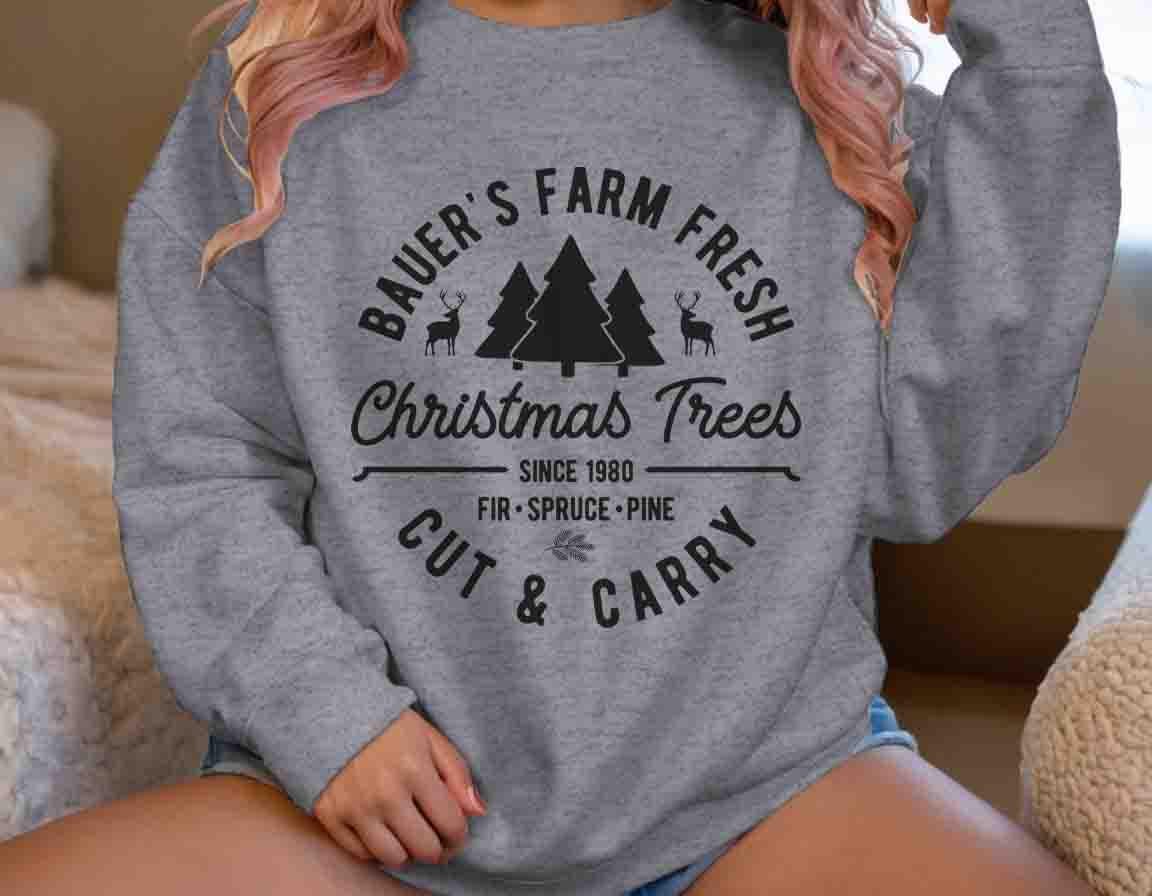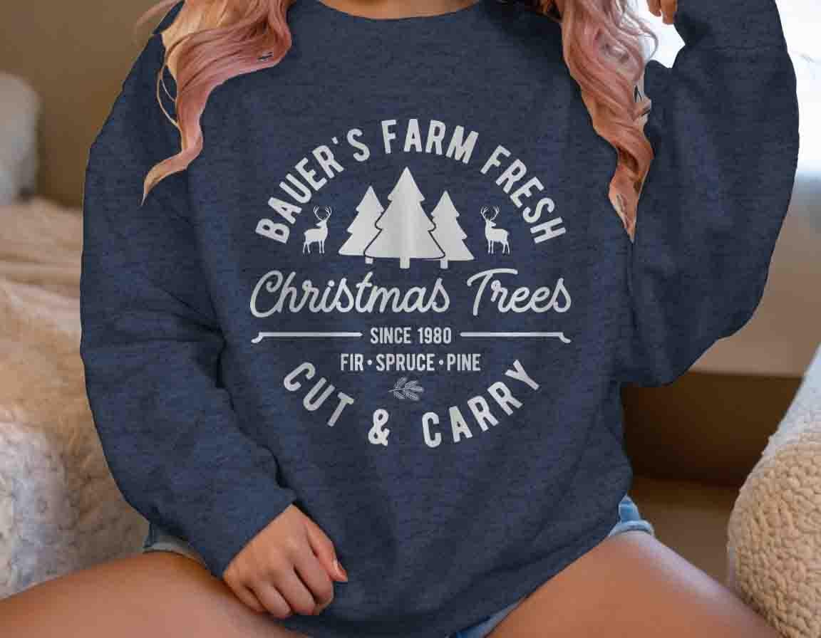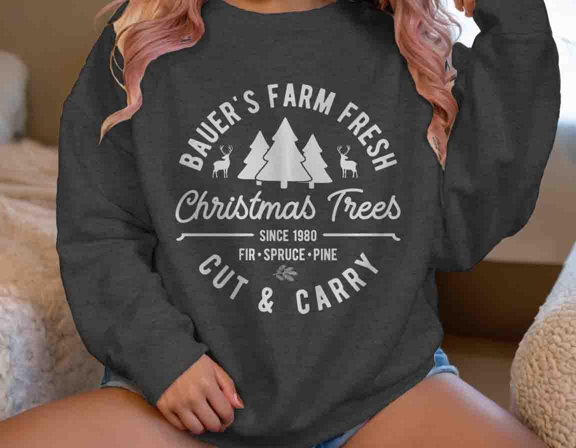 Bring rustic holiday charm wherever you go with this Bauerβs Farm Fresh Christmas Trees t-shirt! Perfect for tree farm visits, holiday decorating, or cozy cabin days. Vintage-inspired design printed on soft, comfy fabric β ideal for anyone who loves the magic of Christmas and the scent of fresh pine. πππ This personalized tee will feature all of your farm's details.