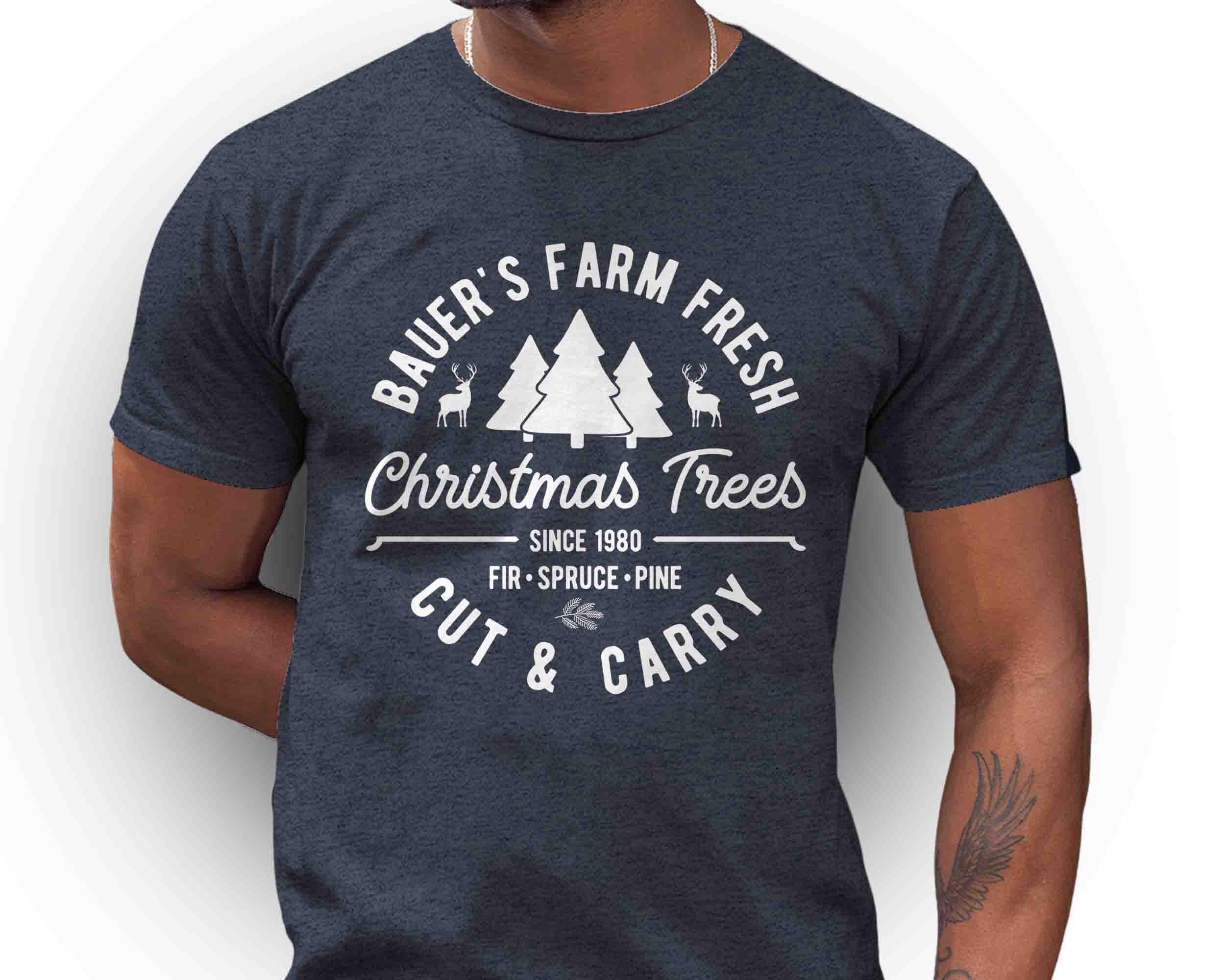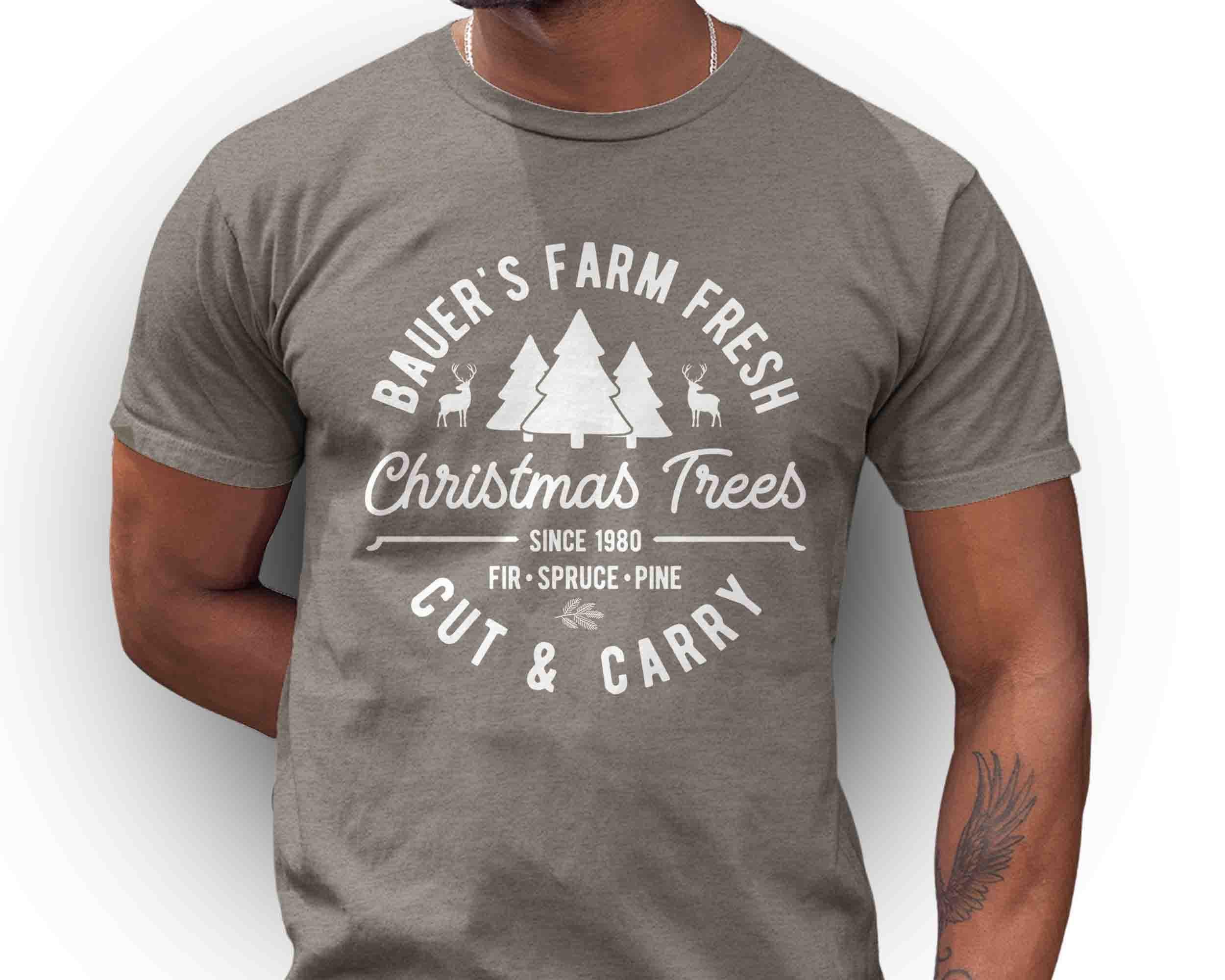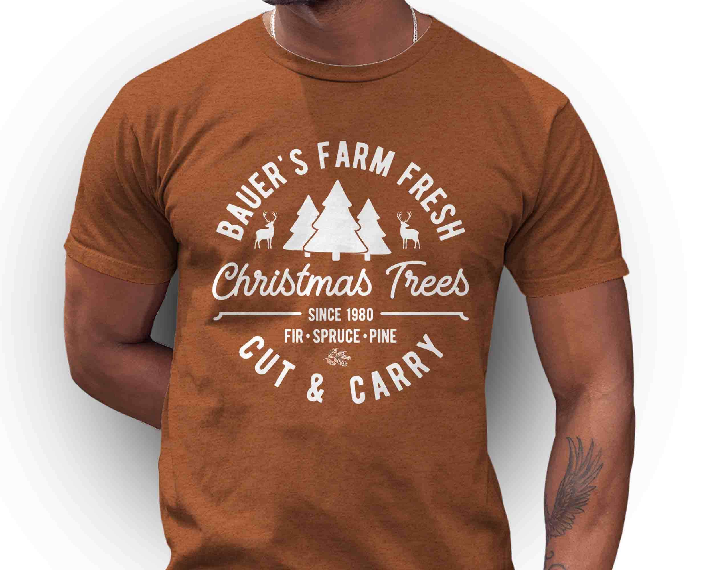 Bring rustic holiday charm wherever you go with this Bauer’s Farm Fresh Christmas Trees t-shirt! Perfect for tree farm visits, holiday decorating, or cozy cabin days. Vintage-inspired design printed on soft, comfy fabric — ideal for anyone who loves the magic of Christmas and the scent of fresh pine. 🎄🎄🎄 This personalized tee will feature all of your farm's details.