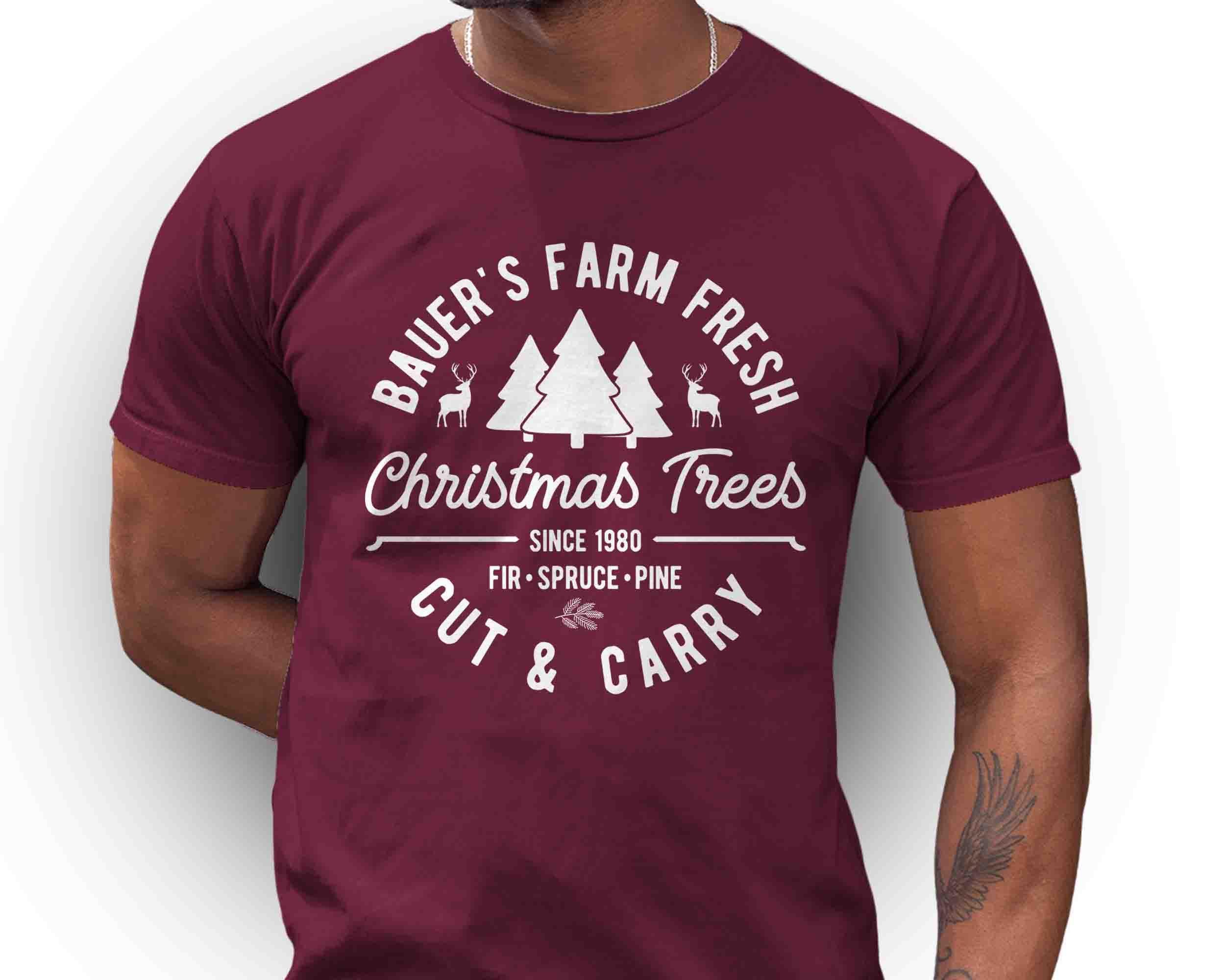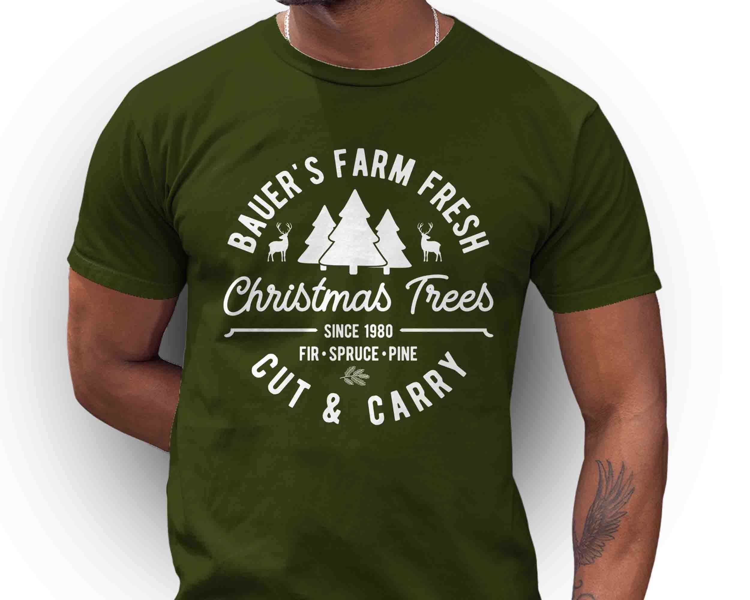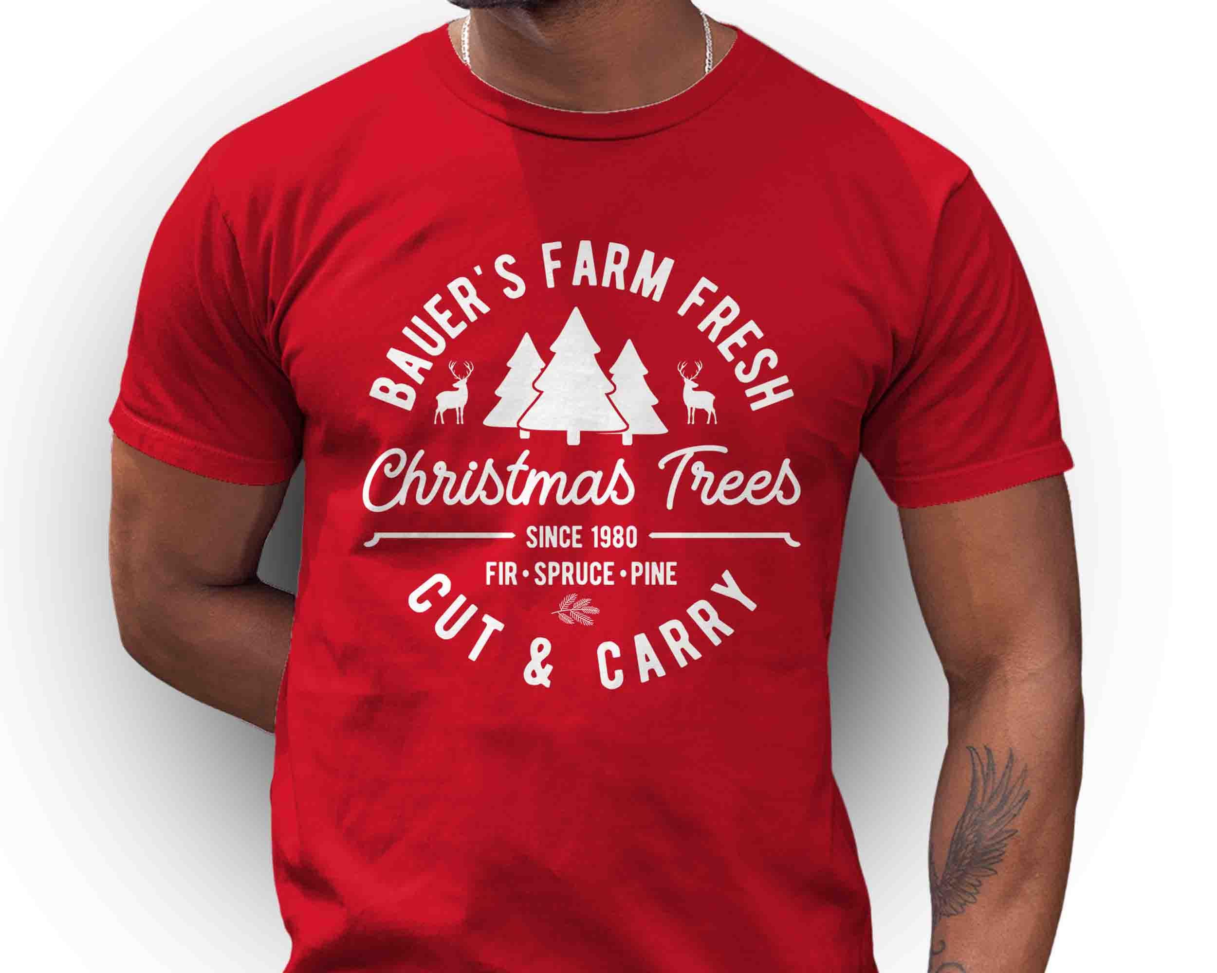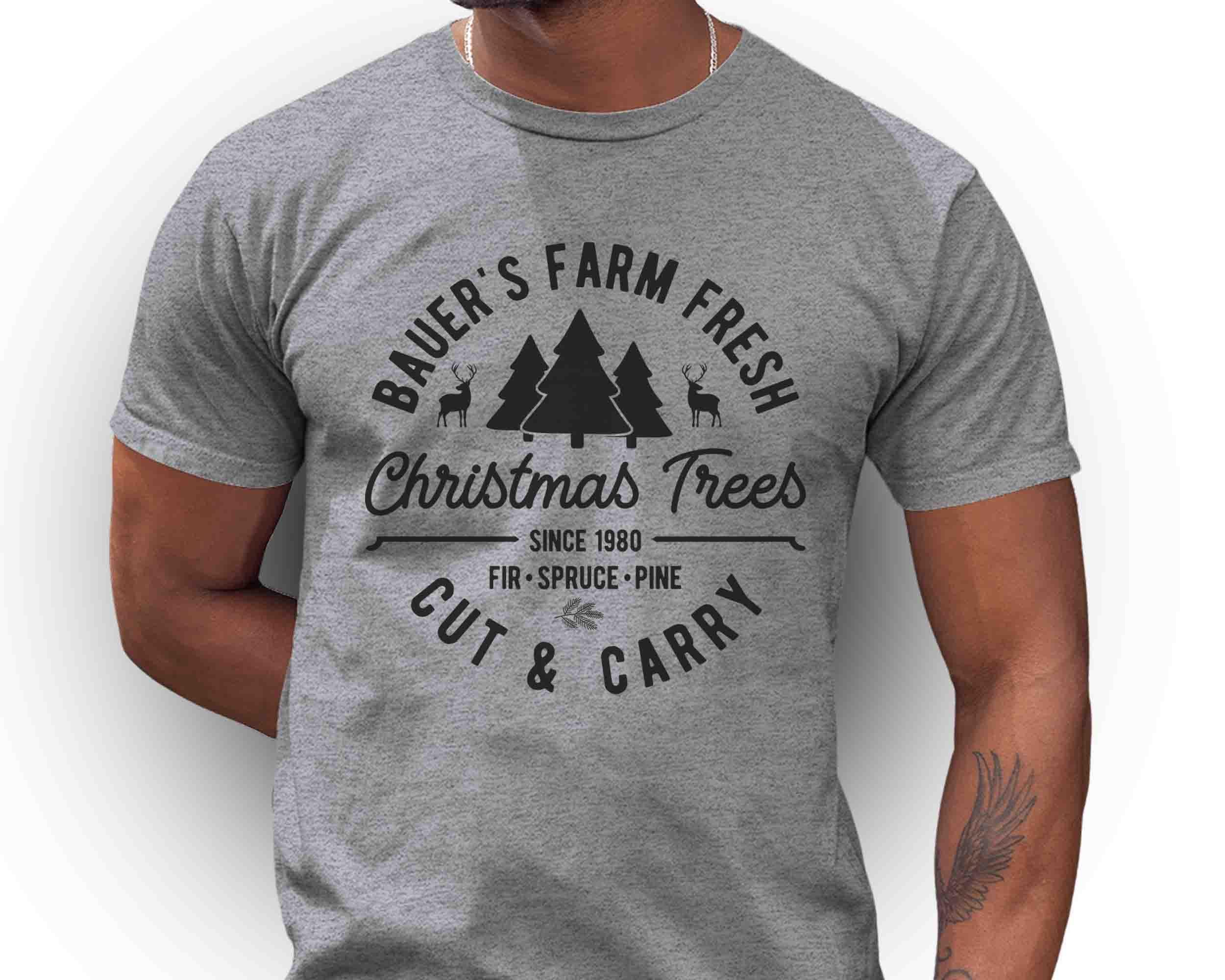 Bring rustic holiday charm wherever you go with this Bauer’s Farm Fresh Christmas Trees t-shirt! Perfect for tree farm visits, holiday decorating, or cozy cabin days. Vintage-inspired design printed on soft, comfy fabric — ideal for anyone who loves the magic of Christmas and the scent of fresh pine. 🎄🎄🎄 This personalized tee will feature all of your farm's details.