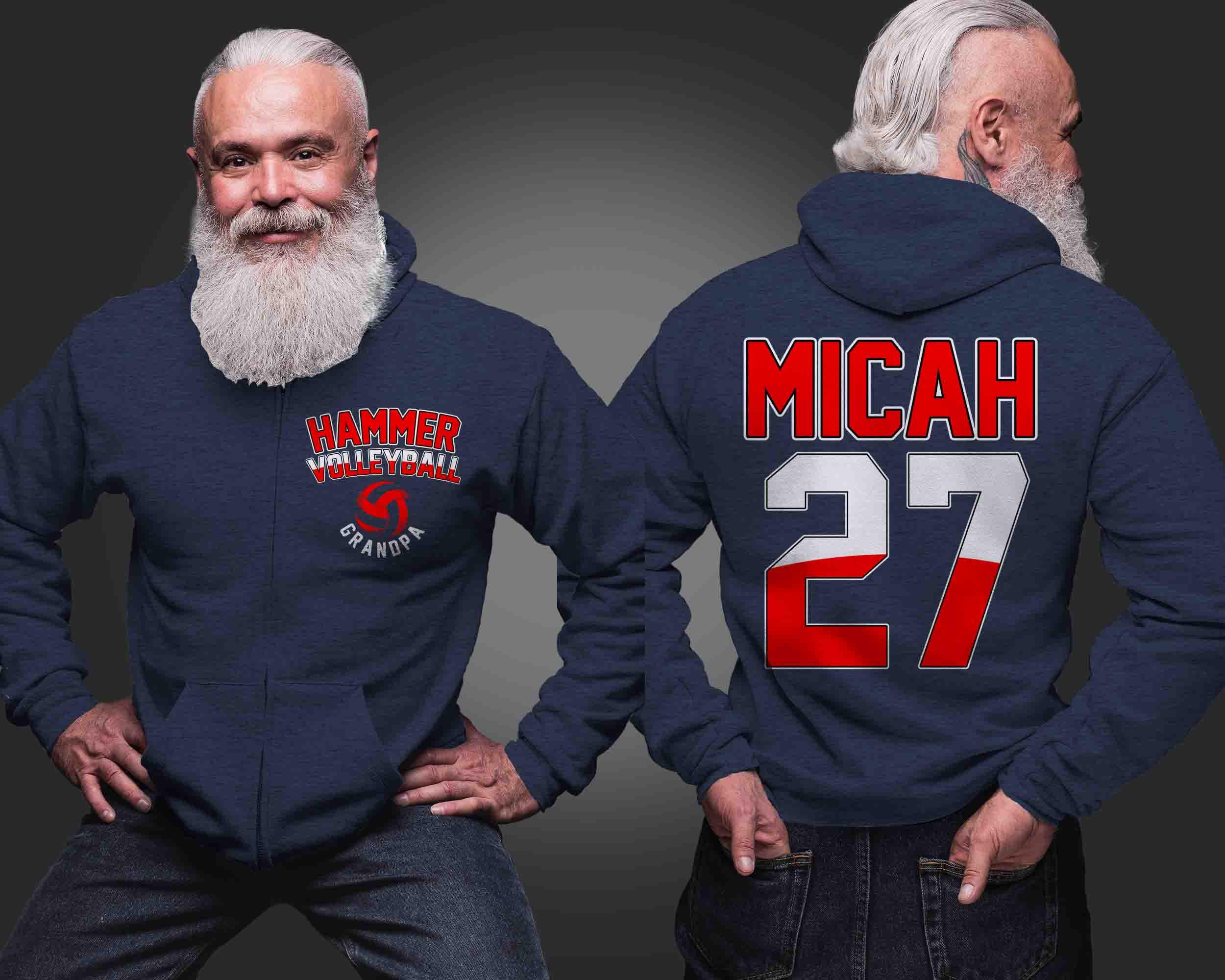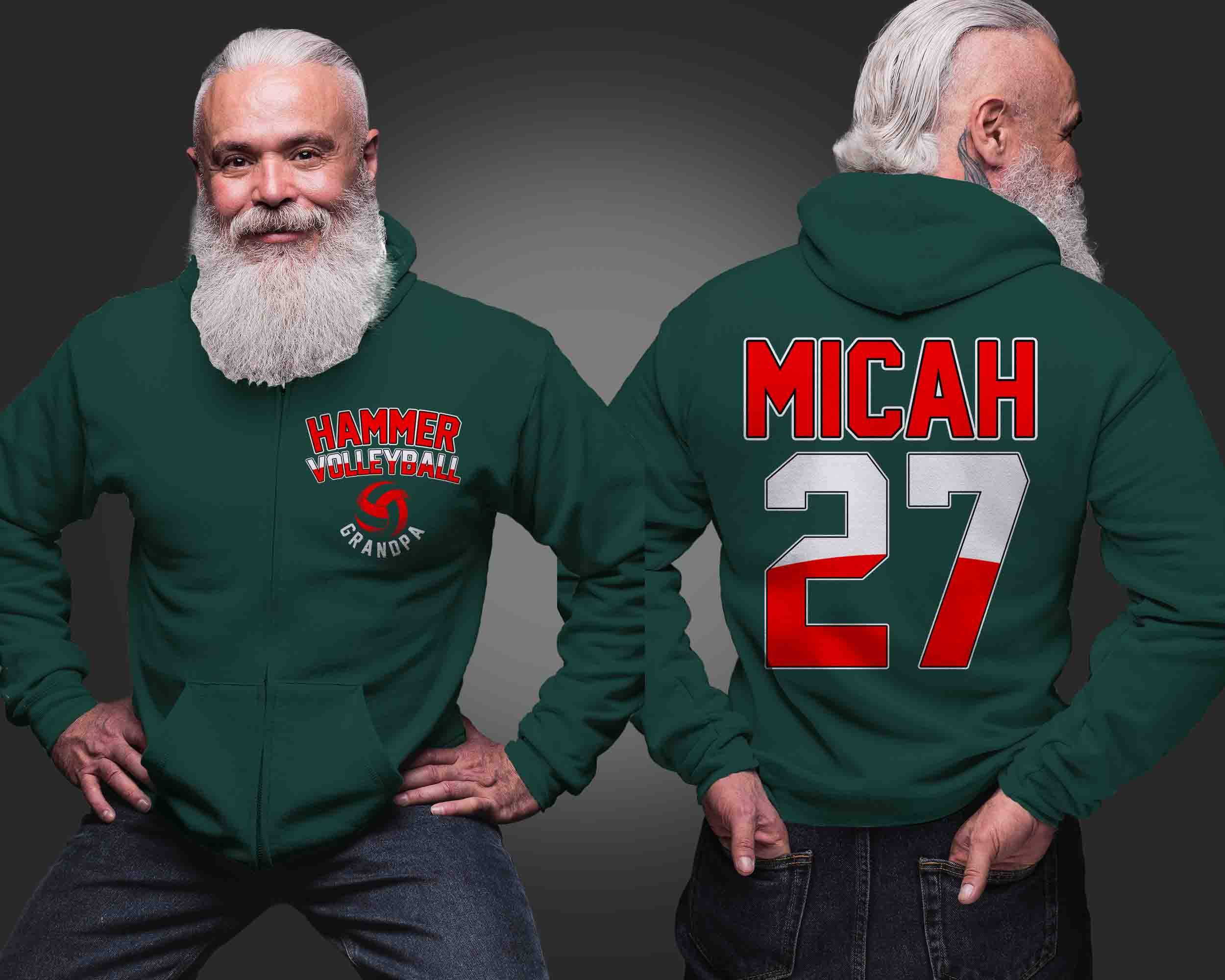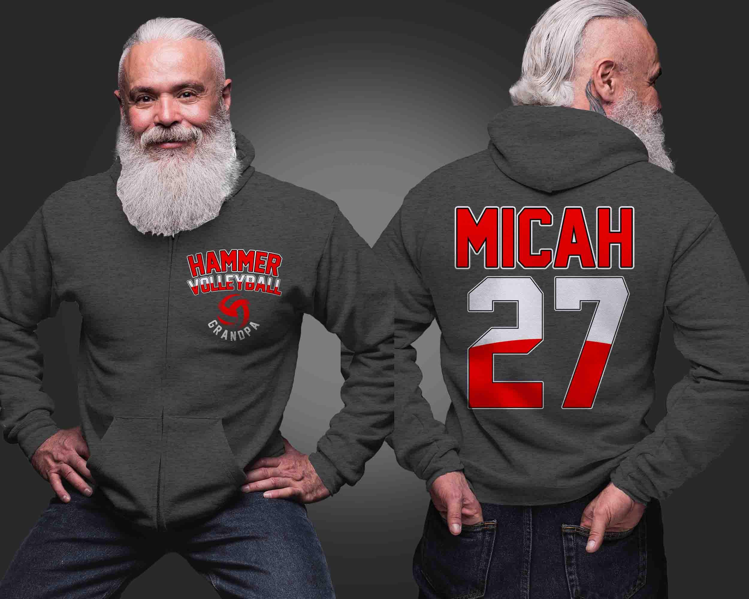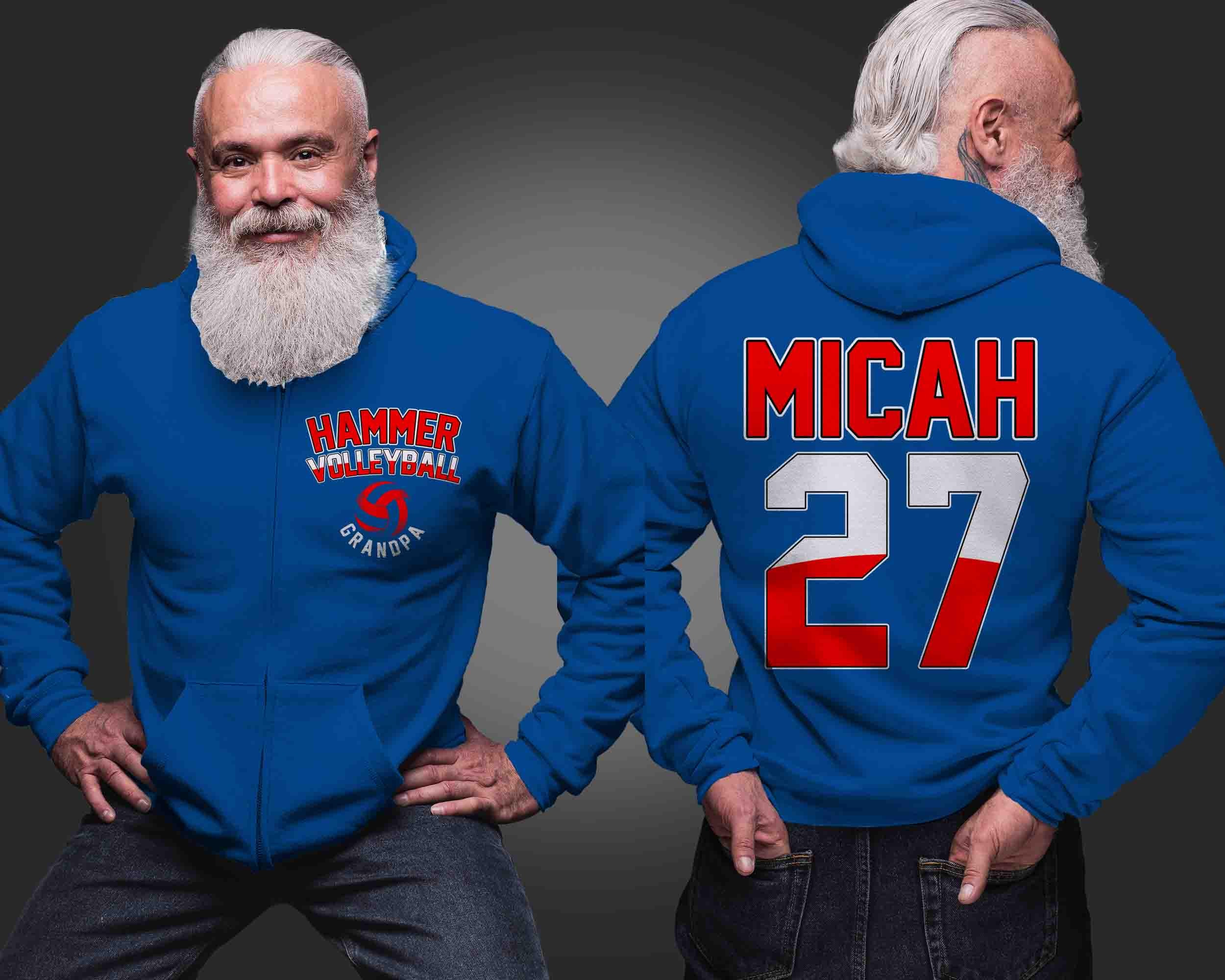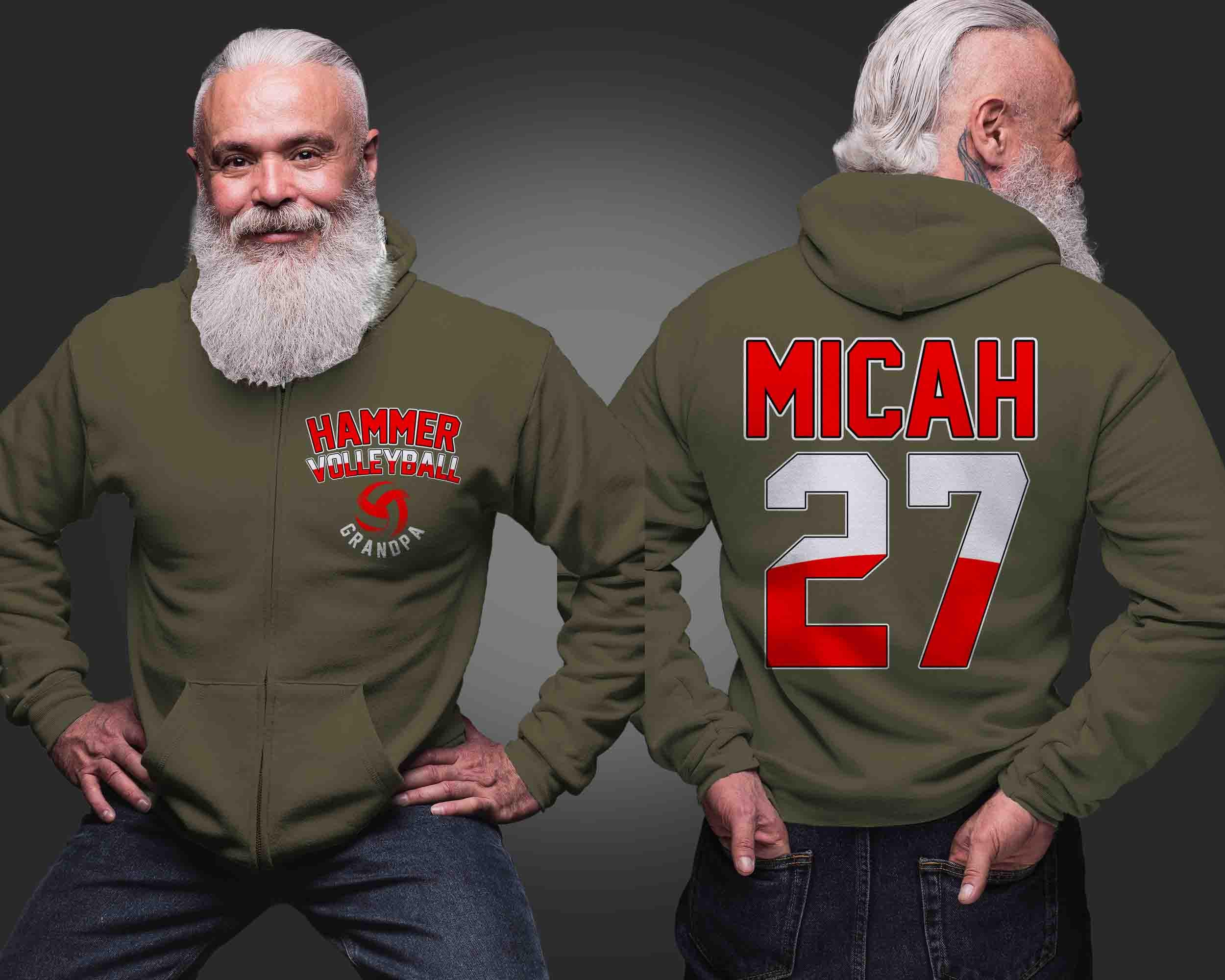 Celebrate the game of volleyball with this personalized, custom hoodie! Perfect for brothers, teammates, or anyone who shares a love for the game, this zip up hoodie lets you feature a volleyball player. You can customize it with their name, number, team name, or mascot that captures their camaraderie. Made from soft and comfortable fabric, this personalized volleyball zippered hoody sweatshirt is ideal for wearing to games, practices, or just showing off their passion for the sport. It's a unique and thoughtful gift for any volleyball player, from intermural to seasoned athletes. Also great for volleyball dads and moms to show their pride!