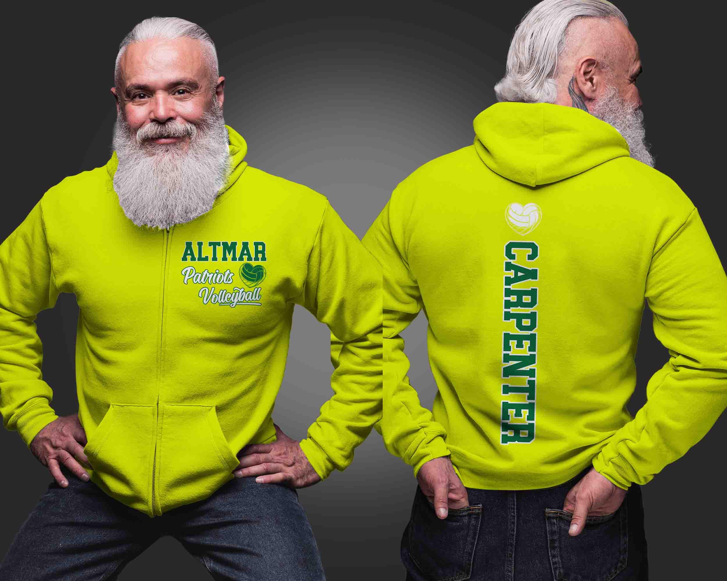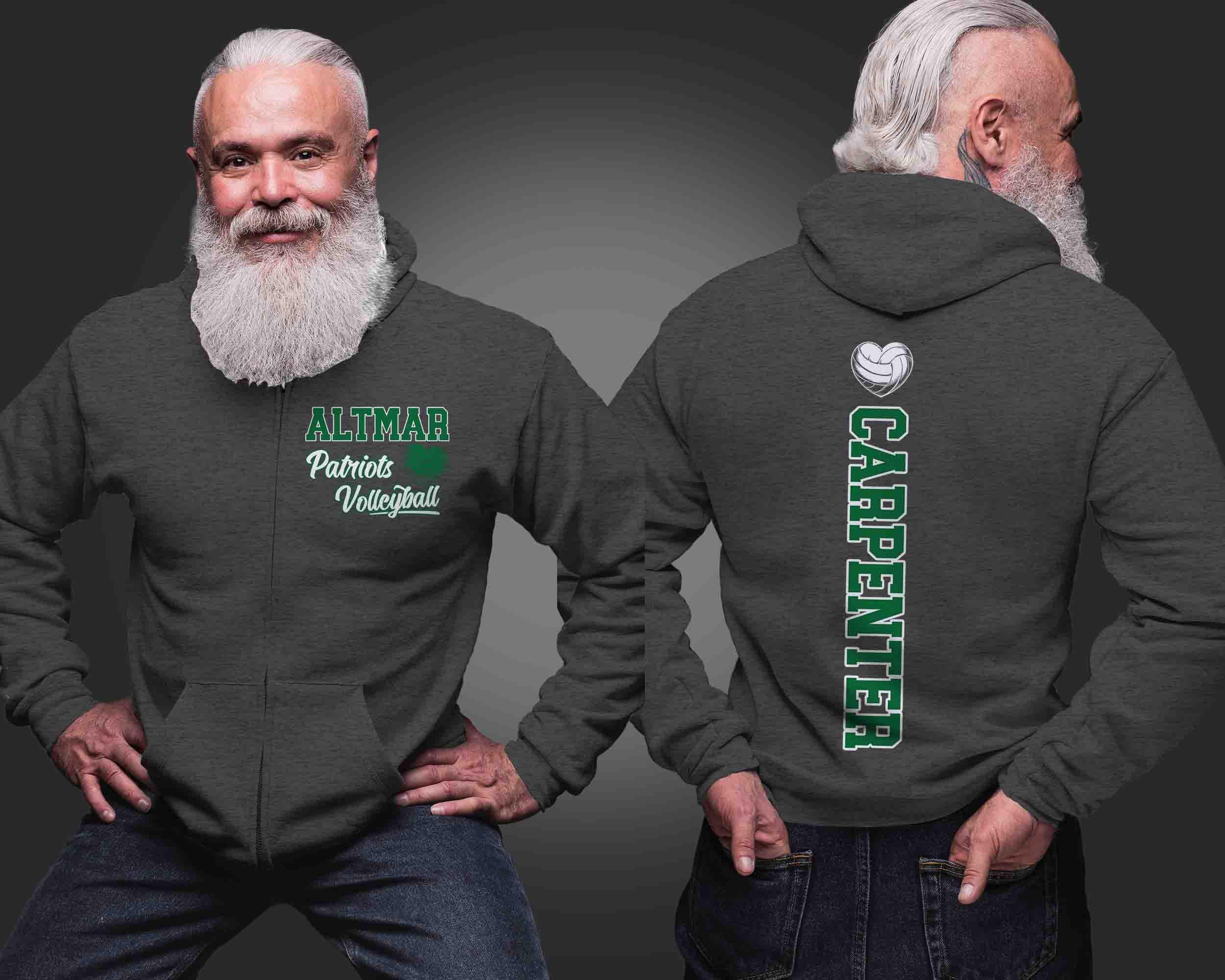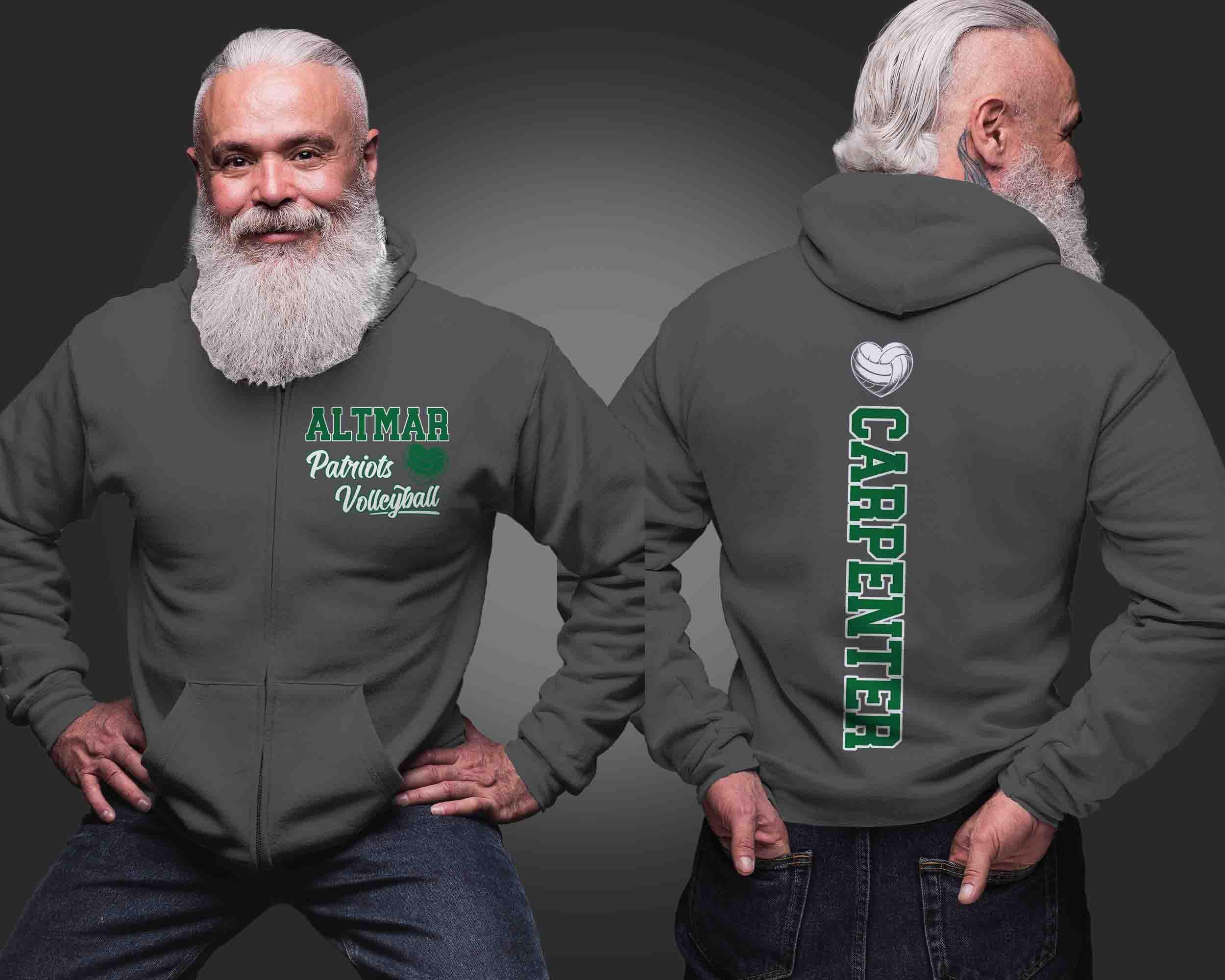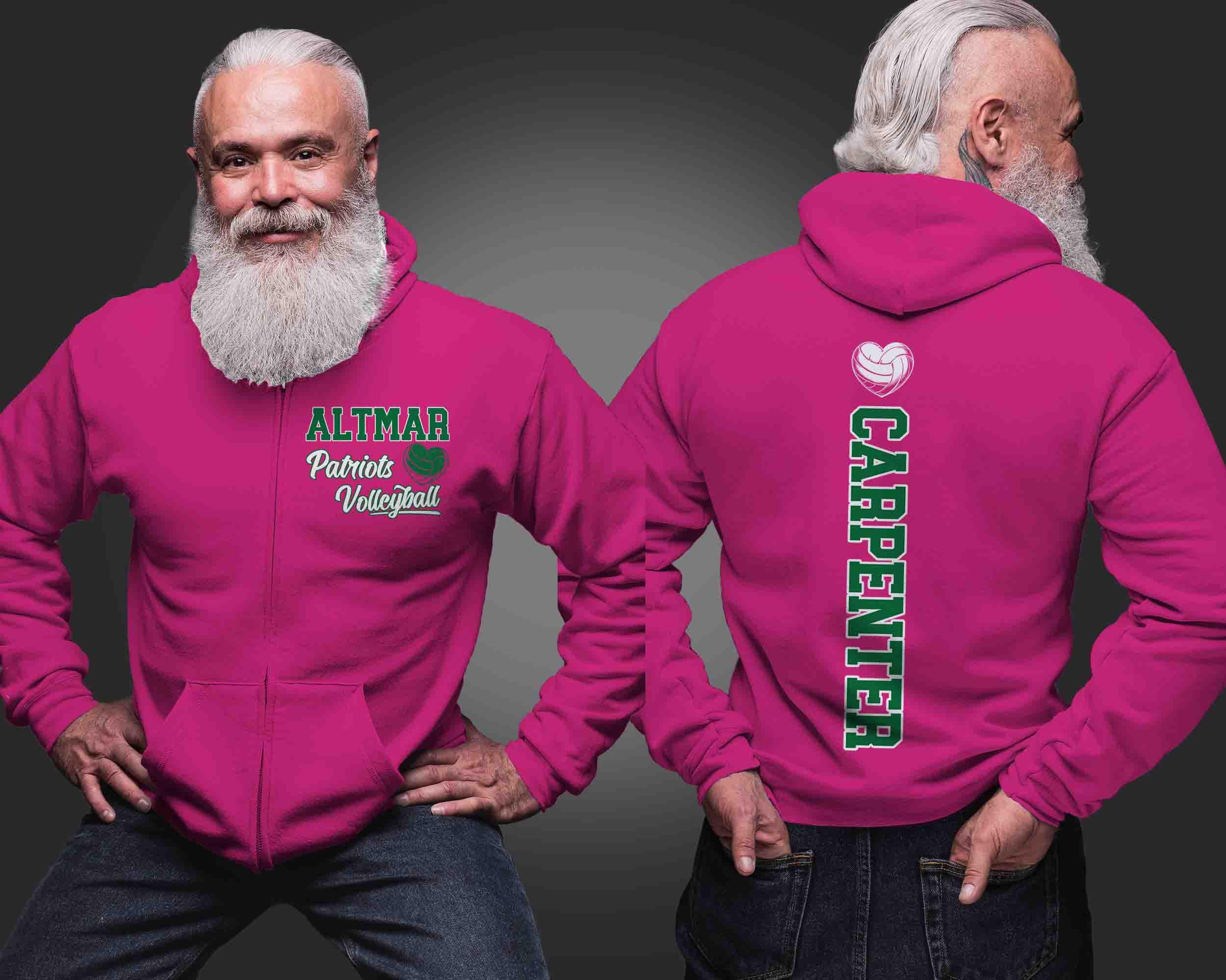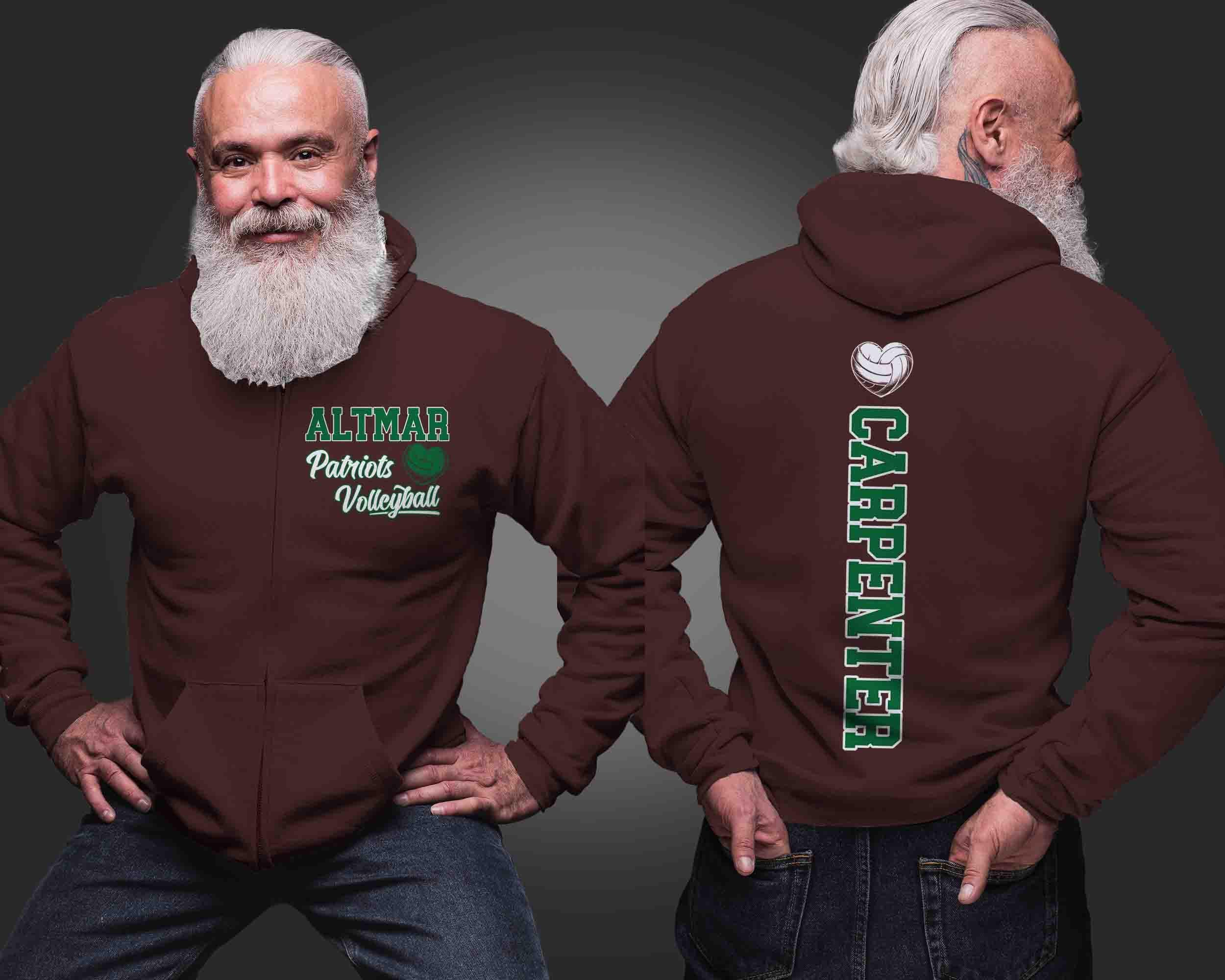 Celebrate the game of volleyball with this personalized, custom hoodie! Perfect for brothers, teammates, or anyone who shares a love for the game, this zip up hoodie lets you feature a volleyball player. You can customize it with their name, number, team name, or mascot that captures their camaraderie. Made from soft and comfortable fabric, this personalized volleyball zippered hoody sweatshirt is ideal for wearing to games, practices, or just showing off their passion for the sport. It's a unique and thoughtful gift for any volleyball player, from intermural to seasoned athletes. Also great for volleyball dads and moms to show their pride!