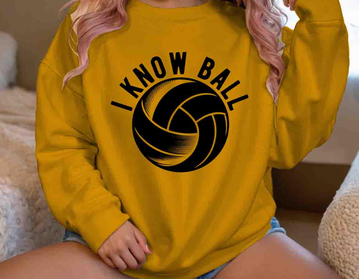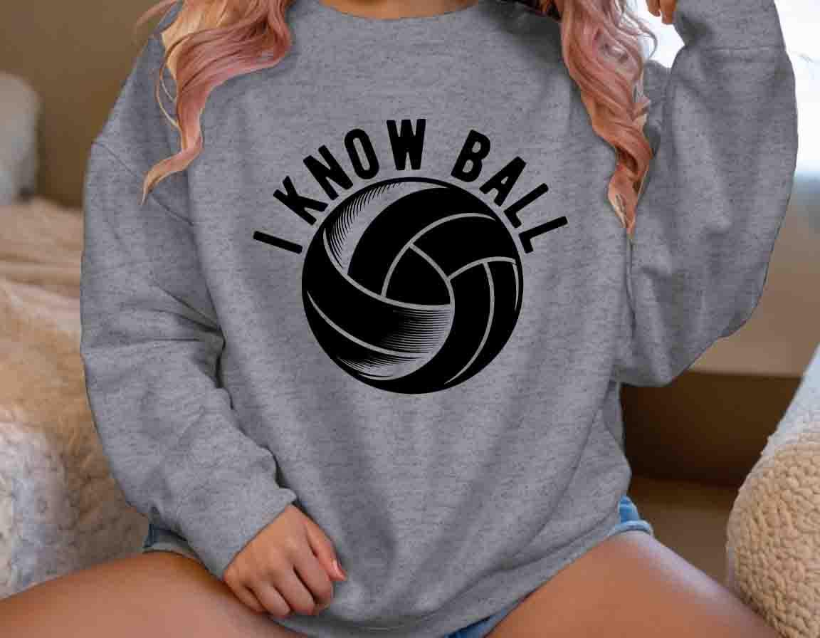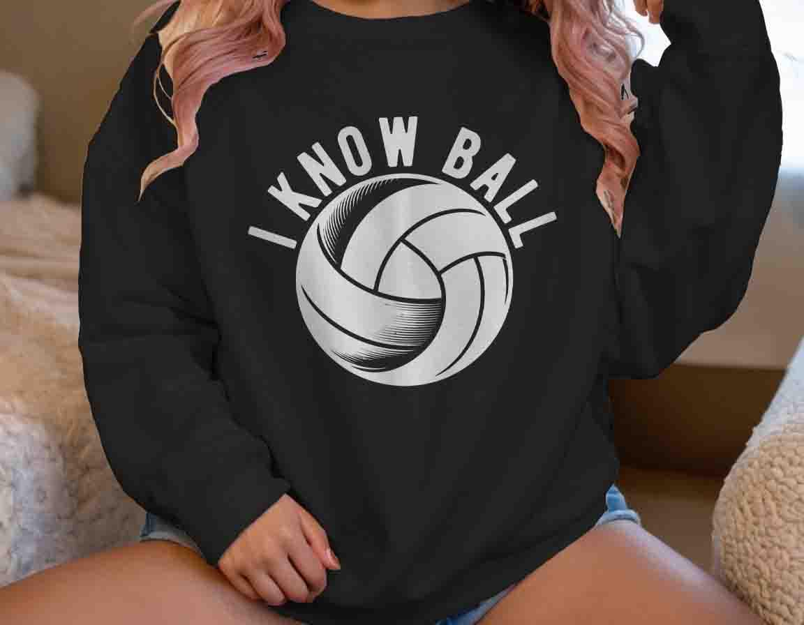 This funny volleyball sweatshirt is perfect for players who bring the heat on the court! With the bold statement "I Know Ball", this tee lets everyone know you're not afraid to play hard and go for the aggressive spike. It's a great way to show off your competitive spirit and sense of humor, whether you're on the court or hanging out with friends. This design is sure to be a hit with volleyball enthusiasts who love a good laugh and don't shy away from a challenge.
