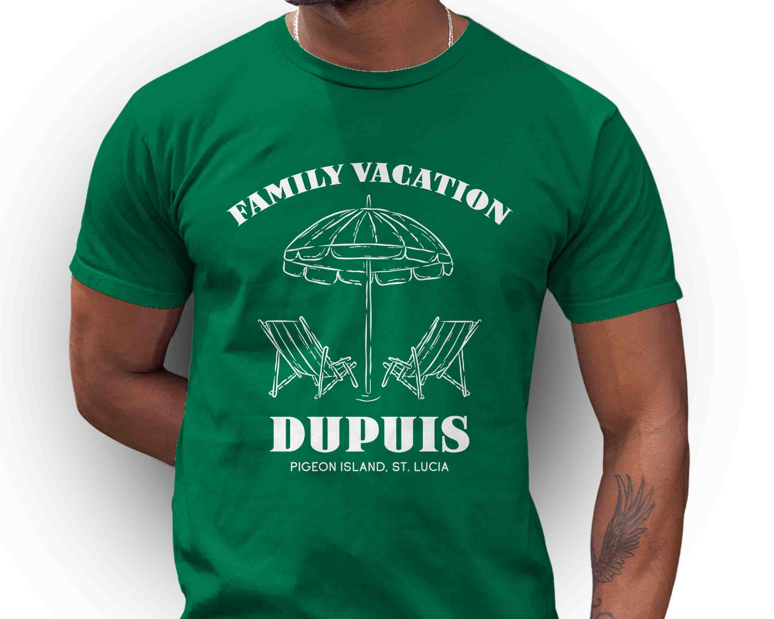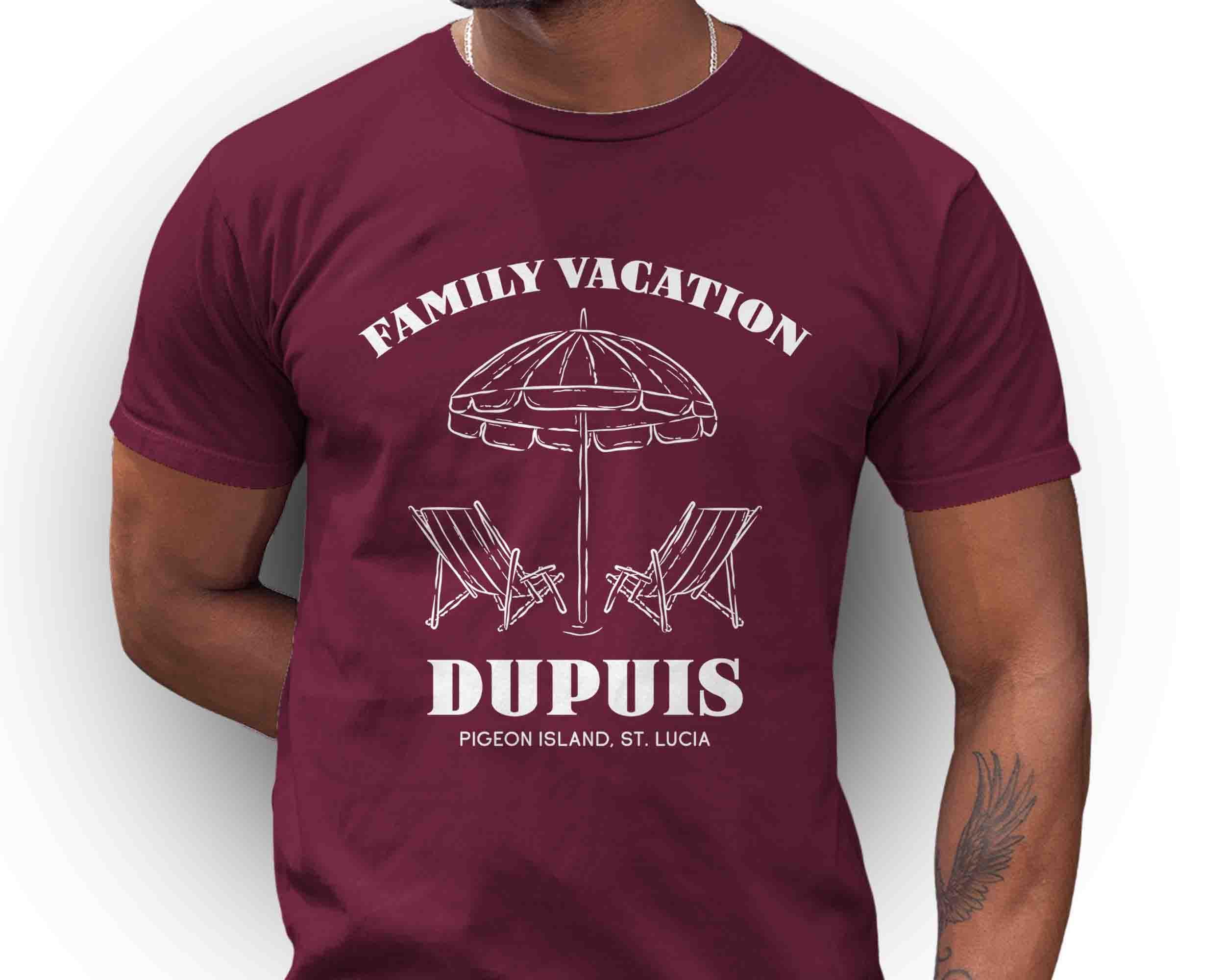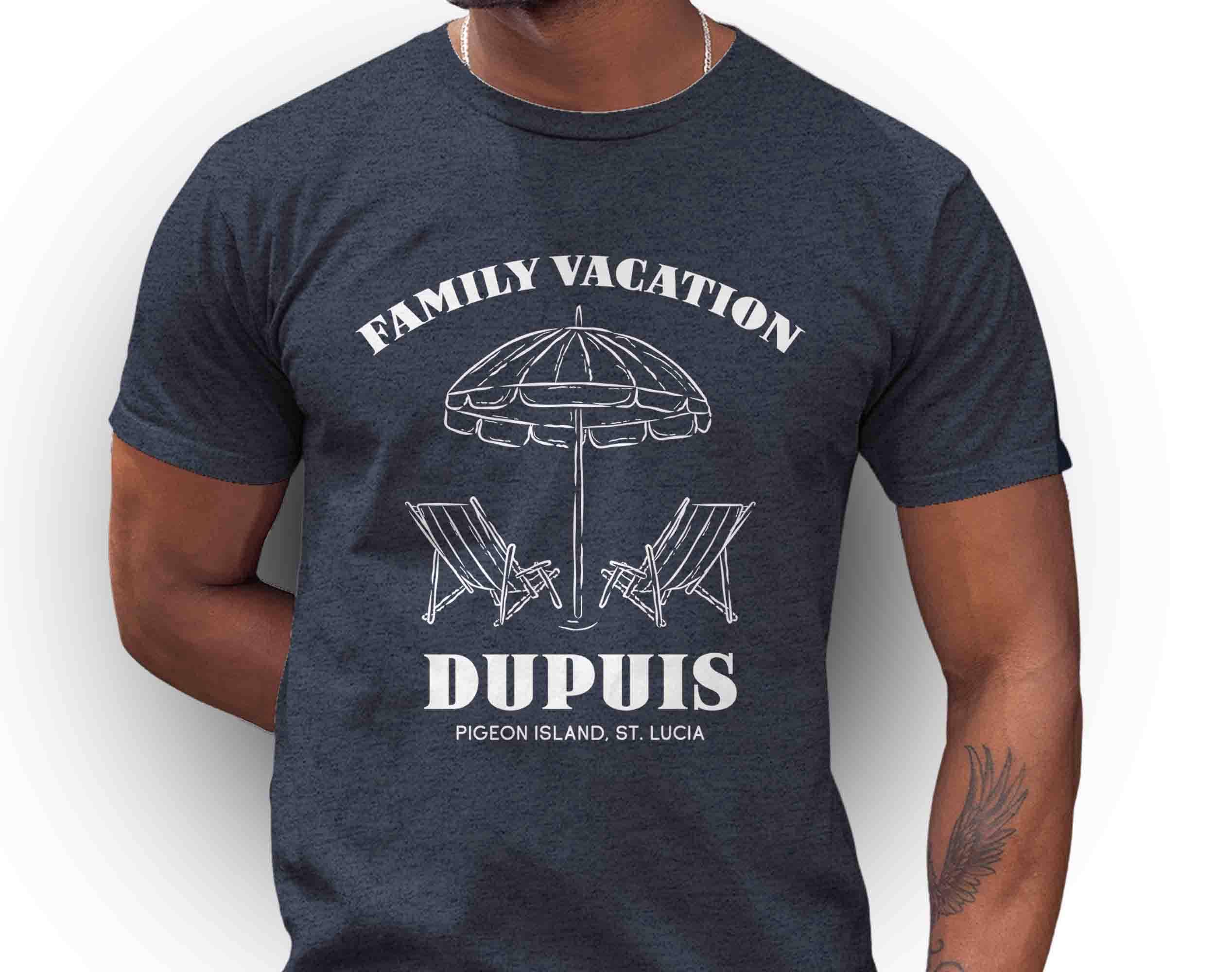 What a great way to commemorate your vacation or let others know you're traveling in a group! These matching vacation, cruise or resort t-shirts feature a cool gender neutral silhouette of two beach chairs and umbrella. It will be personalized with all of your details. Proof provided prior to shipping.