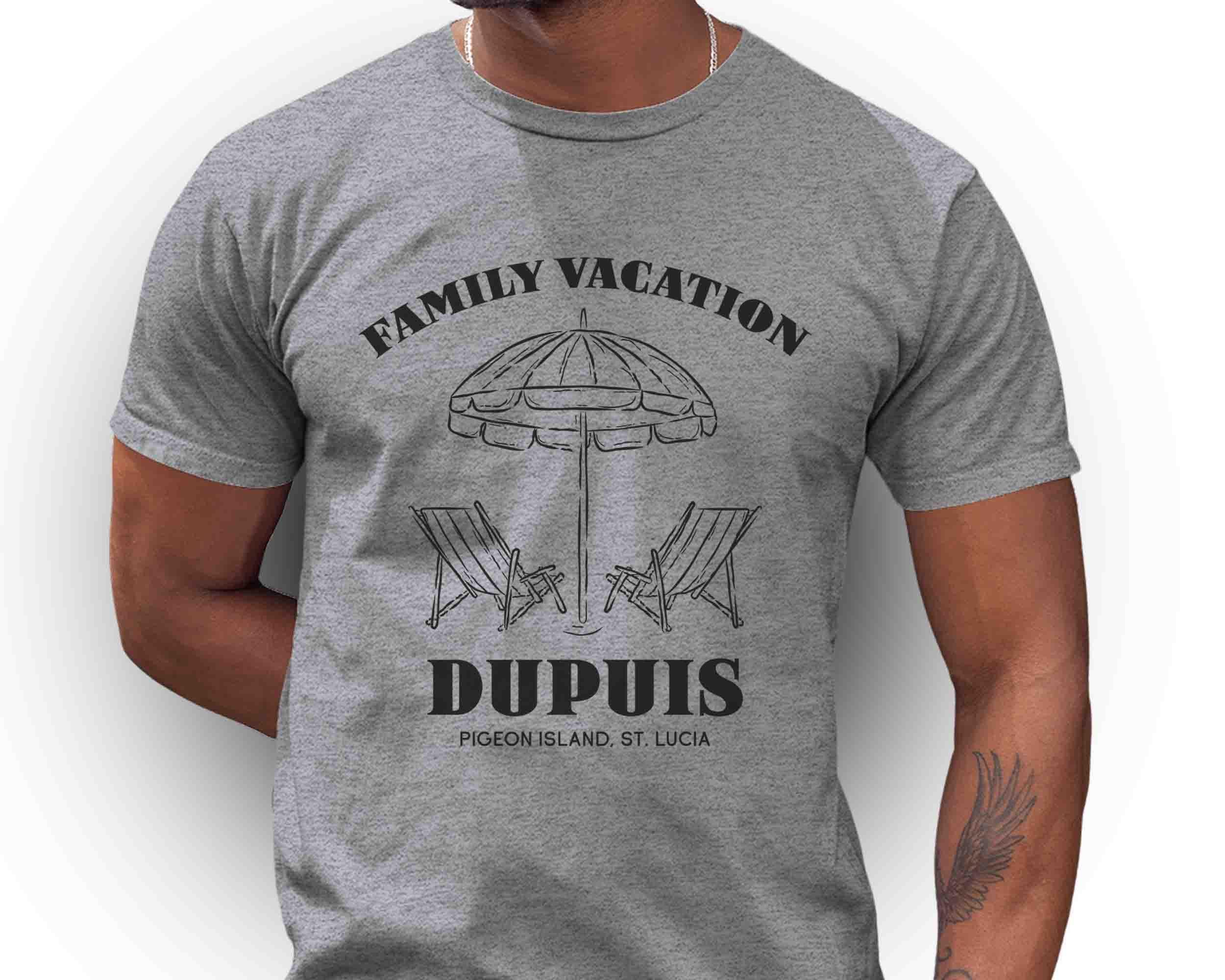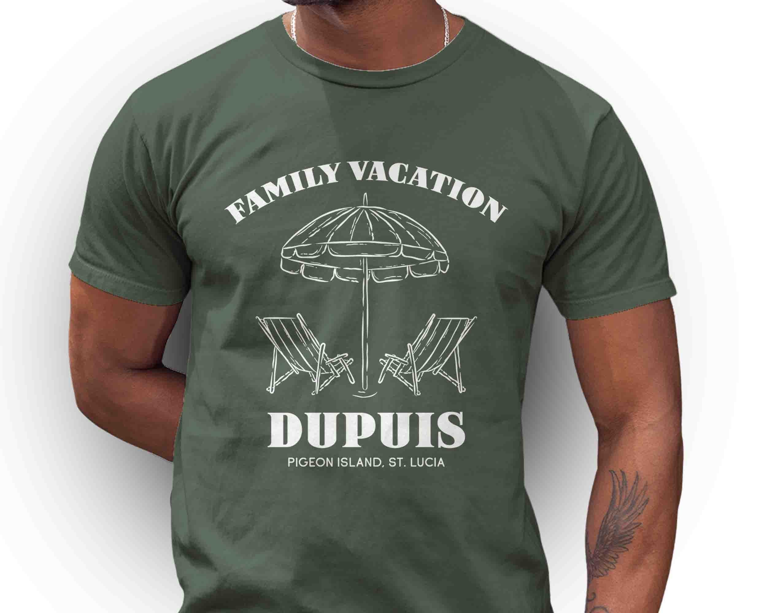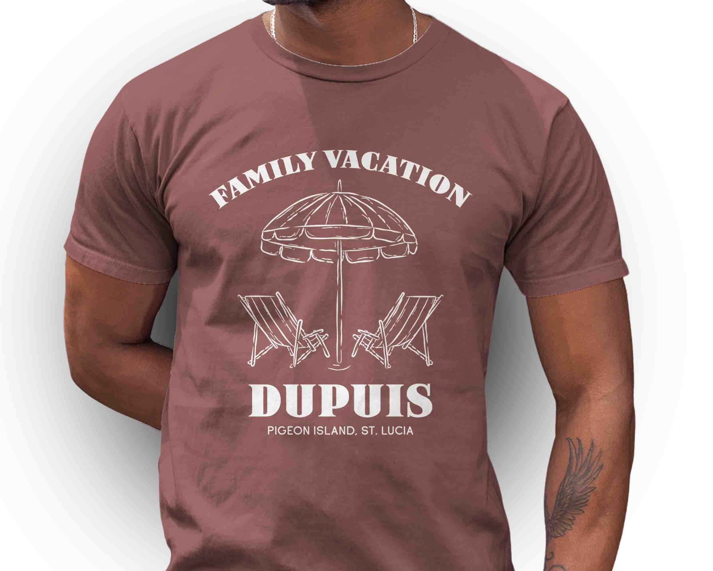 What a great way to commemorate your vacation or let others know you're traveling in a group! These matching vacation, cruise or resort t-shirts feature a cool gender neutral silhouette of two beach chairs and umbrella. It will be personalized with all of your details. Proof provided prior to shipping.