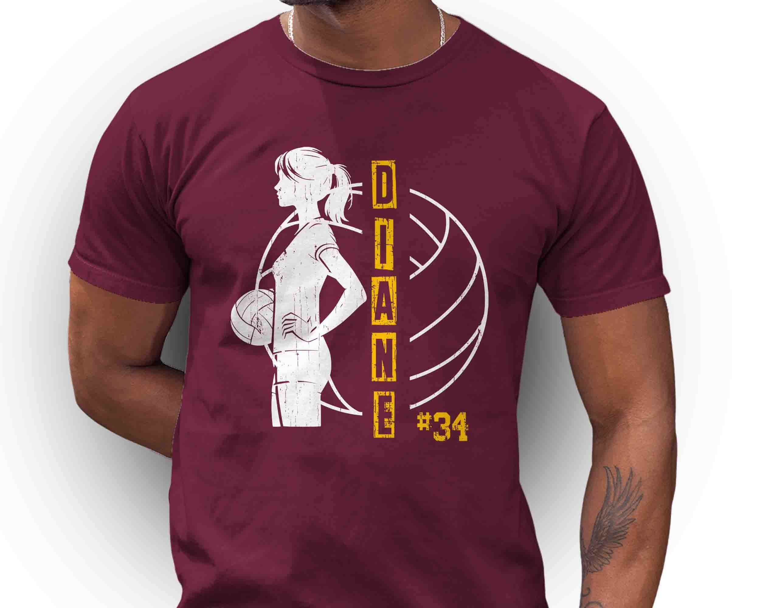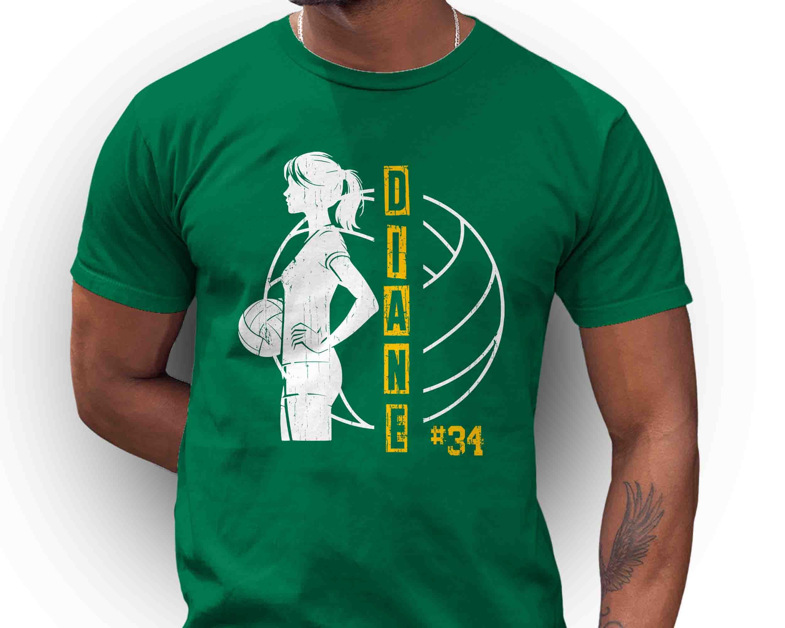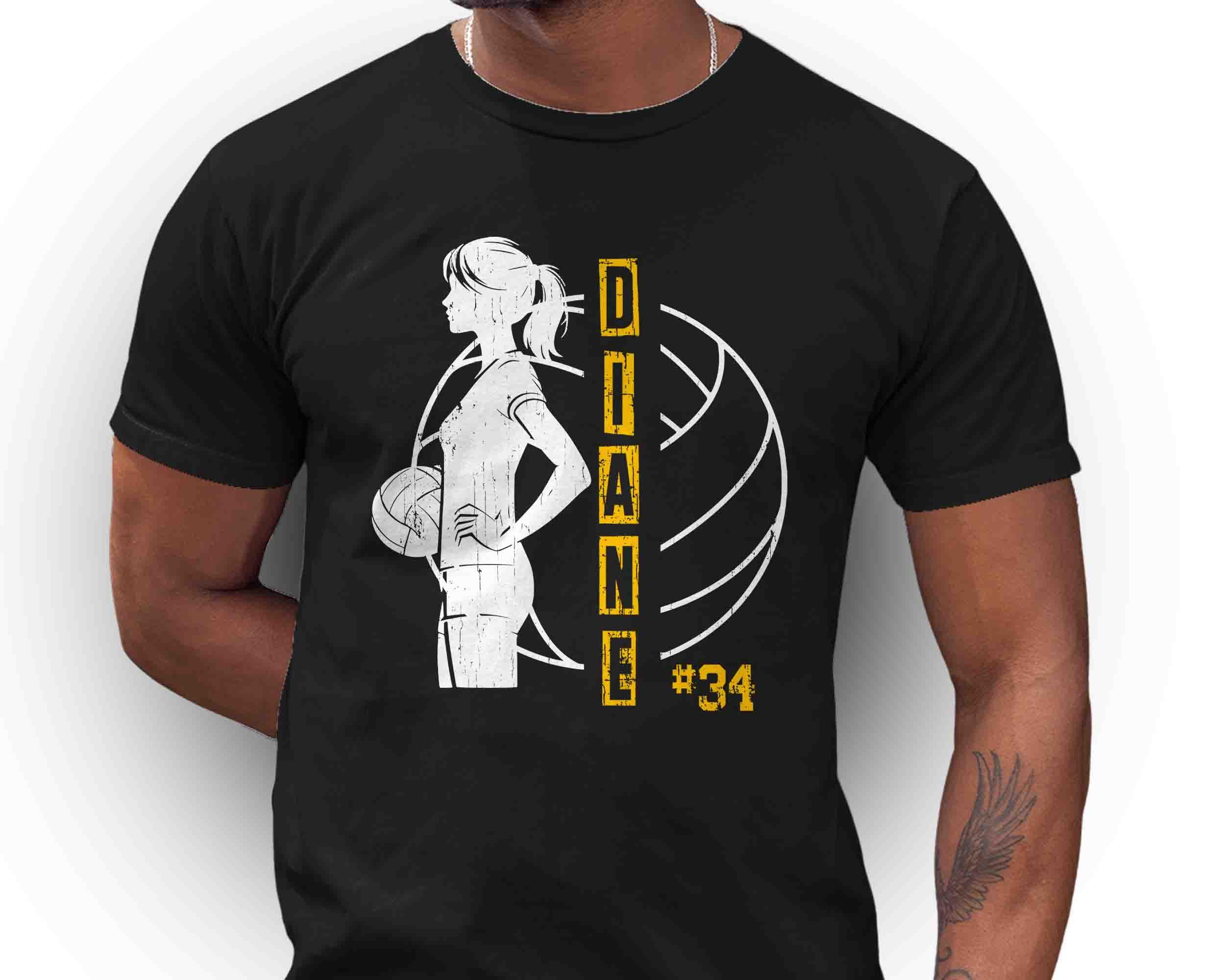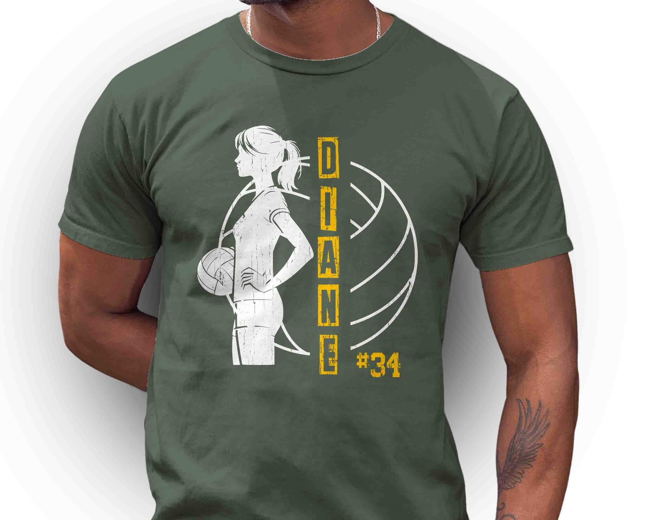 Personalized Volleyball T-Shirt: Custom Female Player Silhouette Dad Mom Gift Idea Cotton T-Shirt
