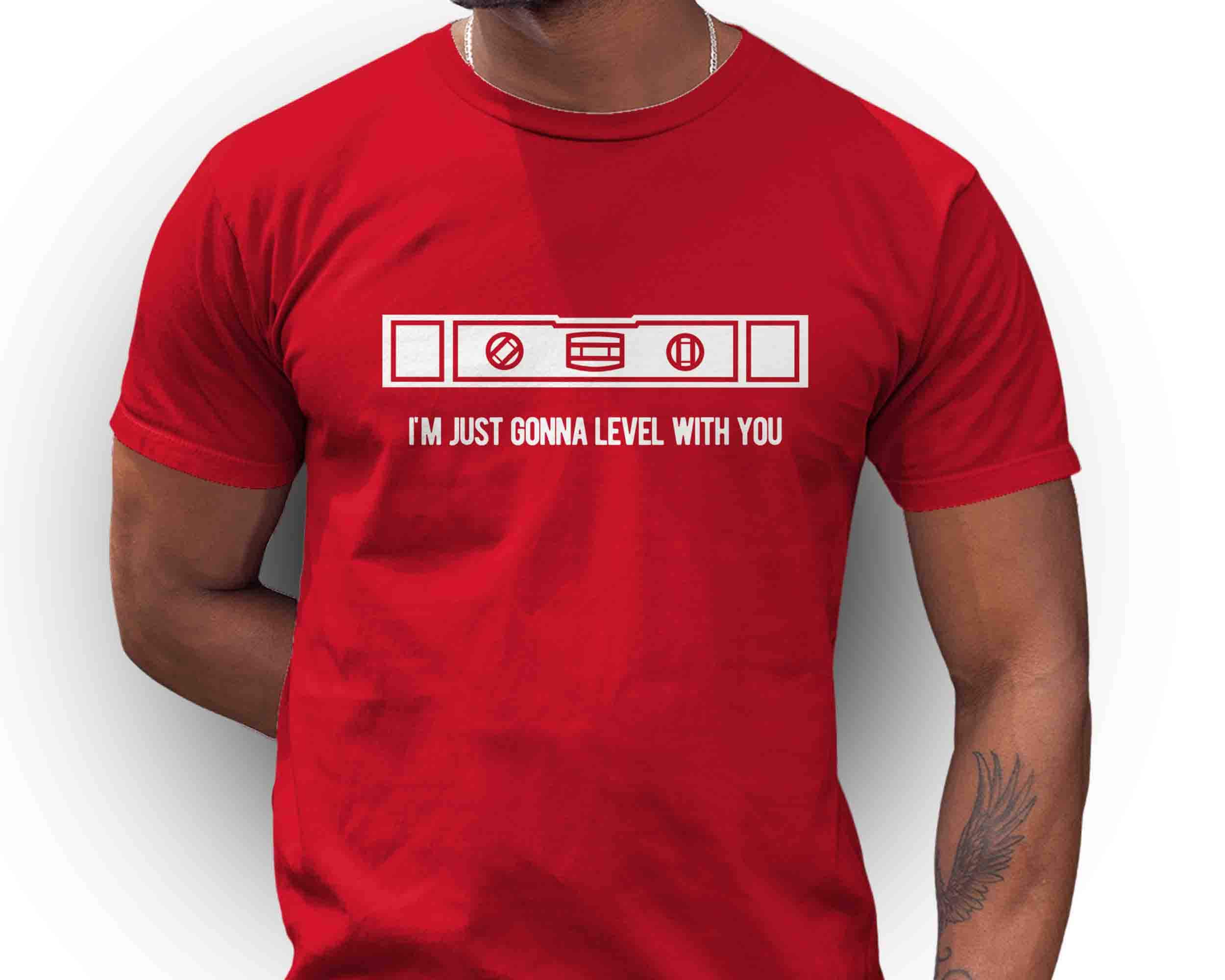 What a fun gift for the contactor in your life. This t-shirt features pun suitable for any home builder, woodworker or remodeler. It simply says 'I'm gonna level with you' and features a level, one of the most important tools in their arsenal. Makes a great Father's day gift.