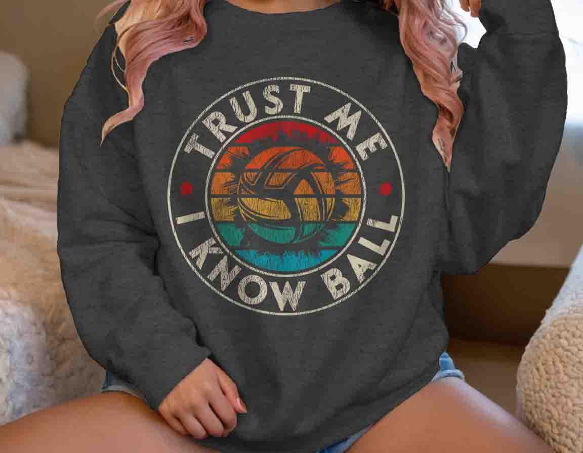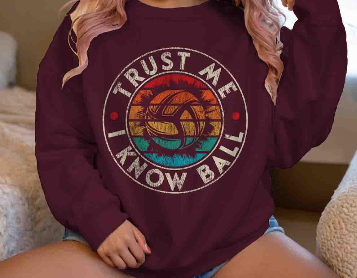 Funny Volleyball Sweatshirt: Trust Me, I Know Ball Tee Unisex Player Gift, Fleece Crewneck