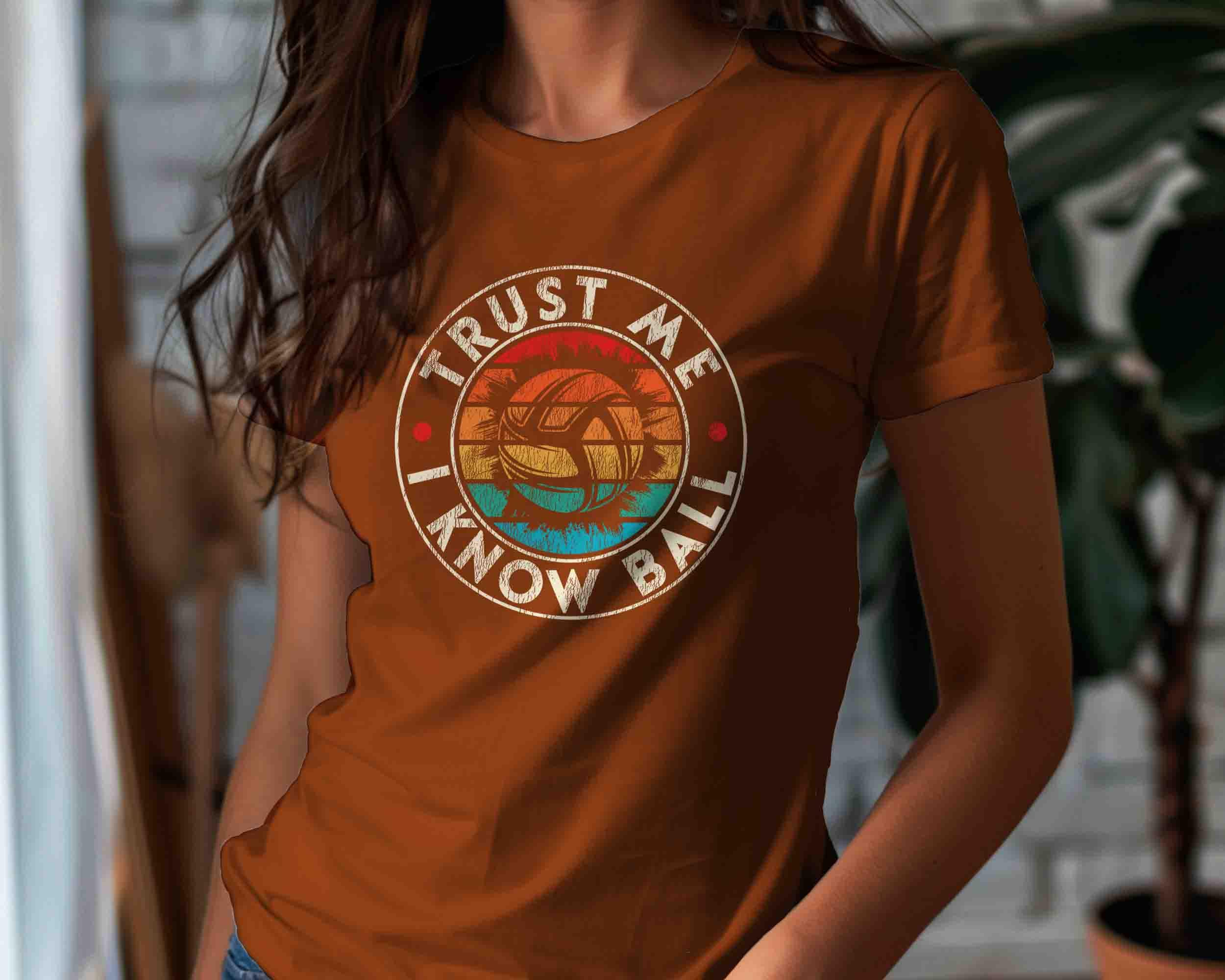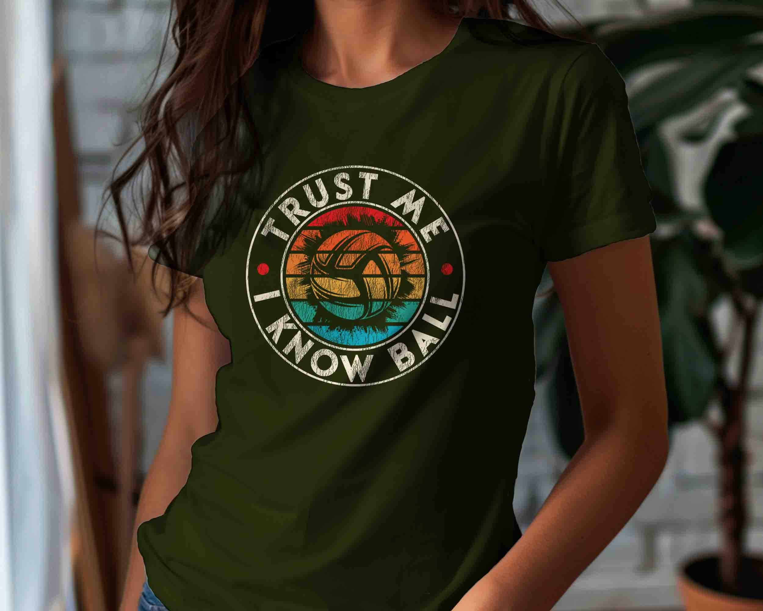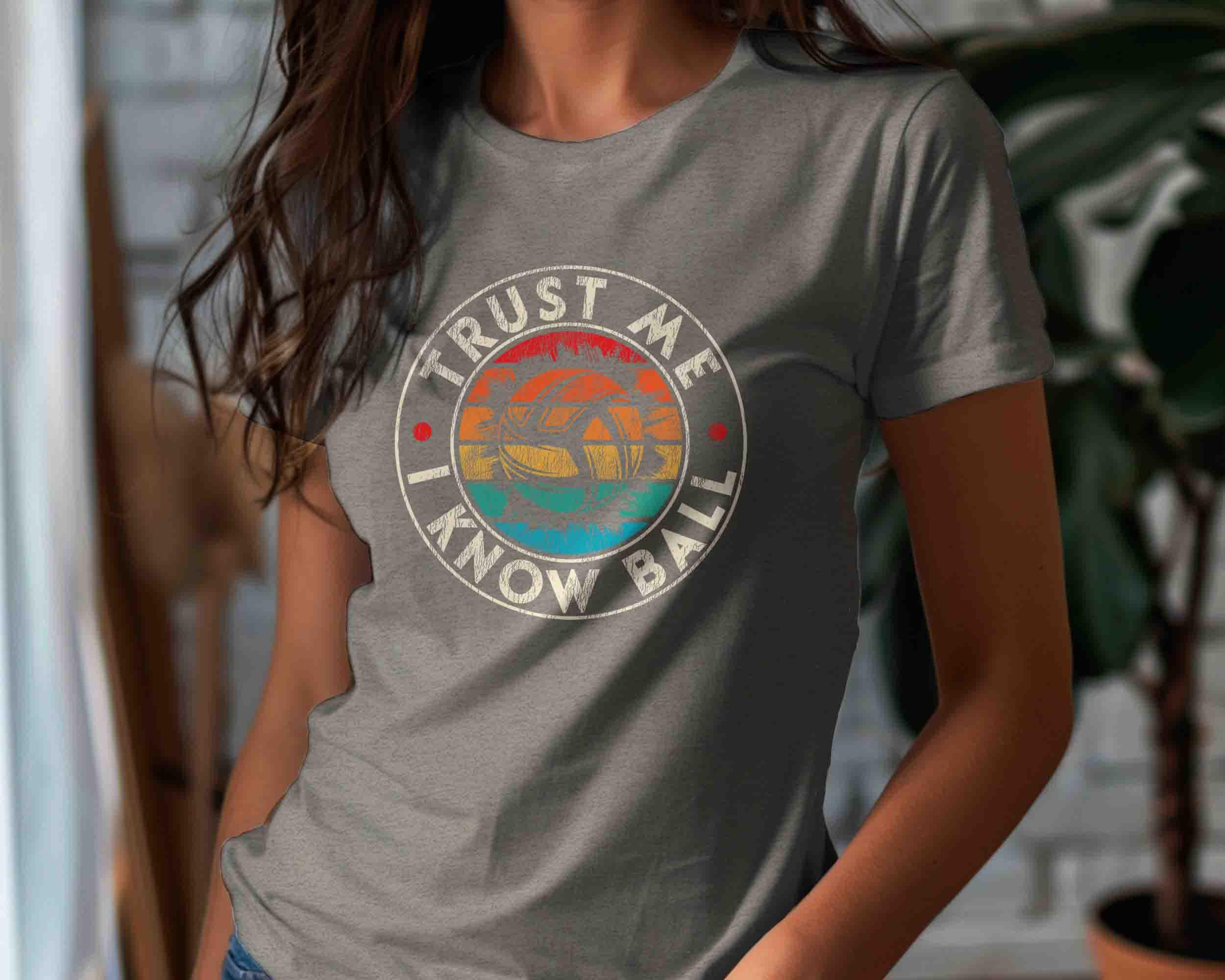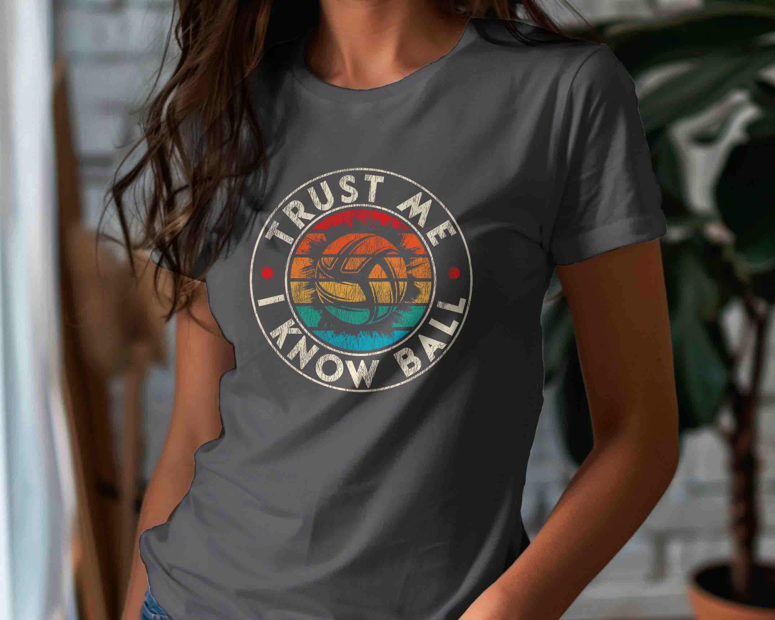🏐 🏐 🏐  This funny volleyball shirt is perfect for players who bring the heat on the court! With the bold statement "Trust Me, I Know Ball", this tee lets everyone know you're not afraid to play hard and go for the aggressive spike. It's a great way to show off your competitive spirit and sense of humor, whether you're on the court or hanging out with friends. This design is sure to be a hit with volleyball enthusiasts who love a good laugh and don't shy away from a challenge. 🏐 🏐 🏐