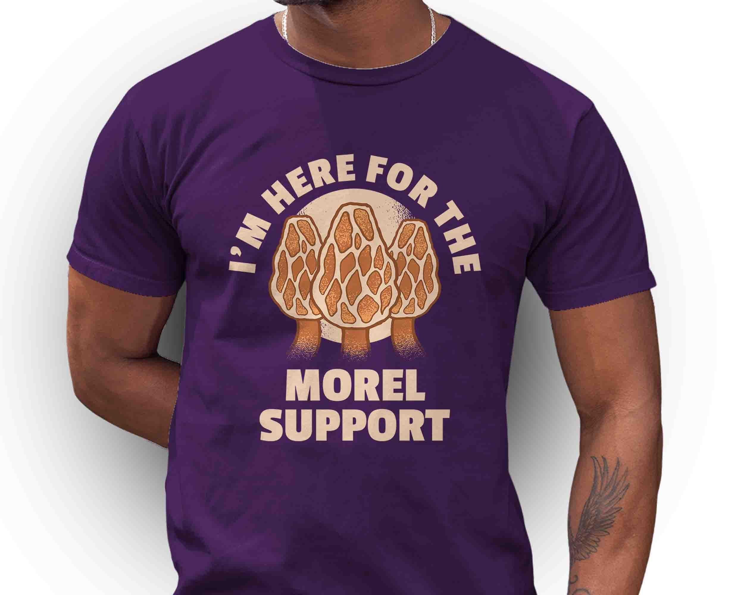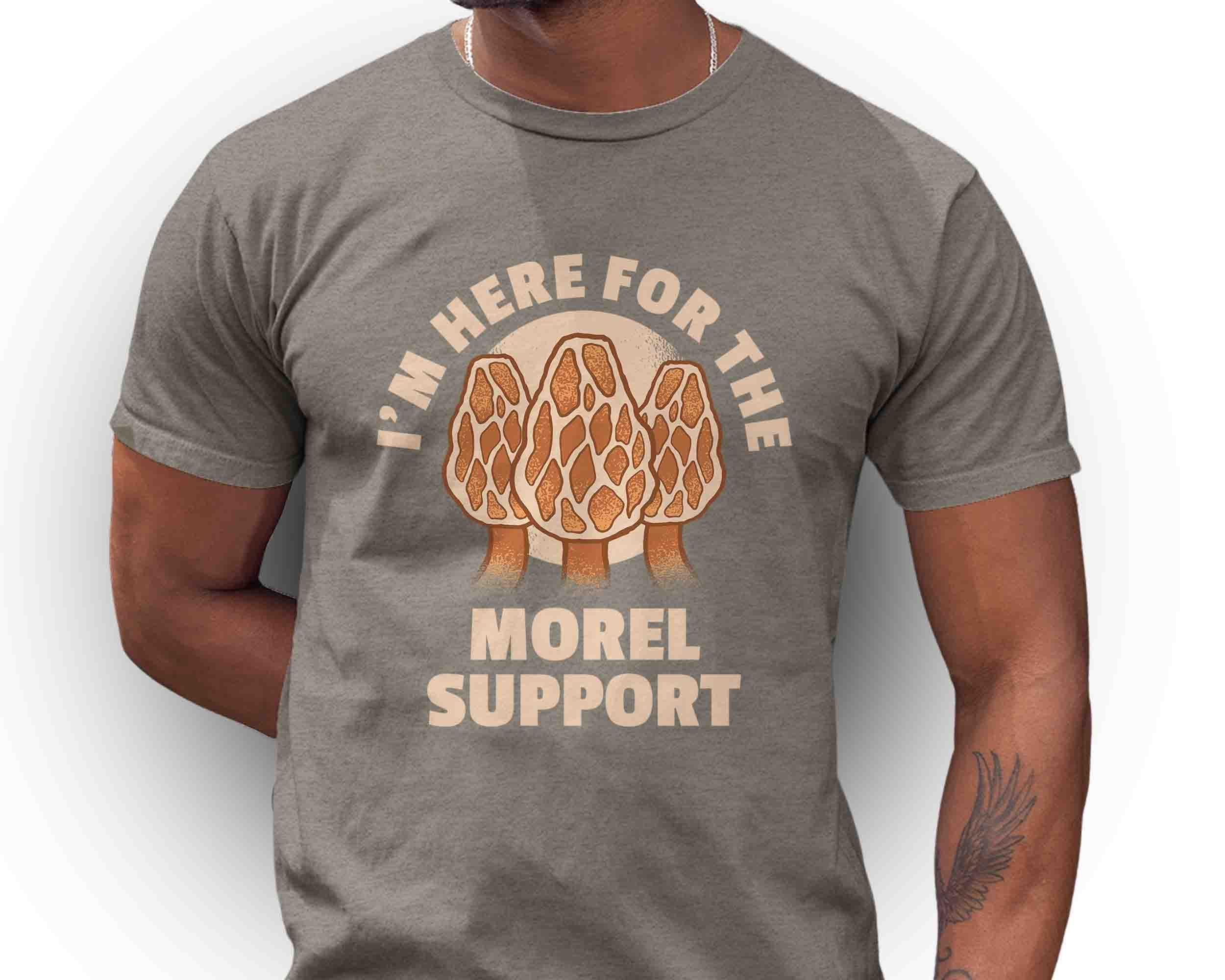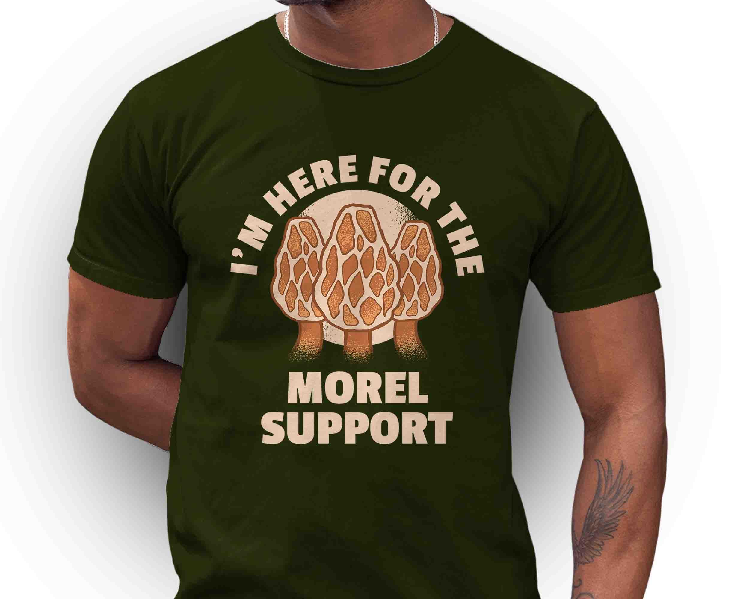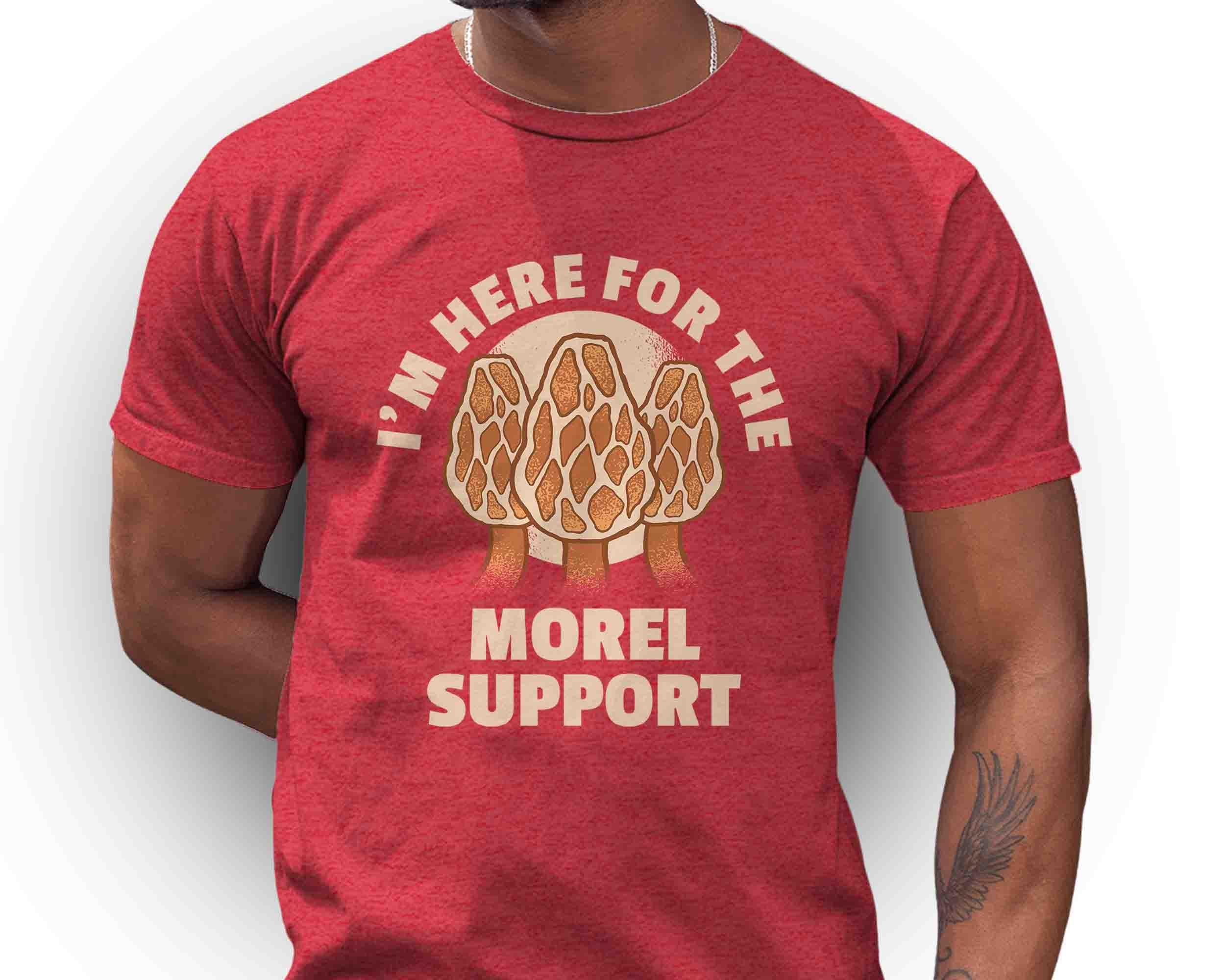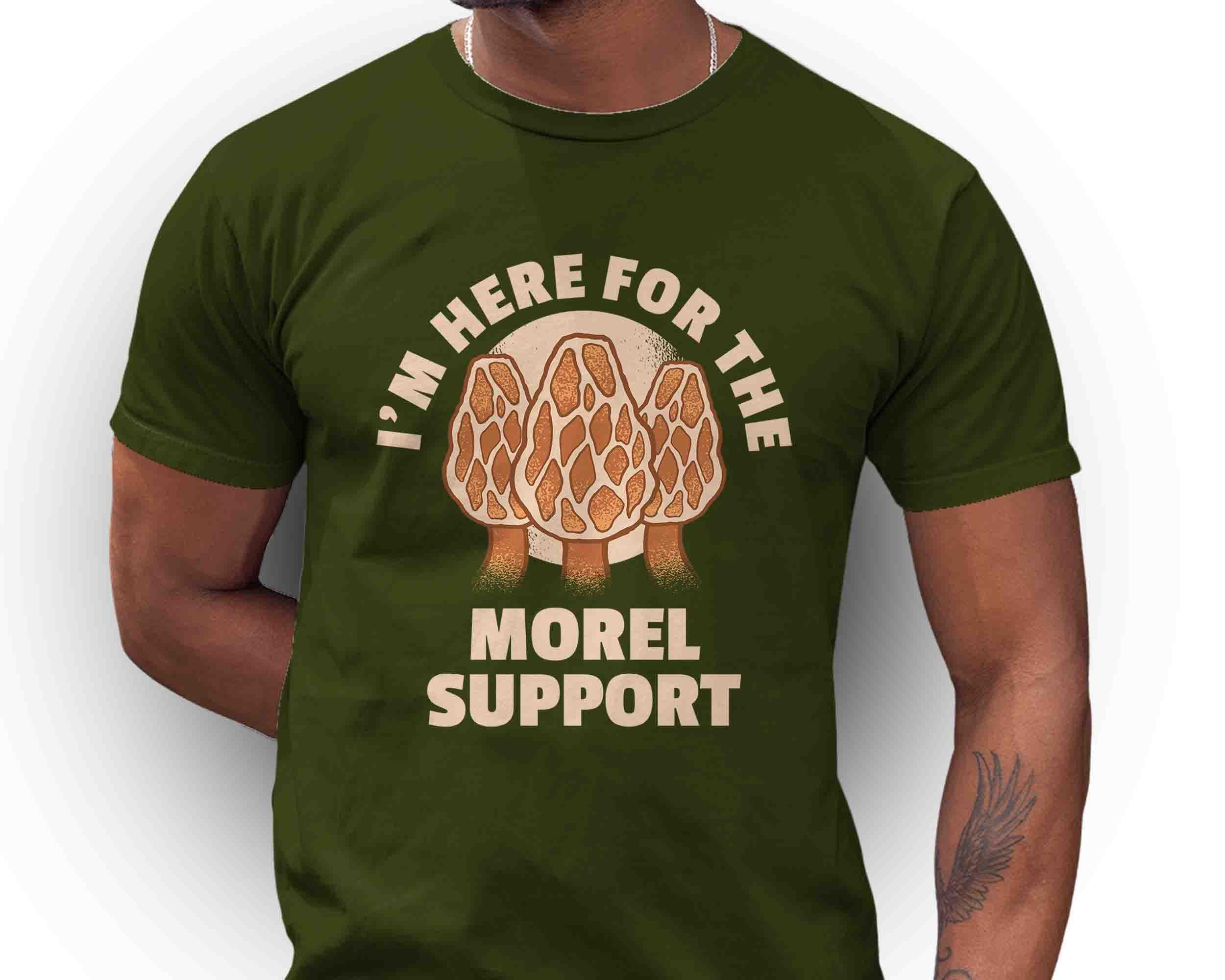 Bring your sense of humor to the hunt with our “I'm Here For The Morel Support” T-shirt! 🍄 Perfect for mushroom lovers, nature explorers, and anyone who appreciates a good fungi pun. Featuring hand-drawn morel mushrooms and bold vintage lettering, this tee is soft, witty, and made for adventure - from forest trail foragers to farmers markets.