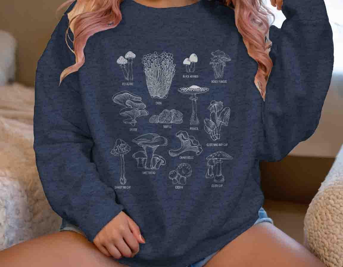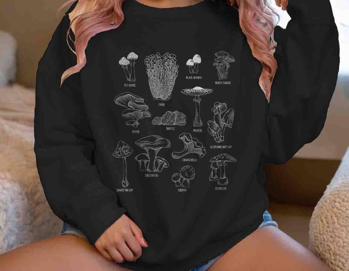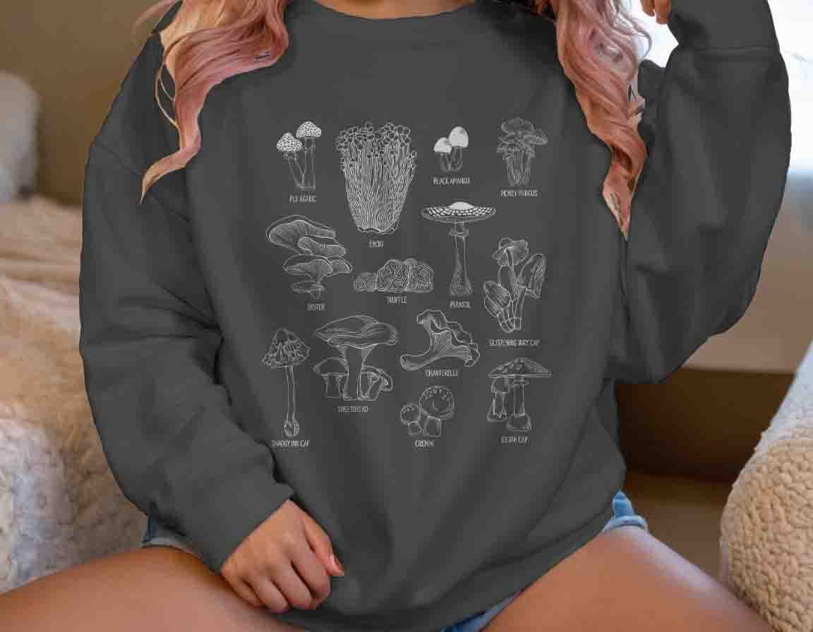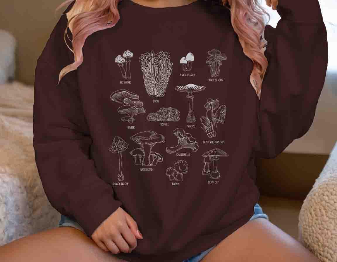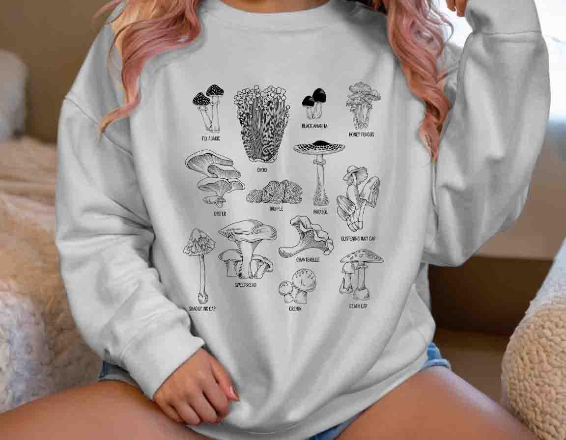 Vintage Mushrooms Sweatshirt: Fungus Illustration, Mushroom Gift Idea, Forager Crewneck, Mycelium Top,