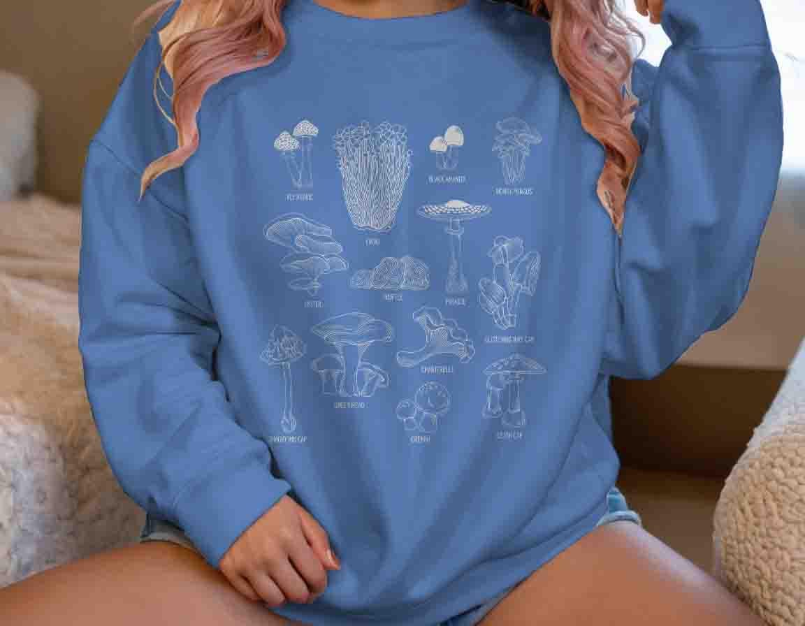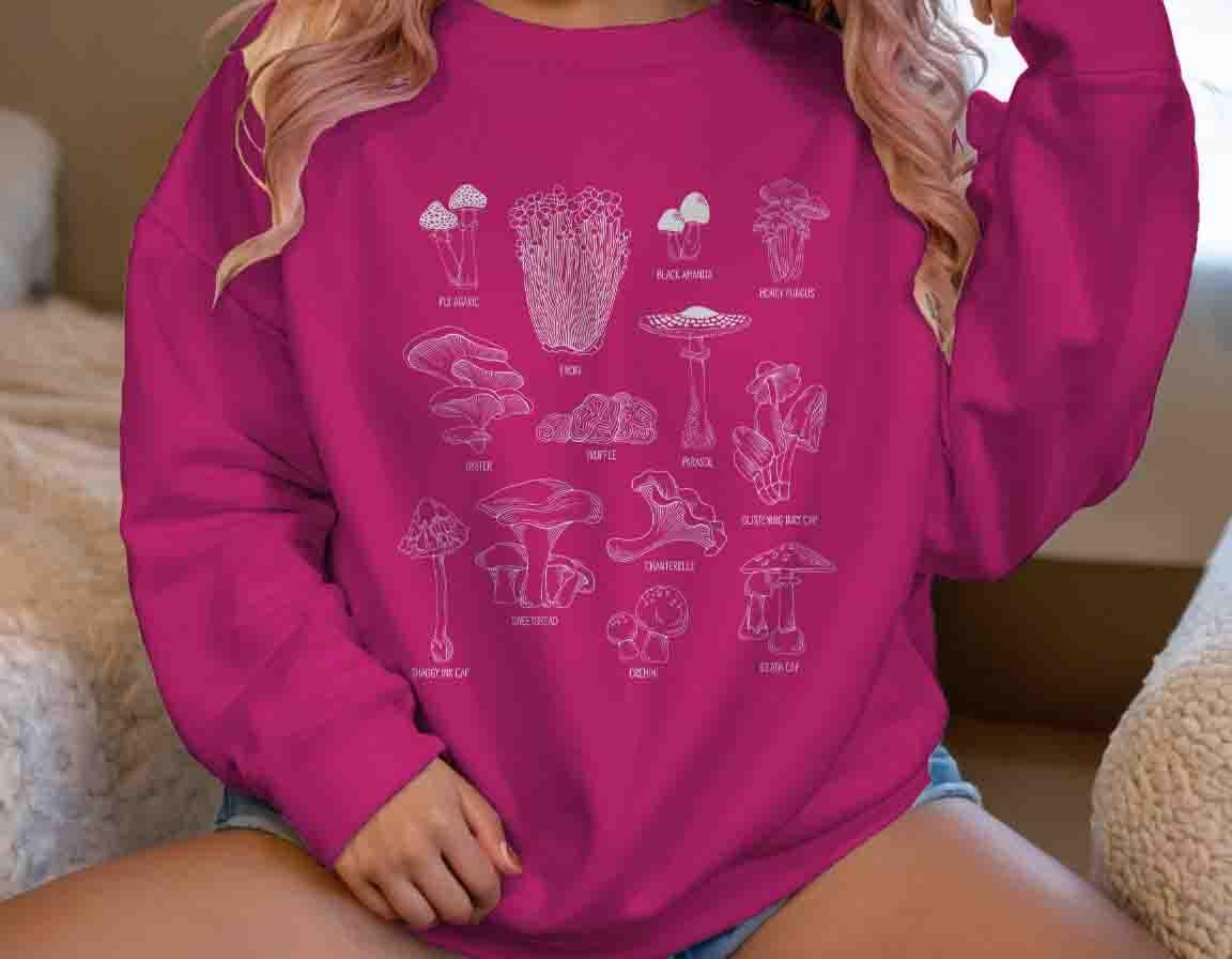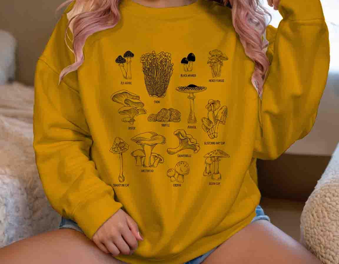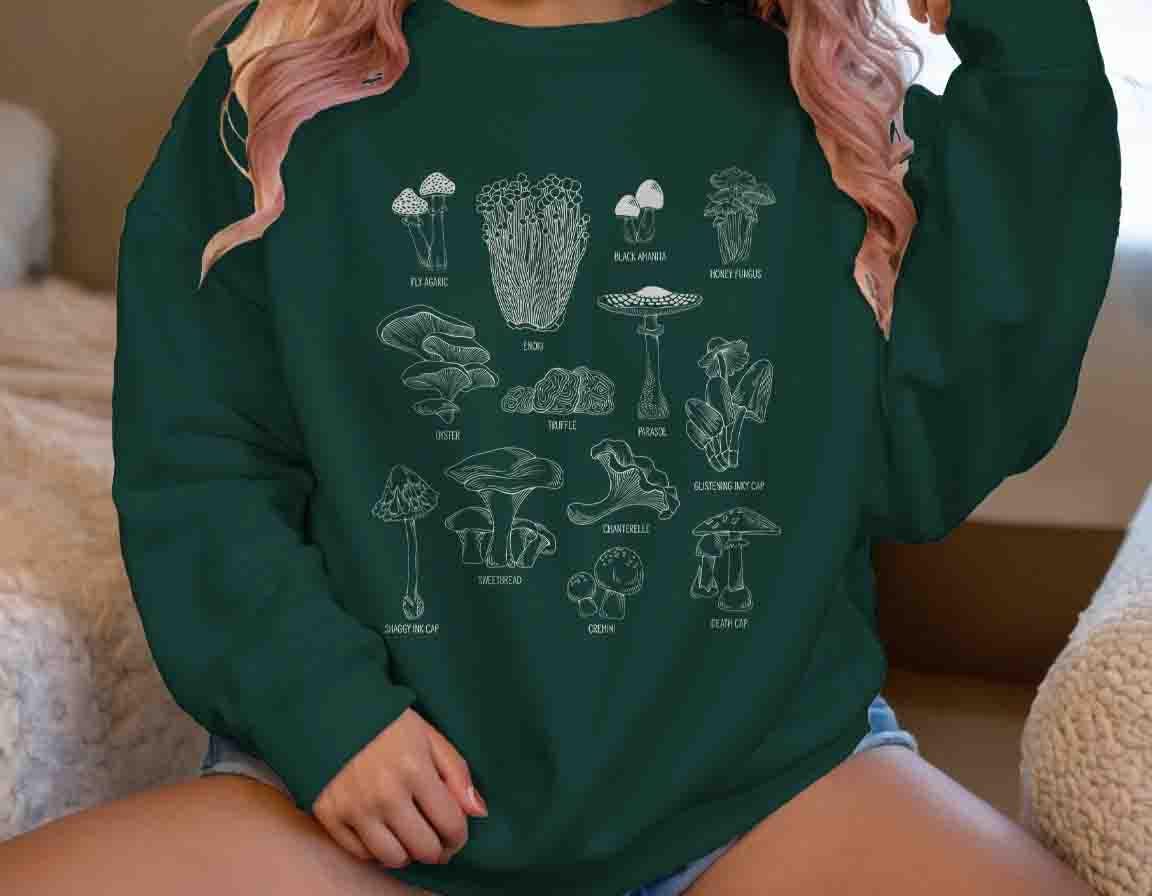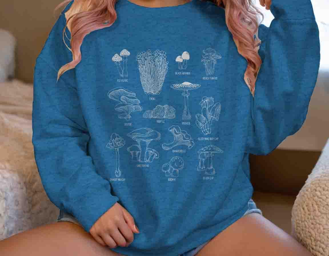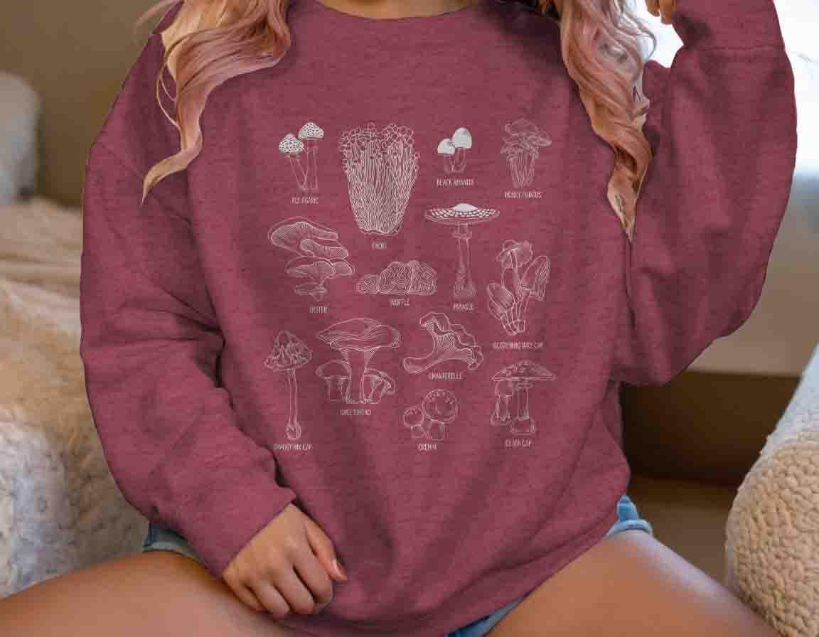 Vintage Mushrooms Sweatshirt: Fungus Illustration, Mushroom Gift Idea, Forager Crewneck, Mycelium Top,