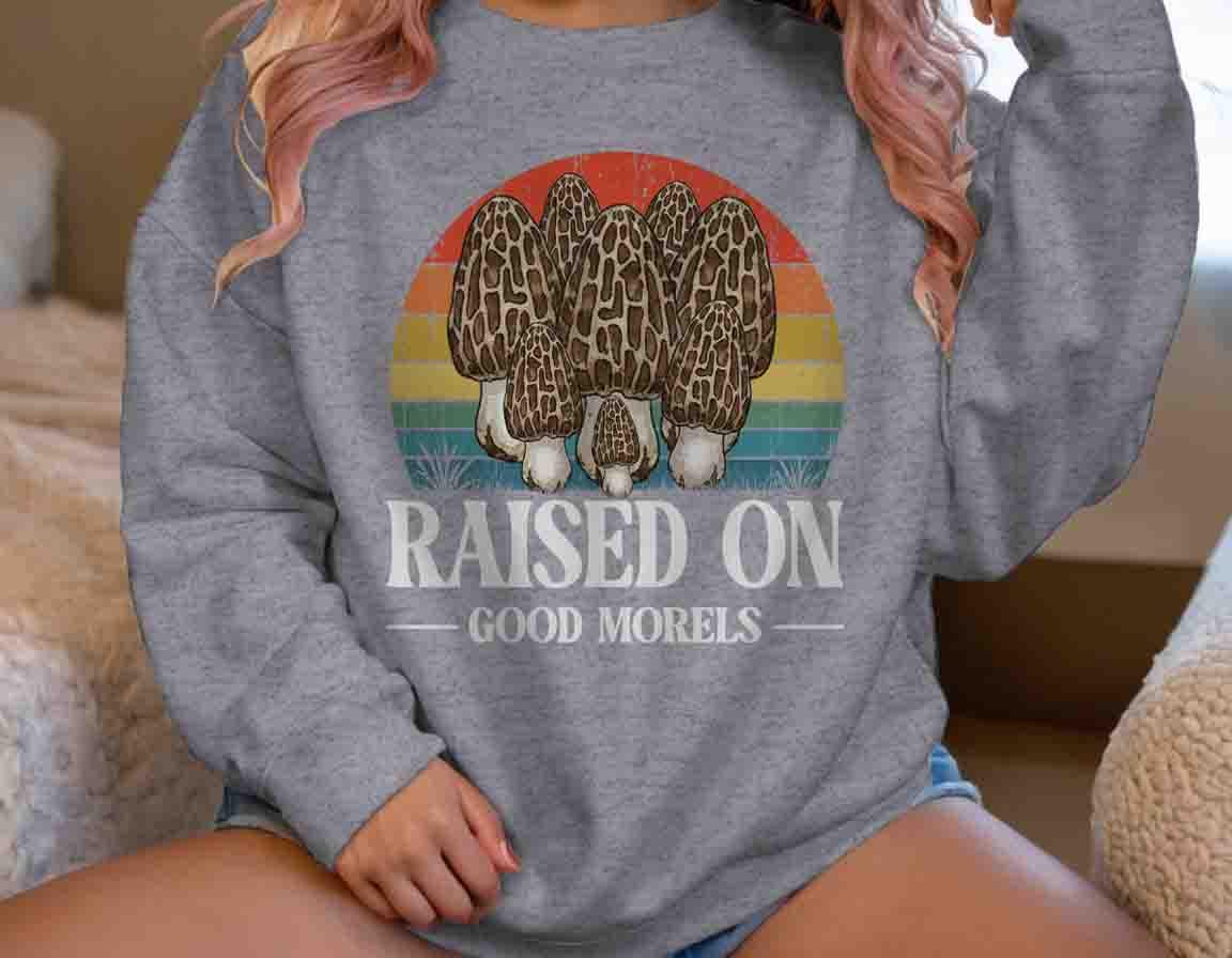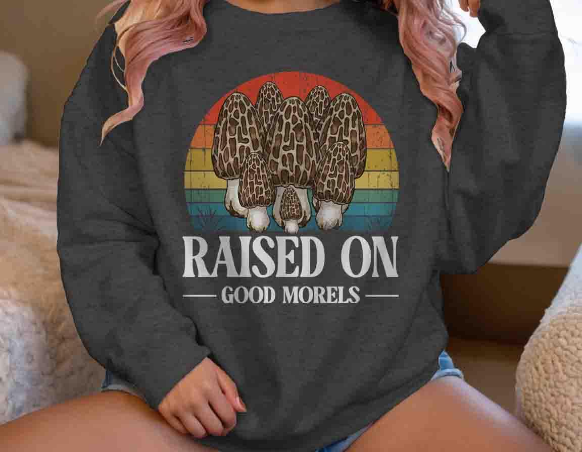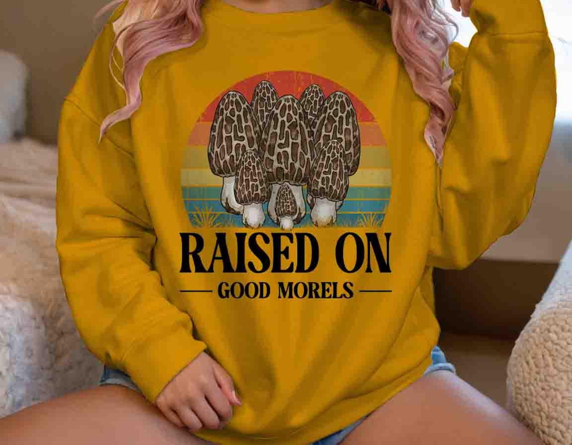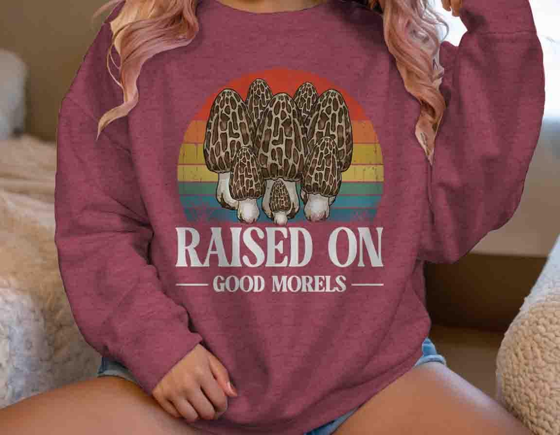 Funny Forager Sweatshirt: Fungi Lover, Fungus Gift Idea, Raised On Good Morels, Forager Crewneck, Morel Gift, Pun,