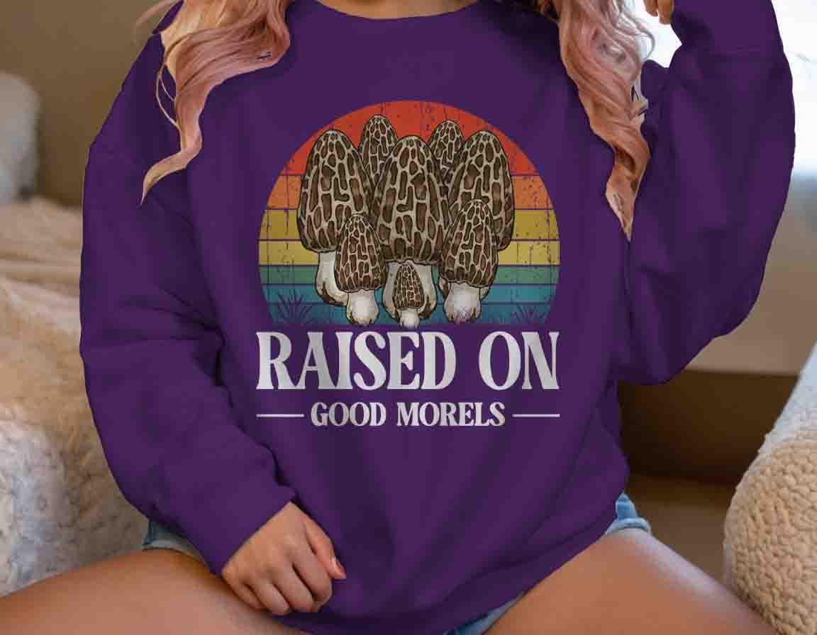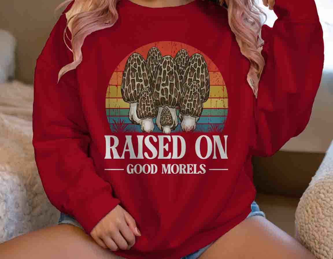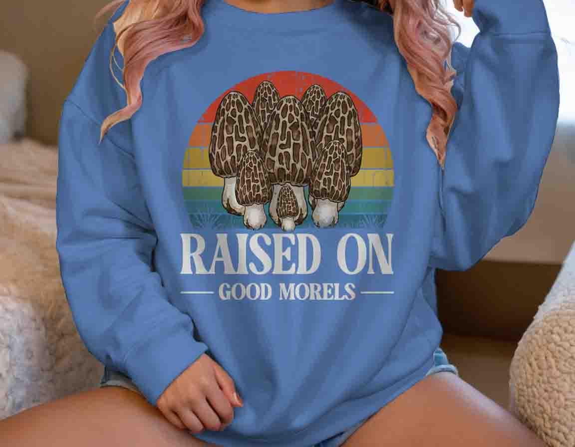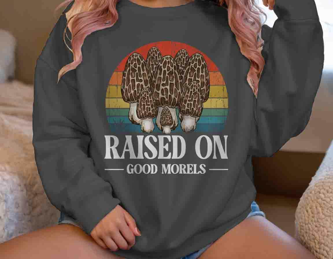 Funny Forager Sweatshirt: Fungi Lover, Fungus Gift Idea, Raised On Good Morels, Forager Crewneck, Morel Gift, Pun,