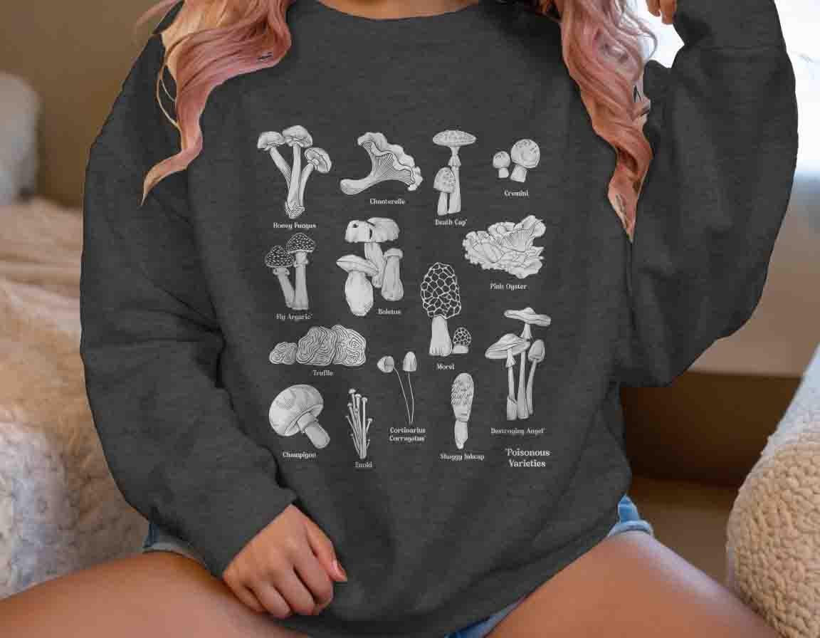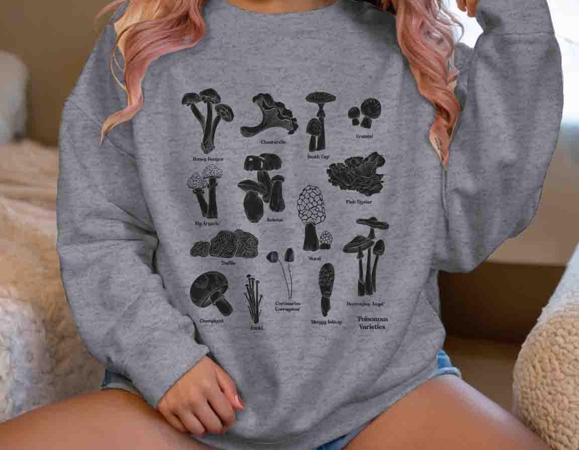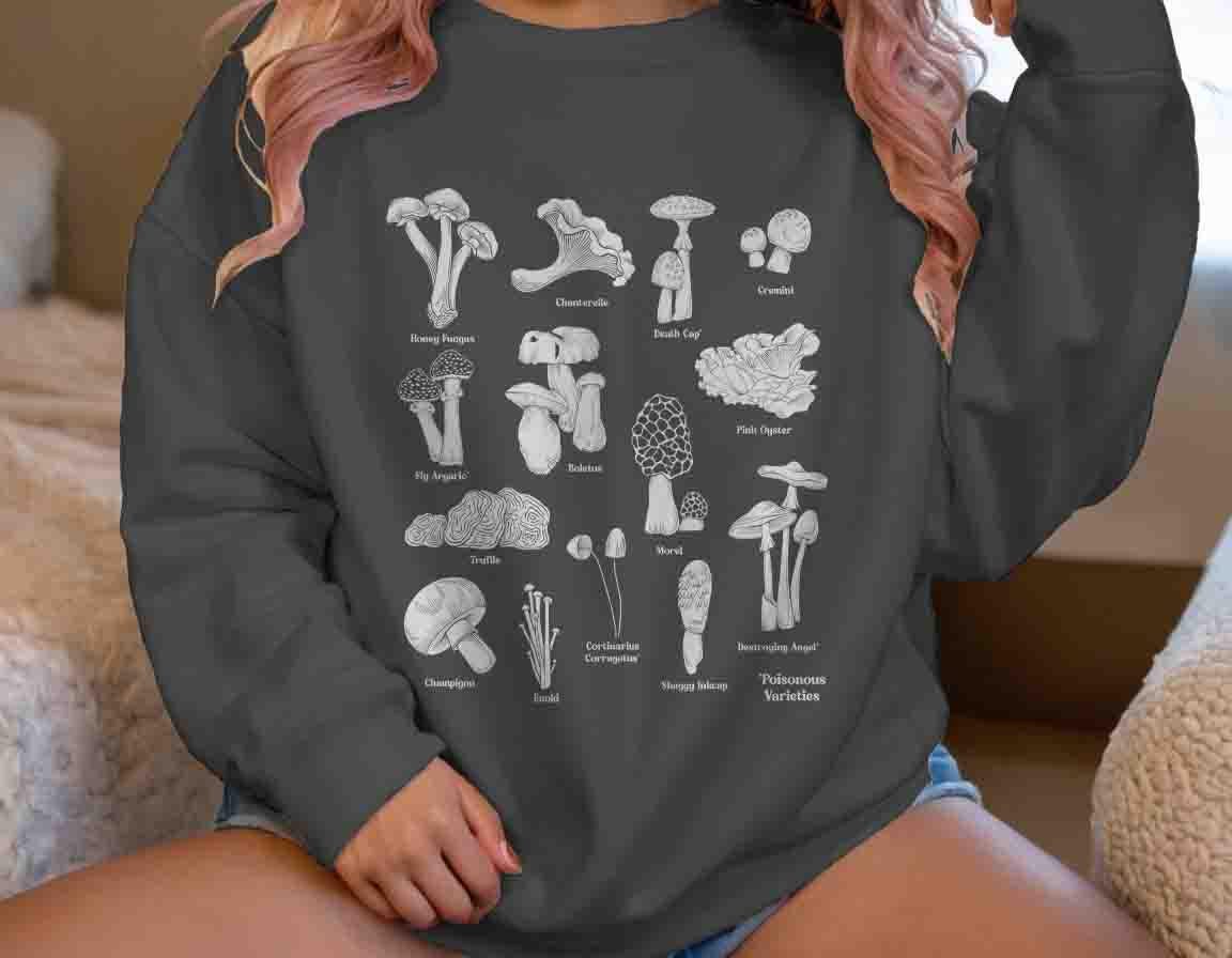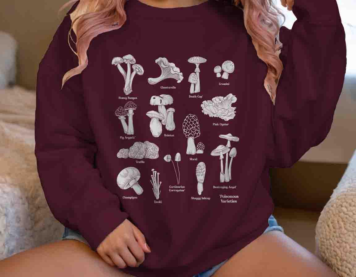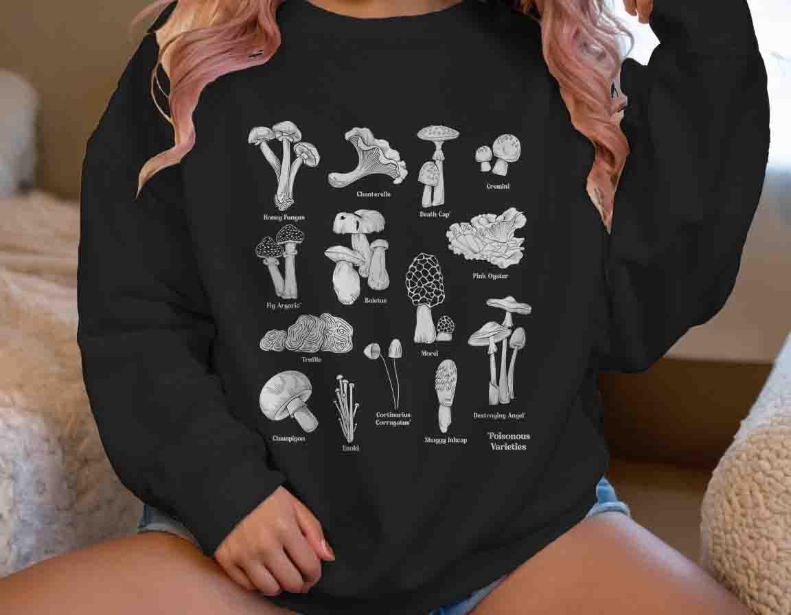 Vintage Mushrooms Sweatshirt: Fungus Illustration, Mushroom Gift Idea, Forager Crewneck, Mycelium Top,