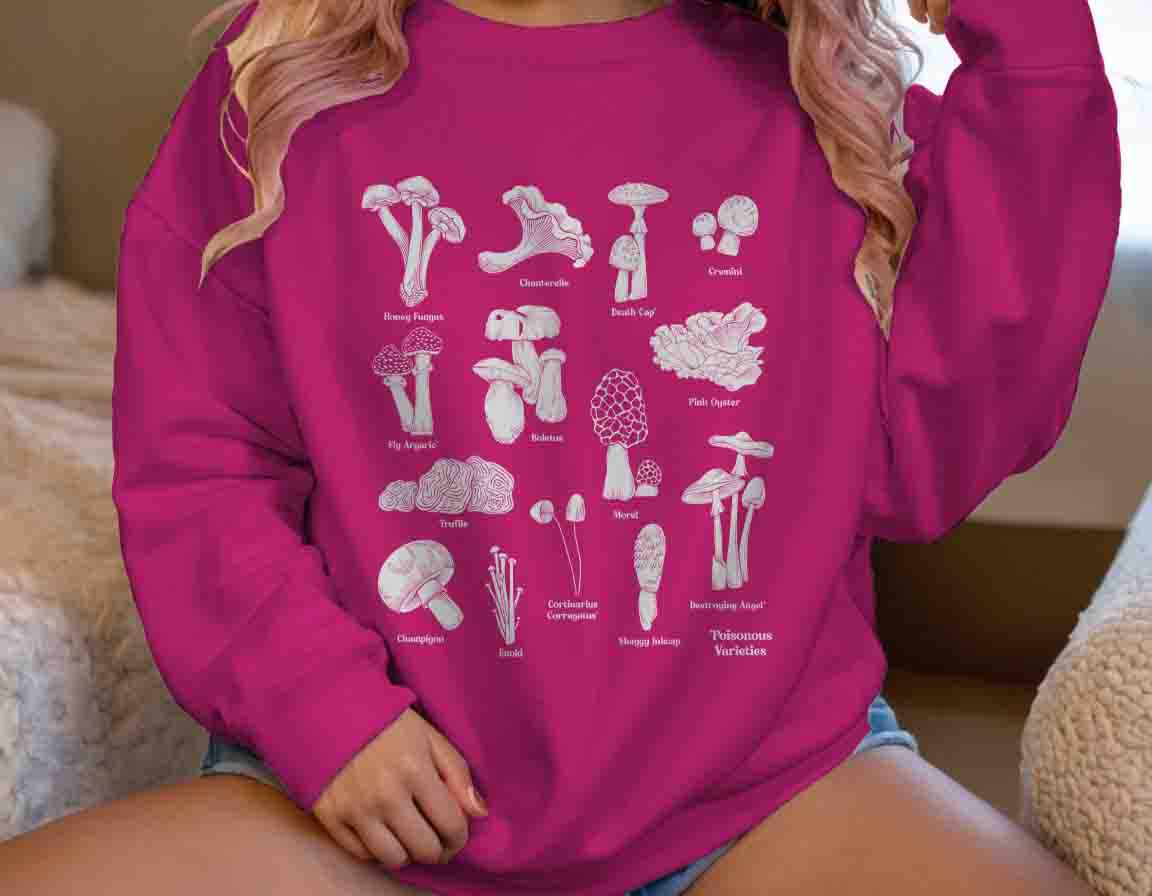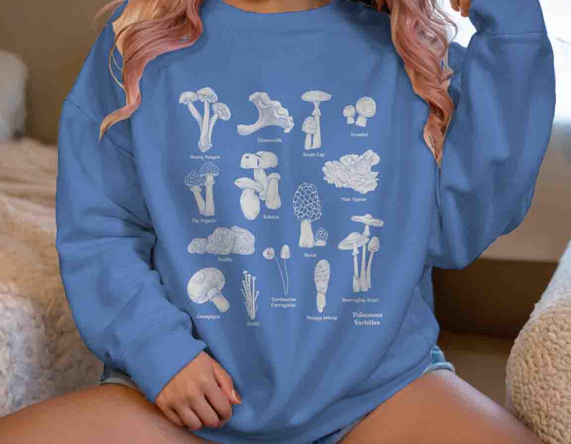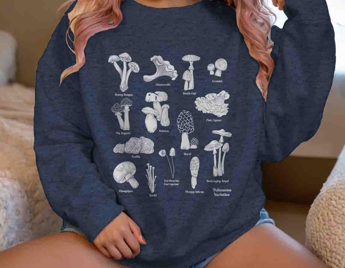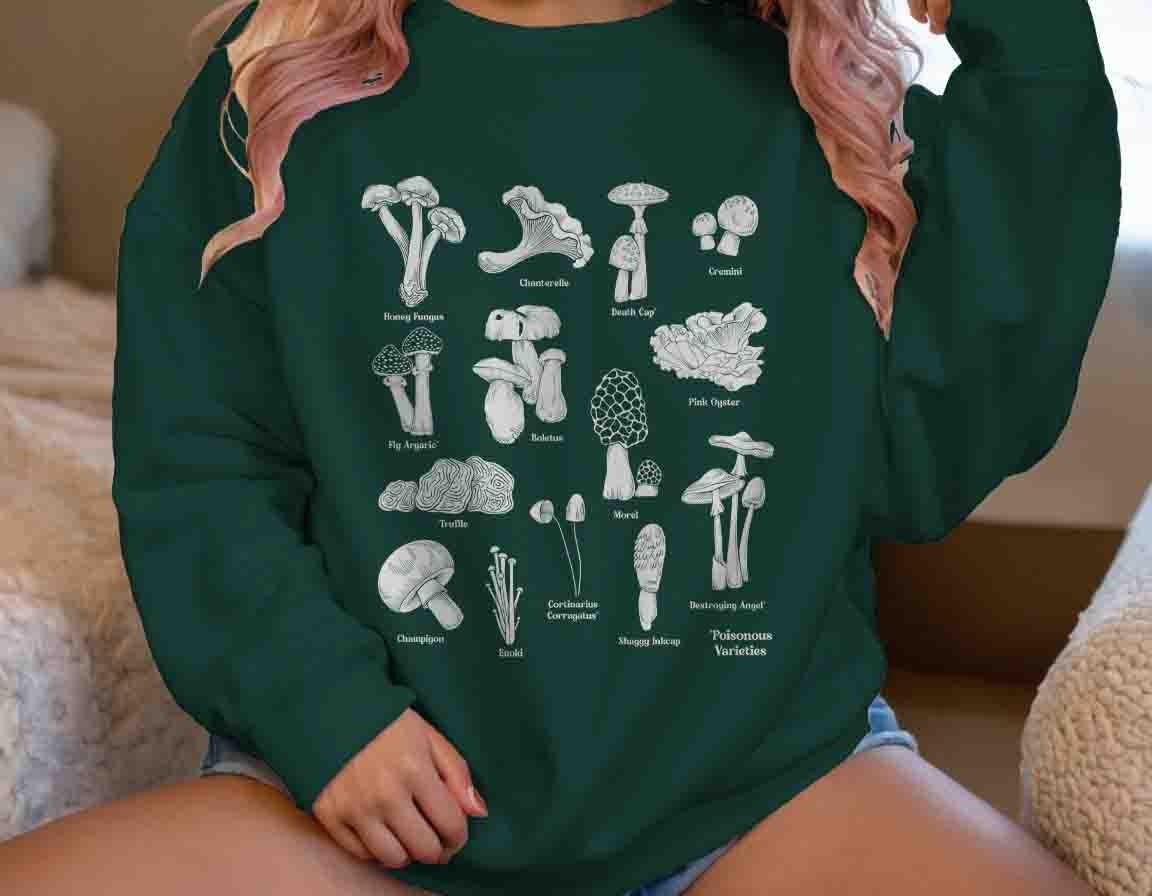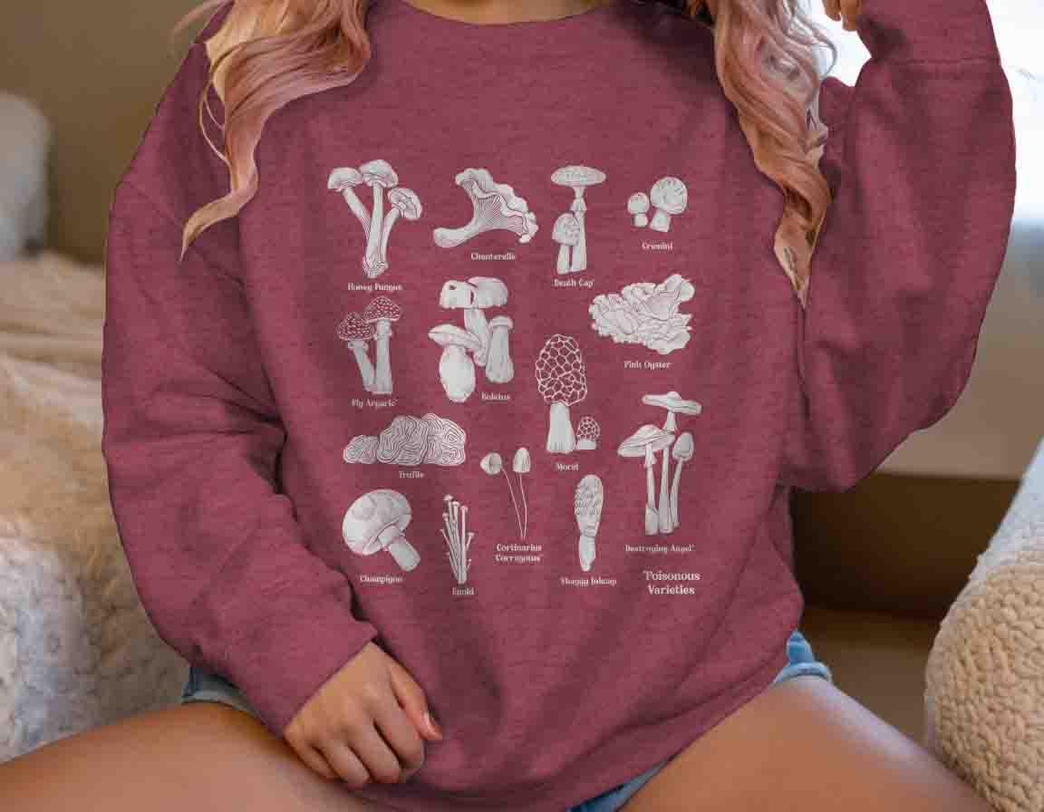 Vintage Mushrooms Sweatshirt: Fungus Illustration, Mushroom Gift Idea, Forager Crewneck, Mycelium Top,