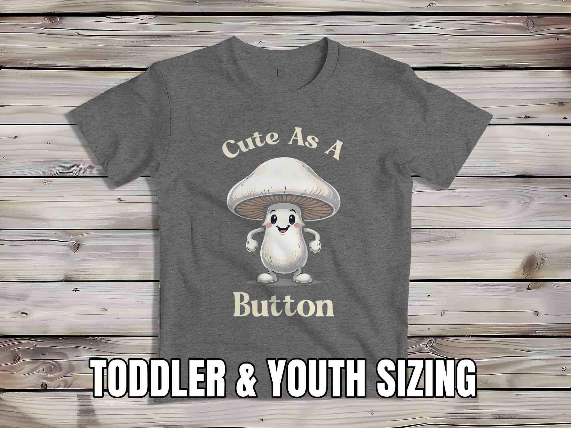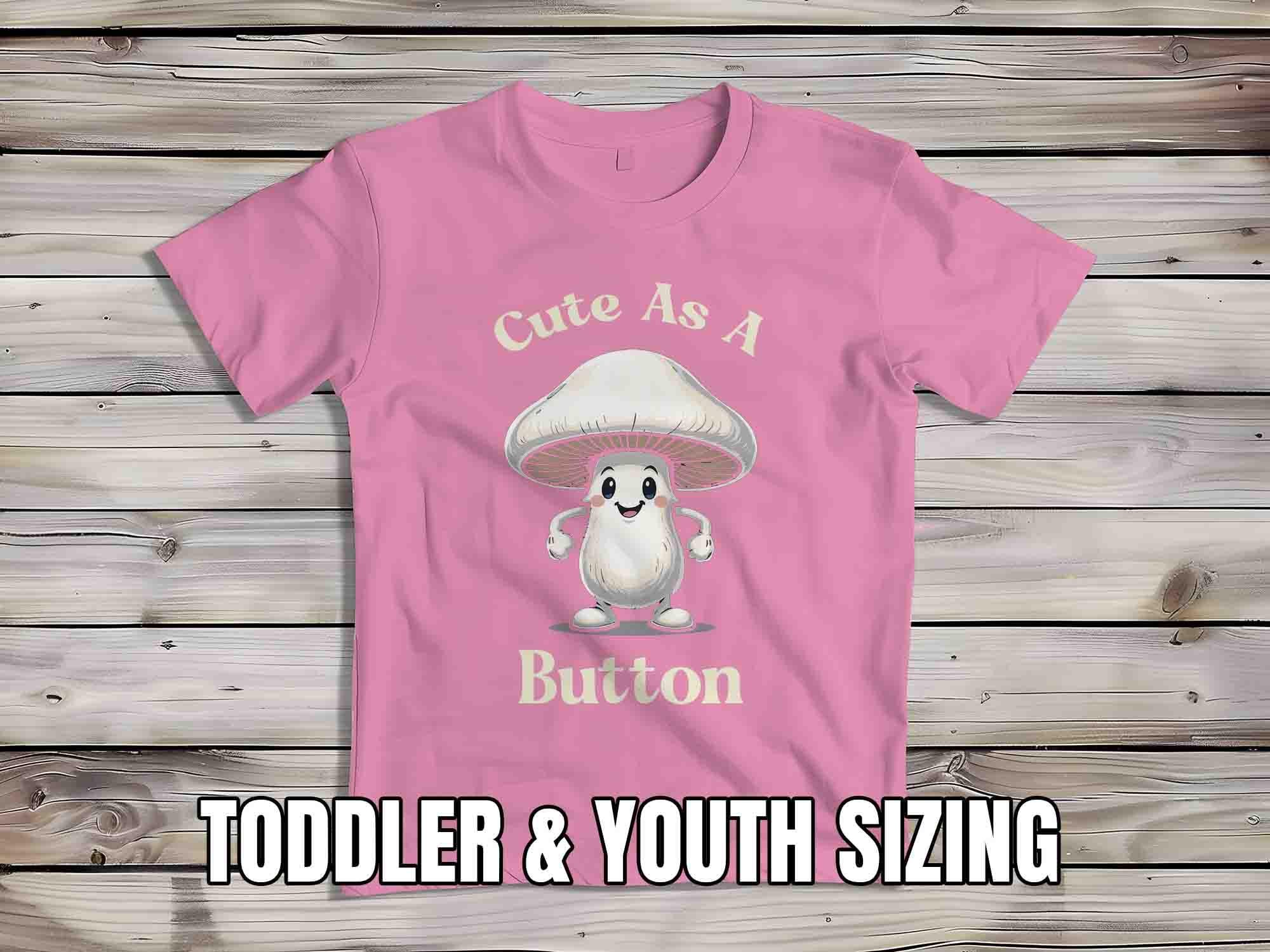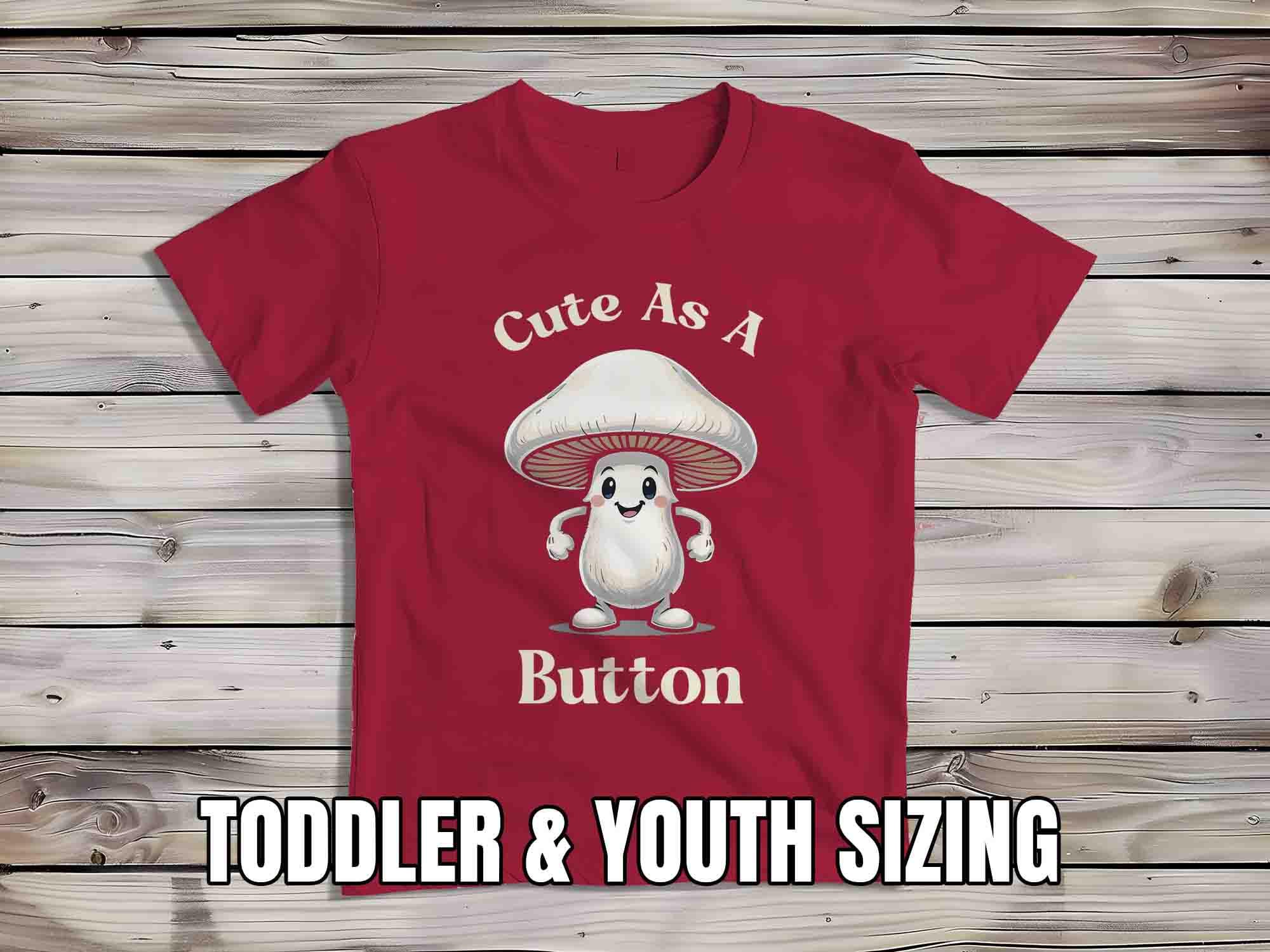 Kids Funny Mushroom Shirt: Cute As A Button, Fungi Lover Gift, Champignon Mushroom T-Shirt