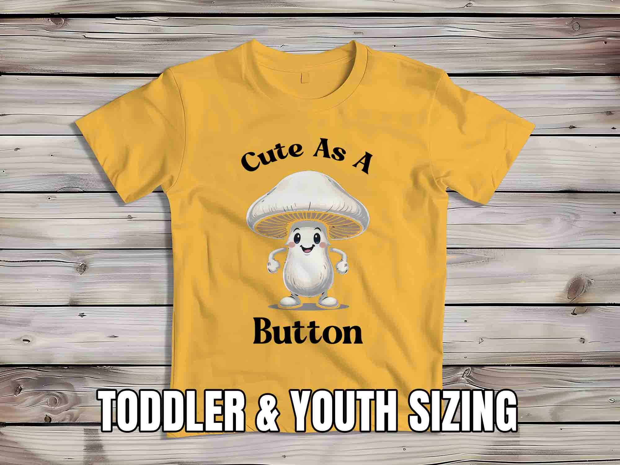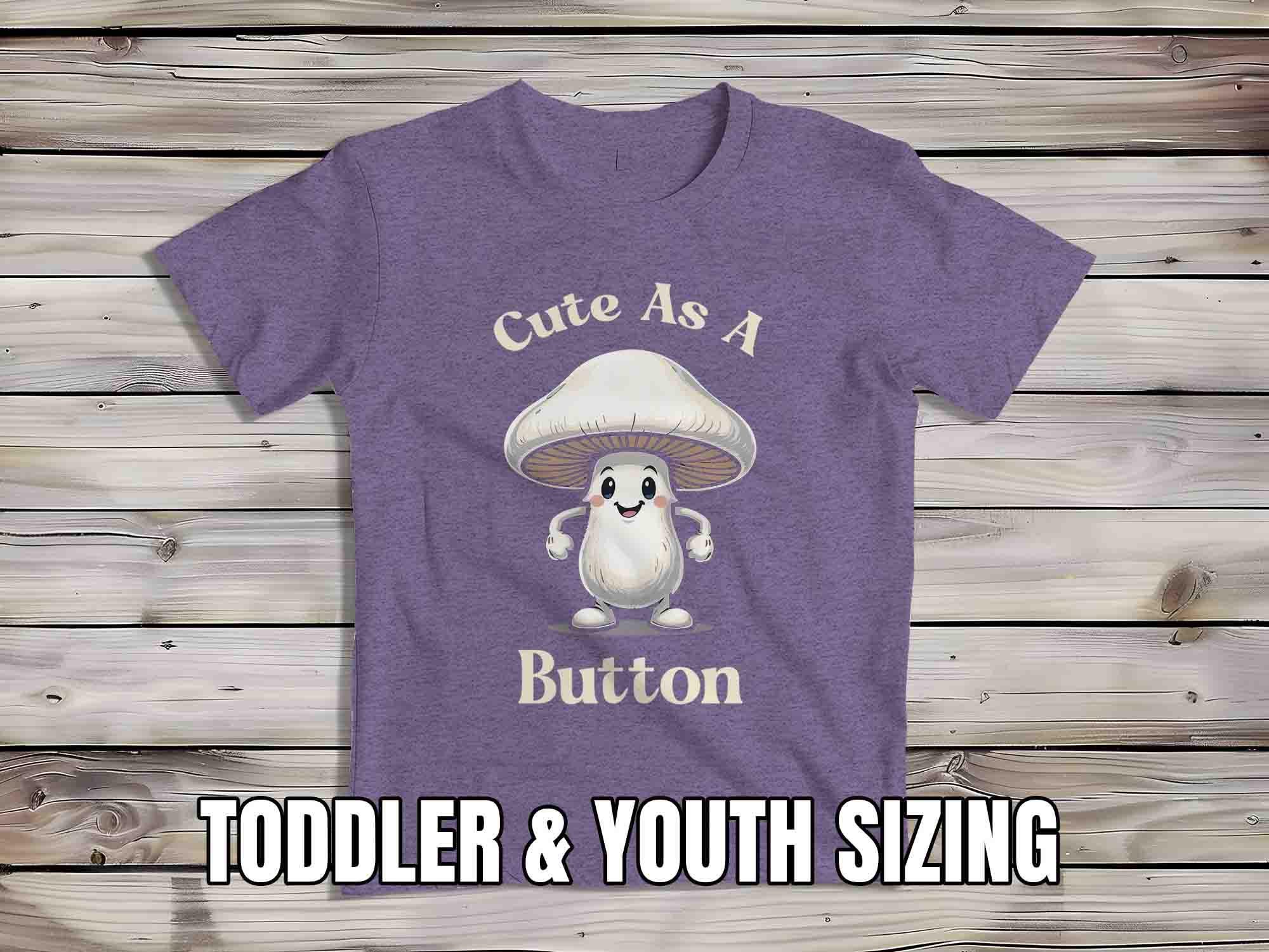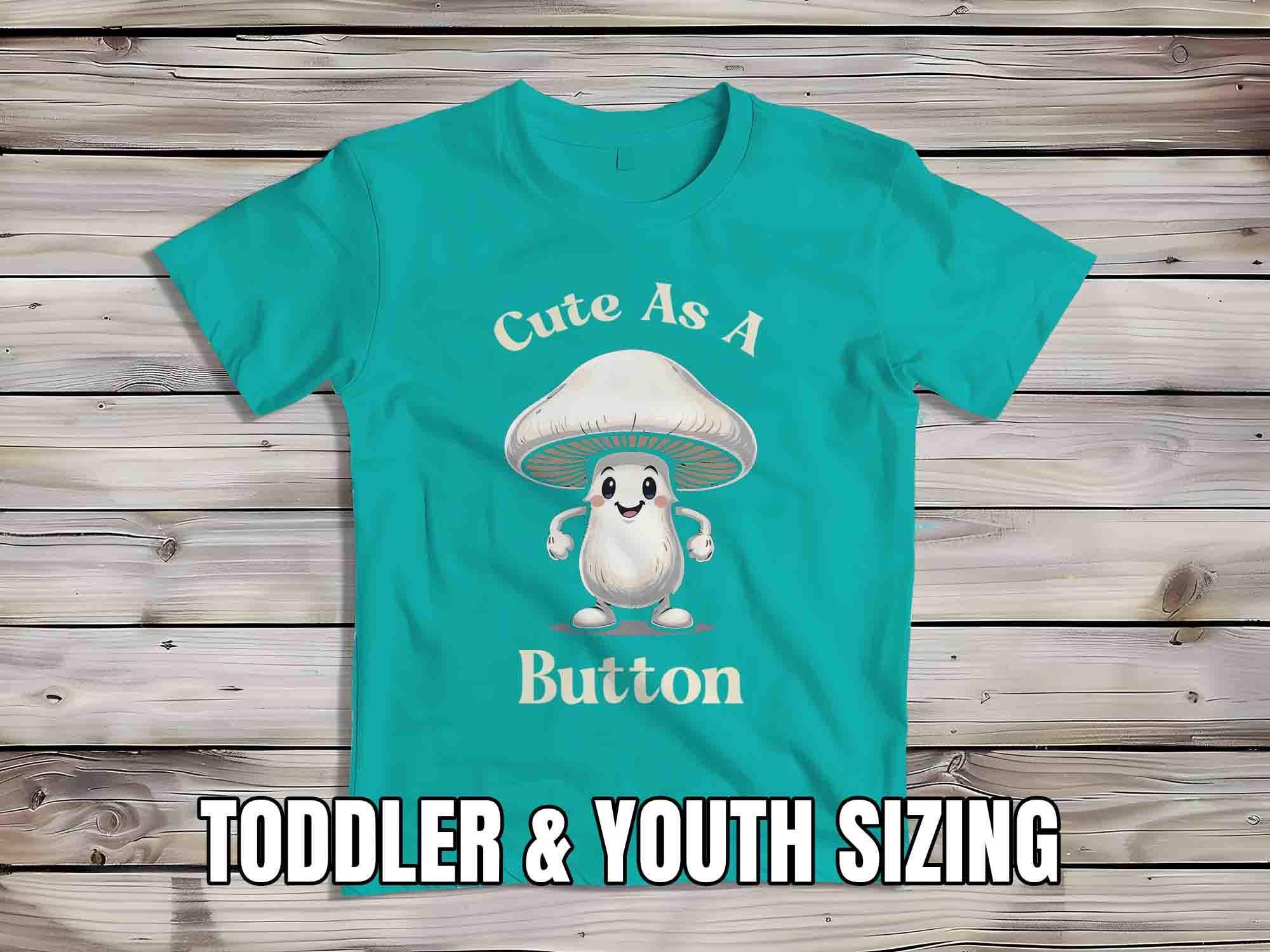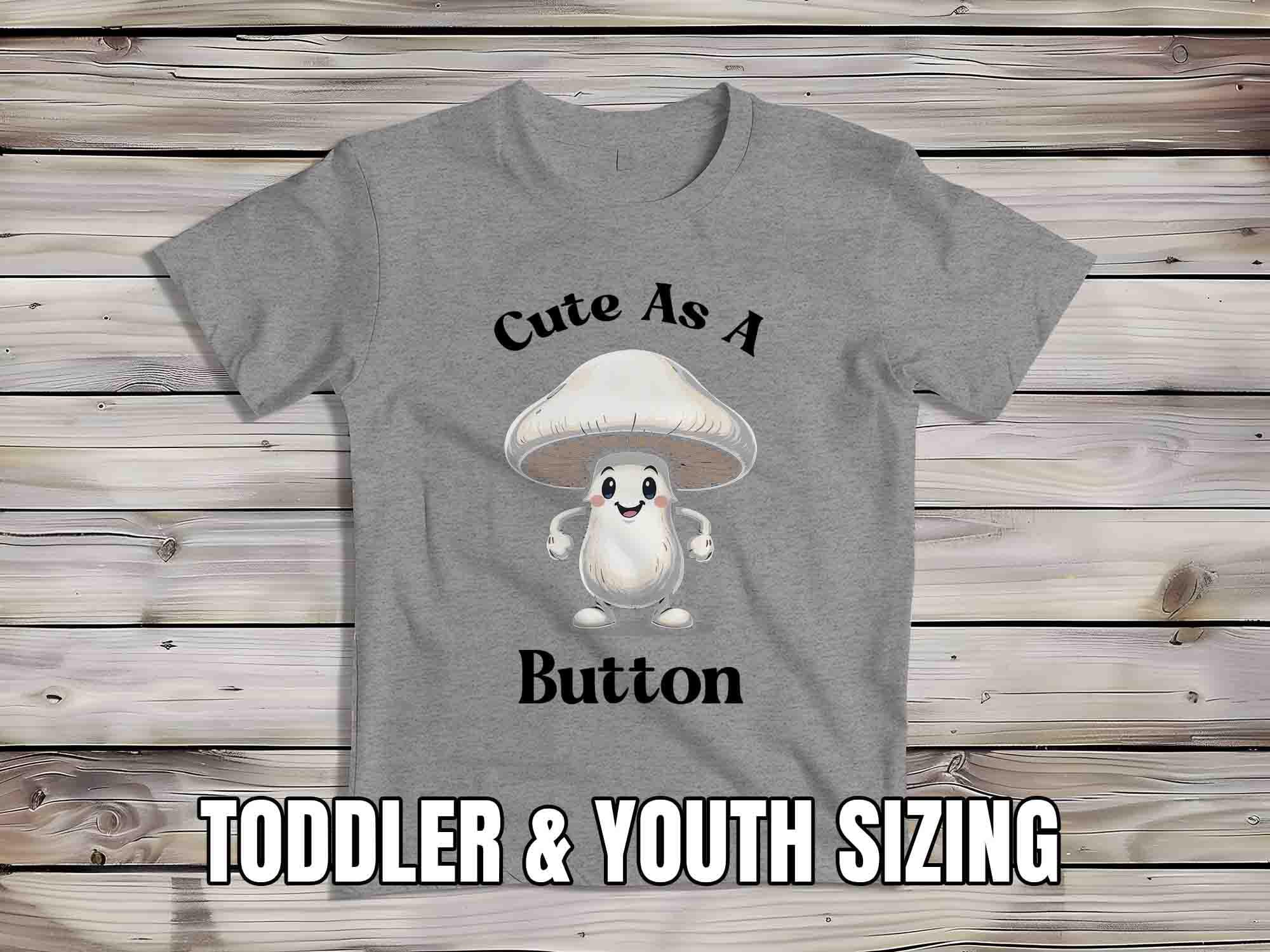Kids Funny Mushroom Shirt: Cute As A Button, Fungi Lover Gift, Champignon Mushroom T-Shirt
