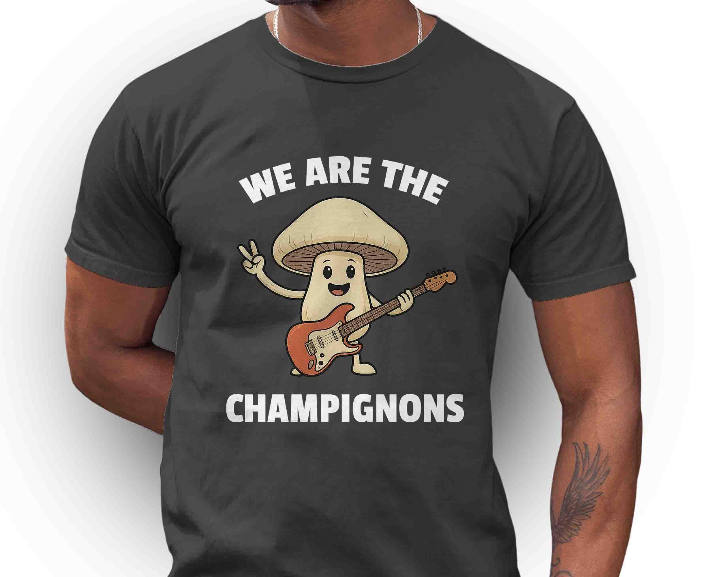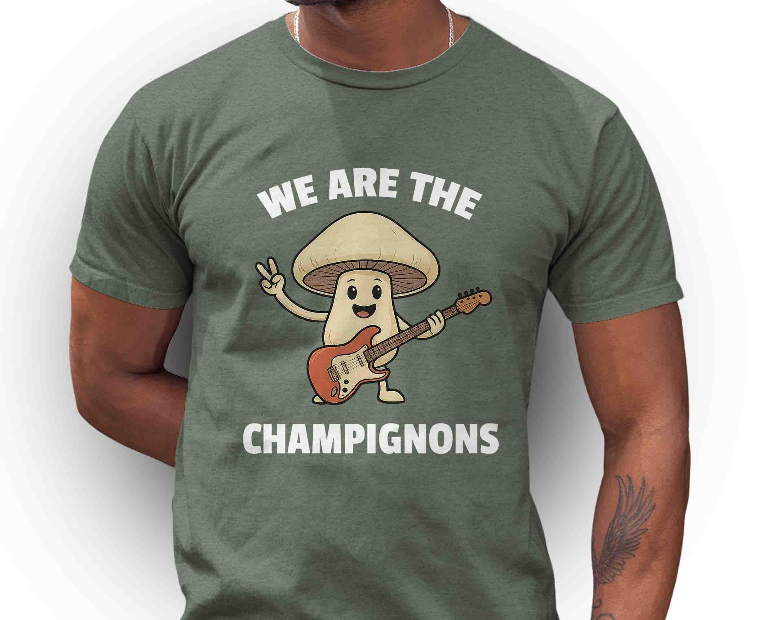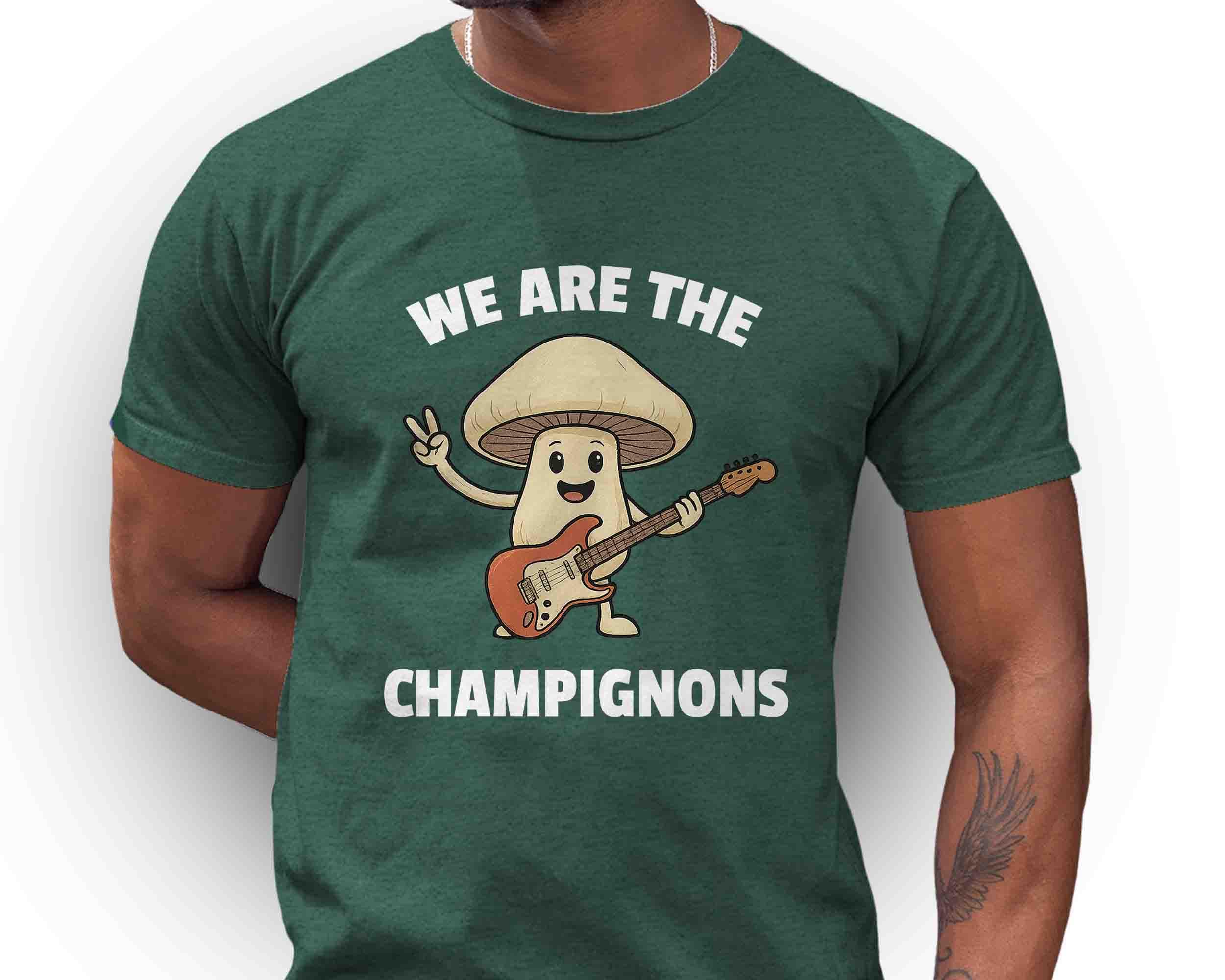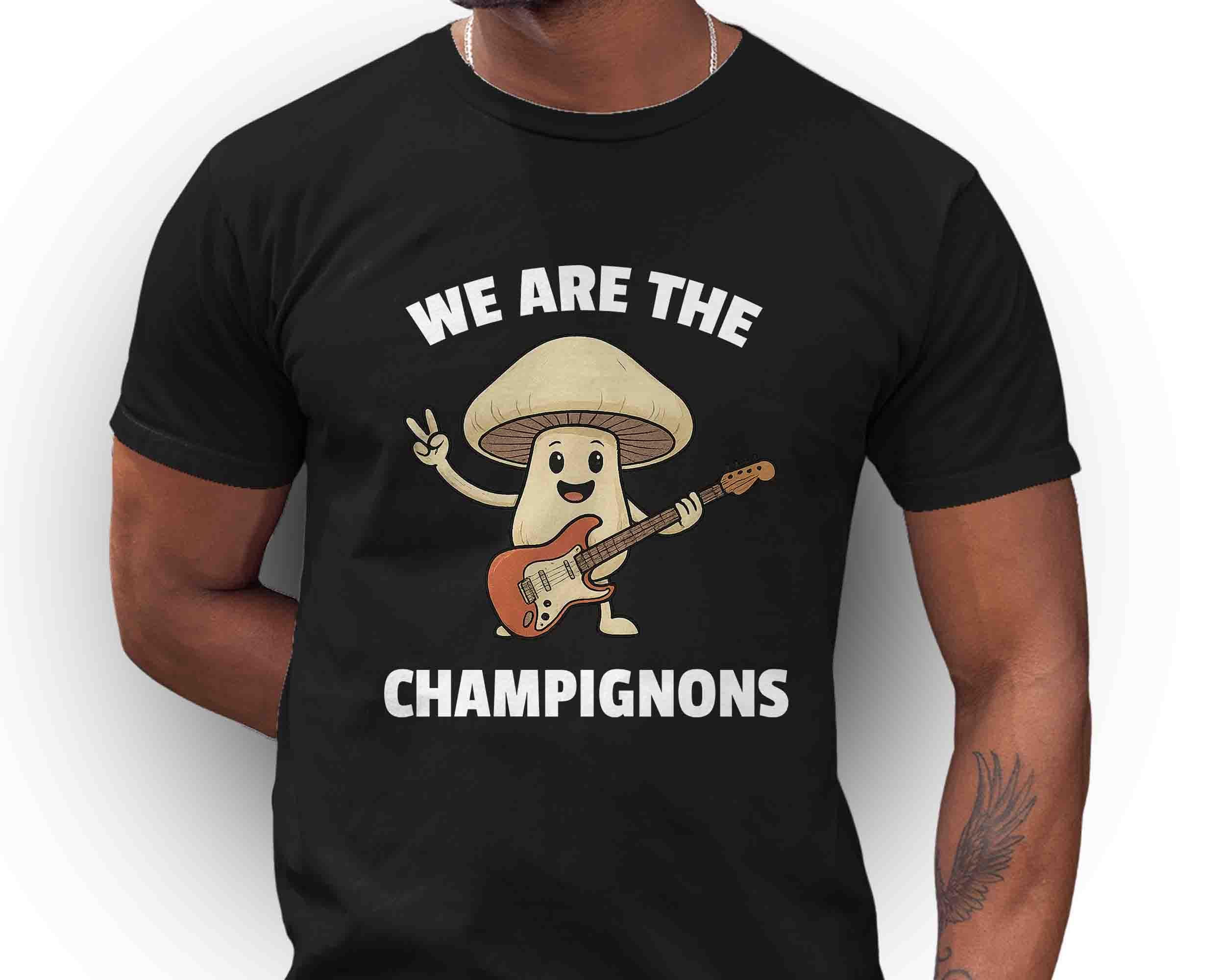 Rock your inner fungi superstar with our hilarious We Are the Champignons tee! Perfect for mushroom lovers, foragers, and anyone with a killer sense of humor. Featuring a hand-drawn 🍄 champignon 🍄 mushroom styled like a rock legend, this design brings vintage vibes and good laughs to your wardrobe. Printed on soft, high-quality cotton for all-day comfort — ideal for festivals, forest walks, or jamming in your kitchen!