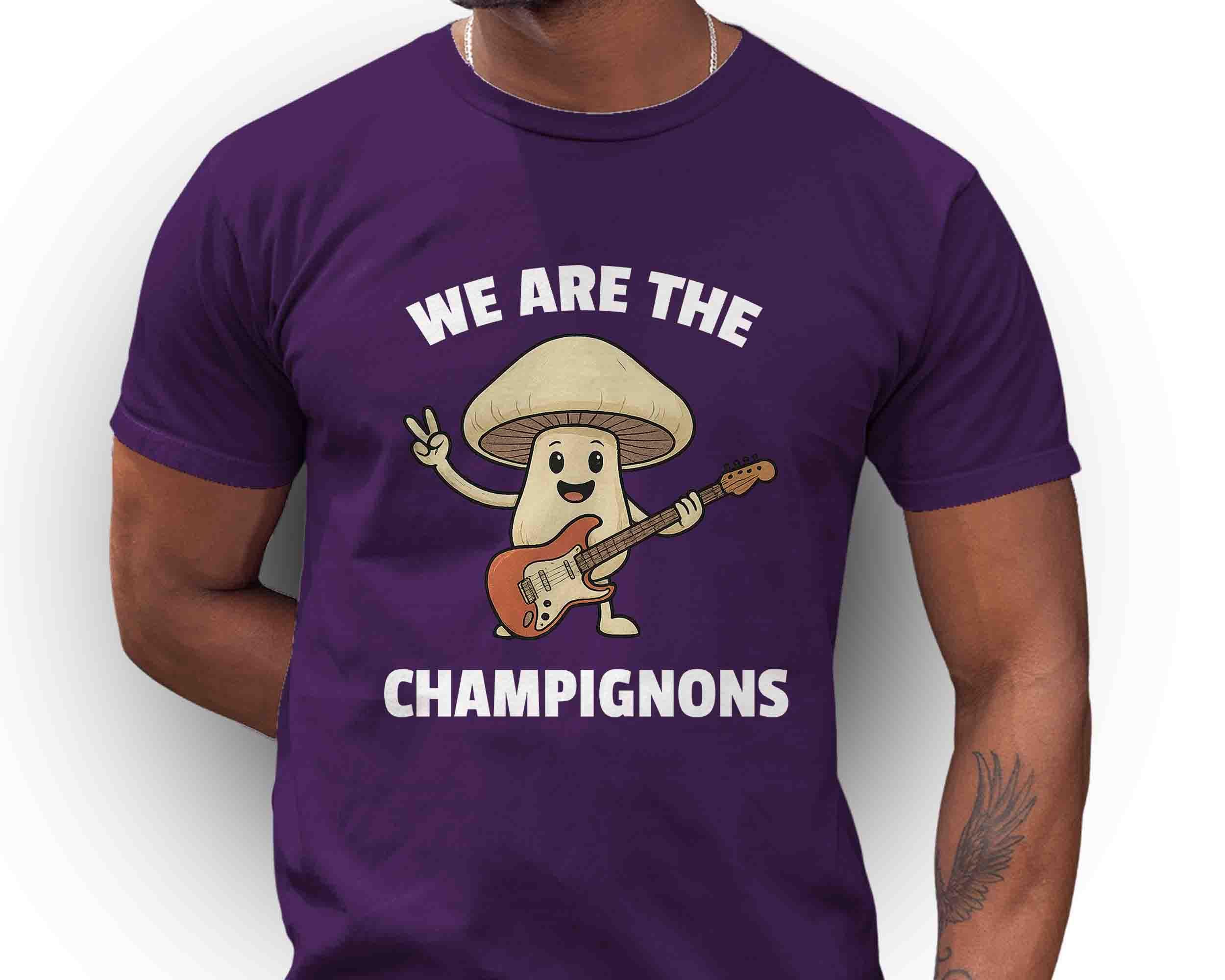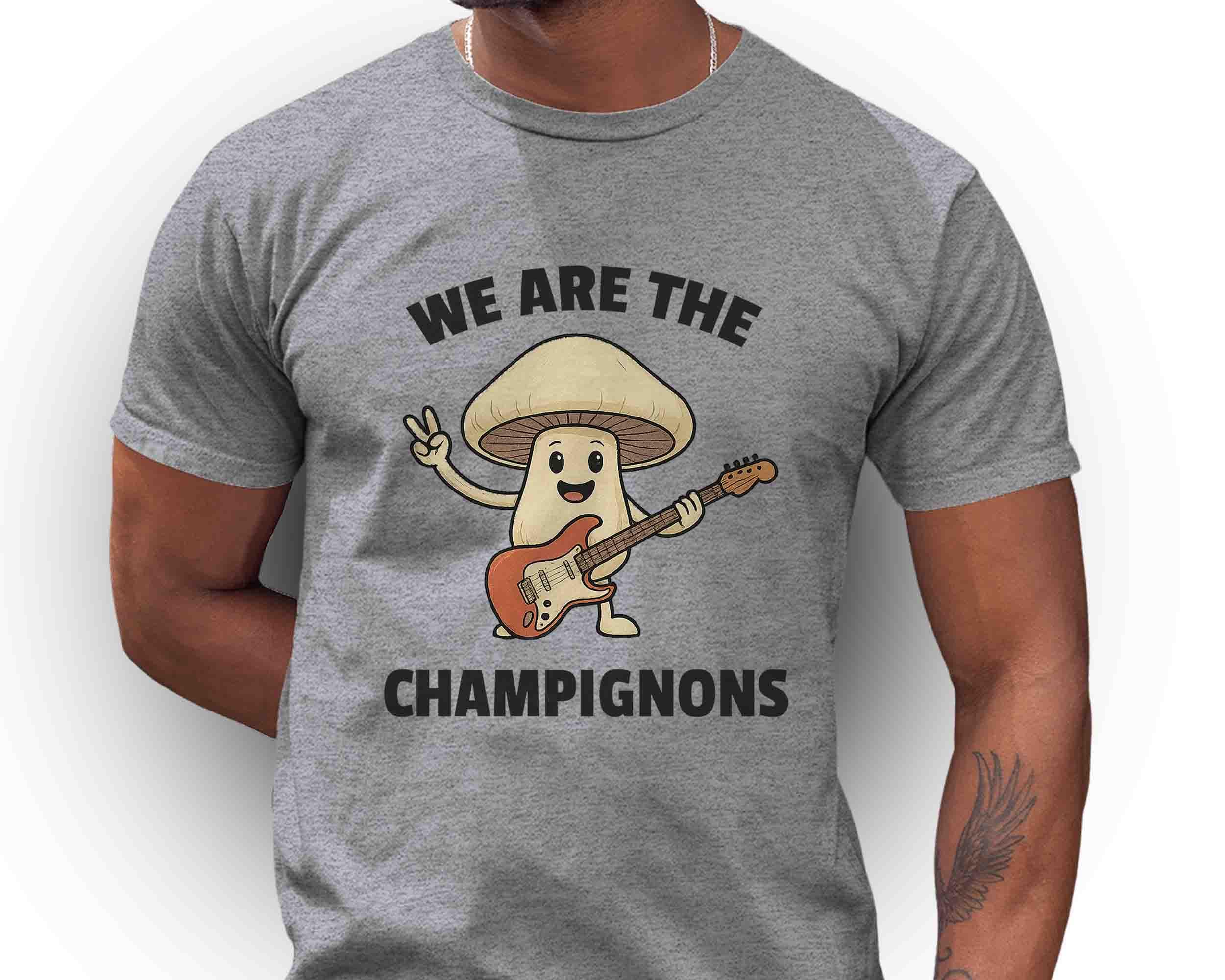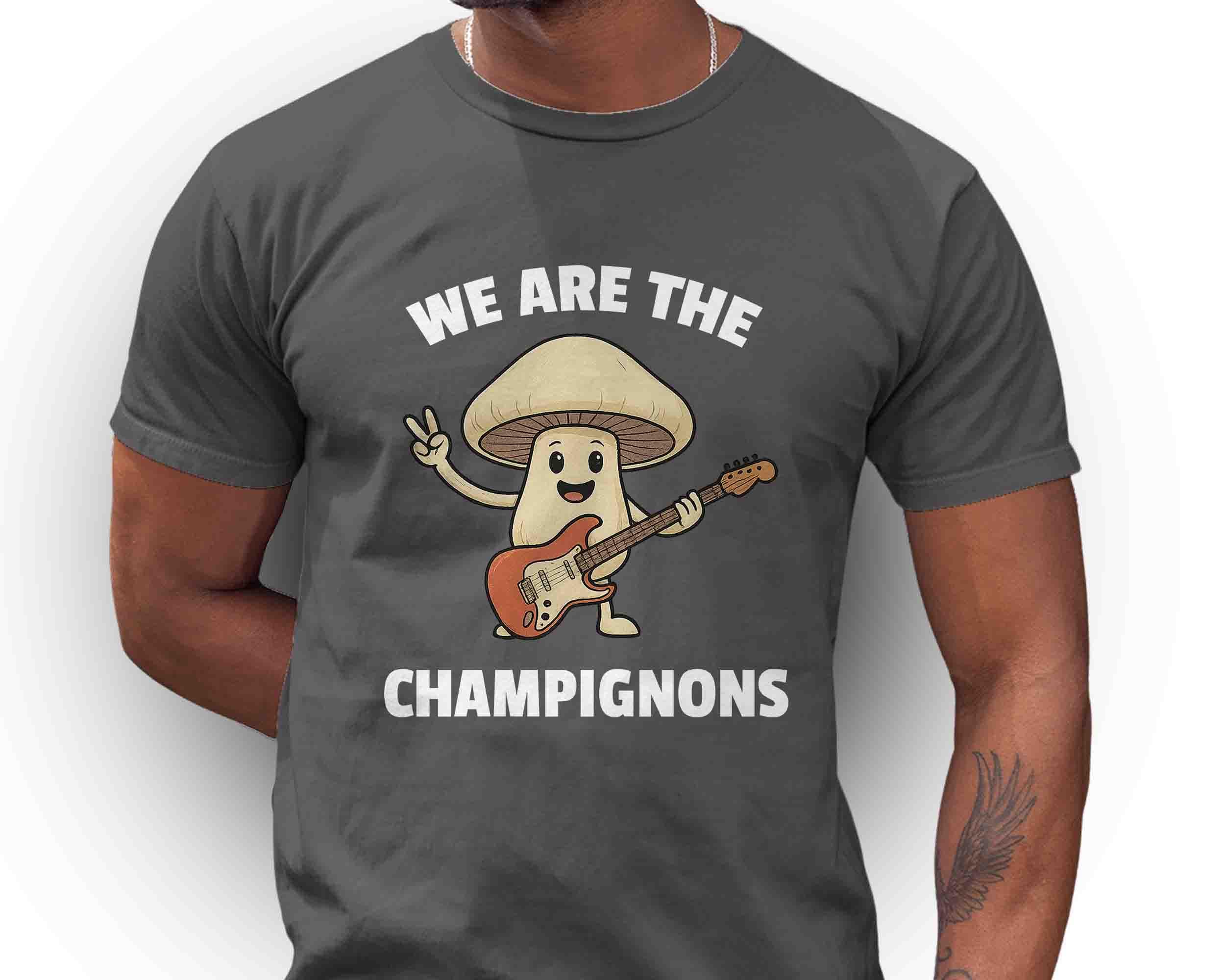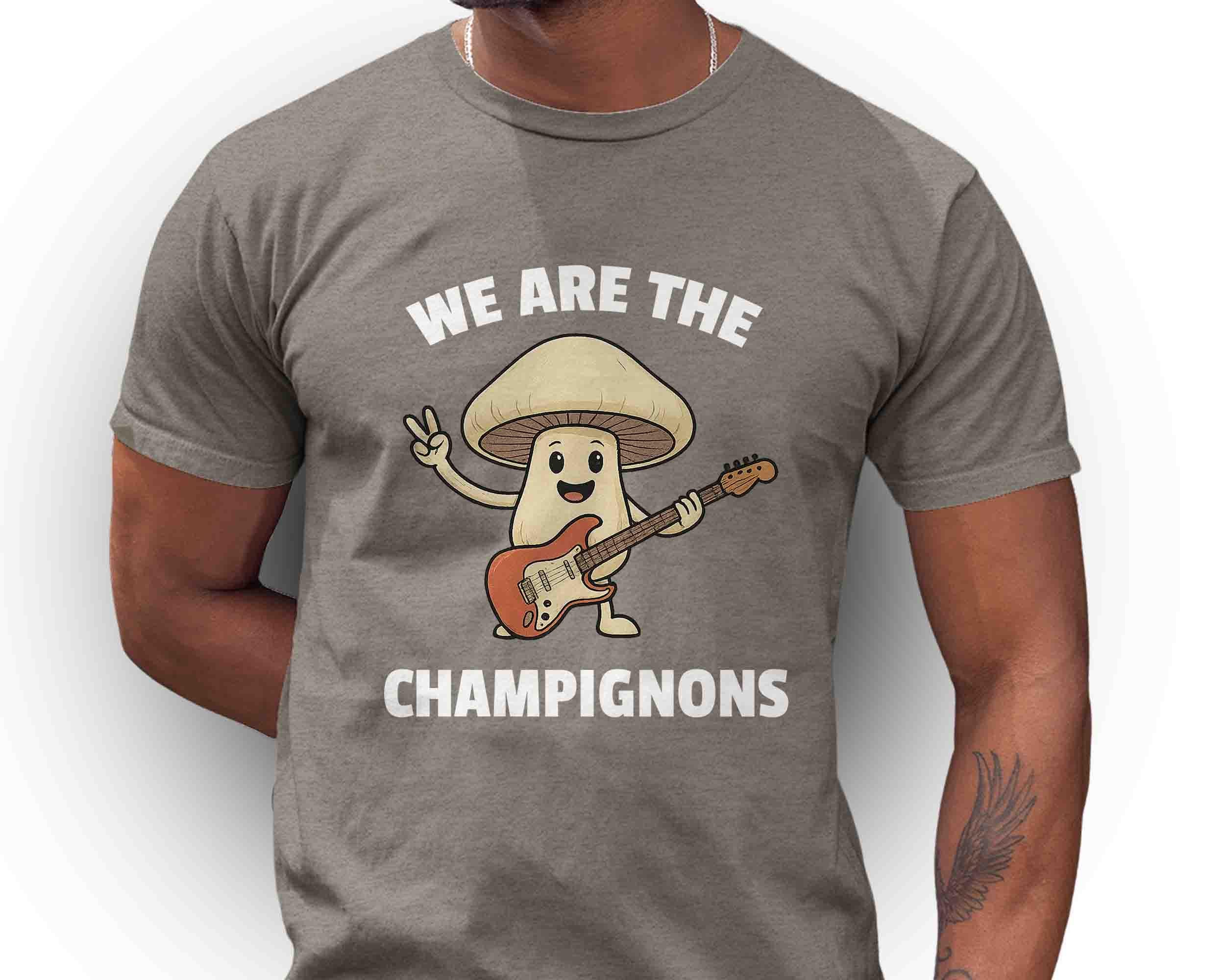 Rock your inner fungi superstar with our hilarious We Are the Champignons tee! Perfect for mushroom lovers, foragers, and anyone with a killer sense of humor. Featuring a hand-drawn 🍄 champignon 🍄 mushroom styled like a rock legend, this design brings vintage vibes and good laughs to your wardrobe. Printed on soft, high-quality cotton for all-day comfort — ideal for festivals, forest walks, or jamming in your kitchen!