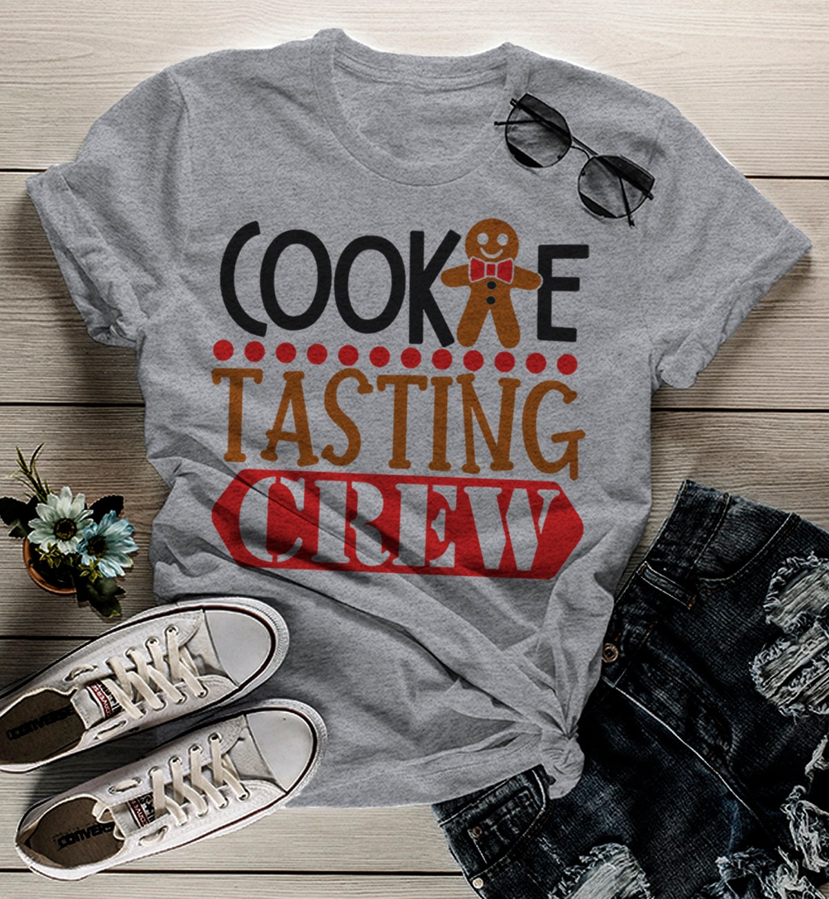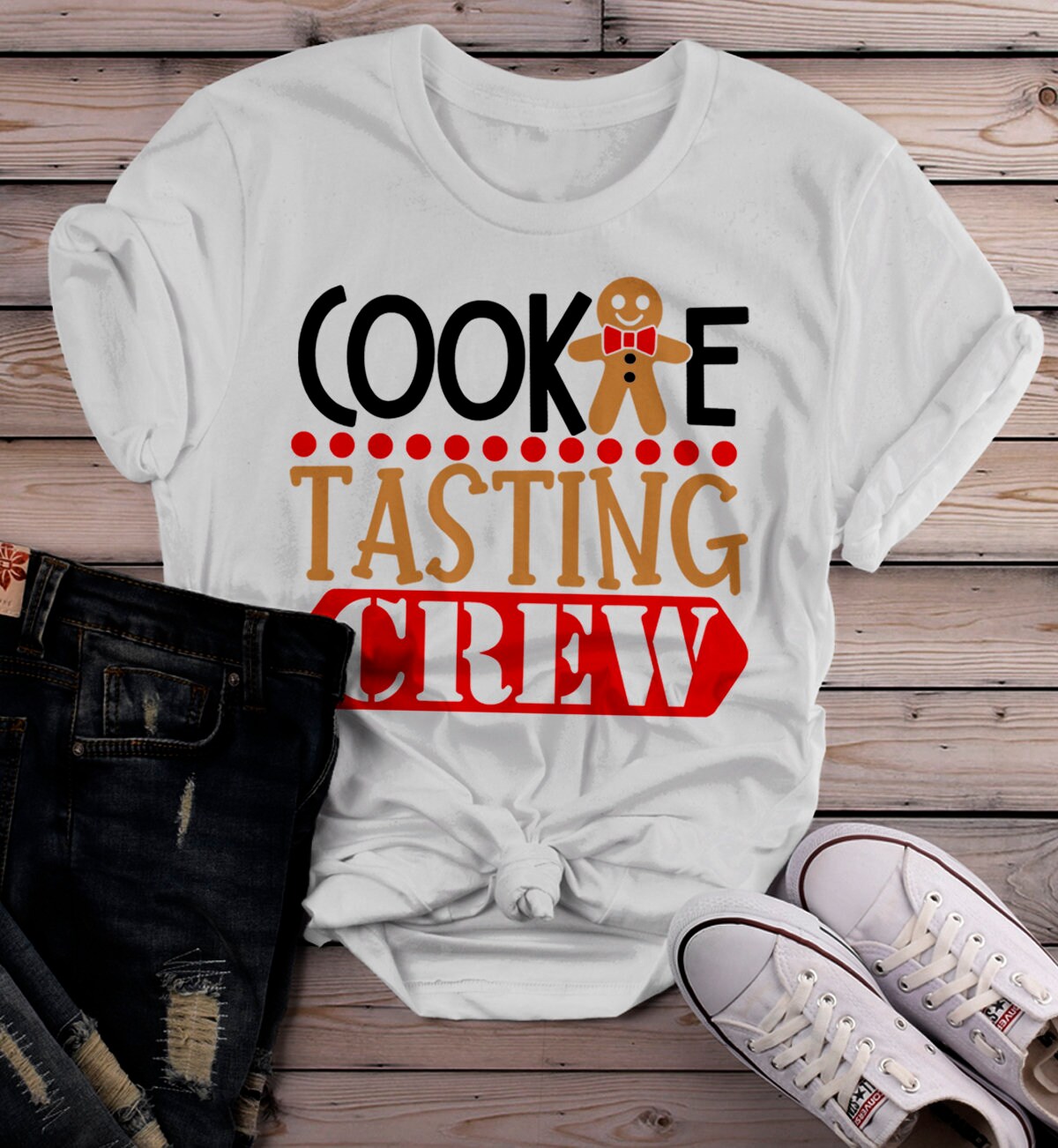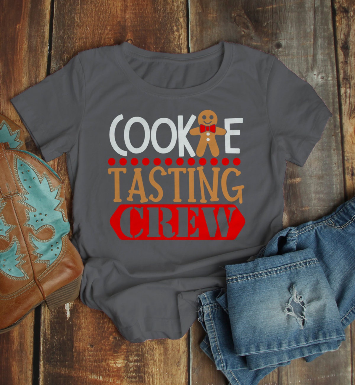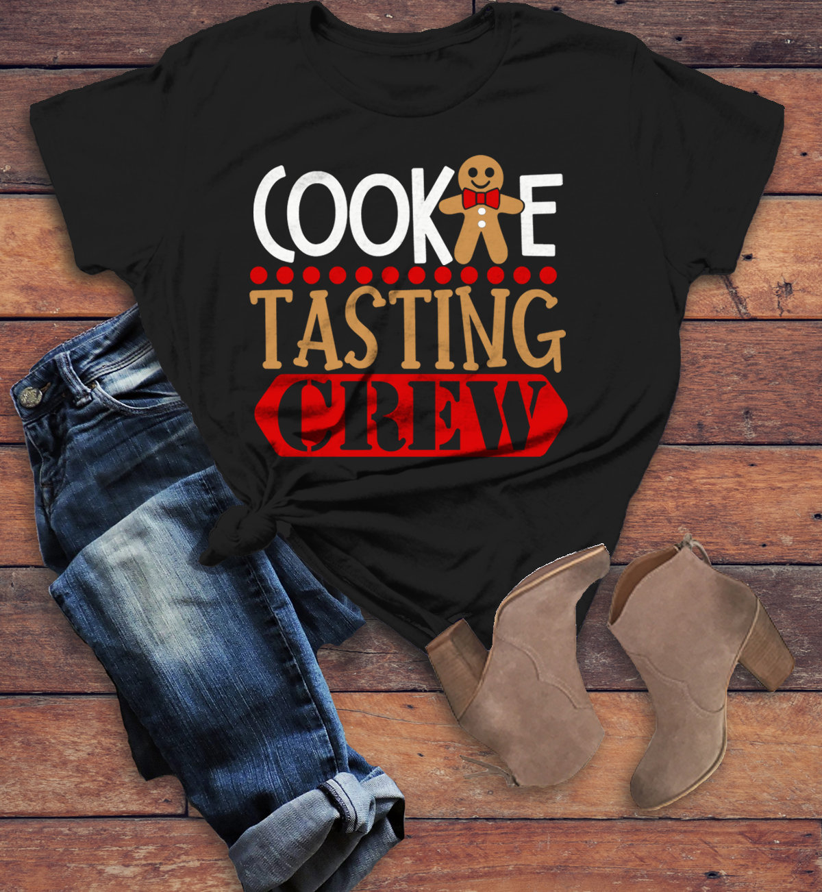 Women's Christmas T Shirt Cookie Tasting Crew Matching Xmas Shirts Cute Graphic Tee