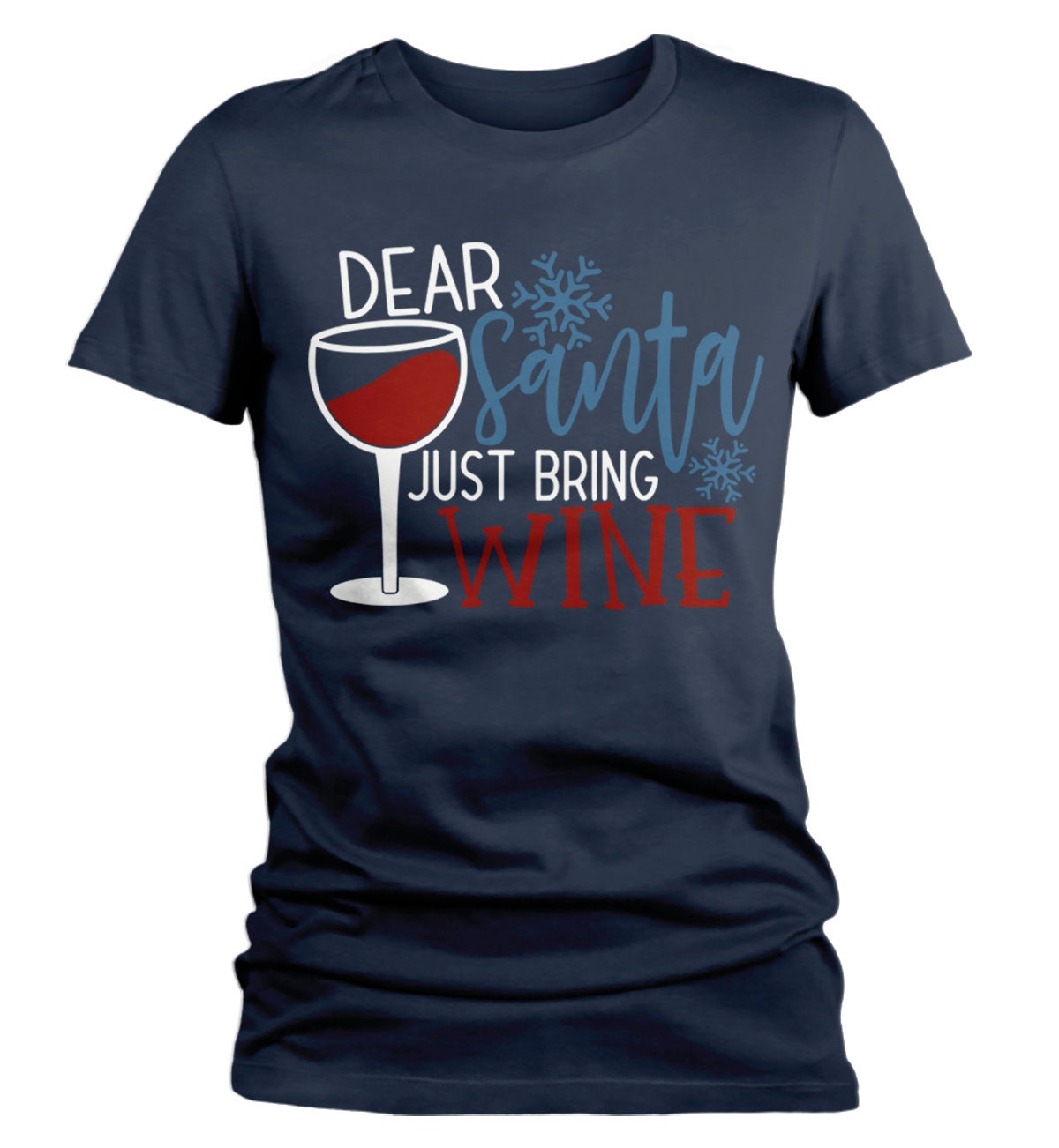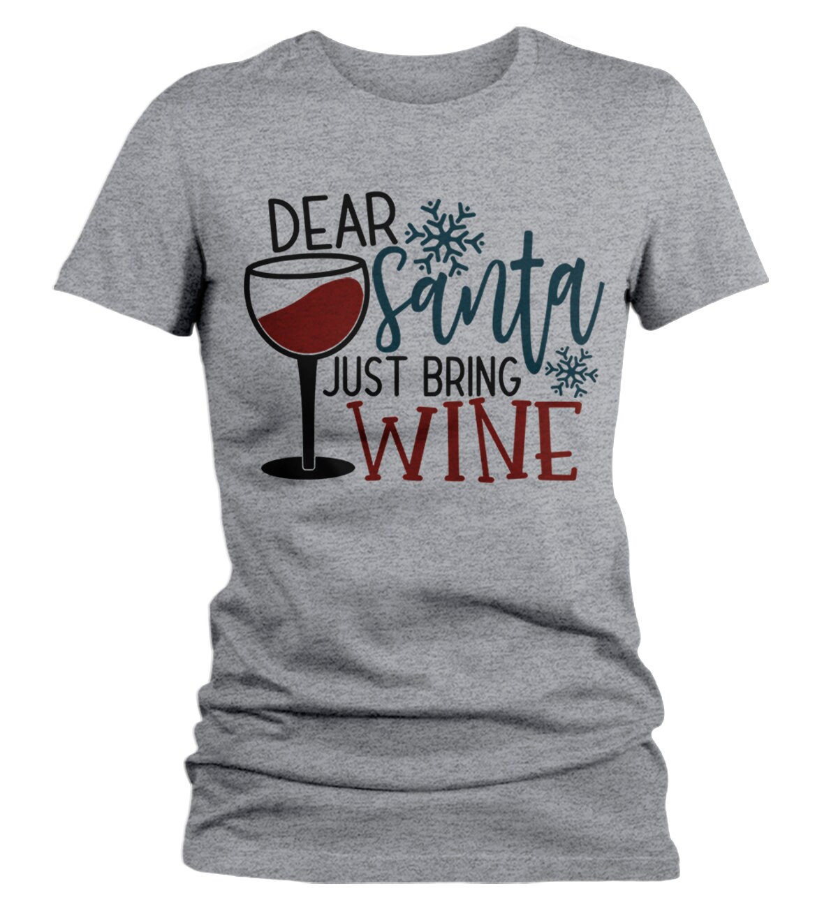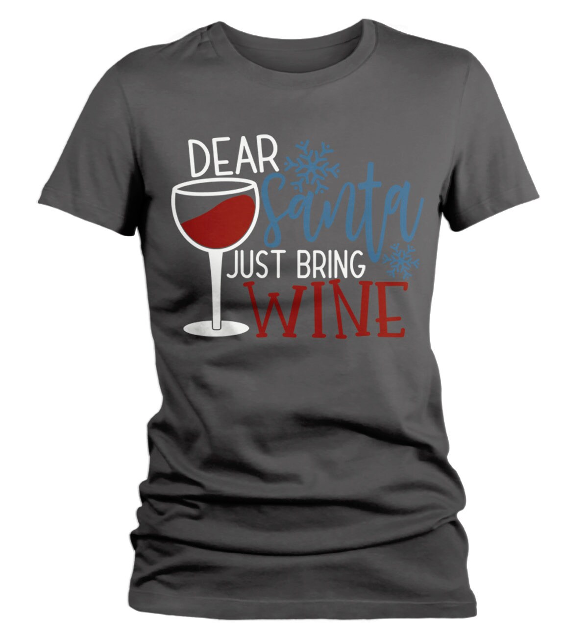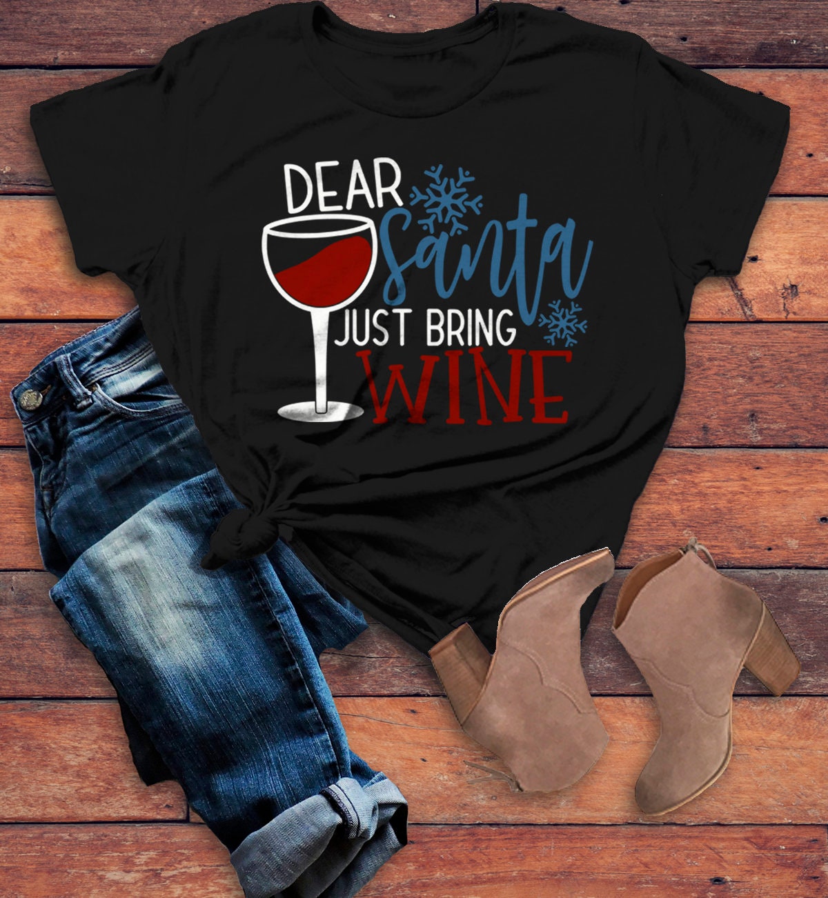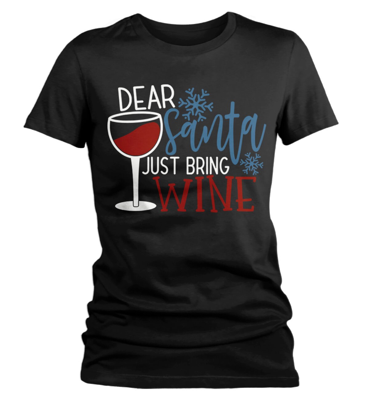 Women's Funny Christmas T Shirt Dear Santa Bring Wine Shirts Wino Tee Graphic Xmas Tshirt
